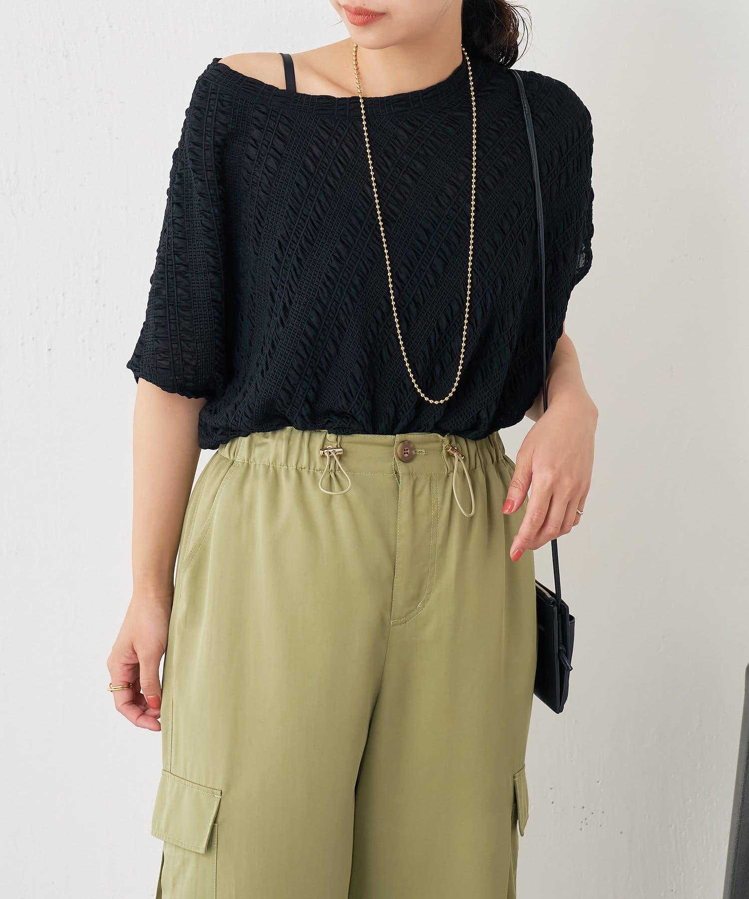 ・体のラインを拾わない、リラクシーな着心地です。