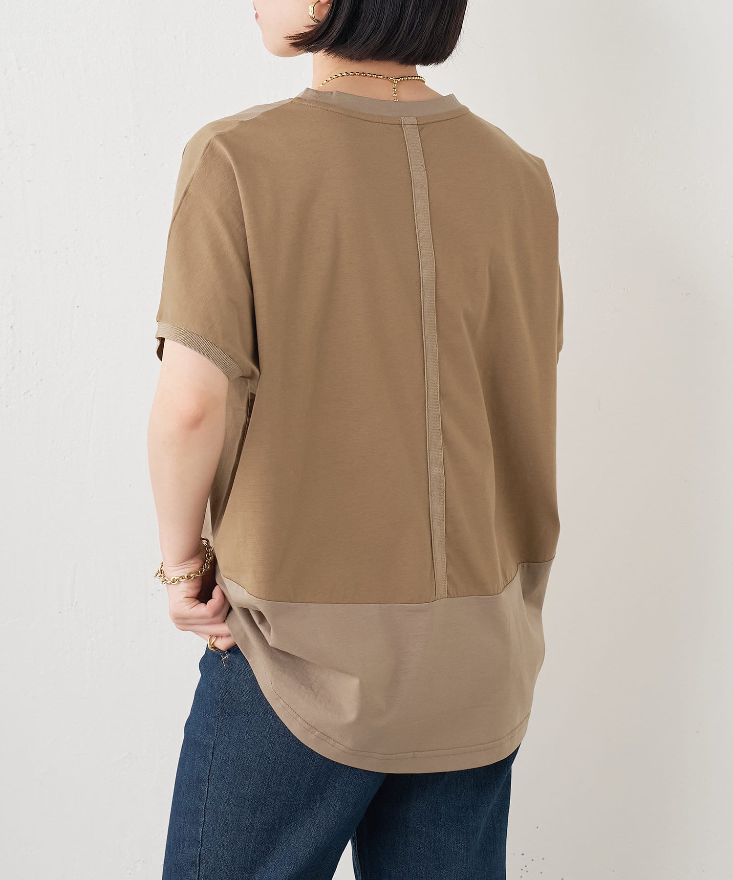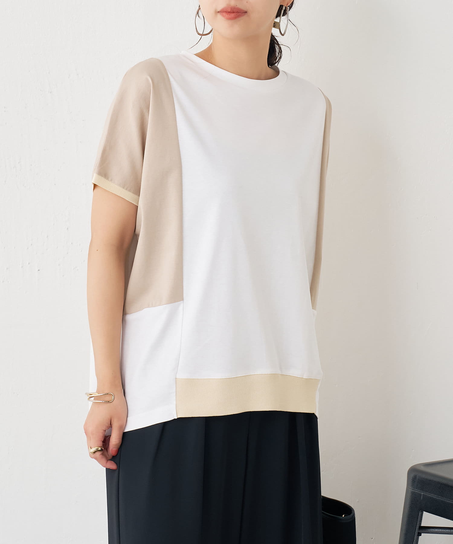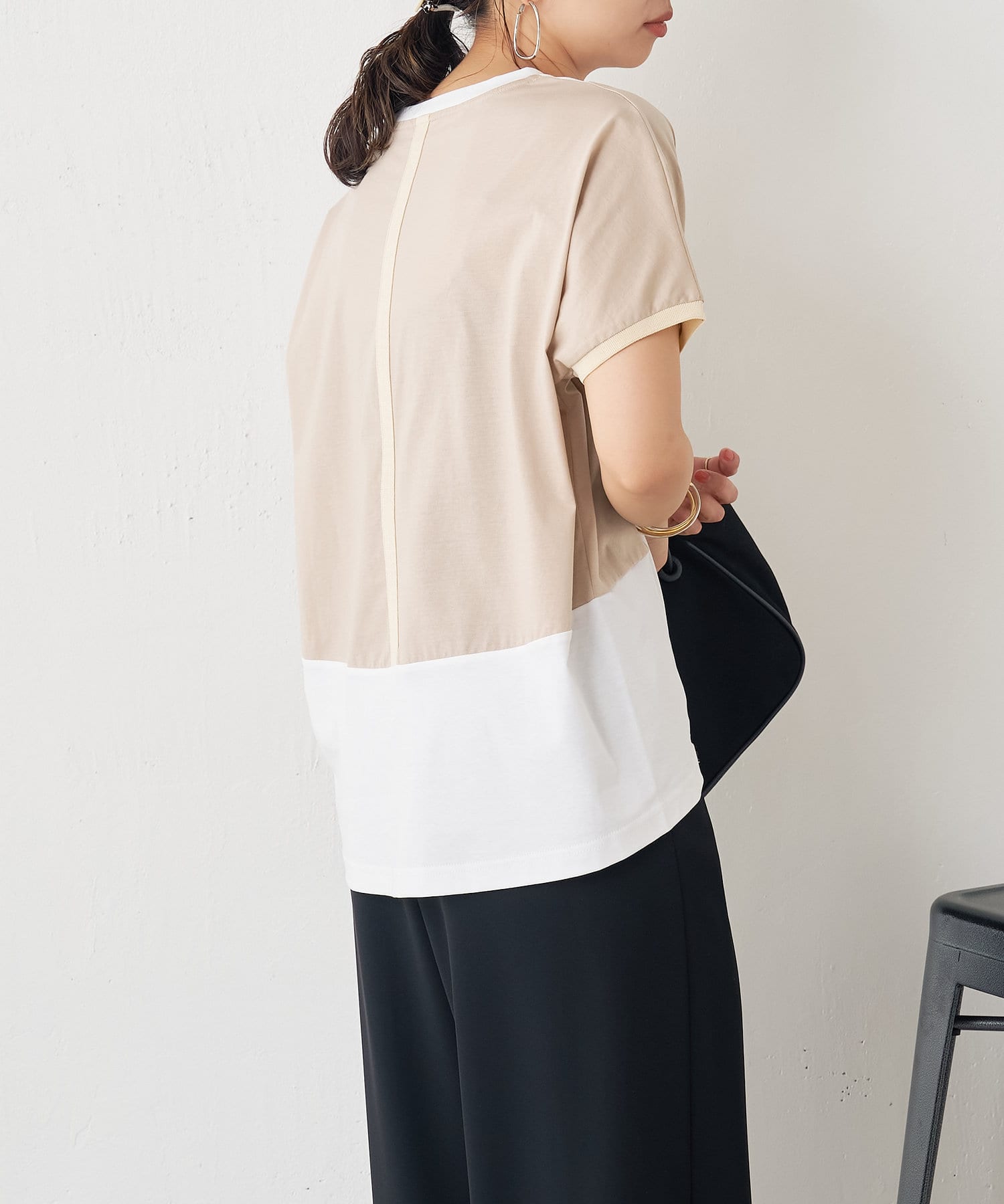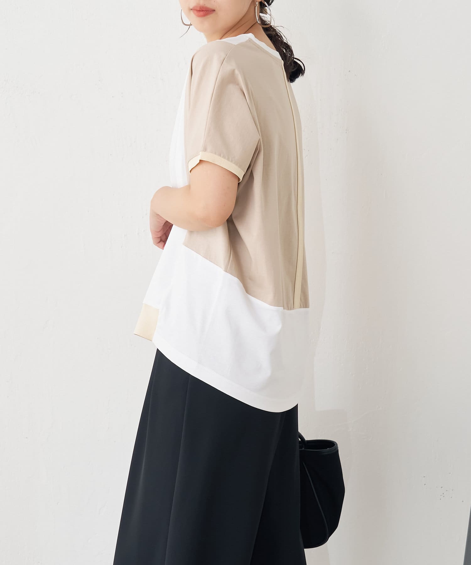 ・配色デザインとバックのラインがポイントのシンプル大人のカットソー。