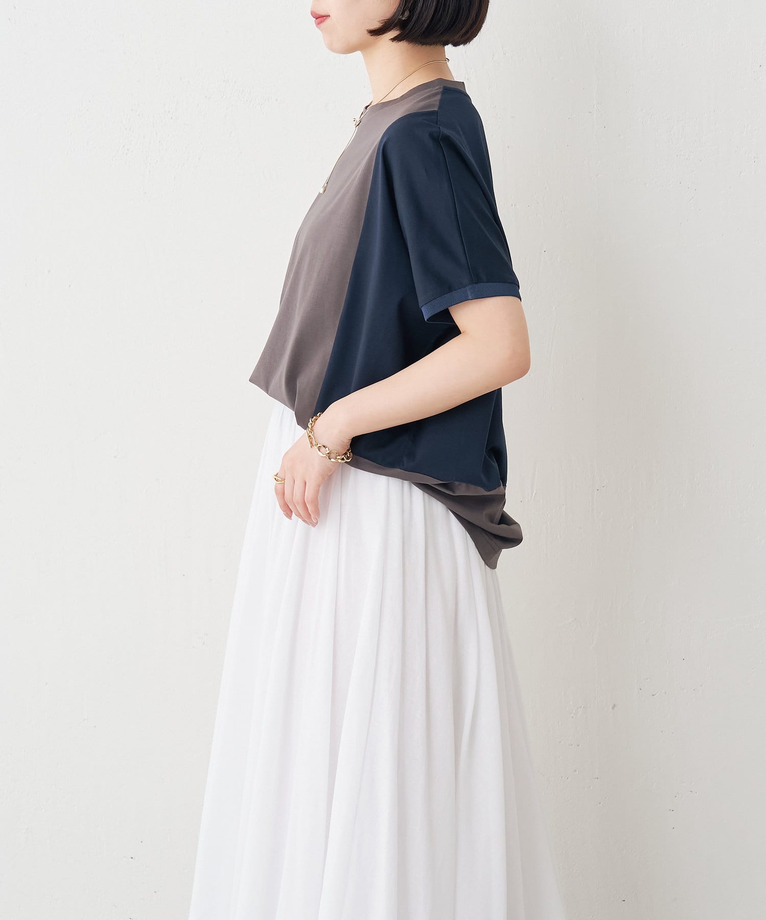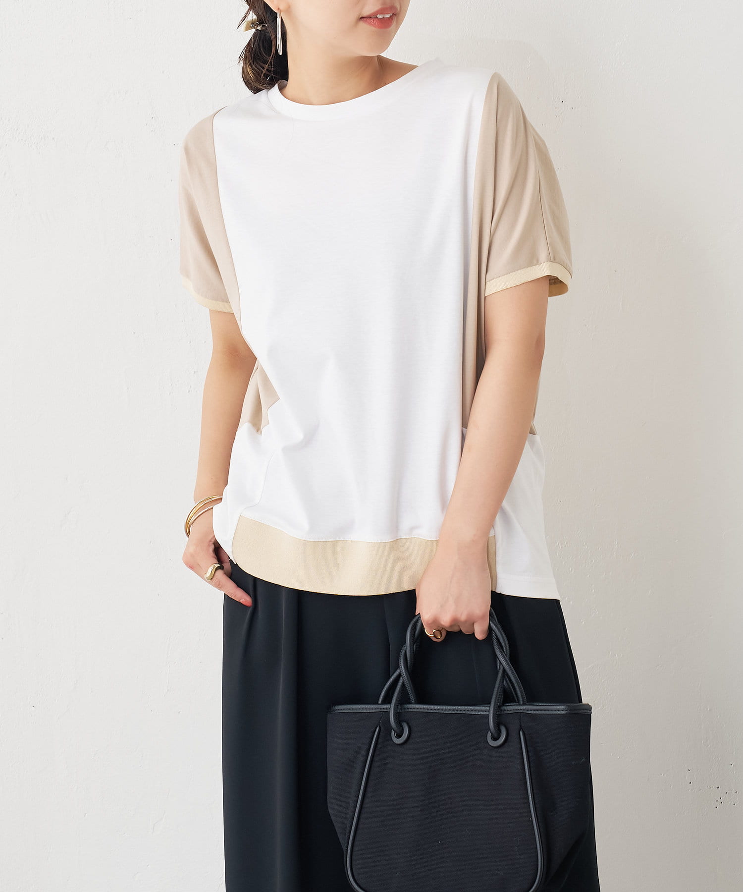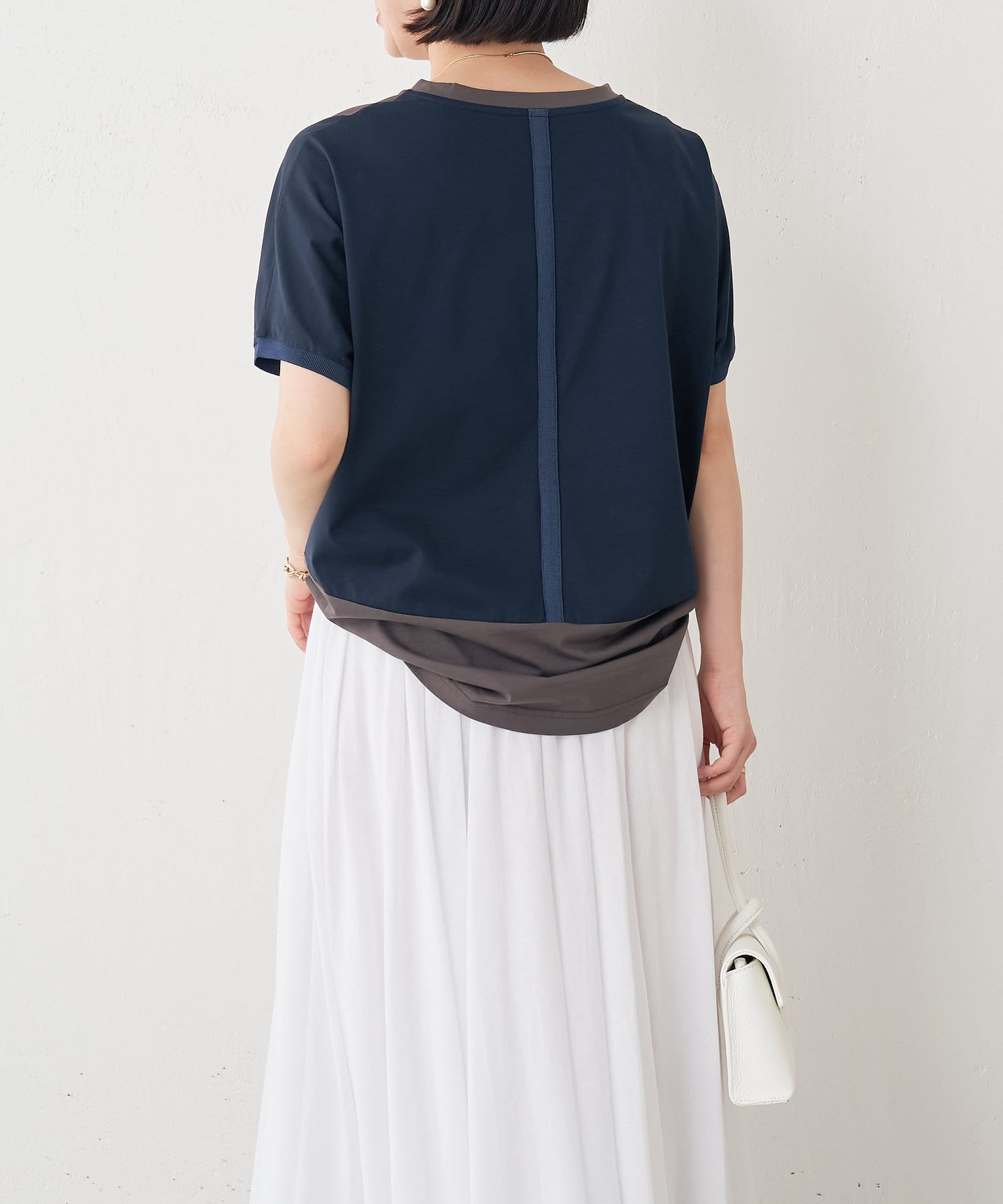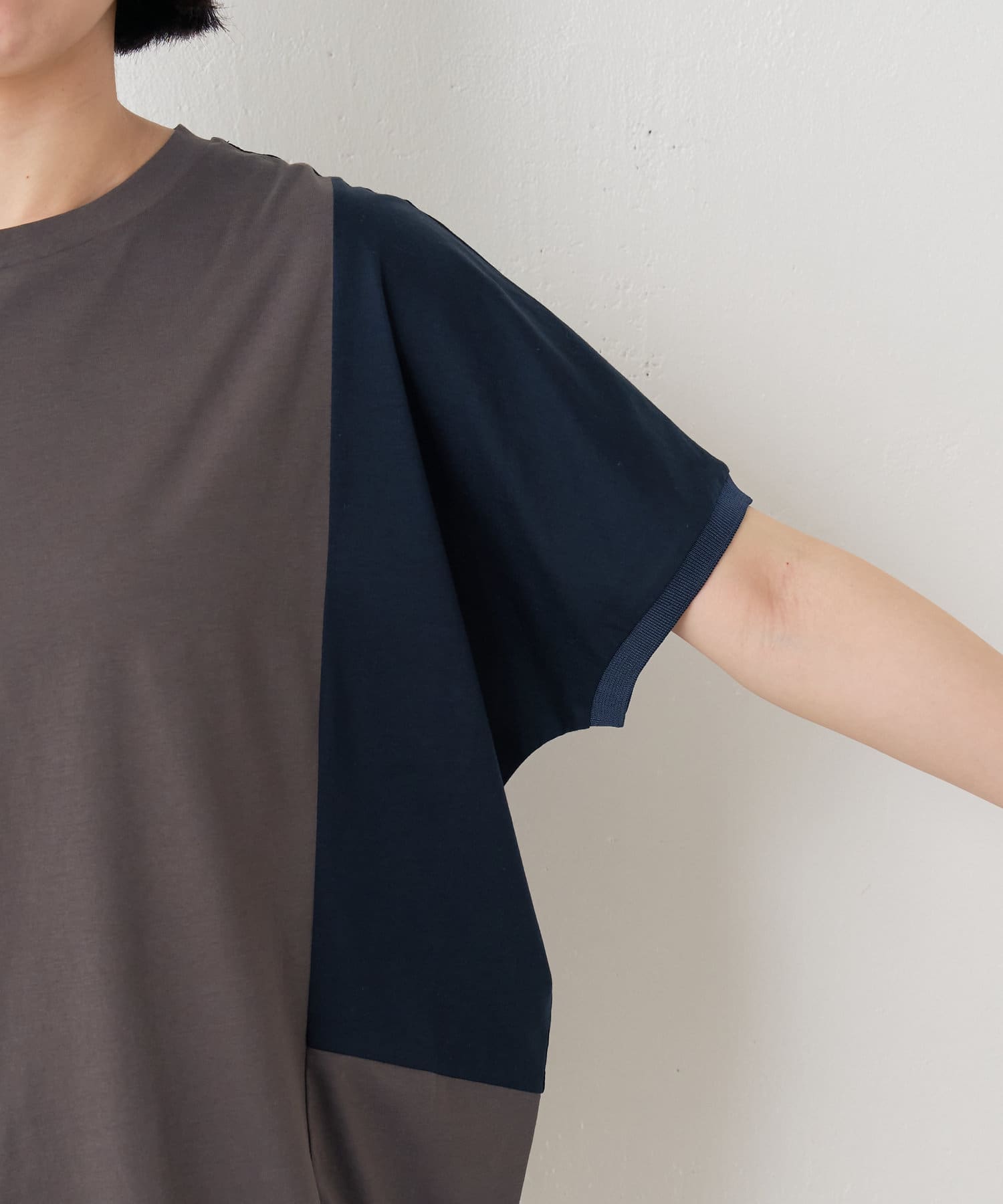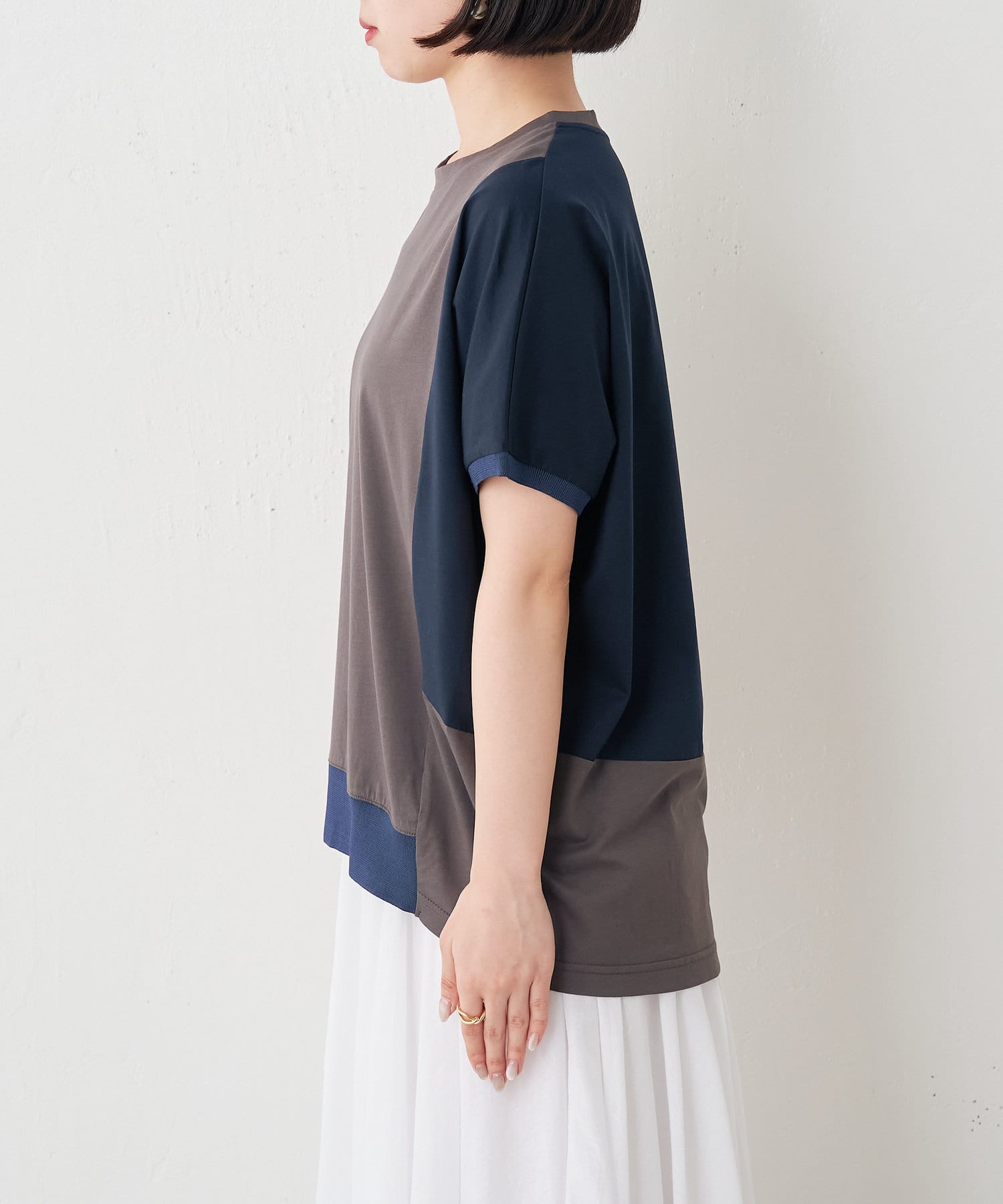 ・配色デザインとバックのラインがポイントのシンプル大人のカットソー。