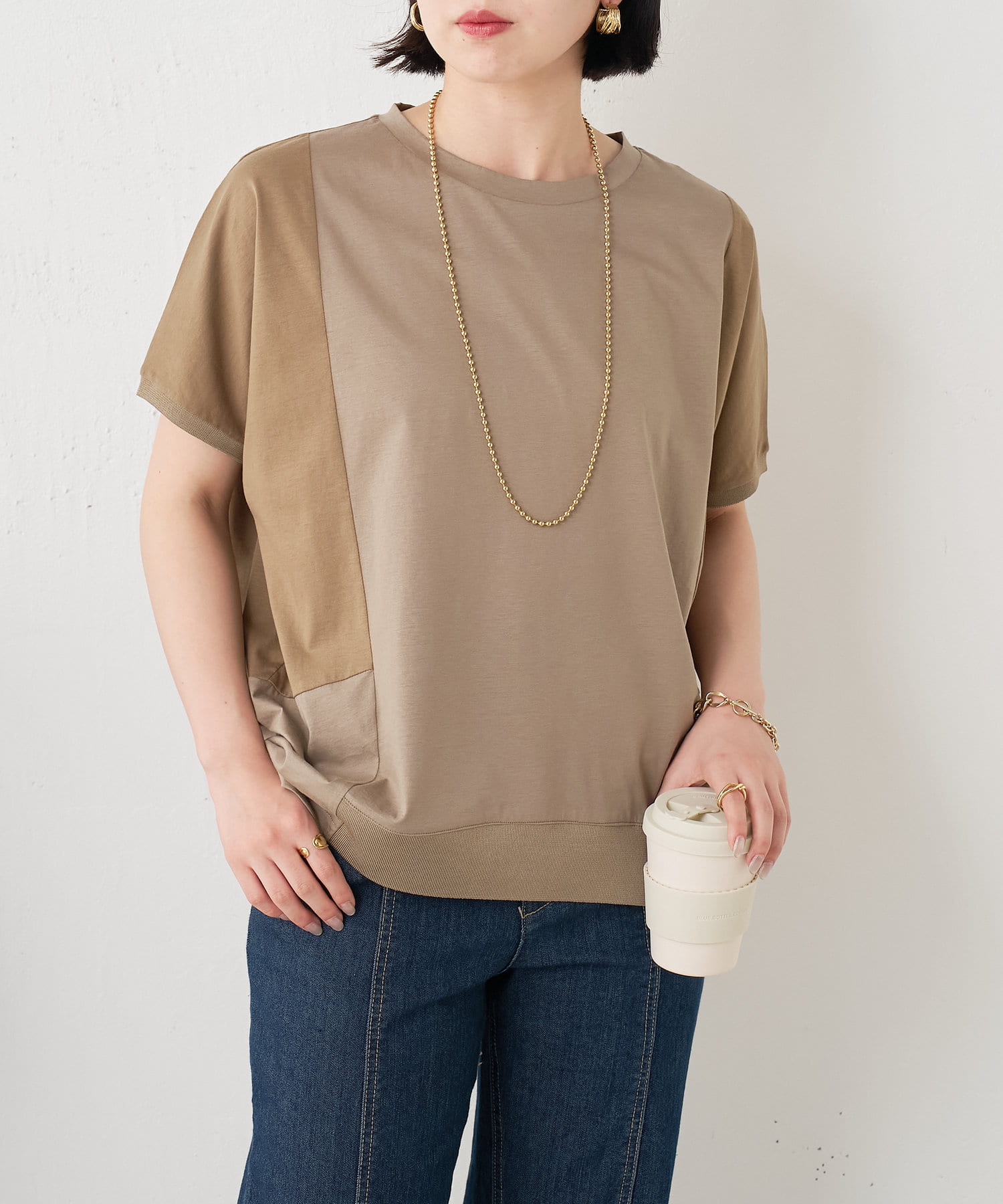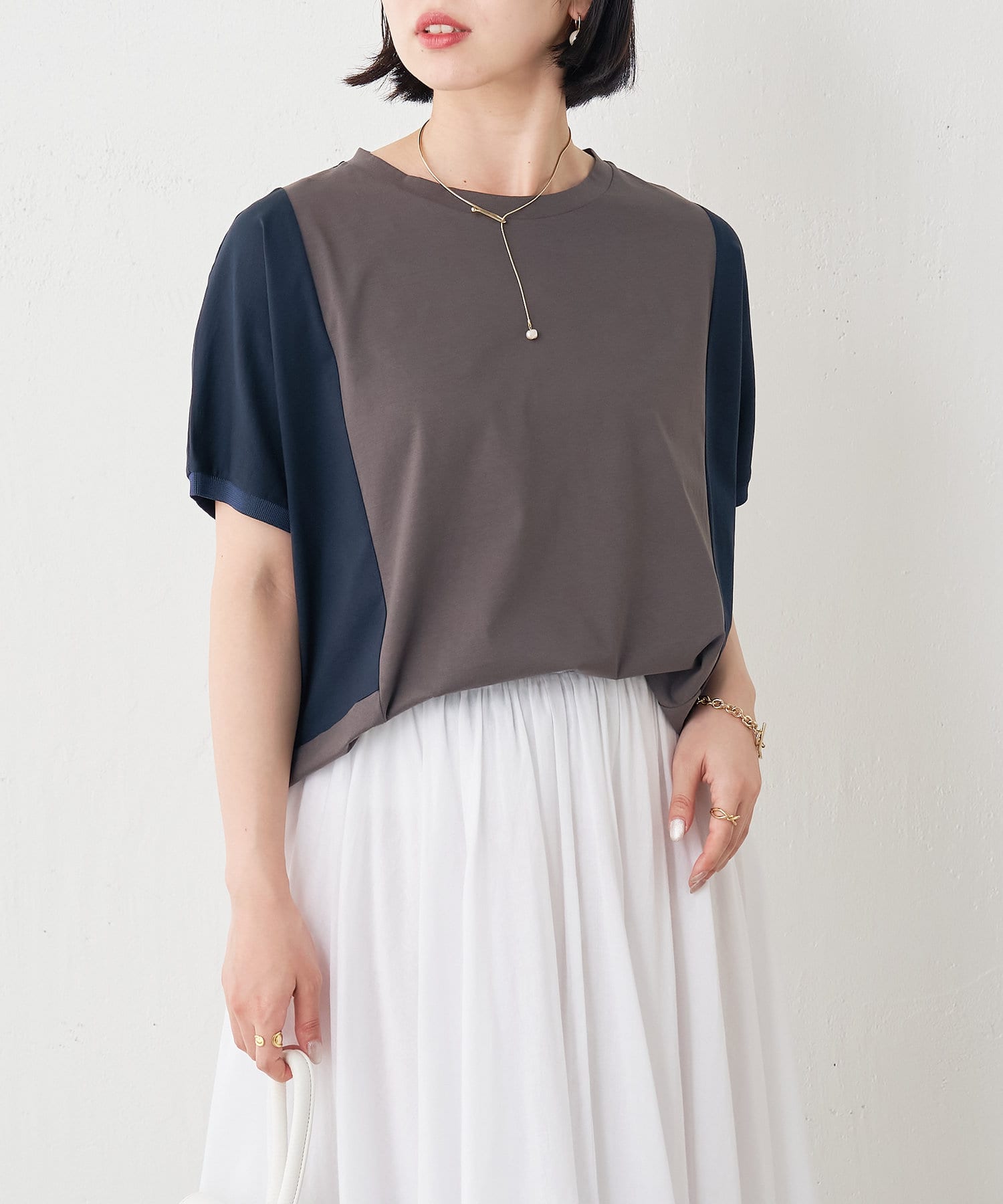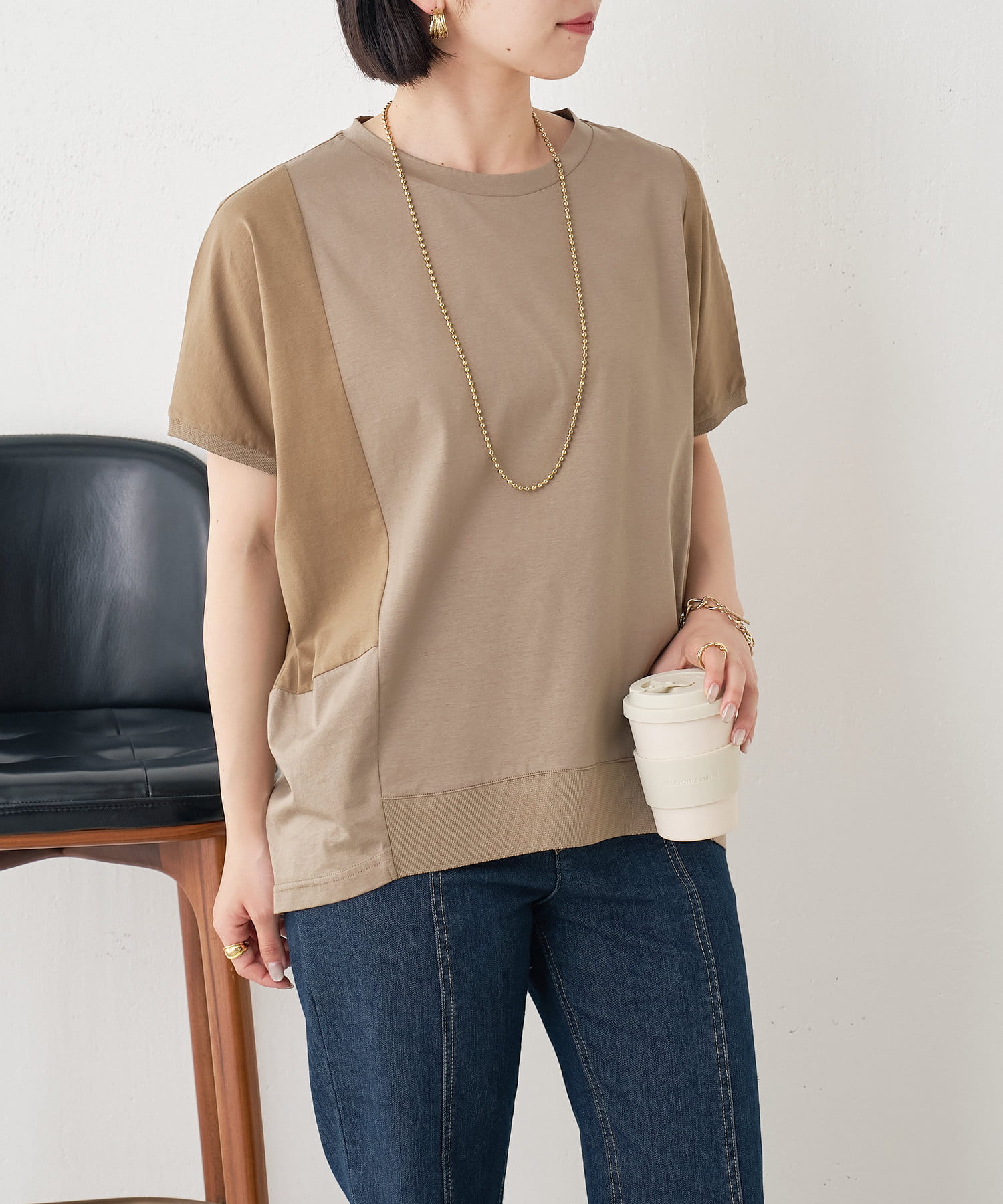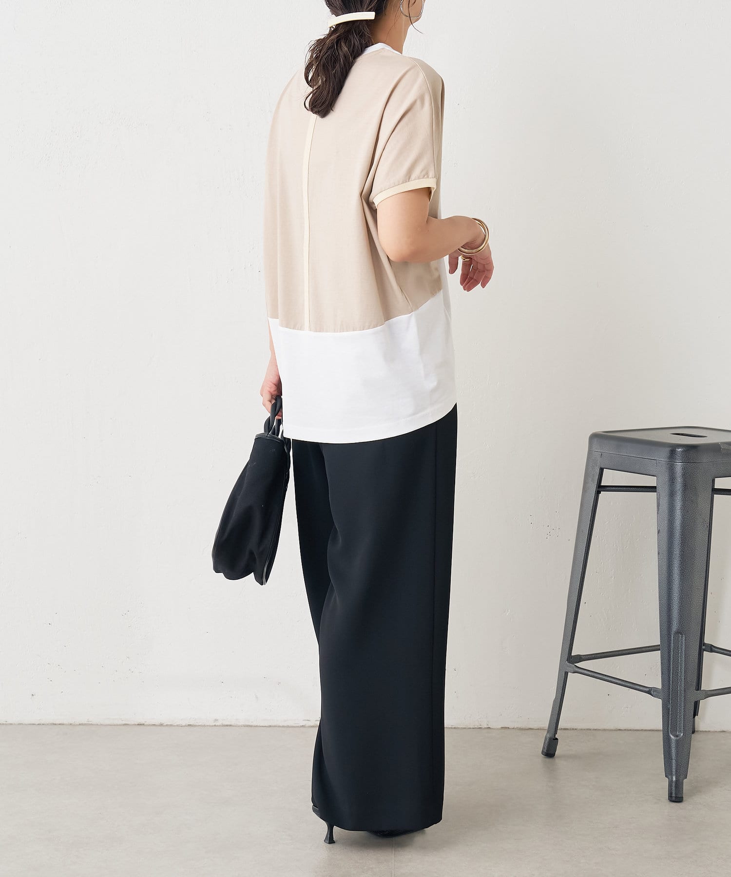 ・配色デザインとバックのラインがポイントのシンプル大人のカットソー。