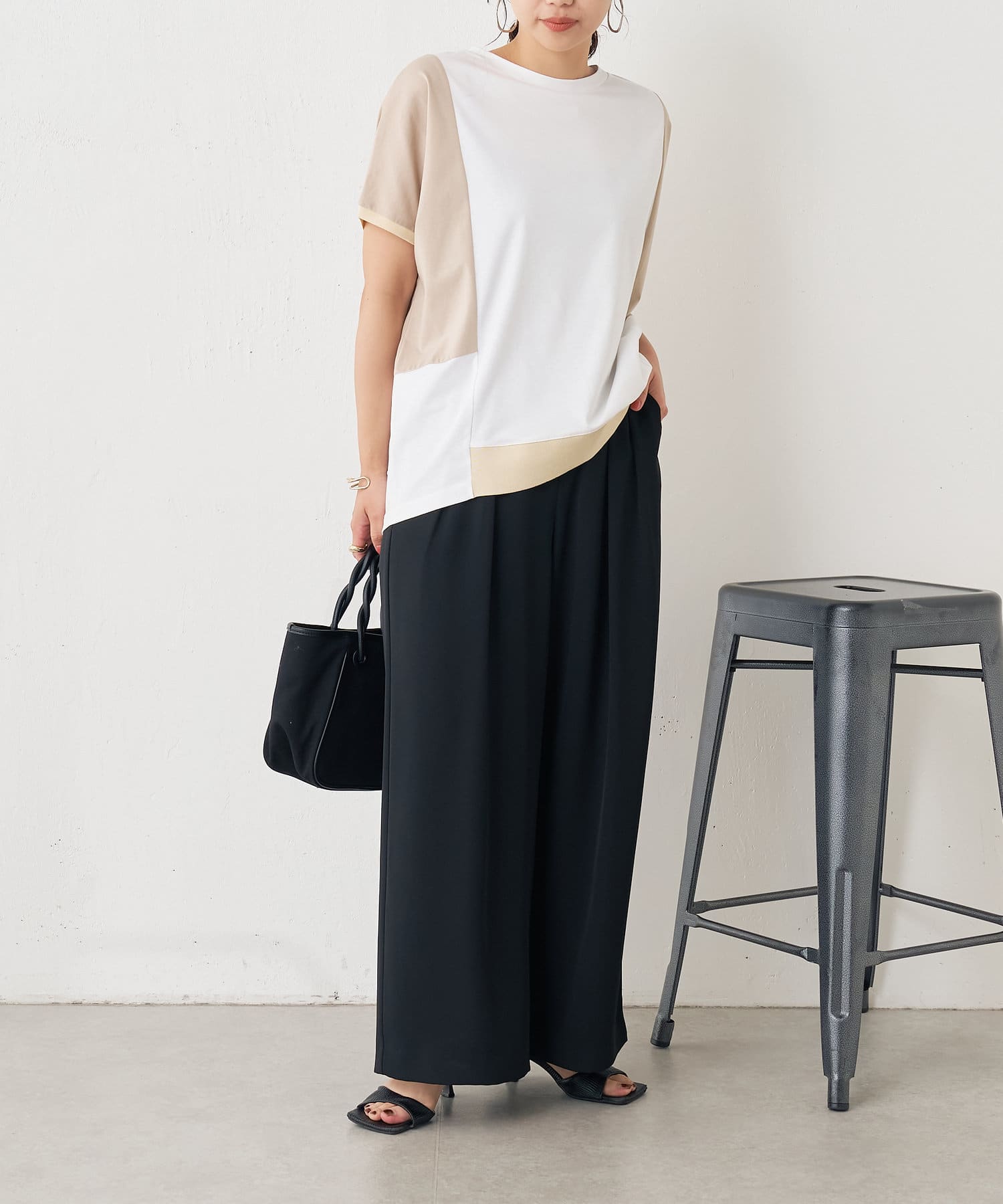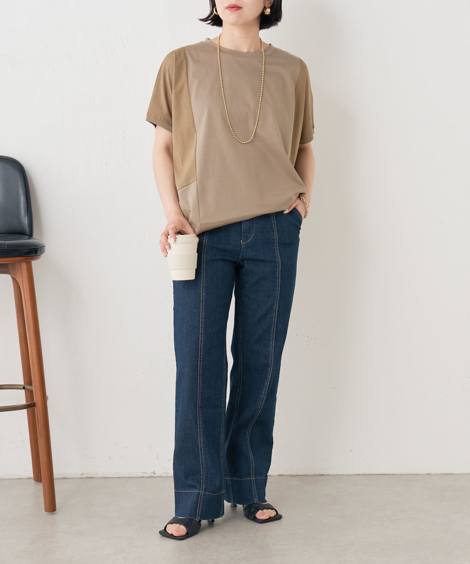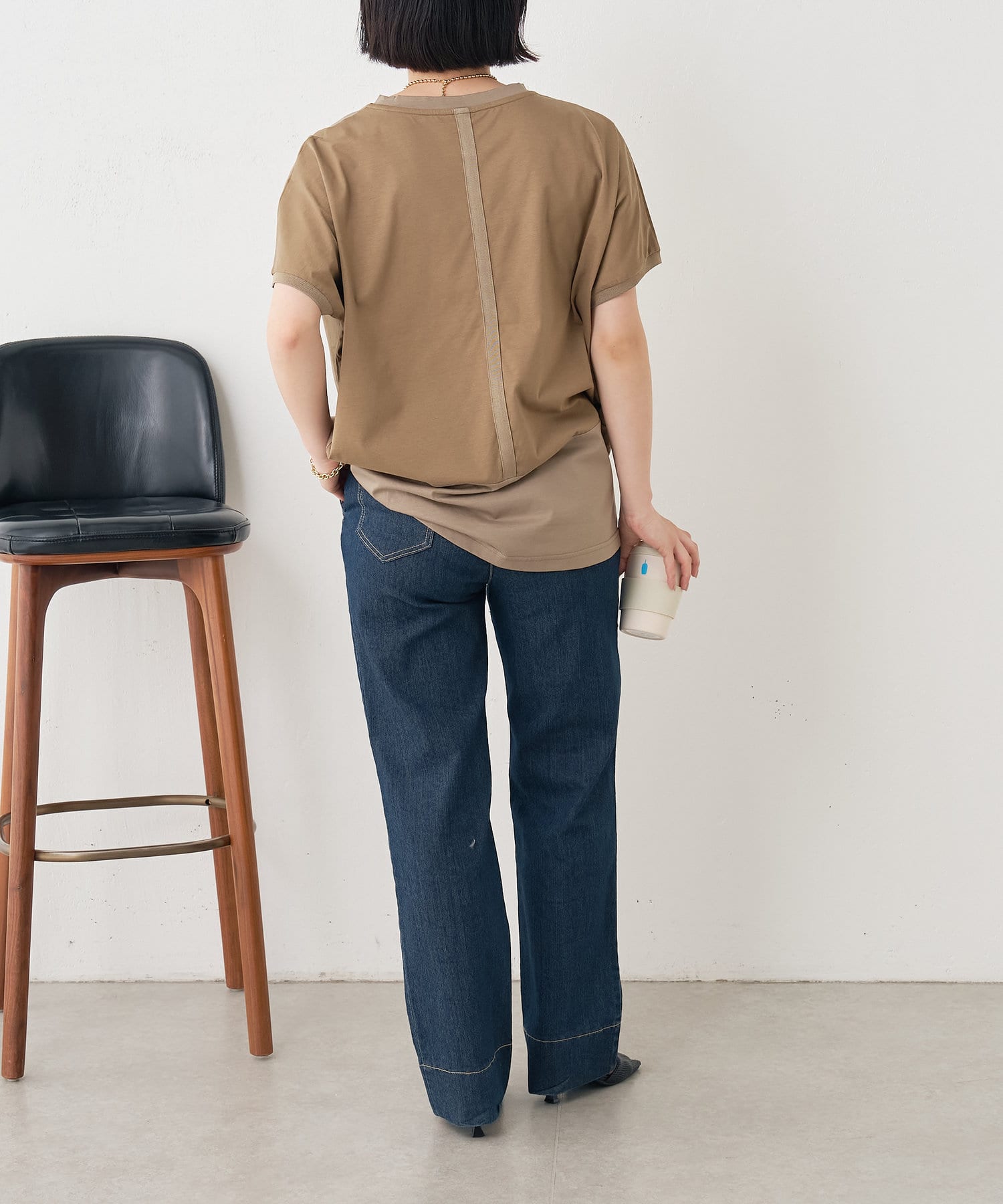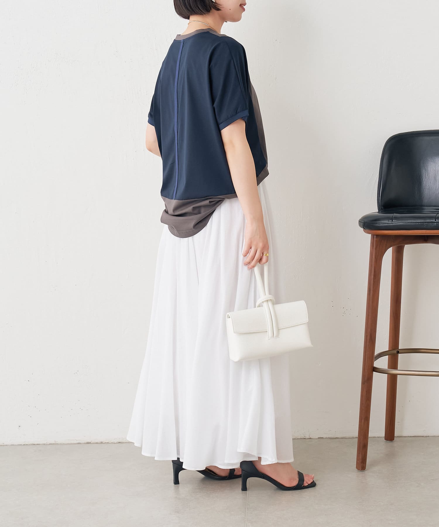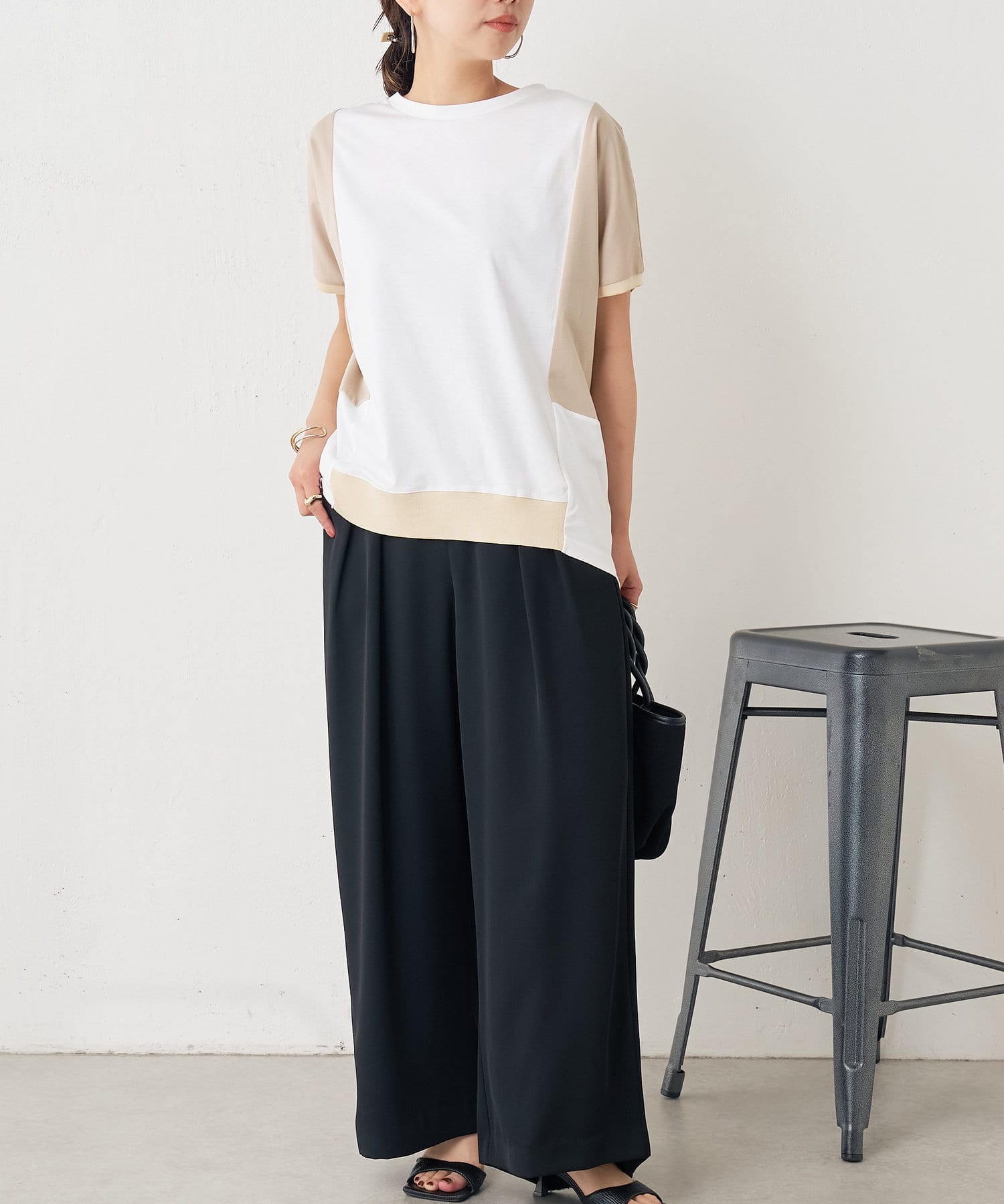 ・配色デザインとバックのラインがポイントのシンプル大人のカットソー。