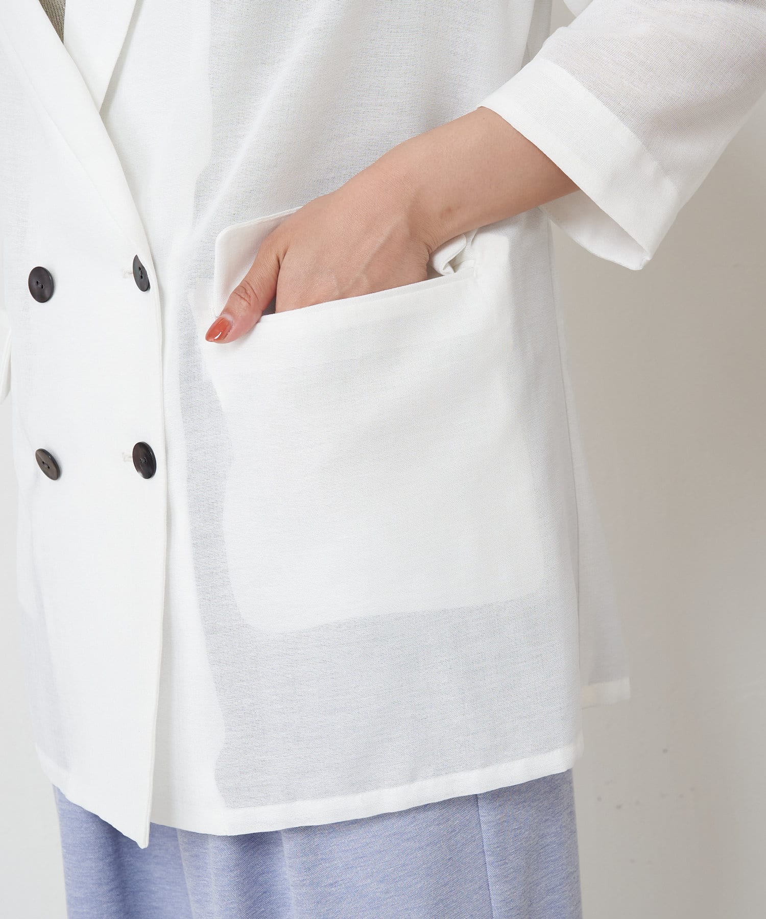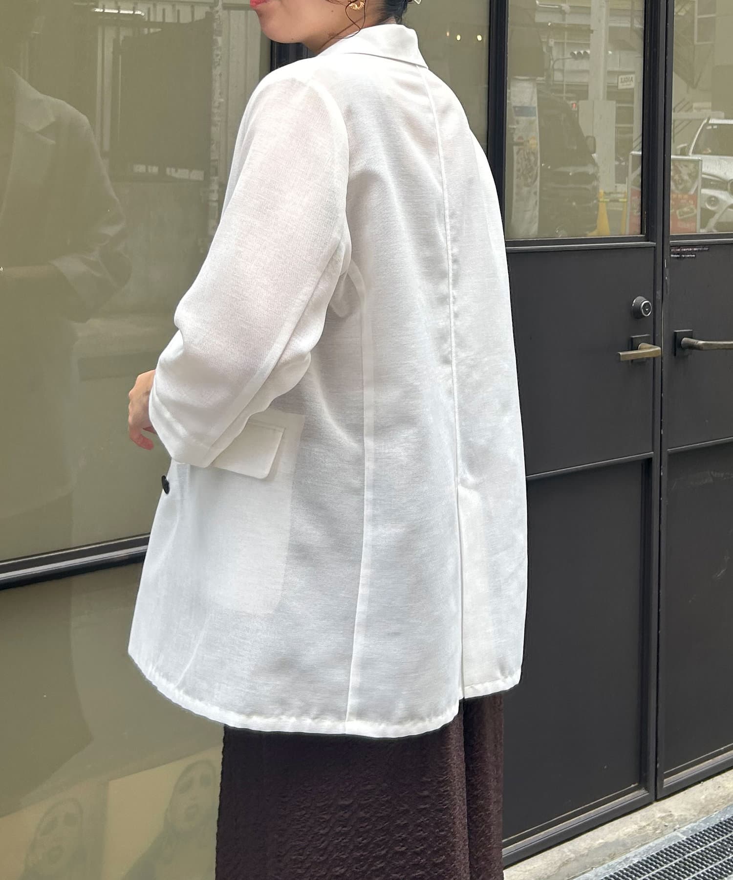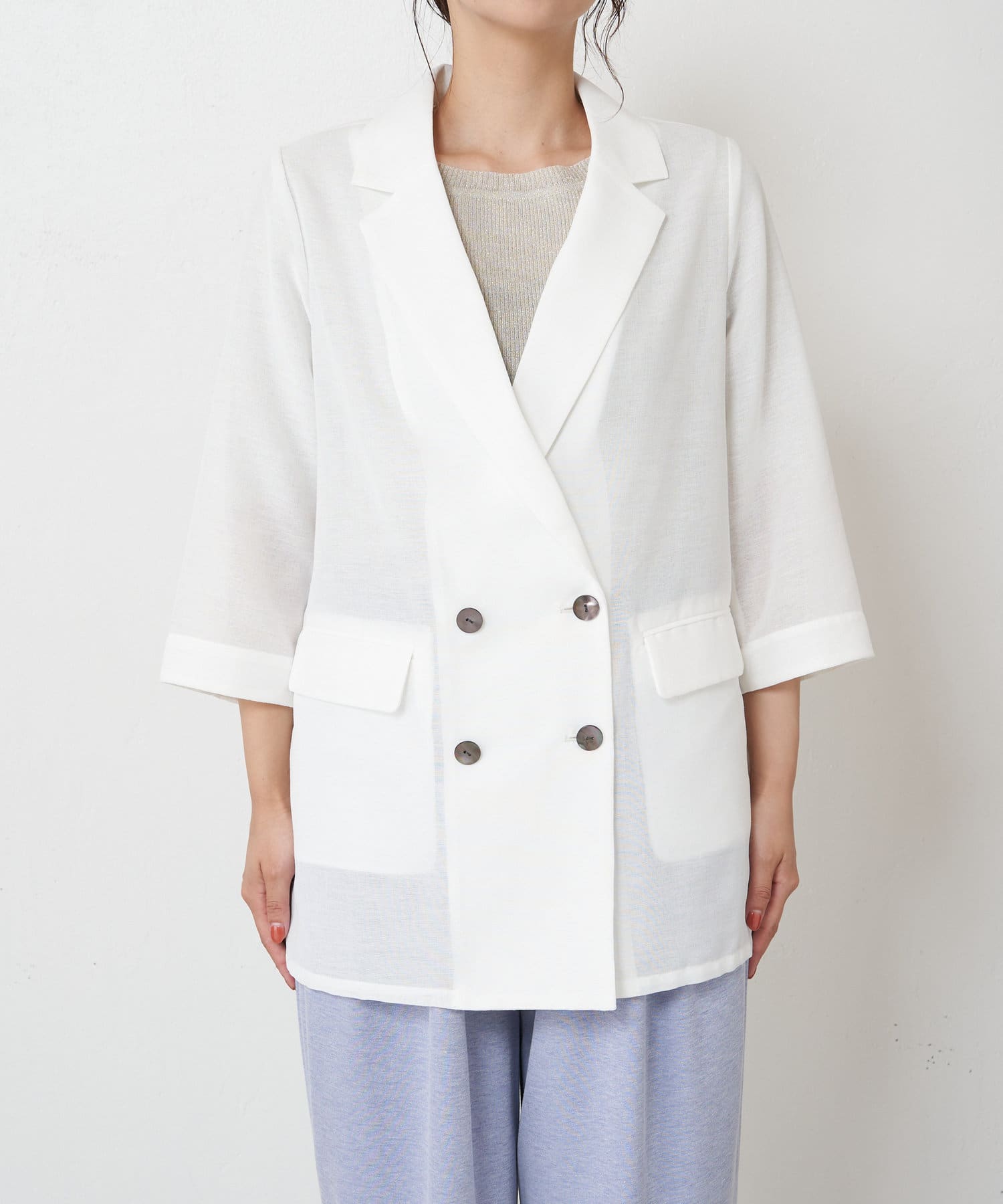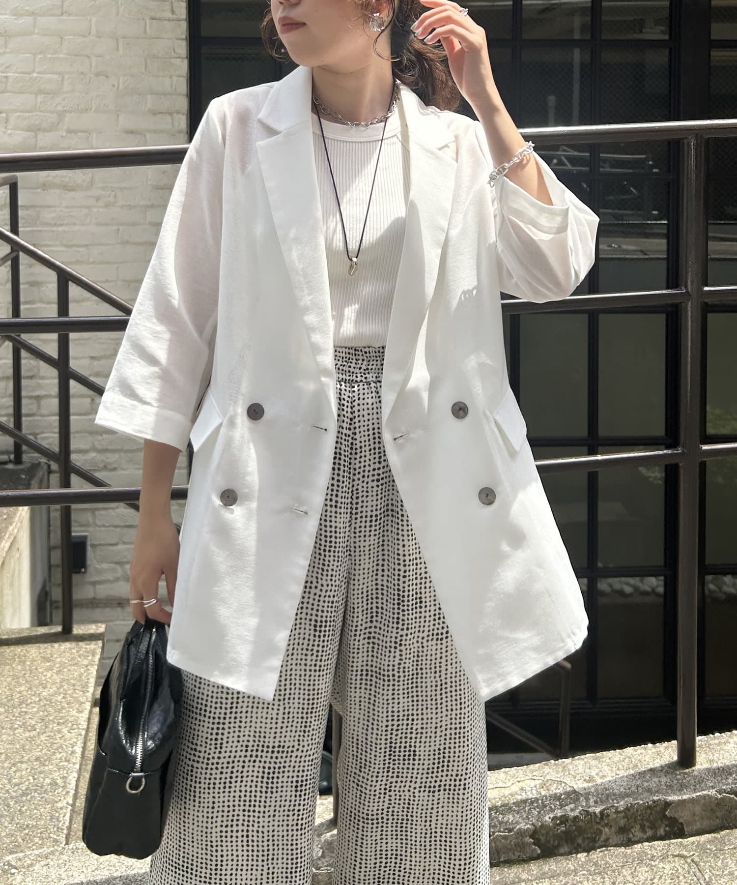 ・軽やかな素材が季節感を演出するオトナなダブルジャケット。