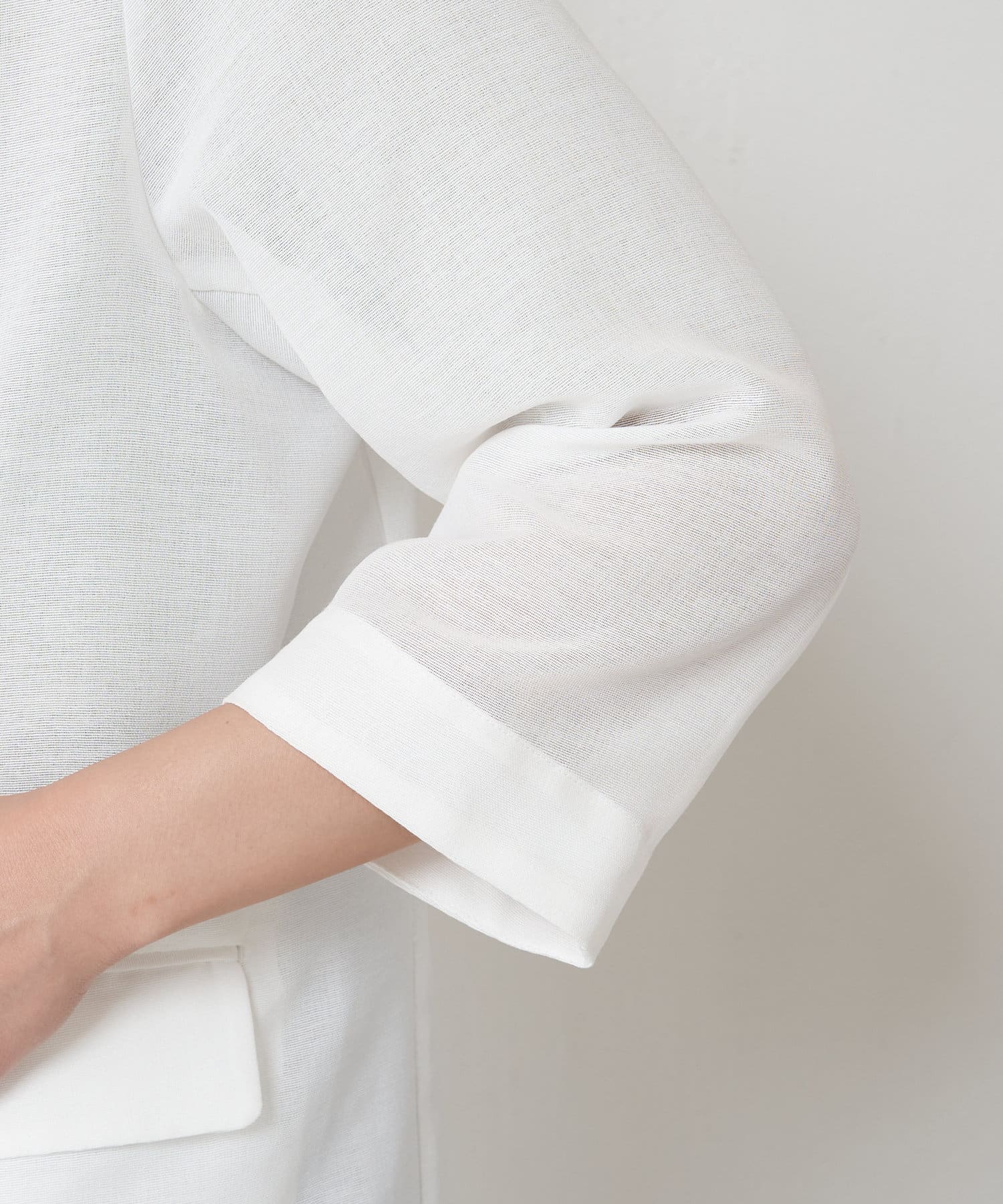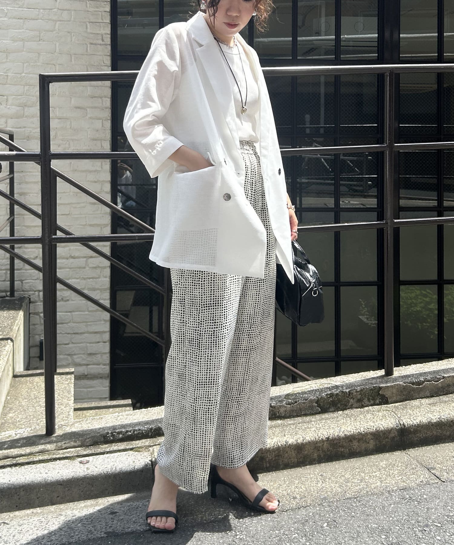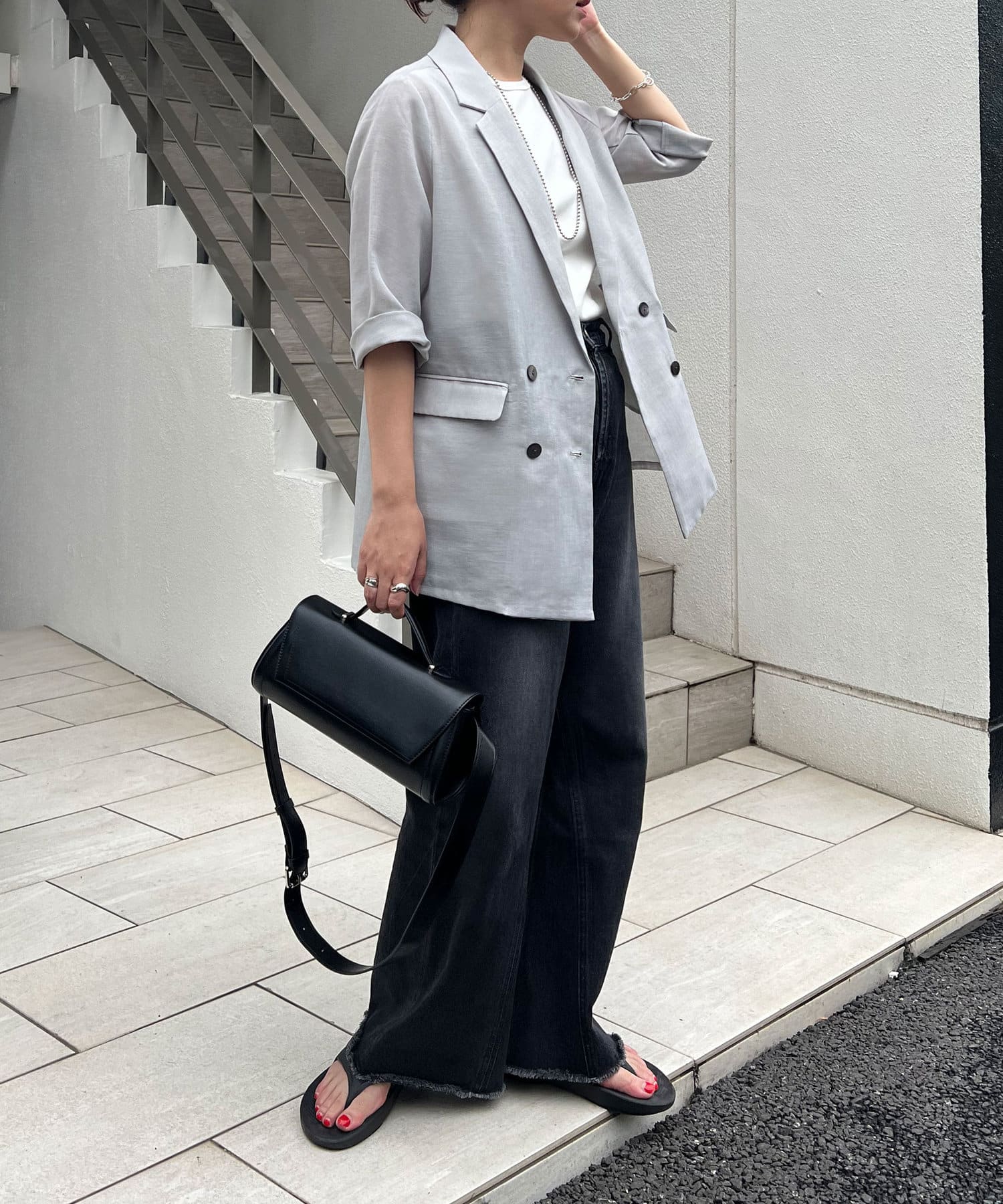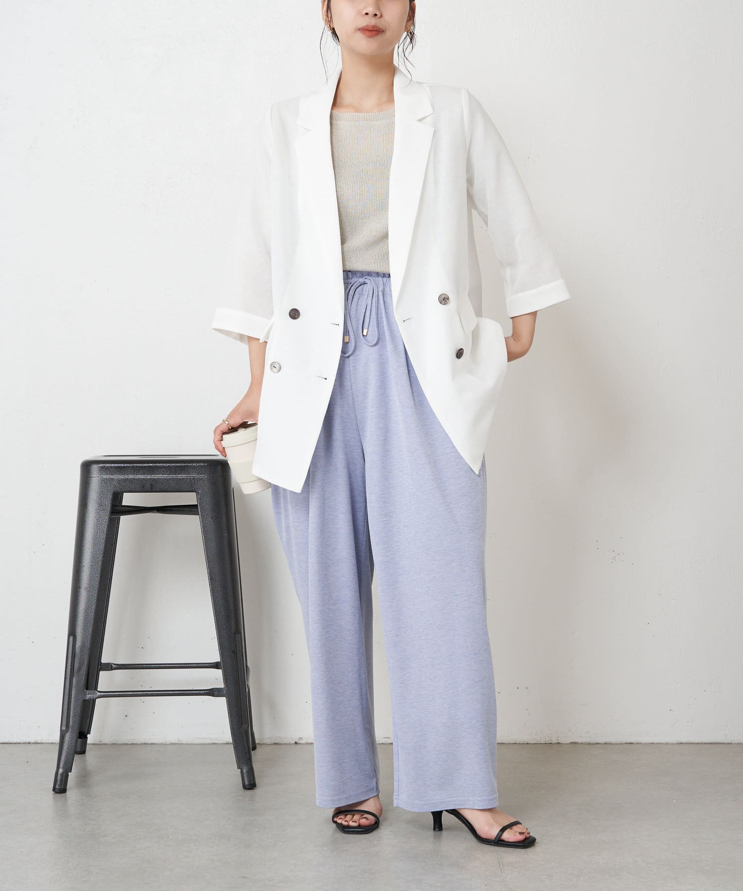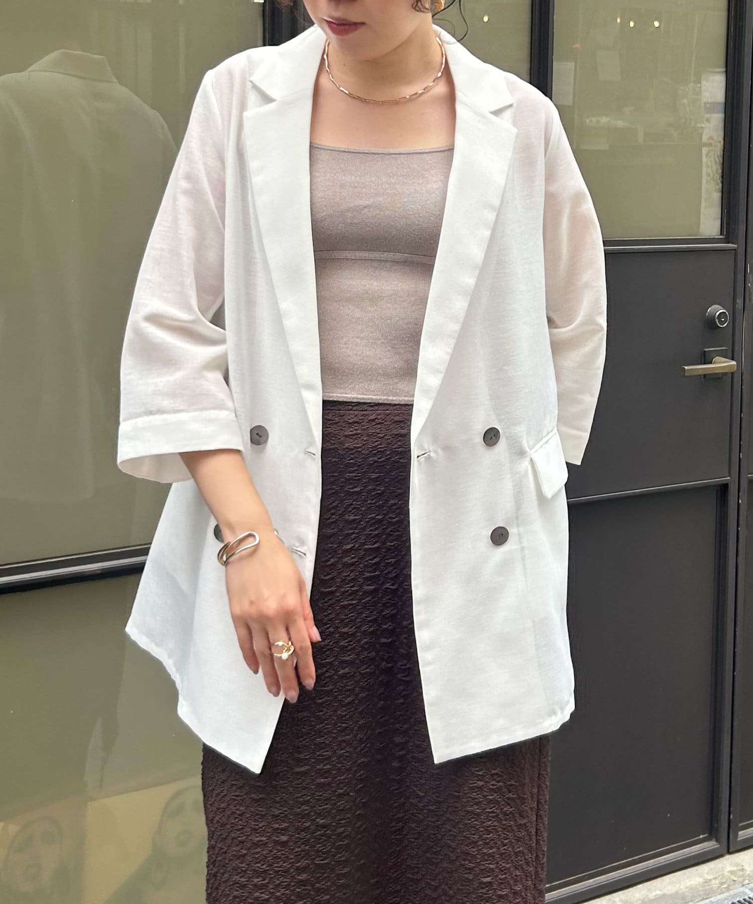 ・軽やかな素材が季節感を演出するオトナなダブルジャケット。