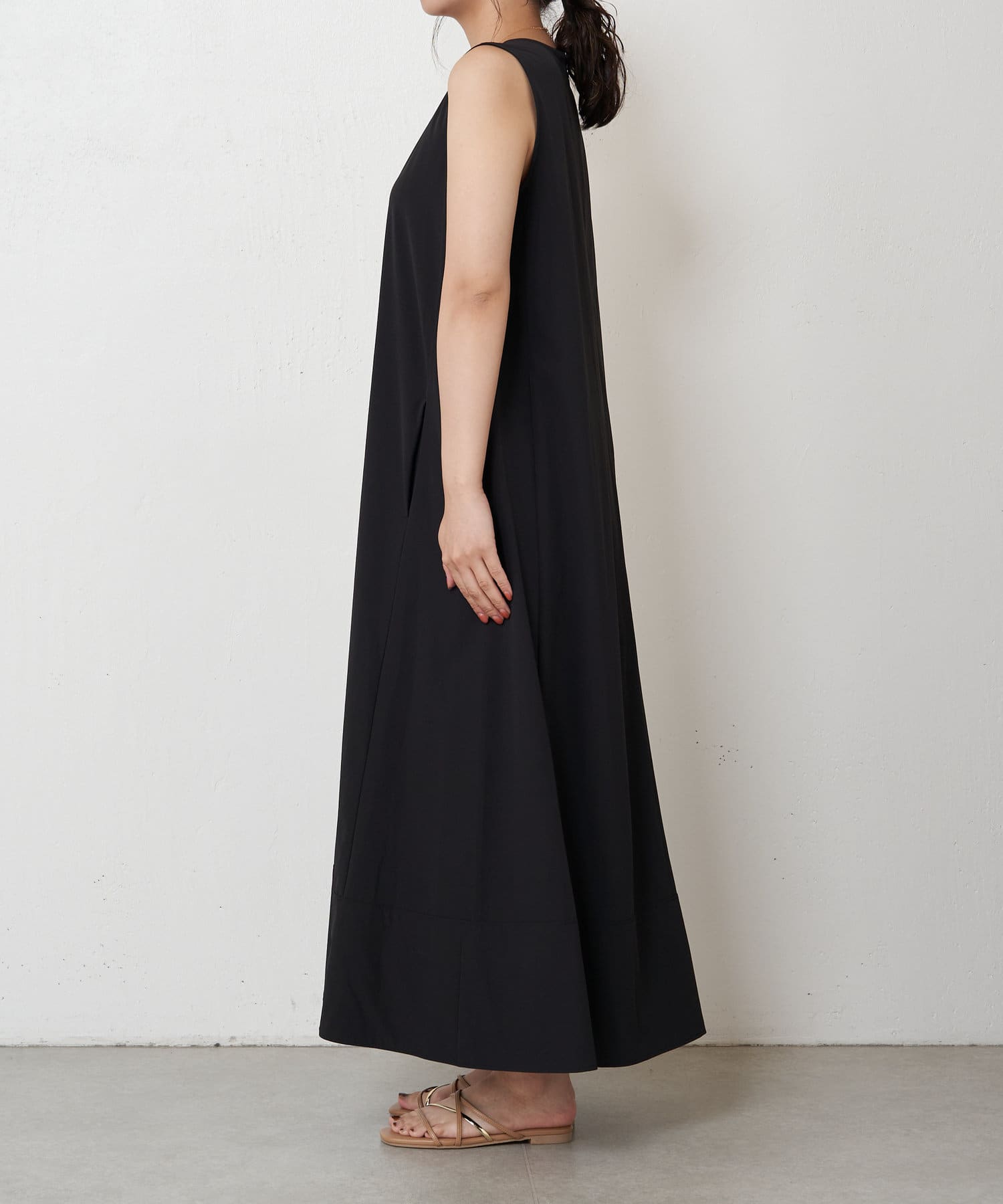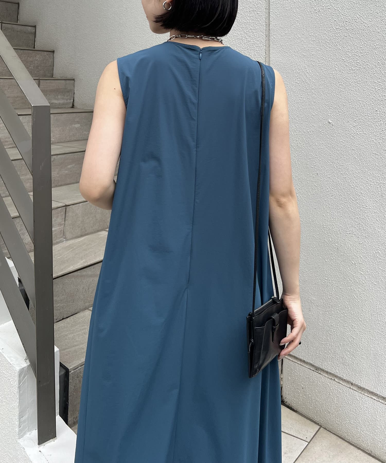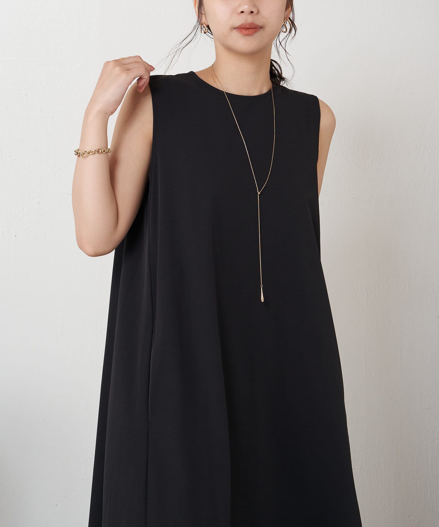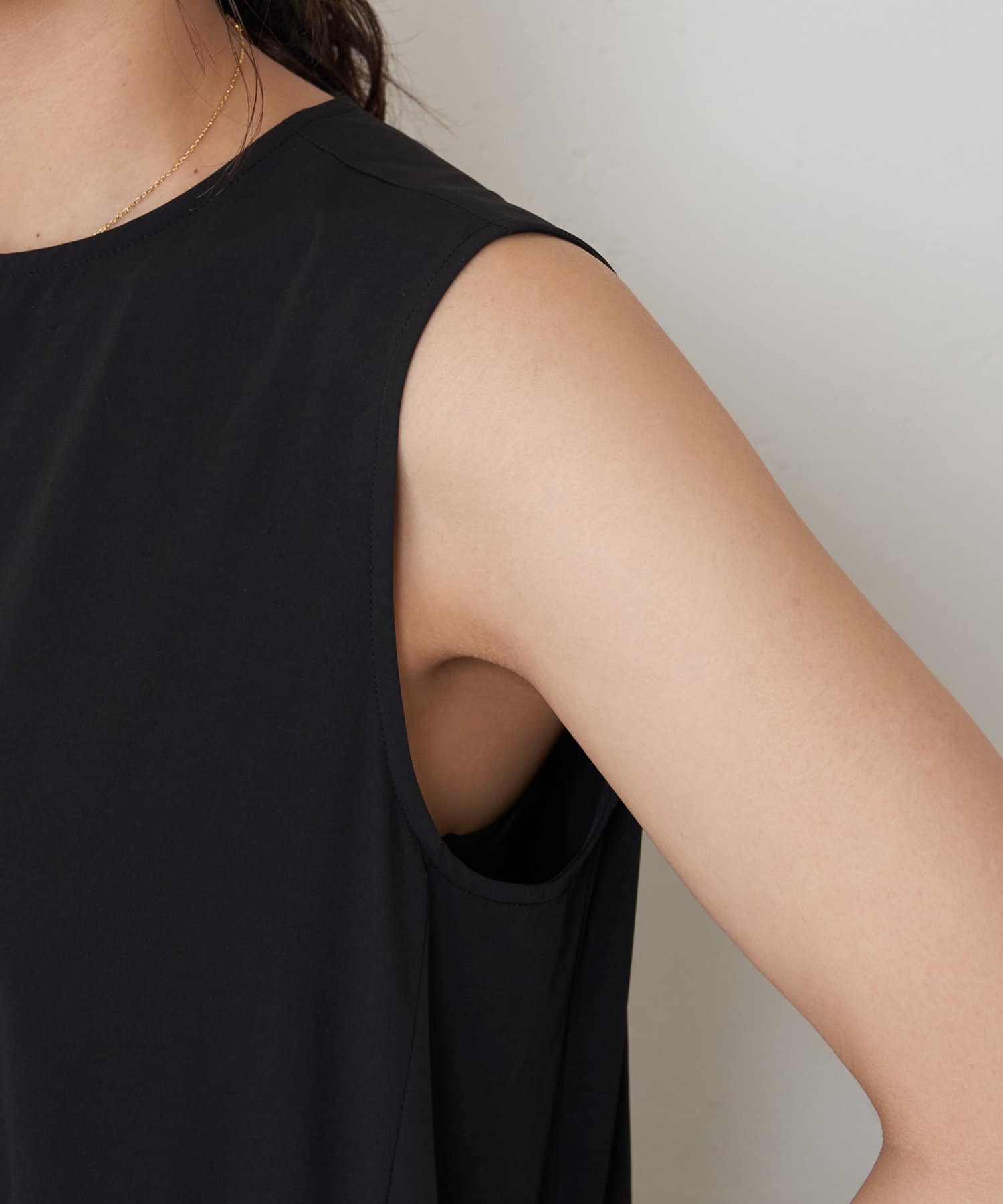 ・カーディガンやライトアウターも羽織りやすいすっきりノースリーブデザイン。