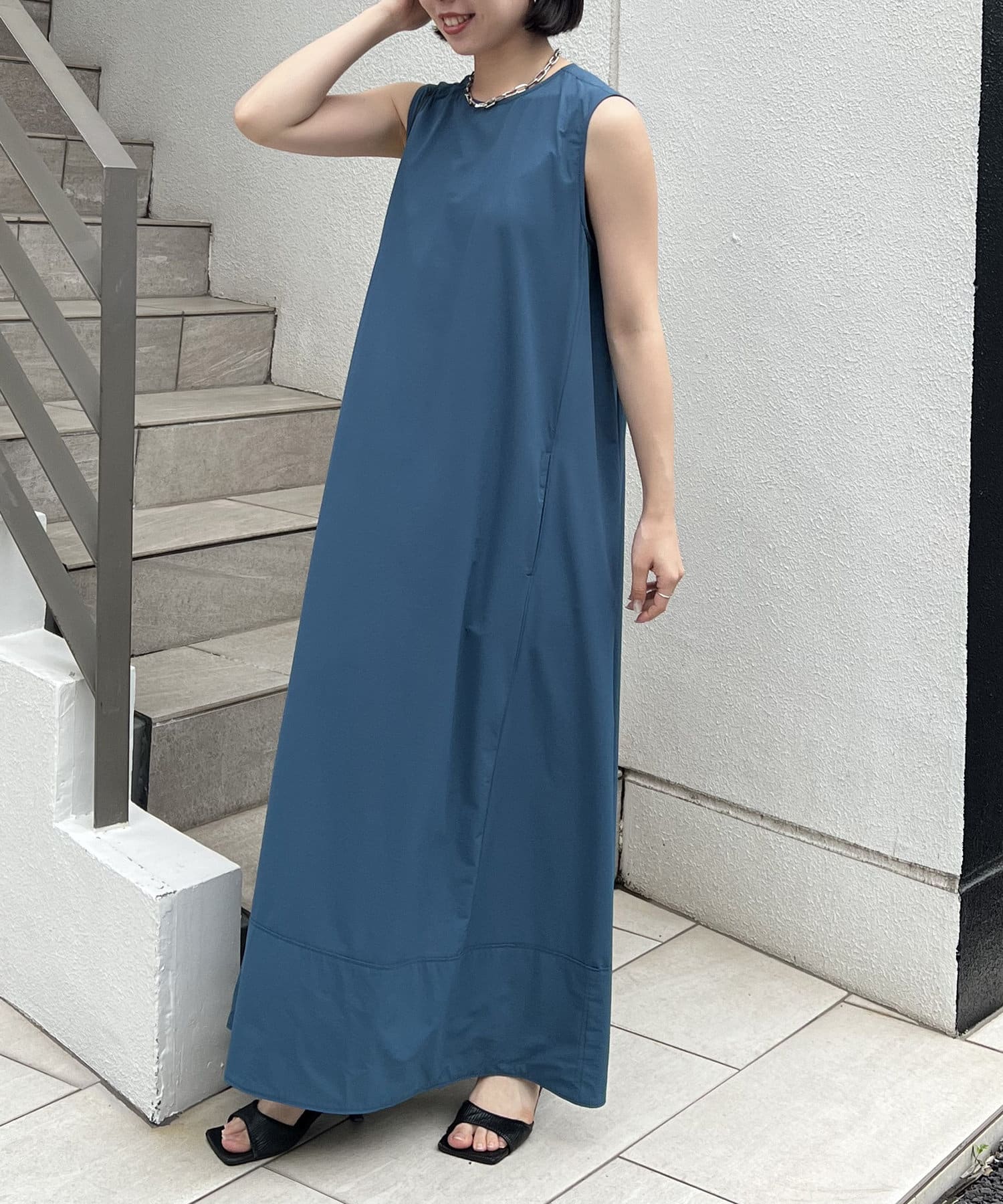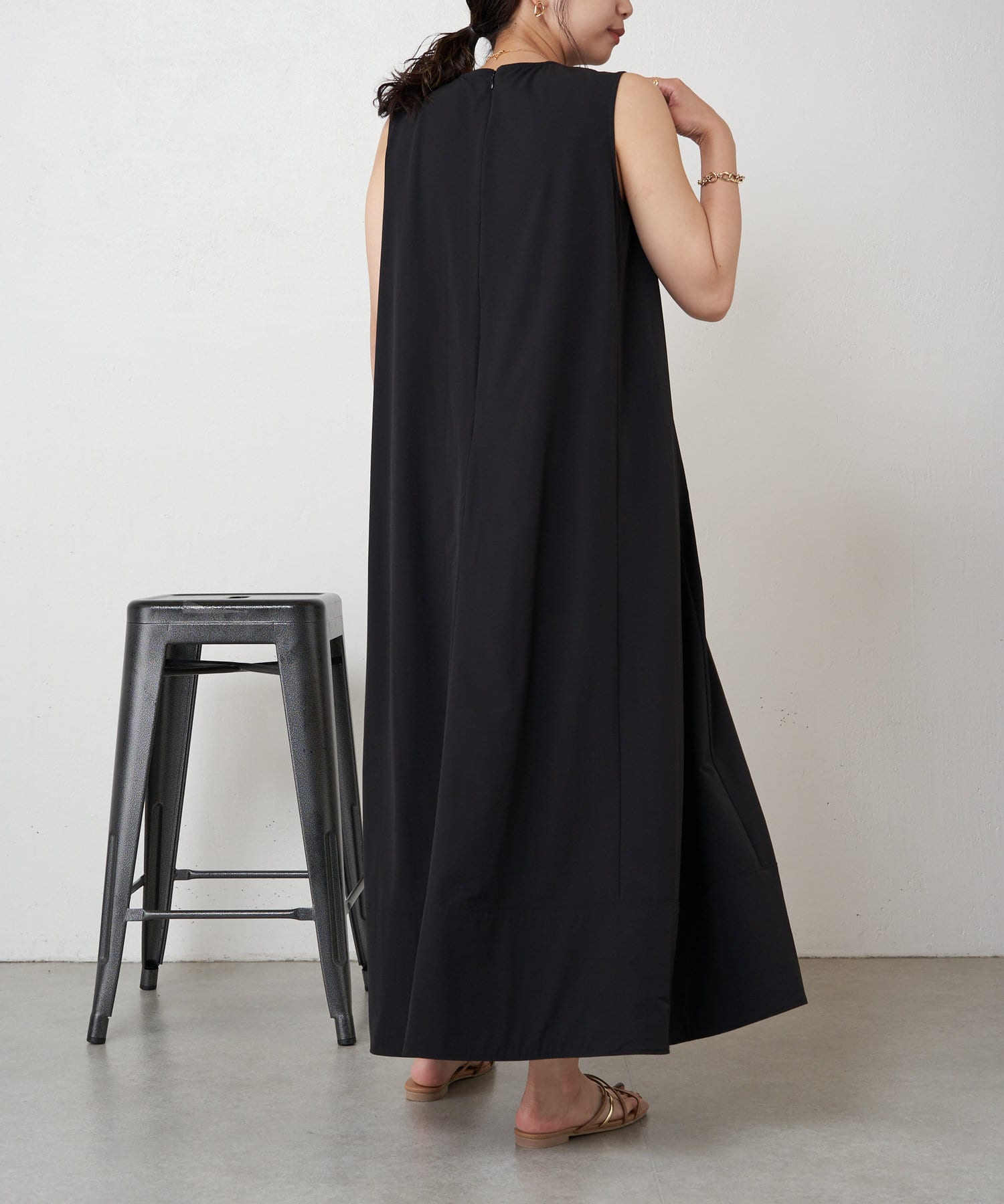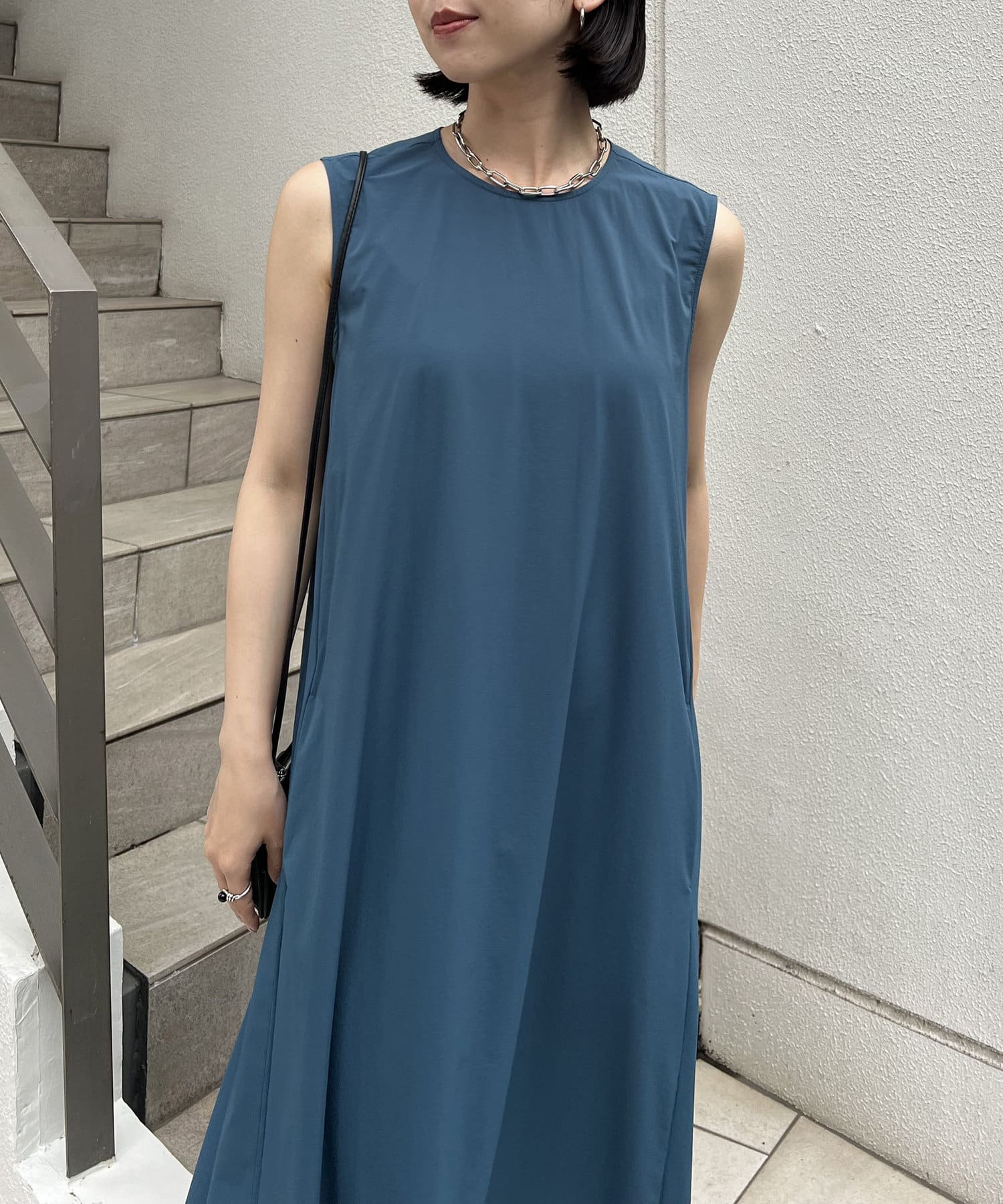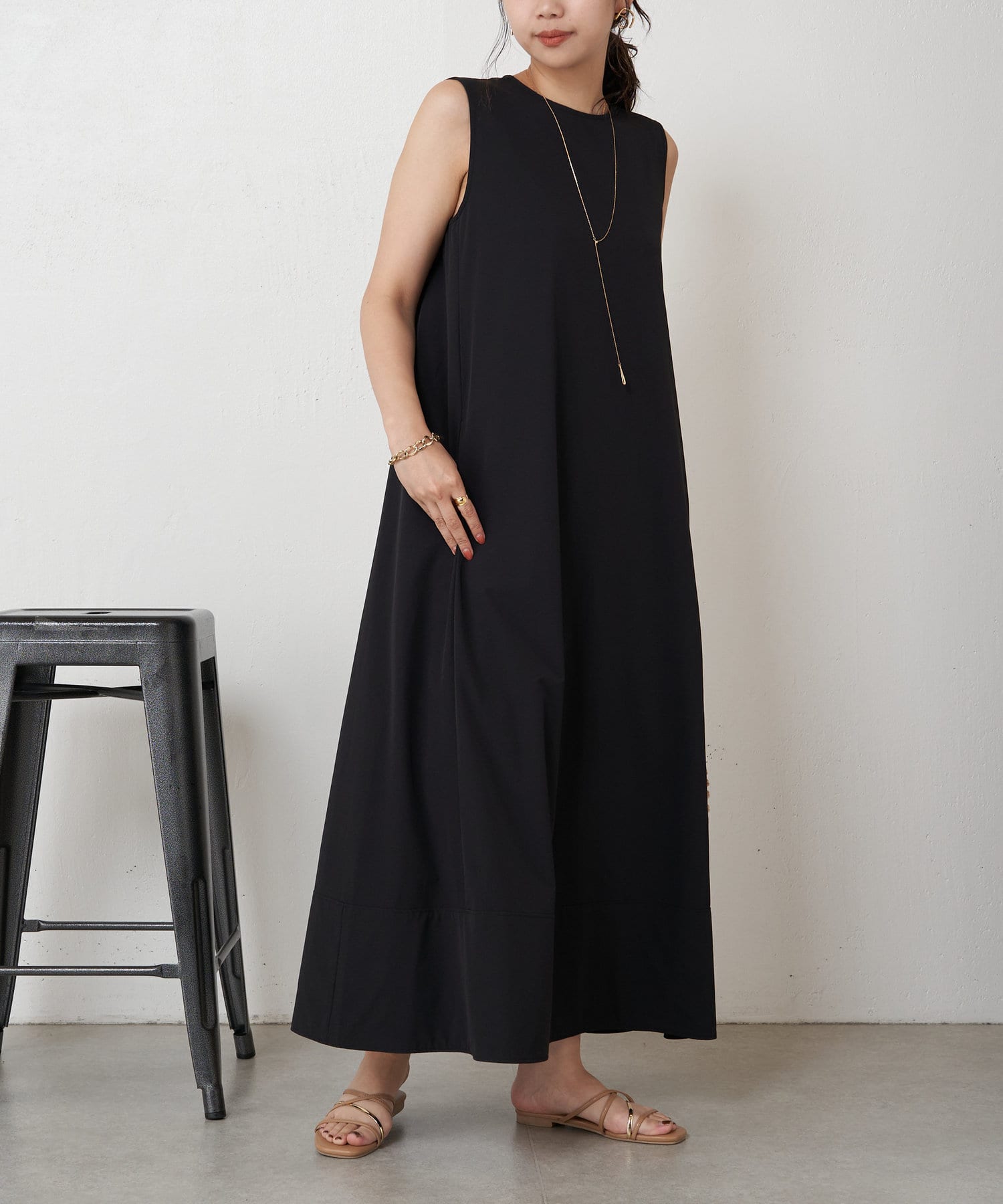 ・カーディガンやライトアウターも羽織りやすいすっきりノースリーブデザイン。