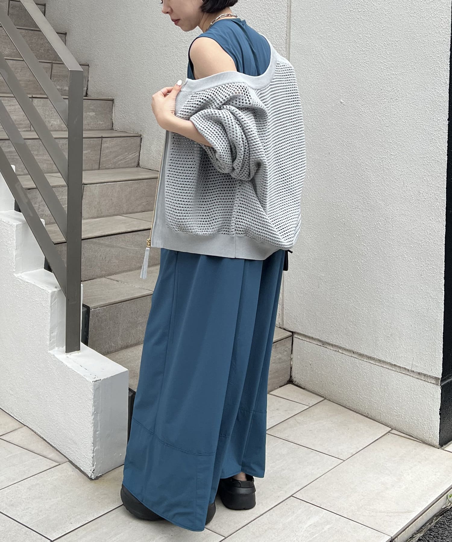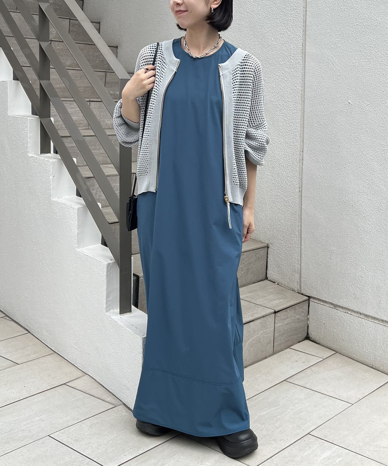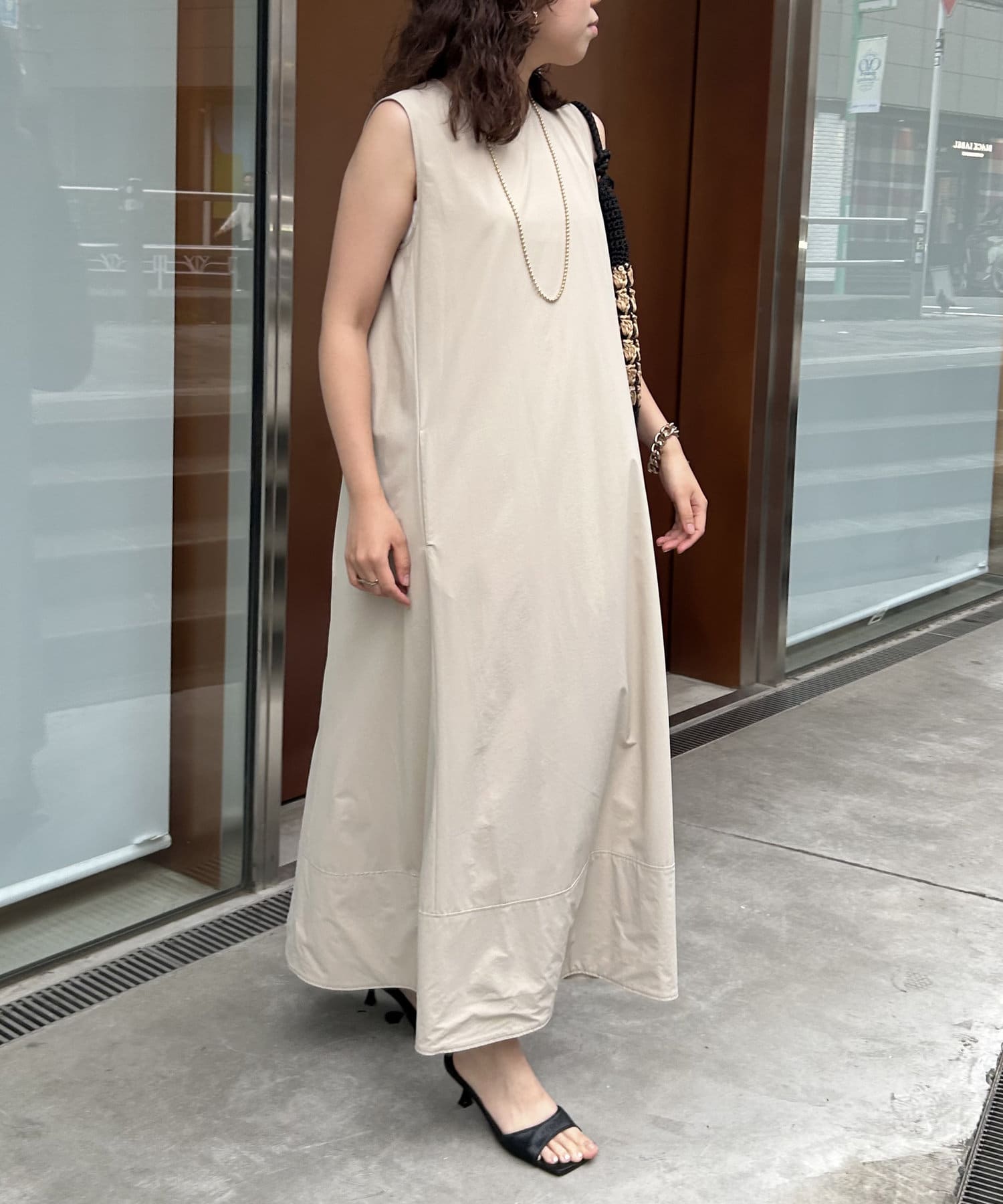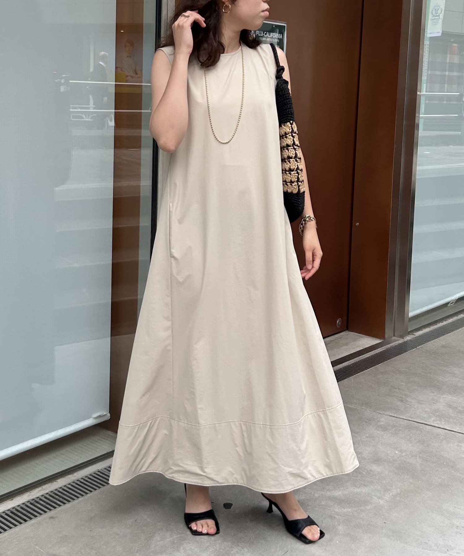 ・カーディガンやライトアウターも羽織りやすいすっきりノースリーブデザイン。
