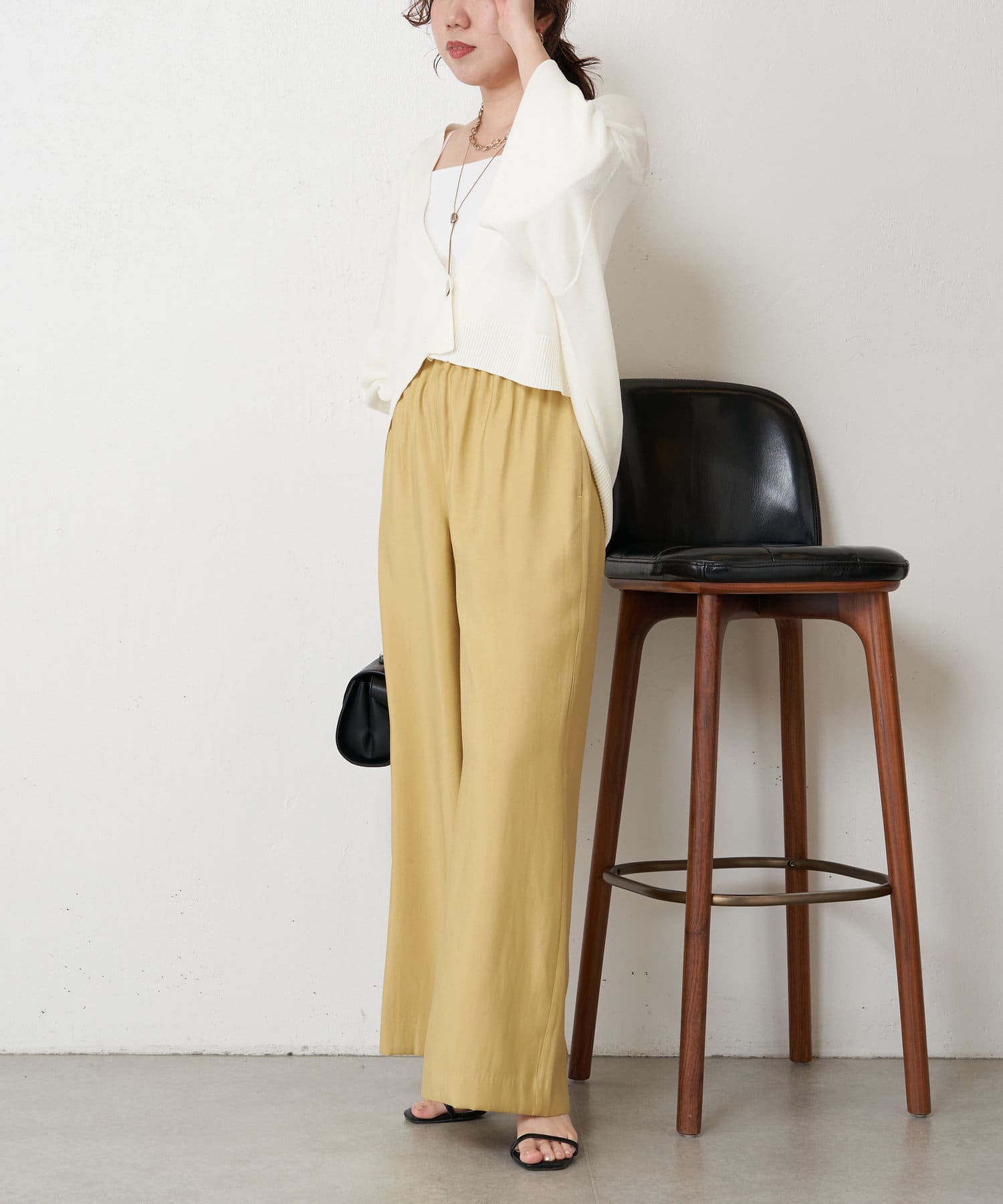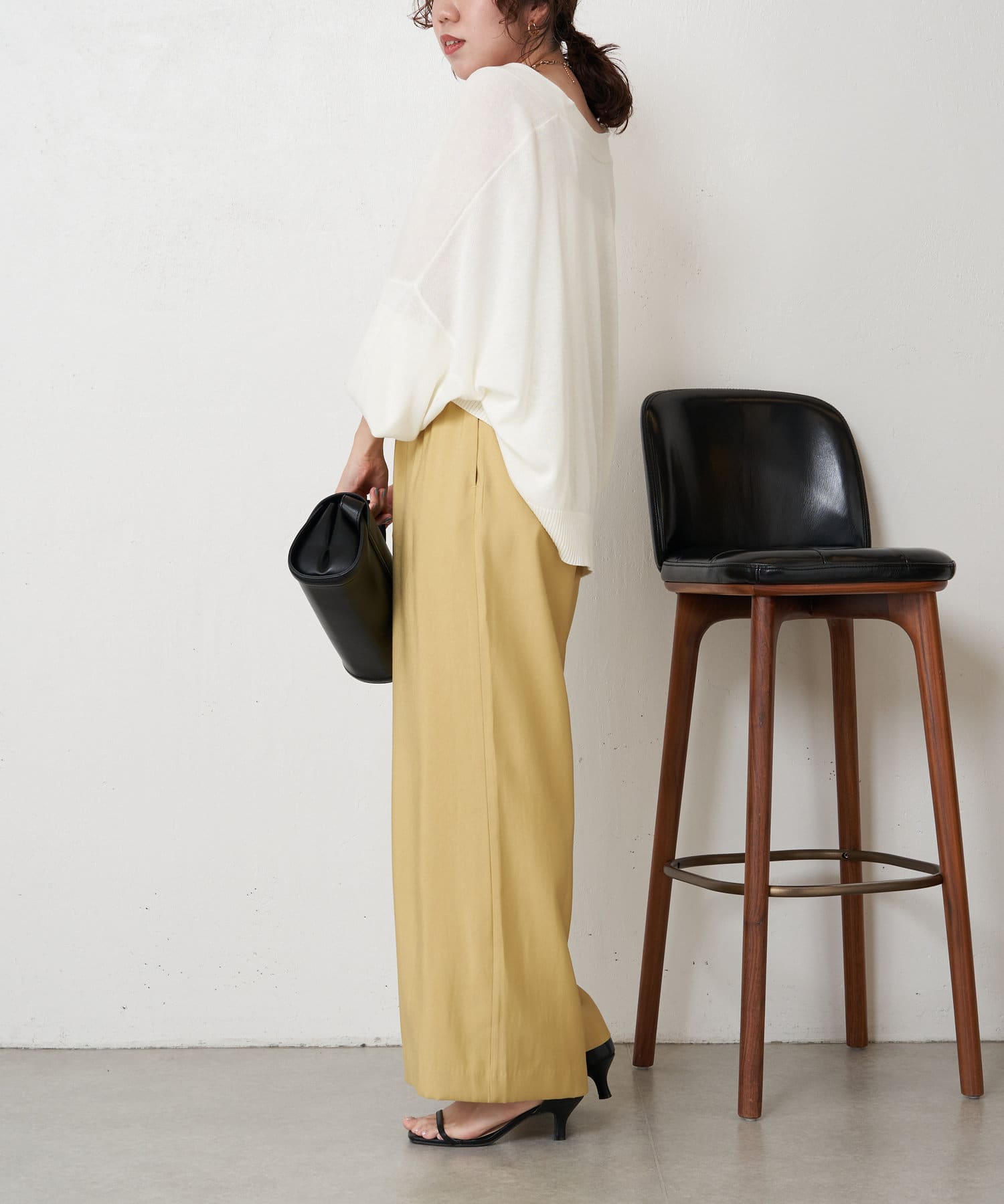 ・広がり過ぎない絶妙なワイドシルエットで、落ち感があるので履くだけでこなれ感が出せるパンツ。