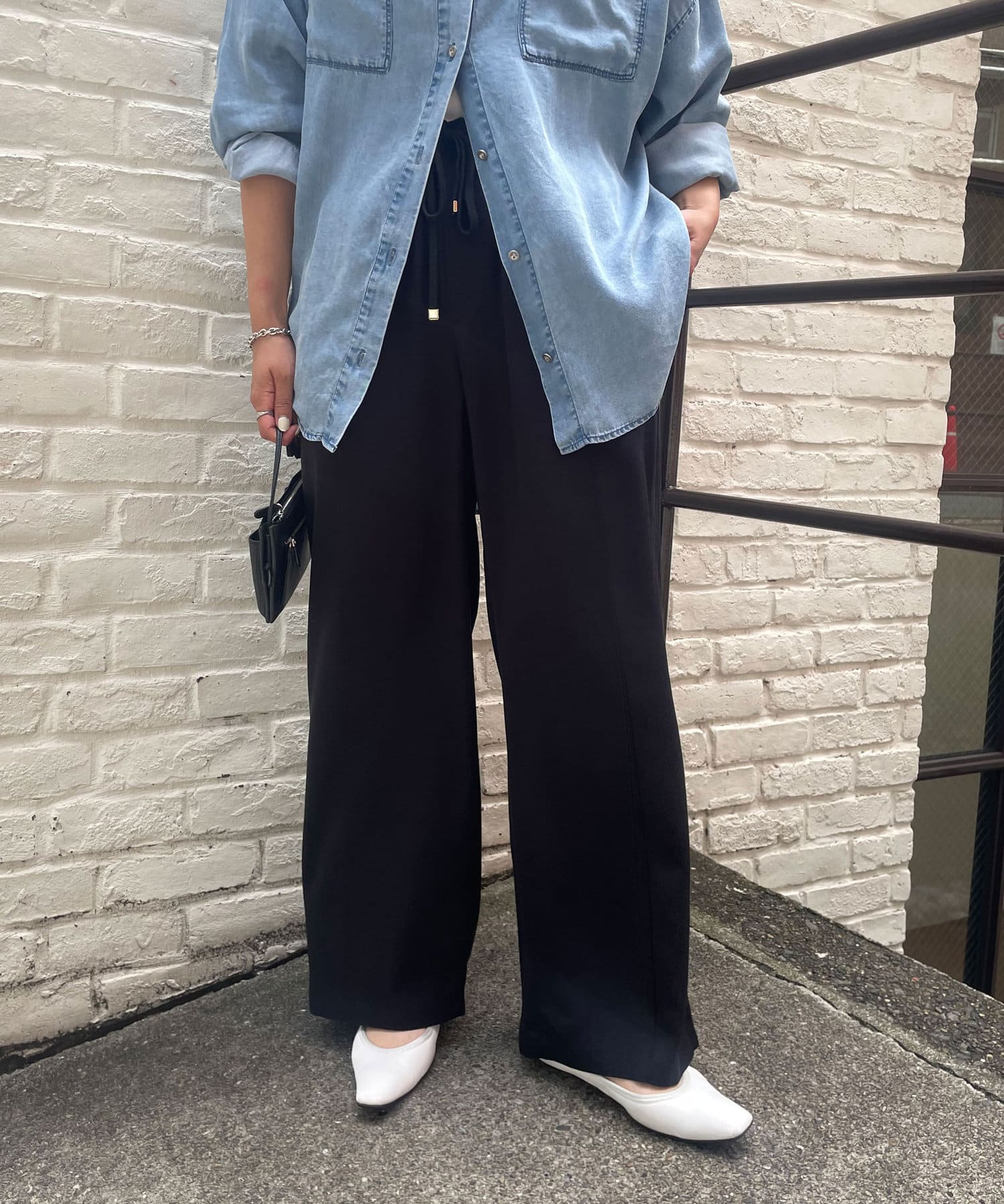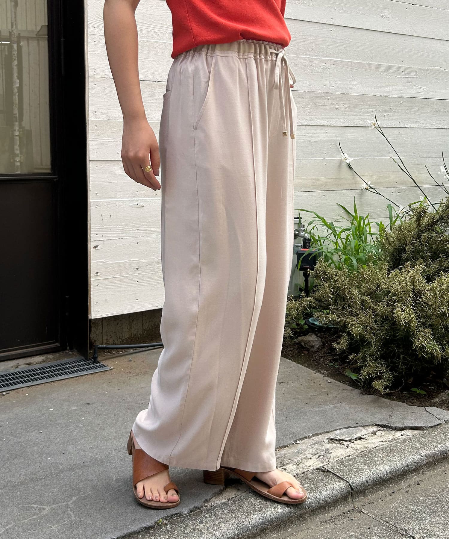 ・楽ちんな履き心地ながら、フロントに入ったピンタックがキレイなシルエットに◎
