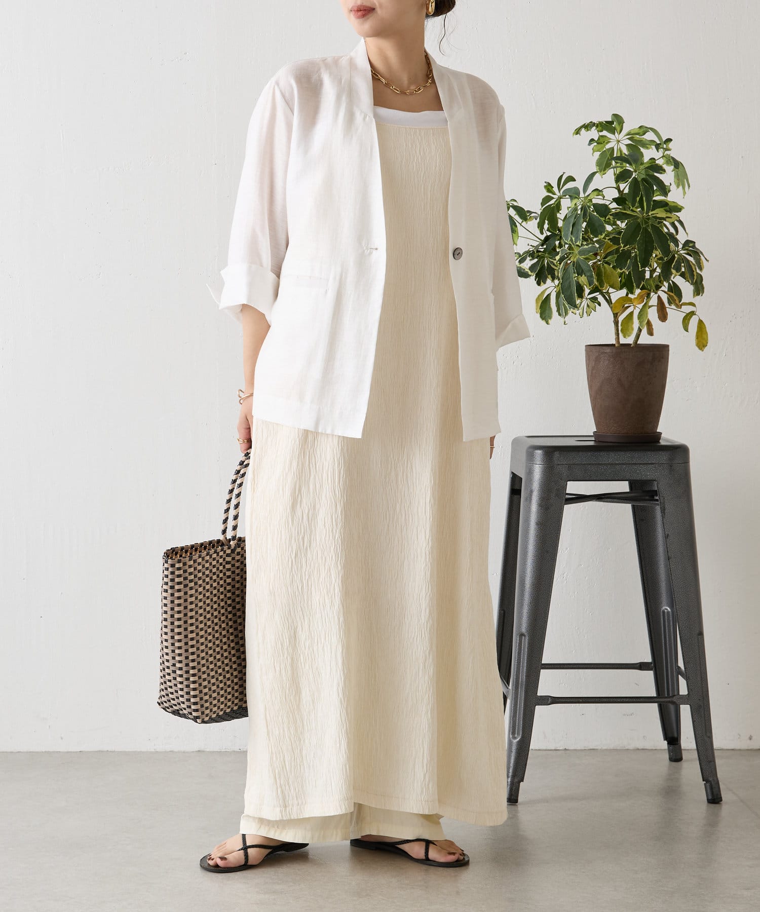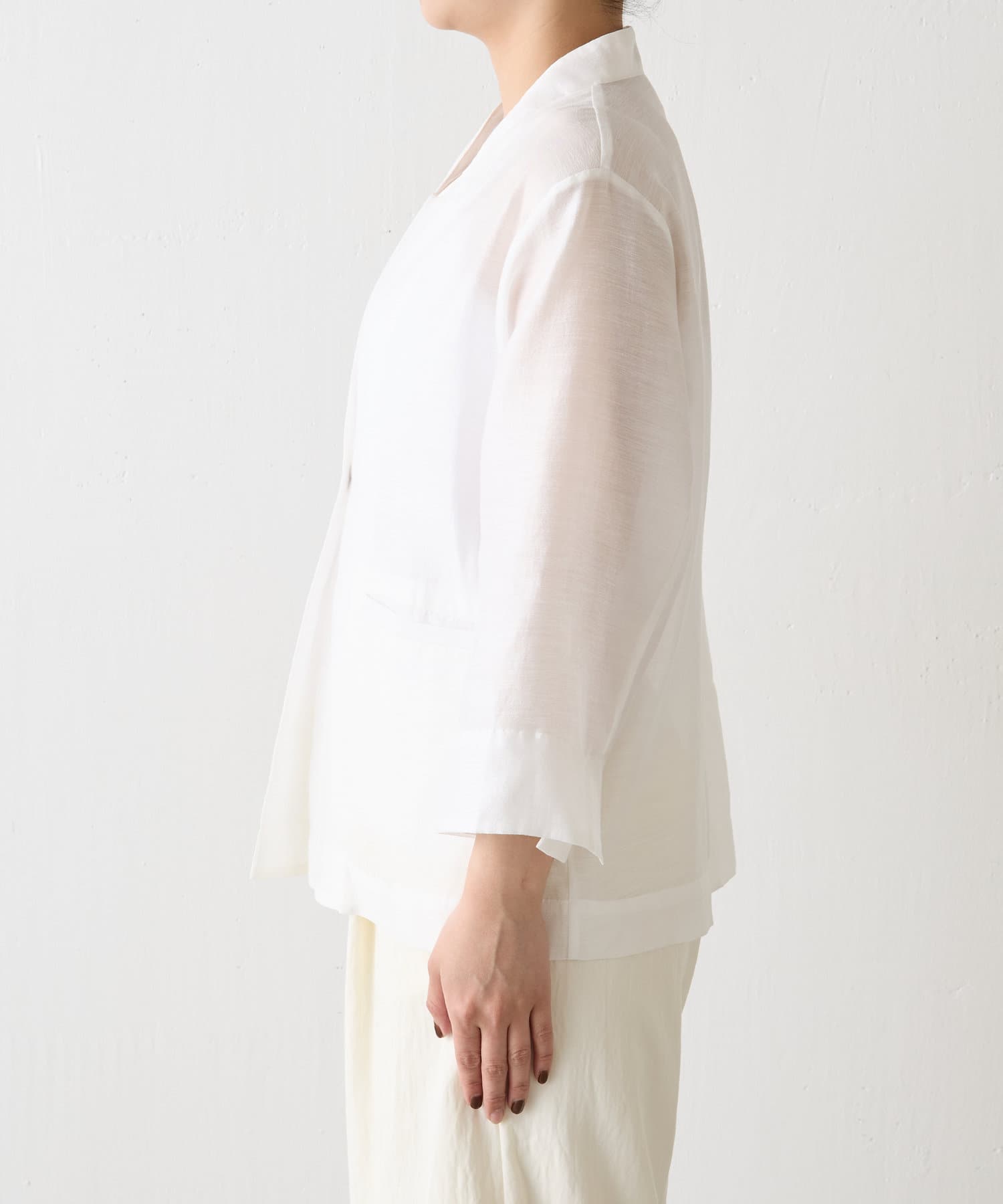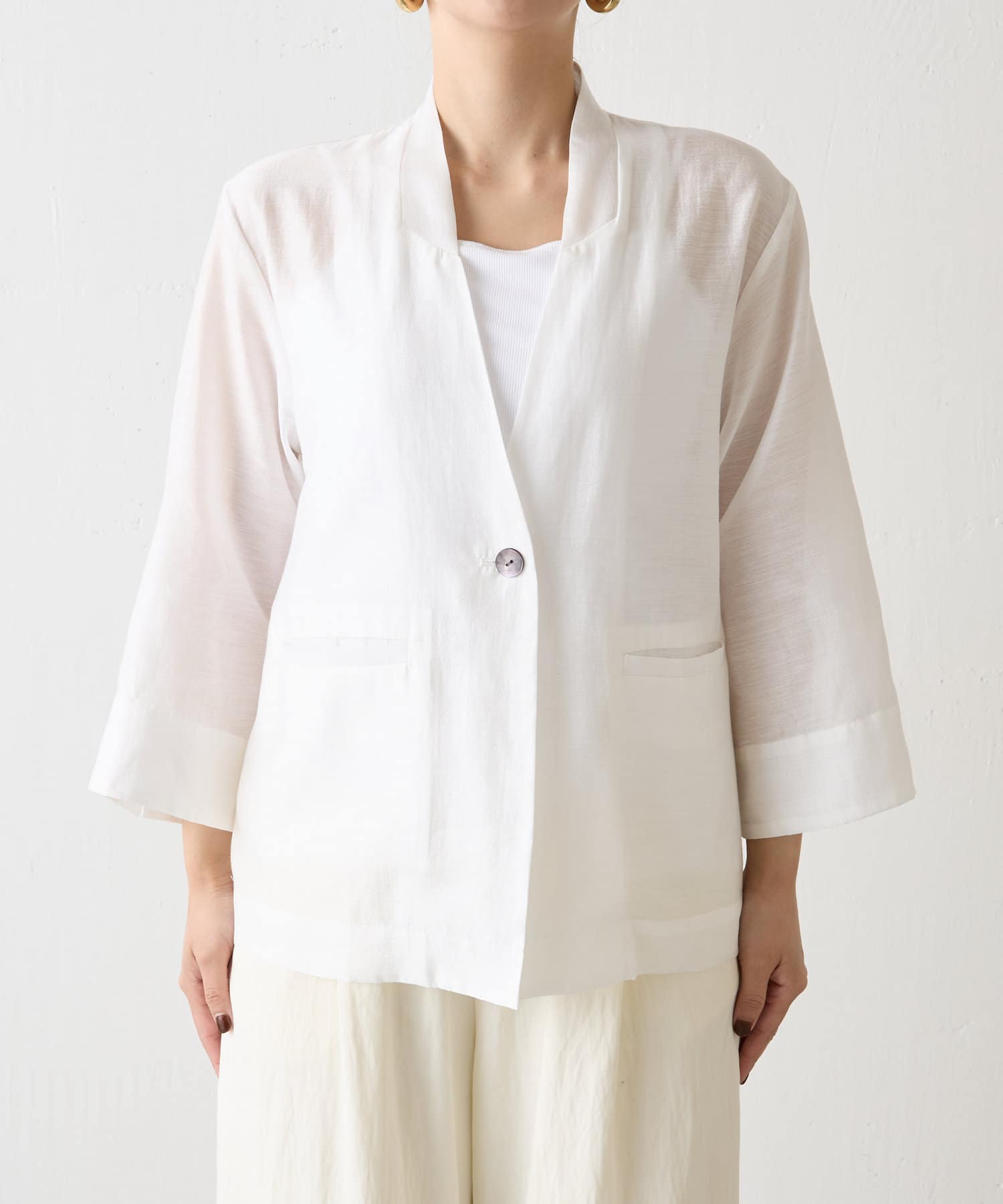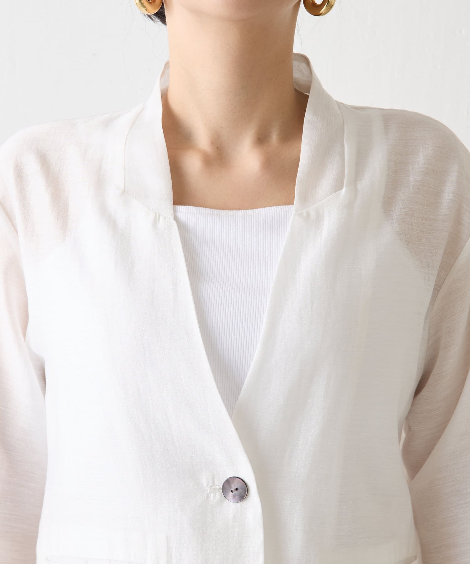 ・シアー素材の涼し気な雰囲気が大人っぽい、上品な透け感と着心地の良さが魅力のシアージャケット