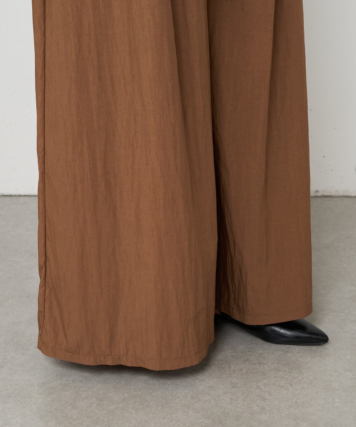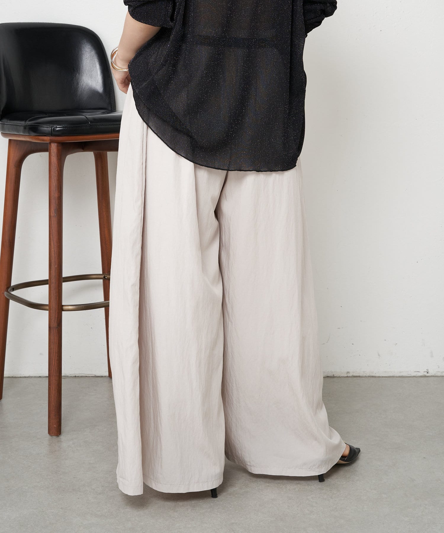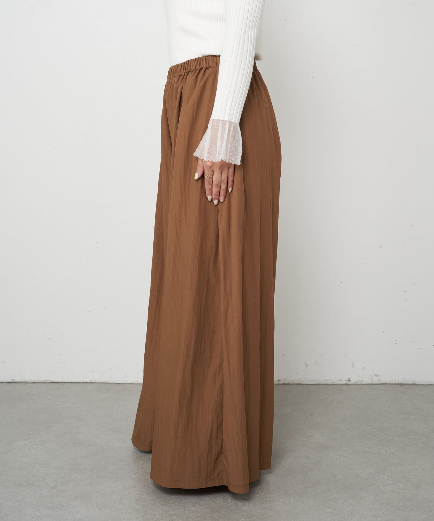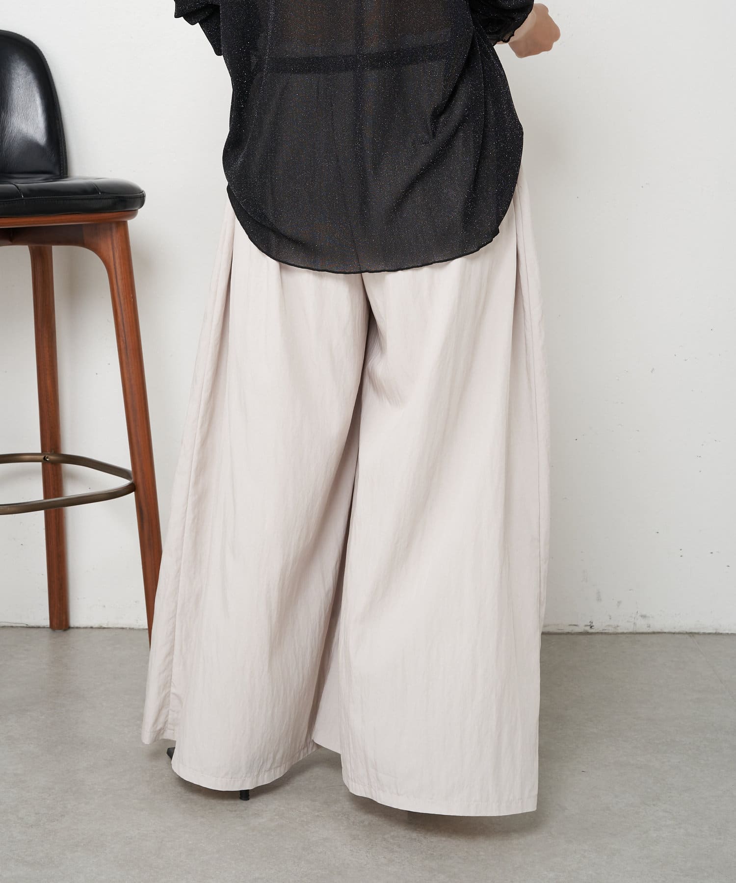 ・シルエットはスカートらしく、艶感がありエレガンスさがありながらも、パンツなので動きやすい。