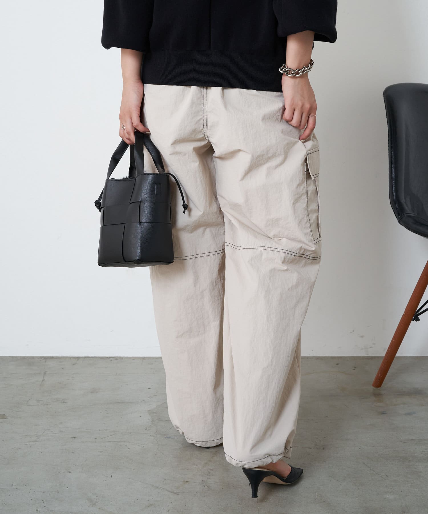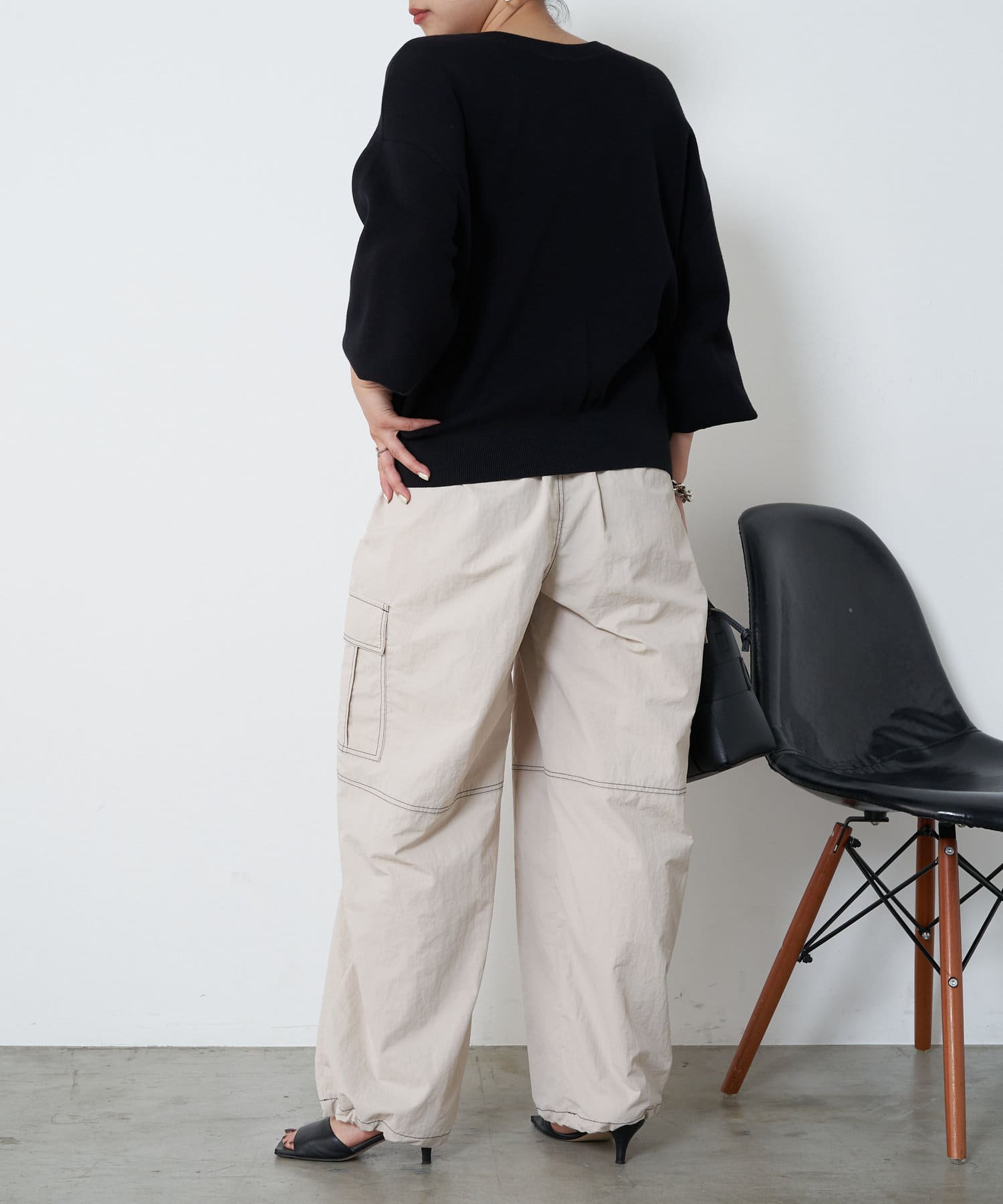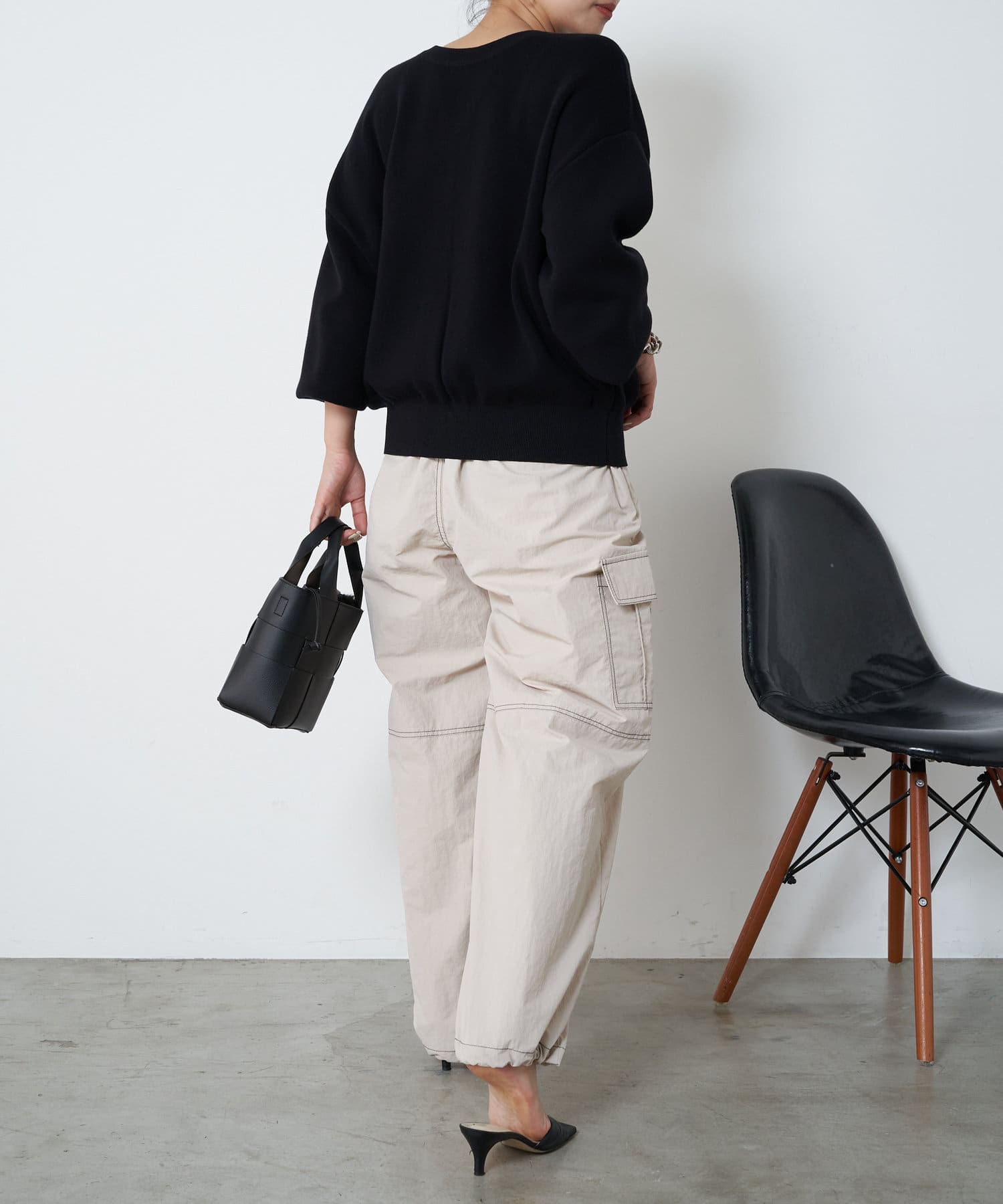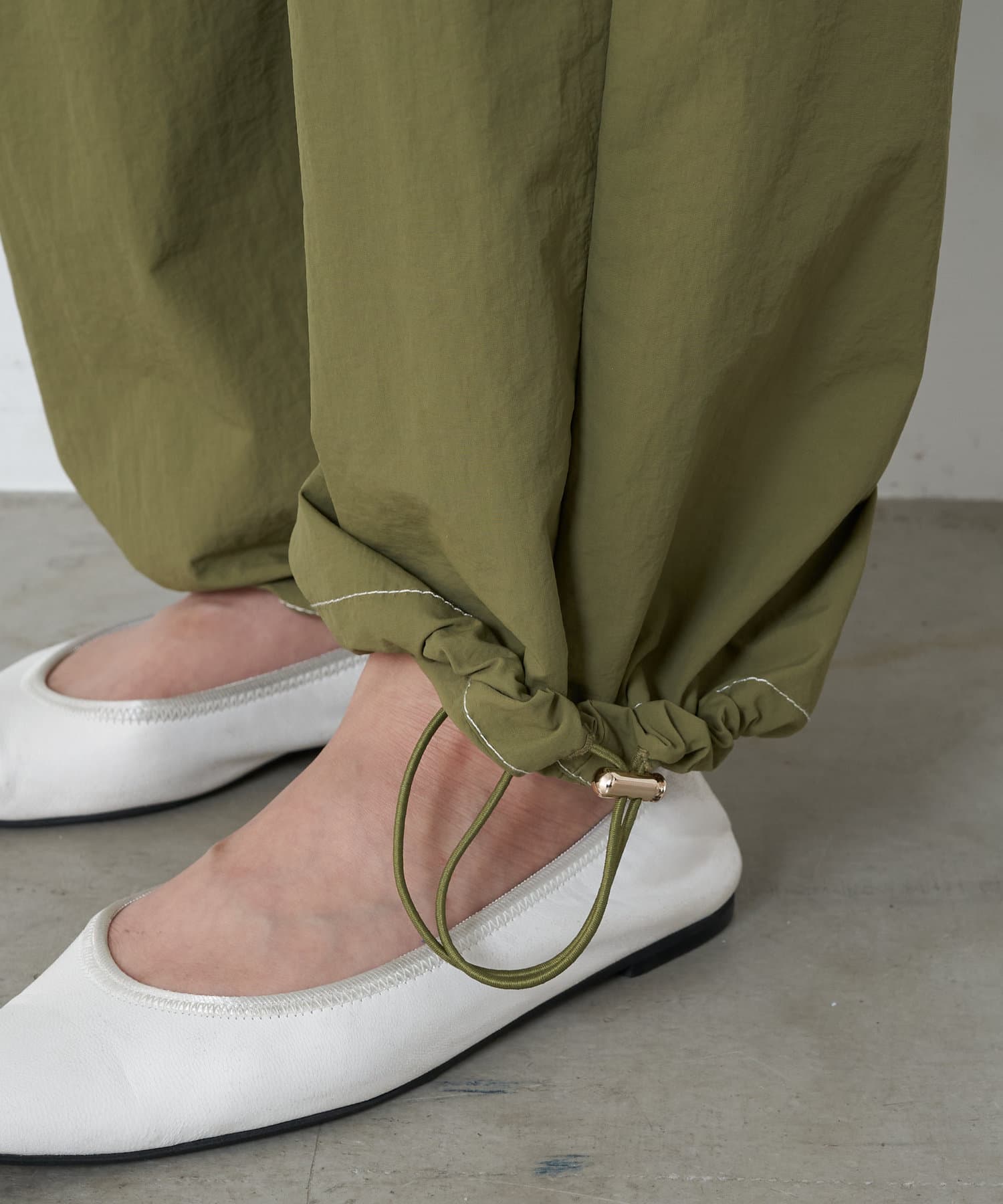 ・ウエストは後ろゴムデザイン。裾のドローコードでお好みでシルエットを変えていただけます。
