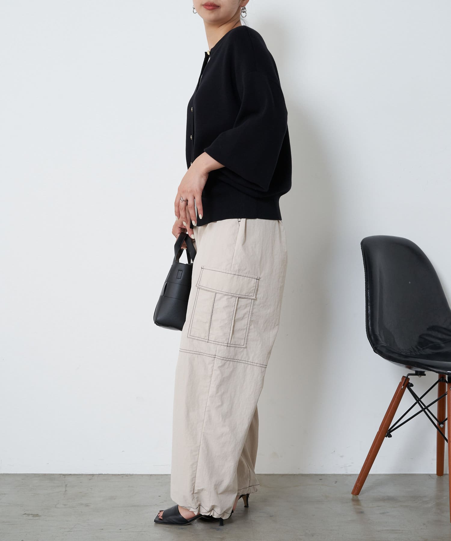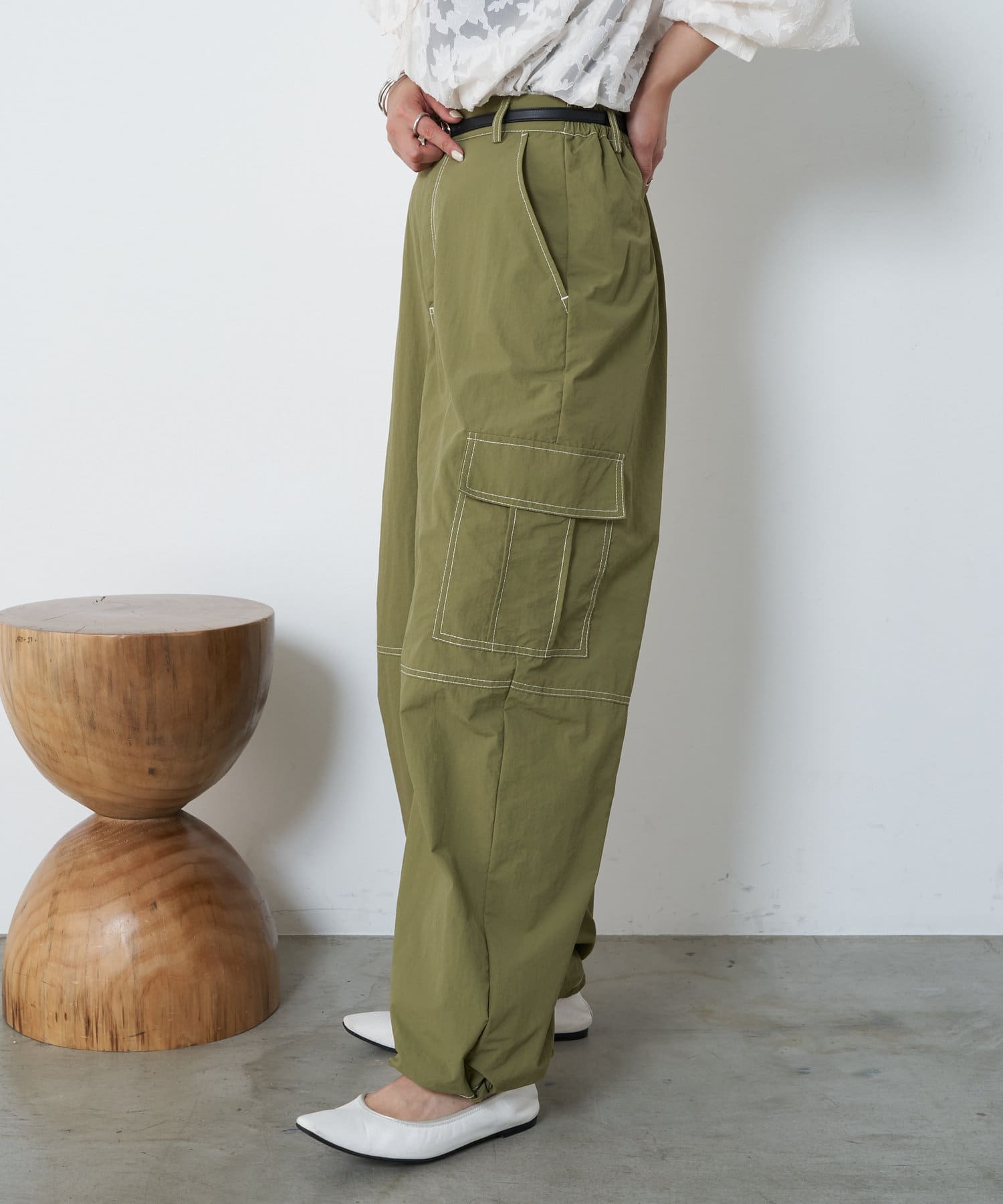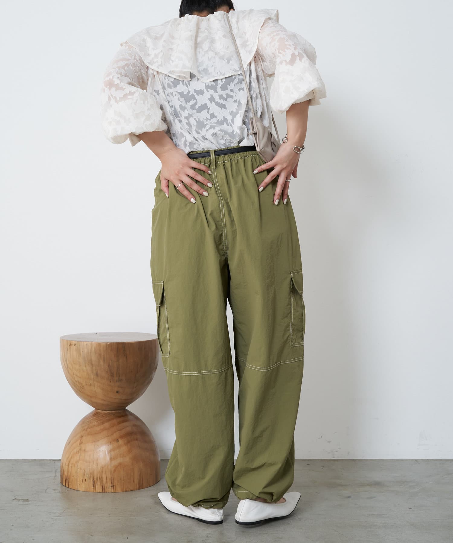 ・ウエストは後ろゴムデザイン。裾のドローコードでお好みでシルエットを変えていただけます。