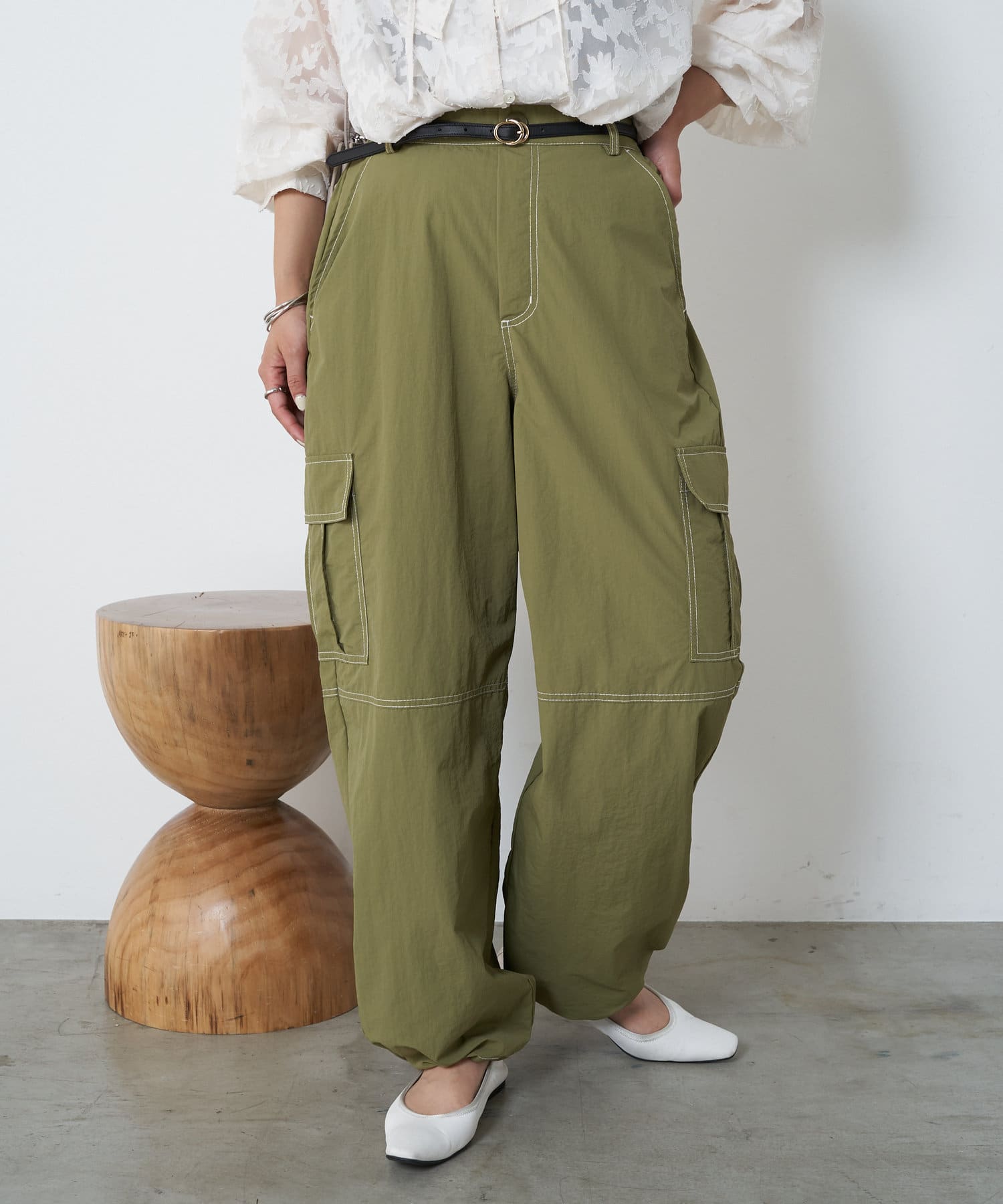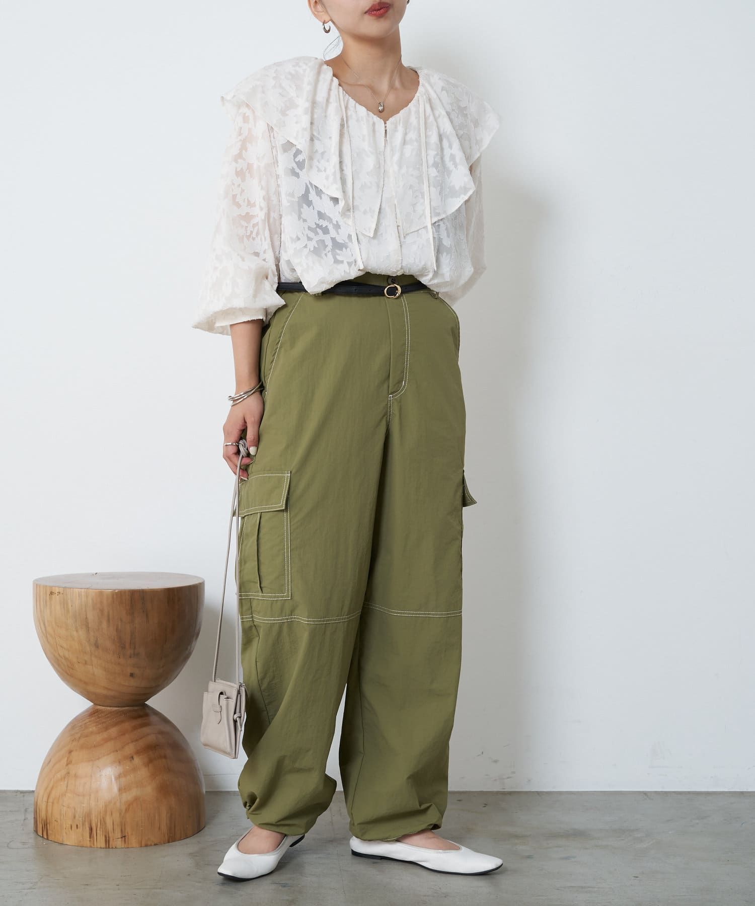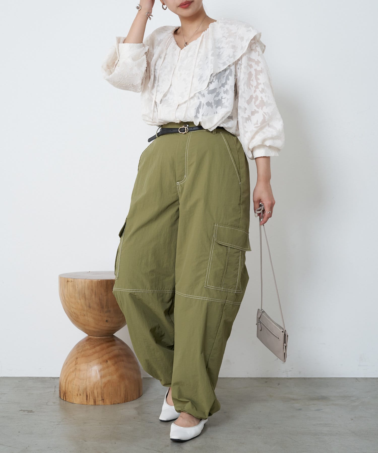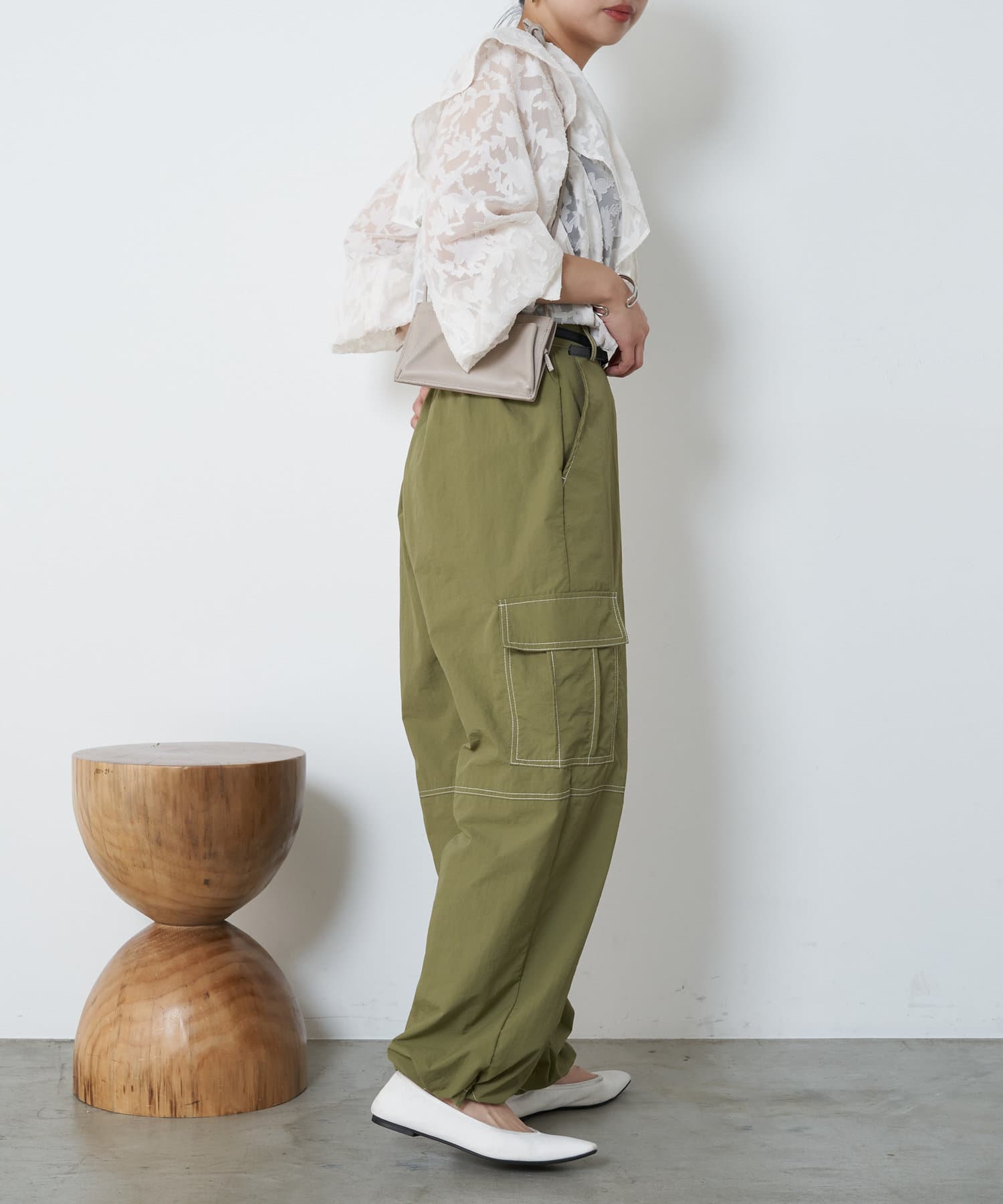 ・ウエストは後ろゴムデザイン。裾のドローコードでお好みでシルエットを変えていただけます。