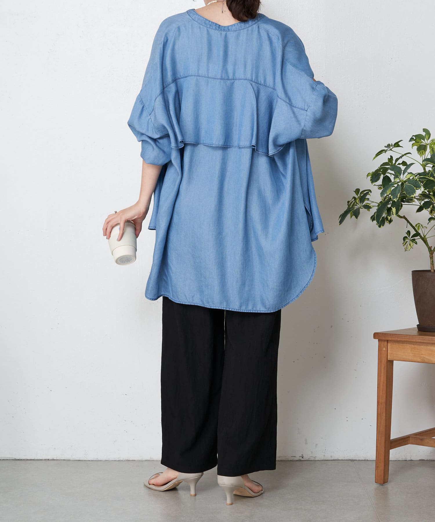 テンセルバックラッフルシャツ