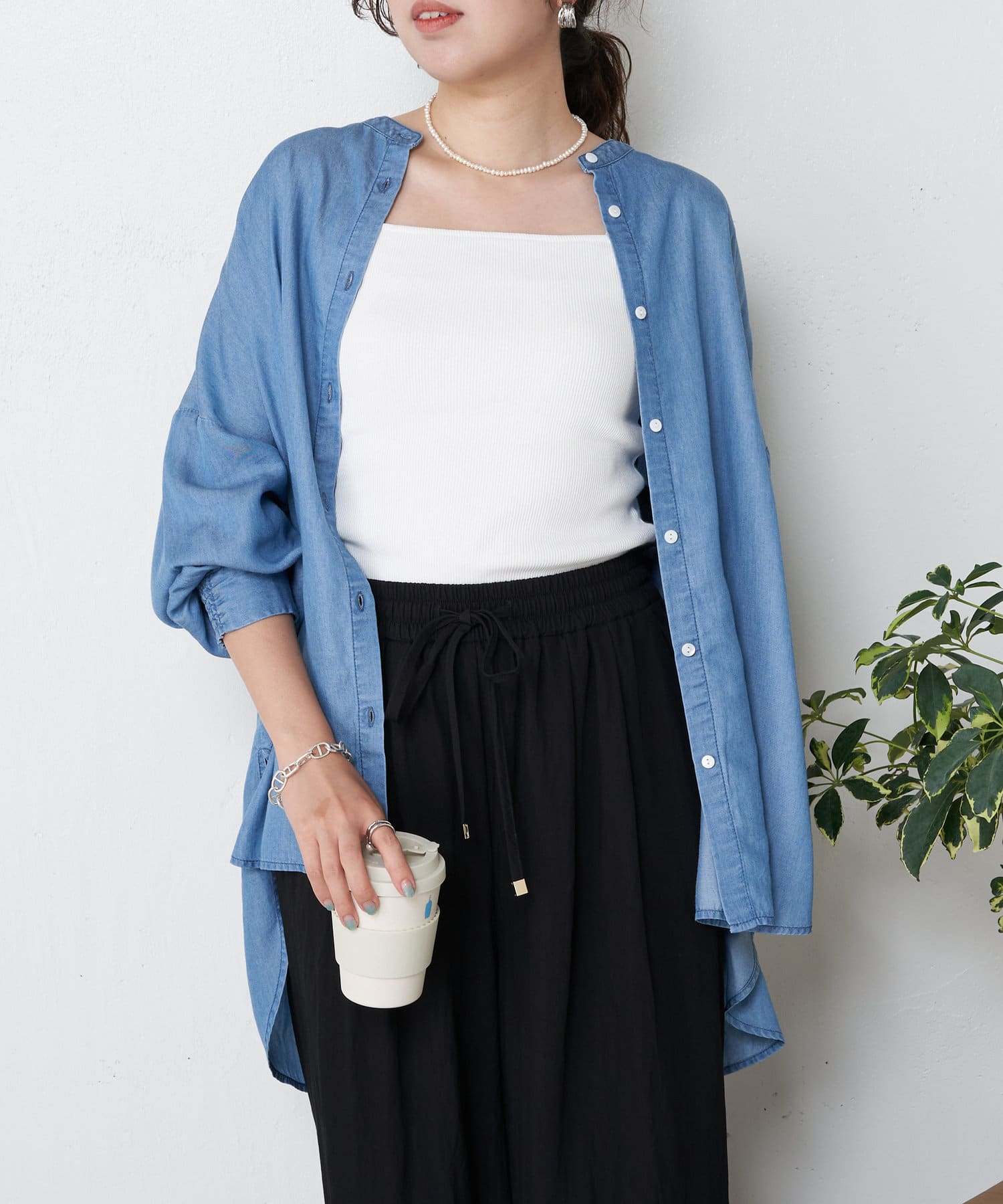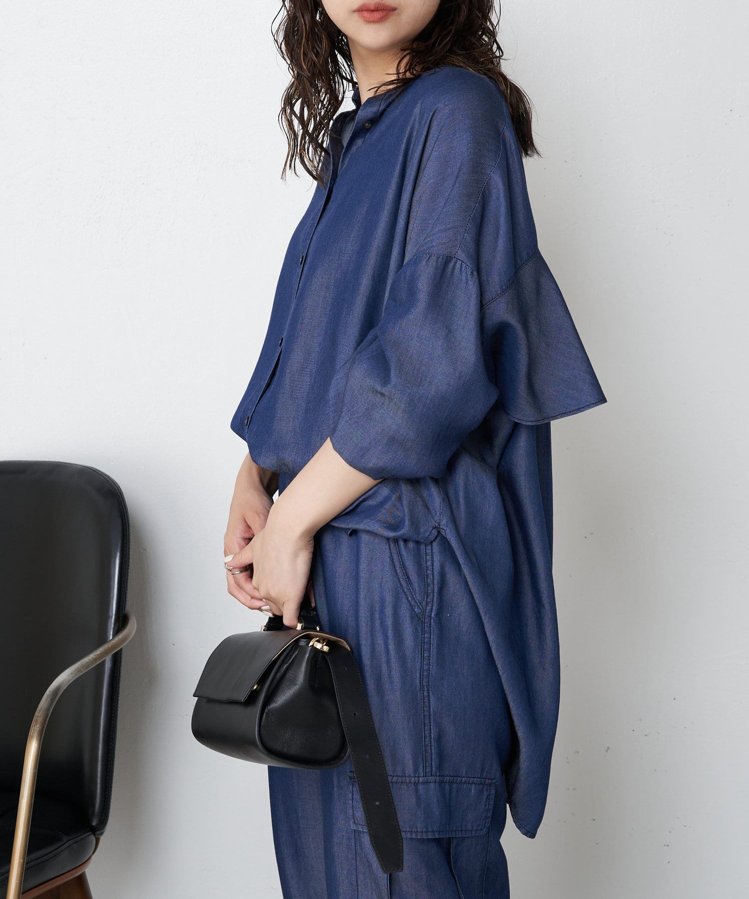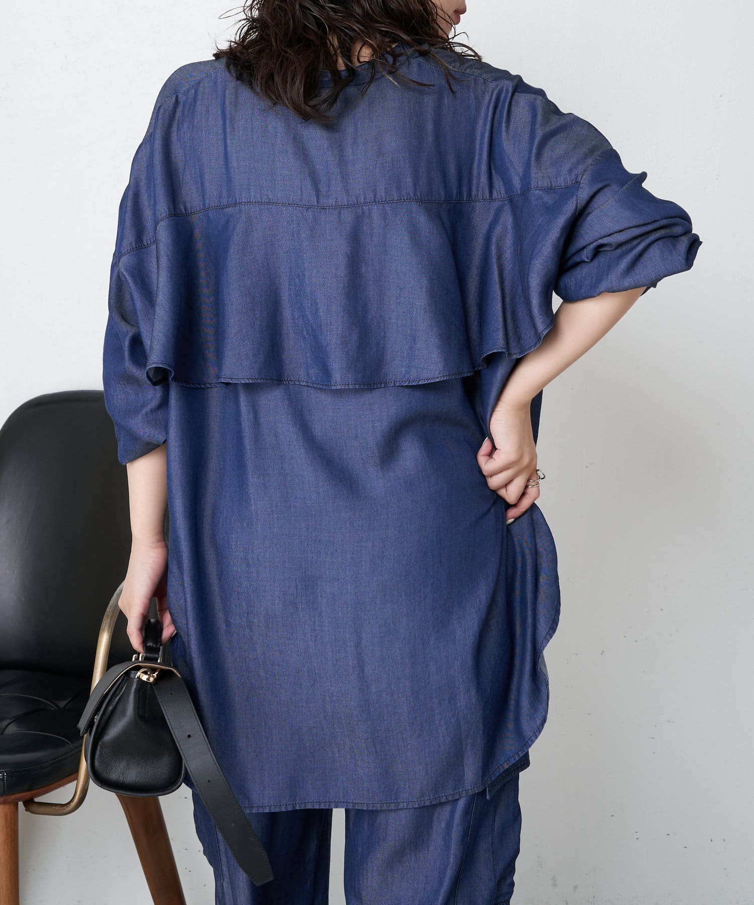 ・トレンドのバックコンシャスデザインが目を惹く、大人のブラウスがテンセルデニム素材で登場。