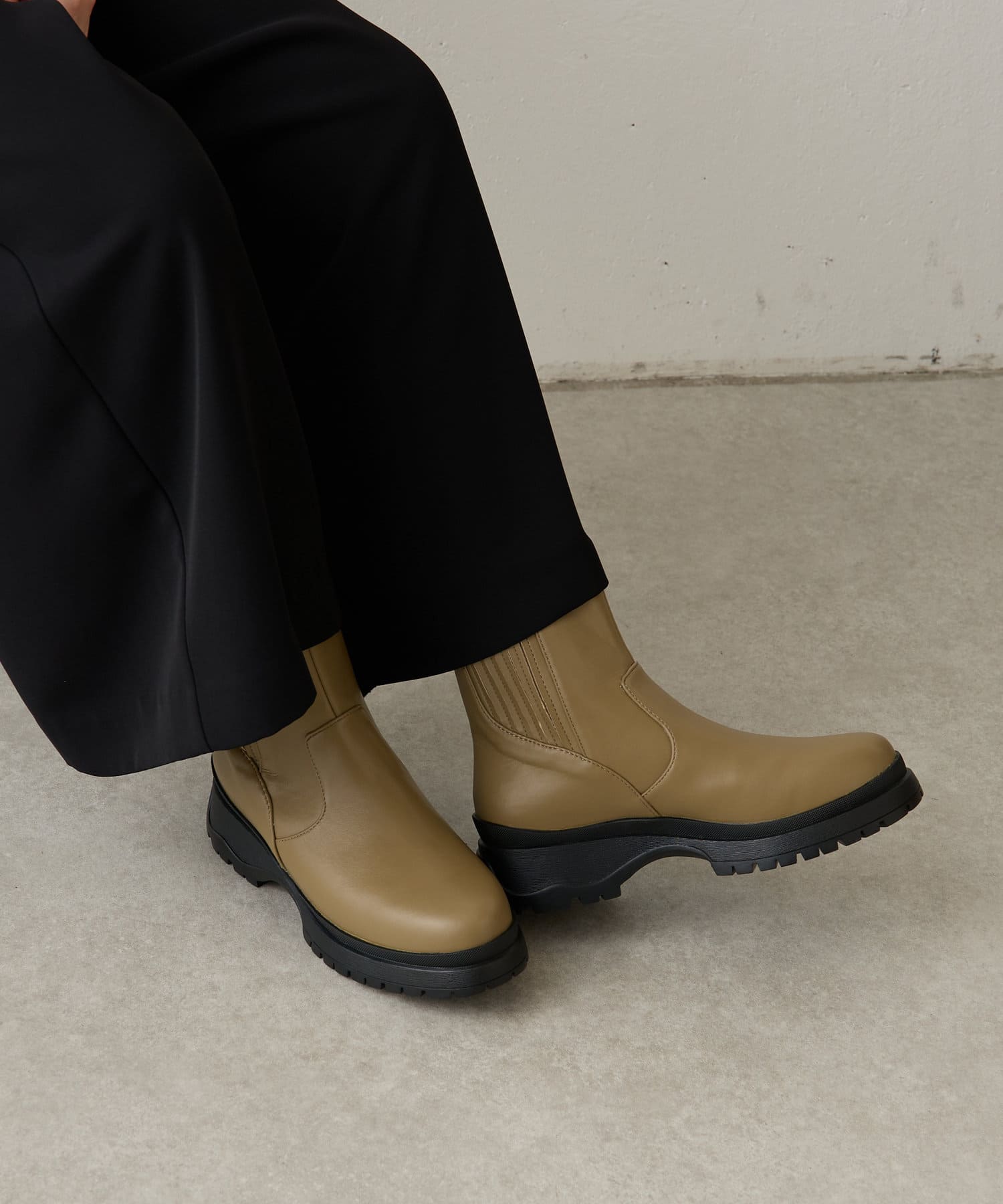 ・サイドゴアブーツですがゴムを隠すことで、キレイ目な印象できちんと感があります◎