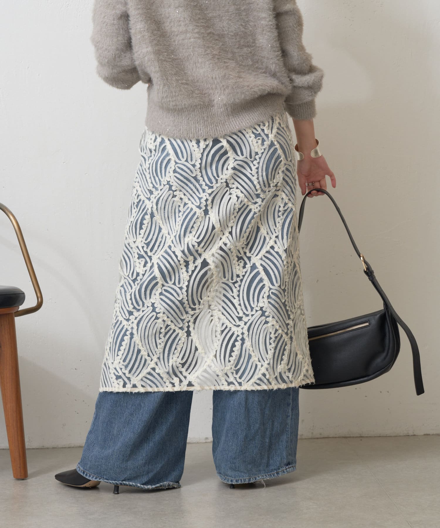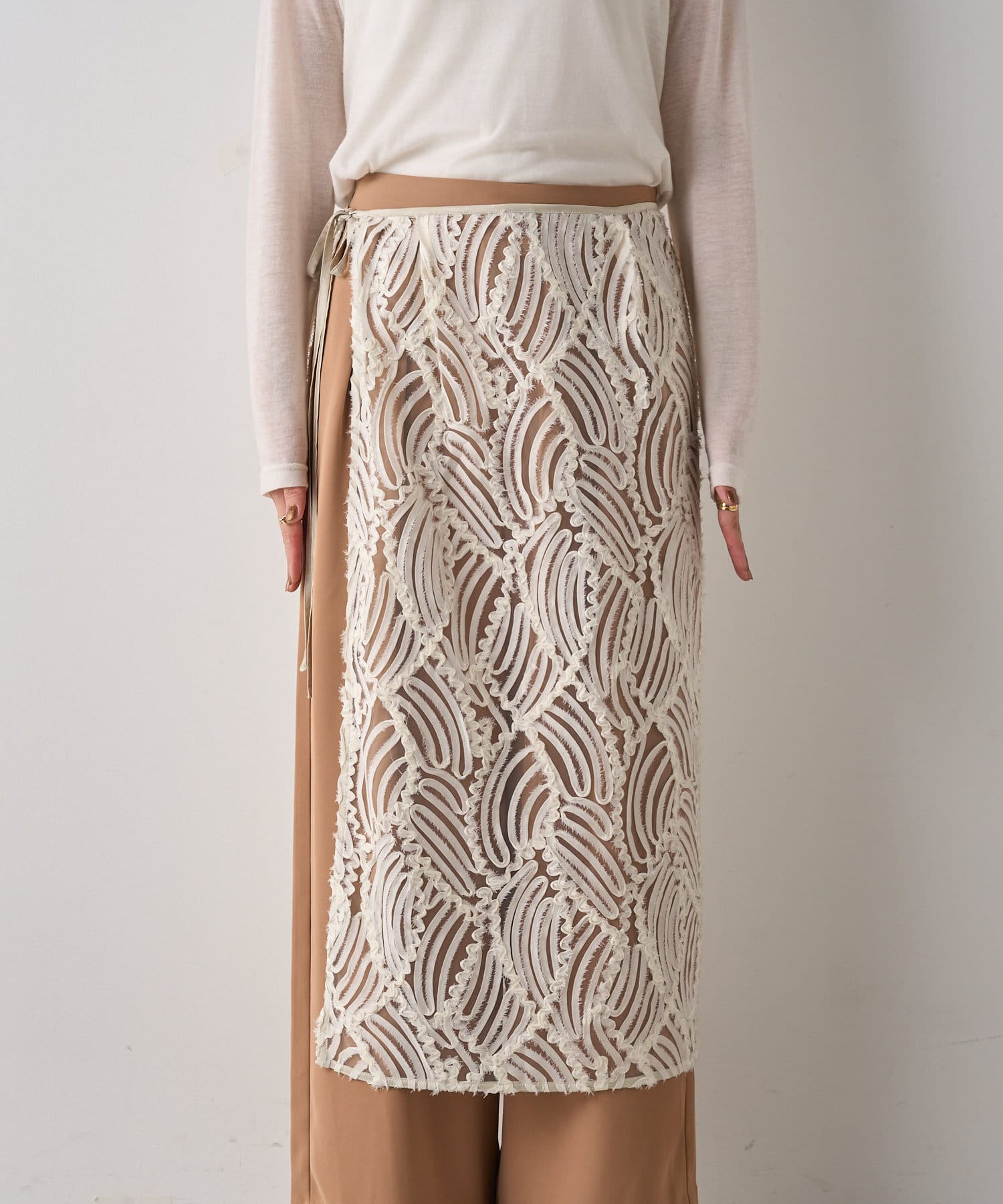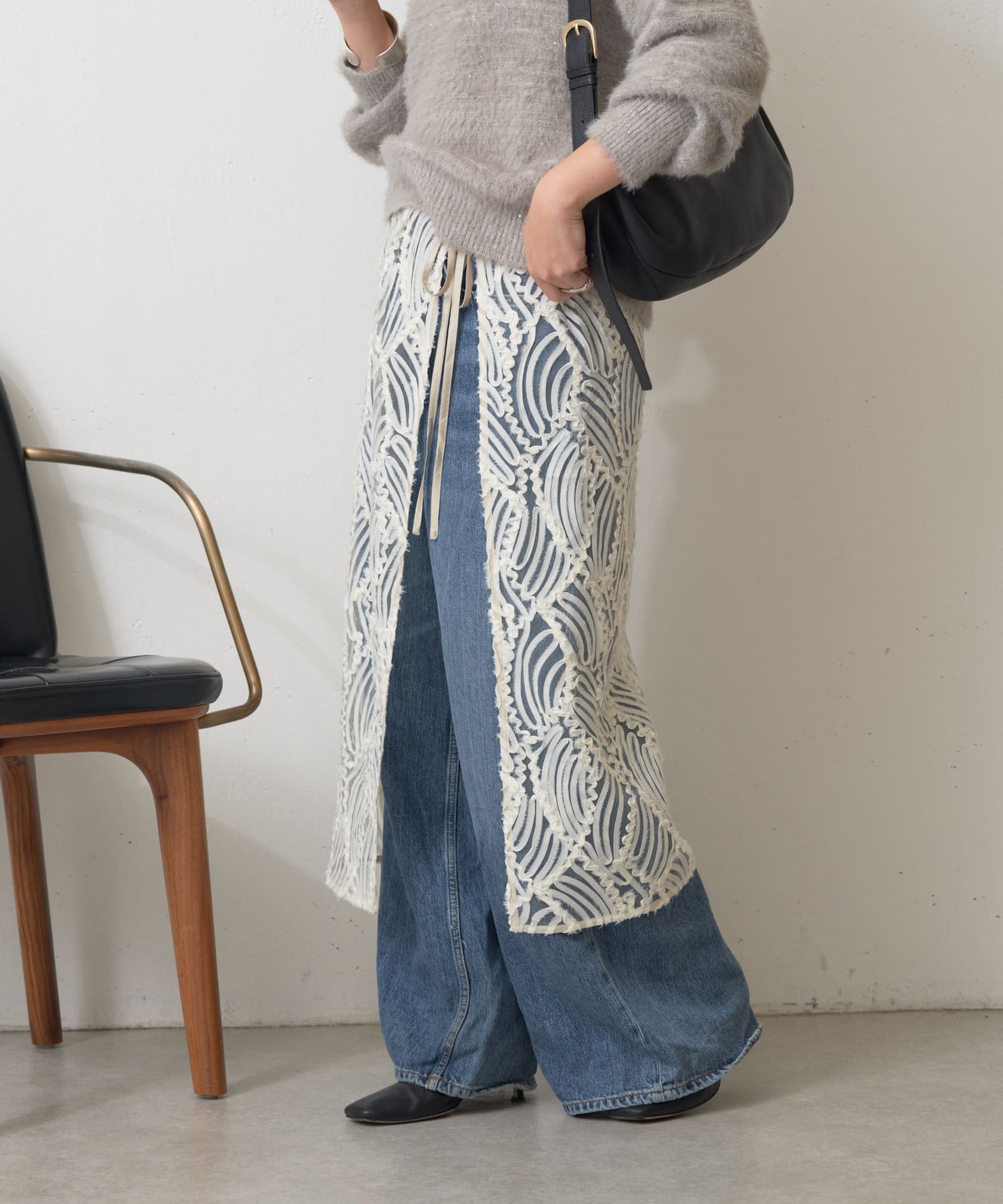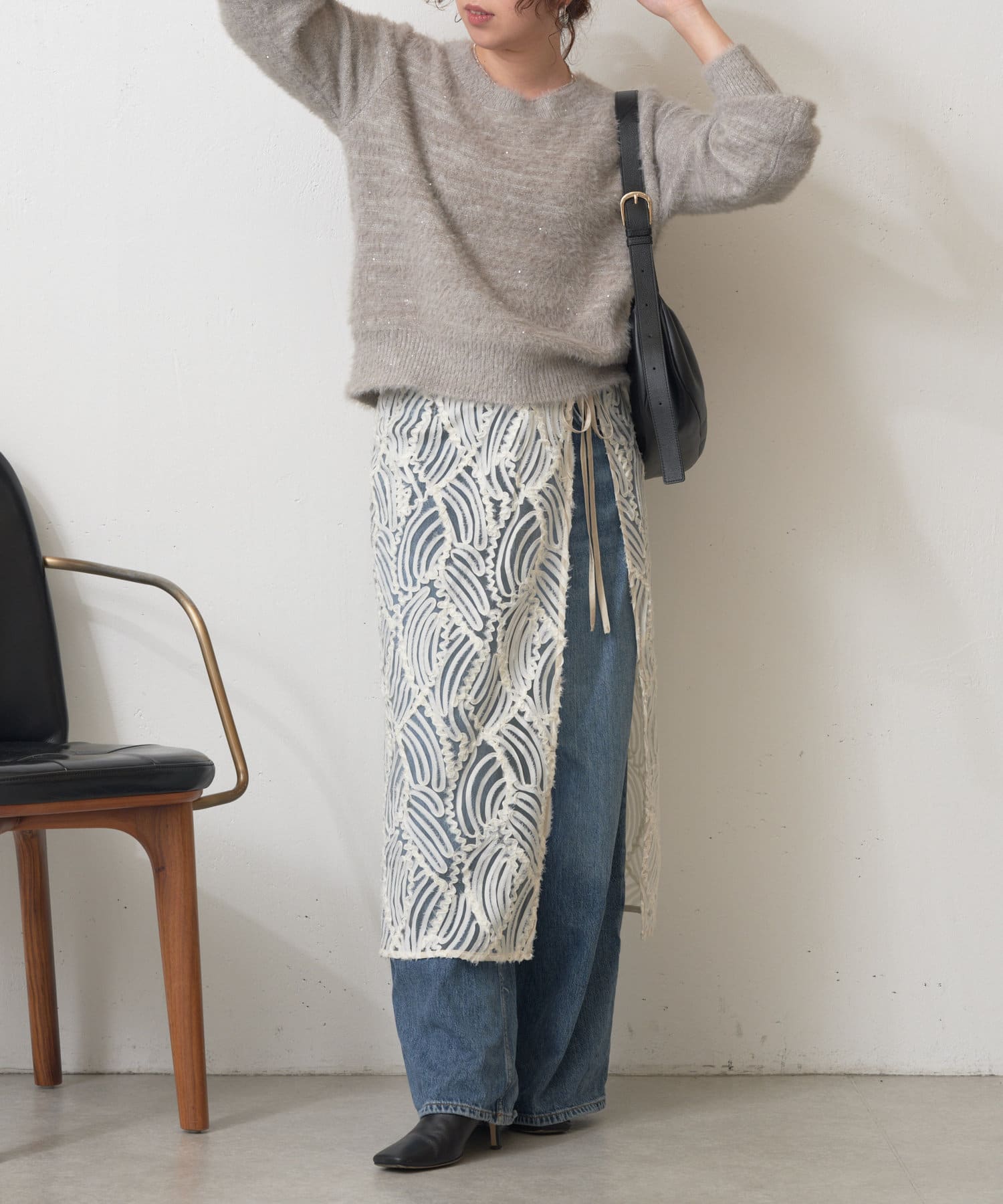 ・どんなコーディネートにも華を添えるエプロン型のラップスカート。