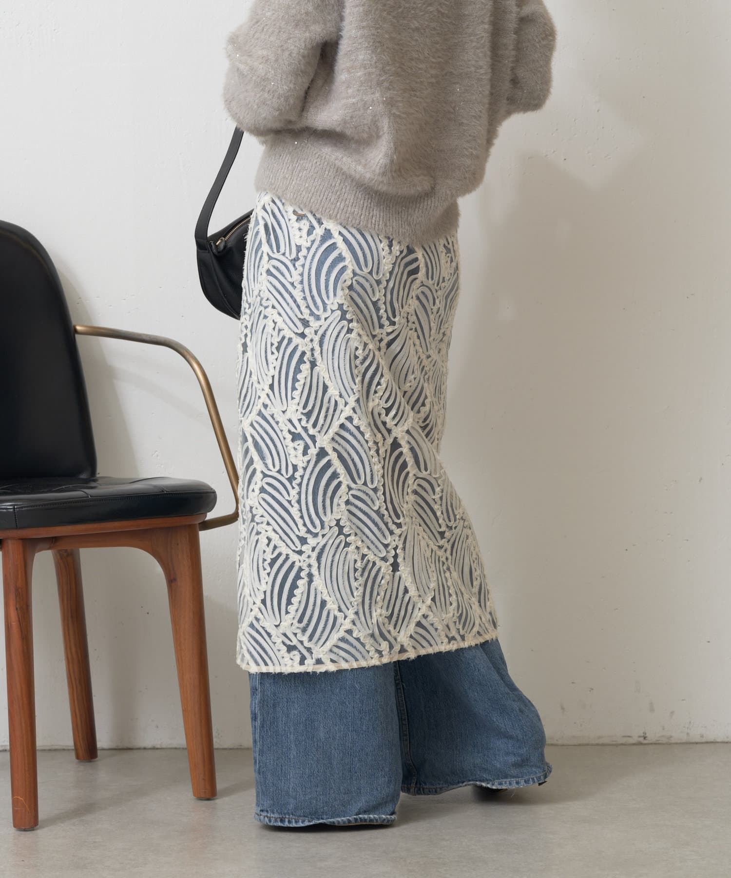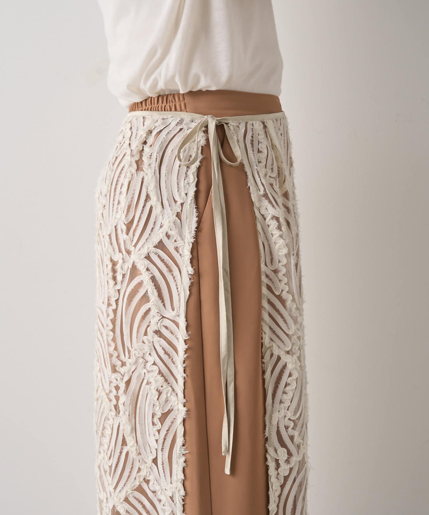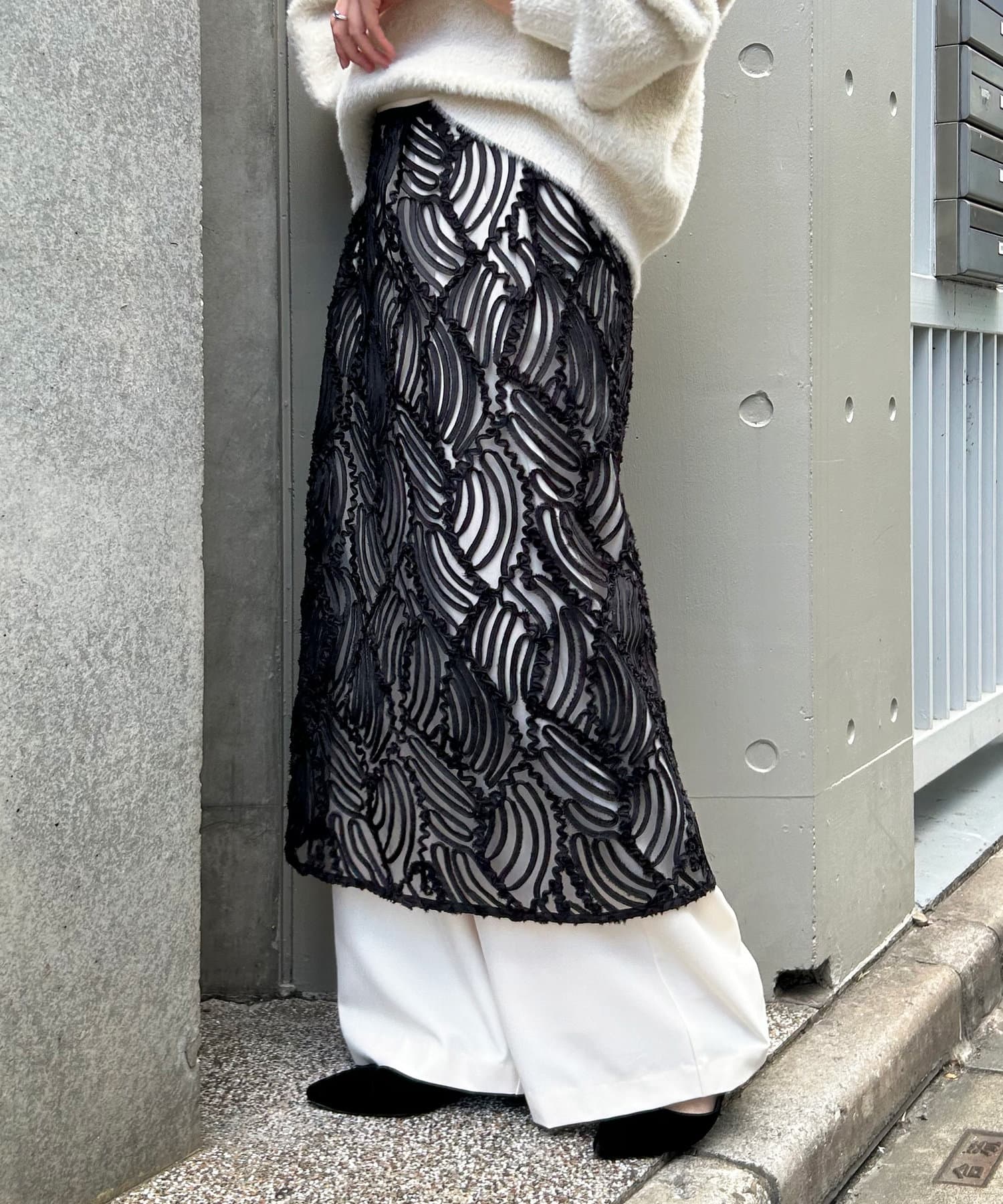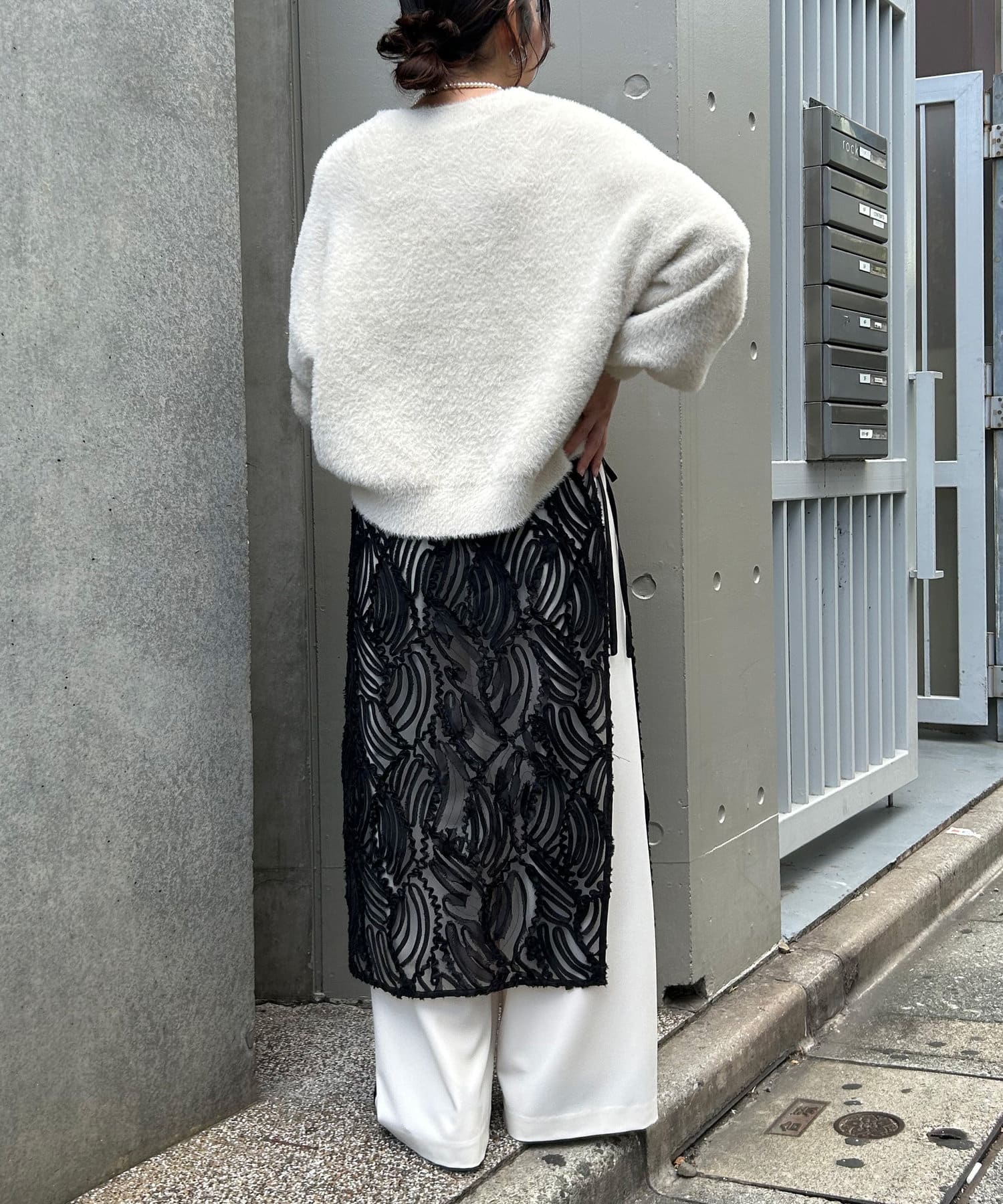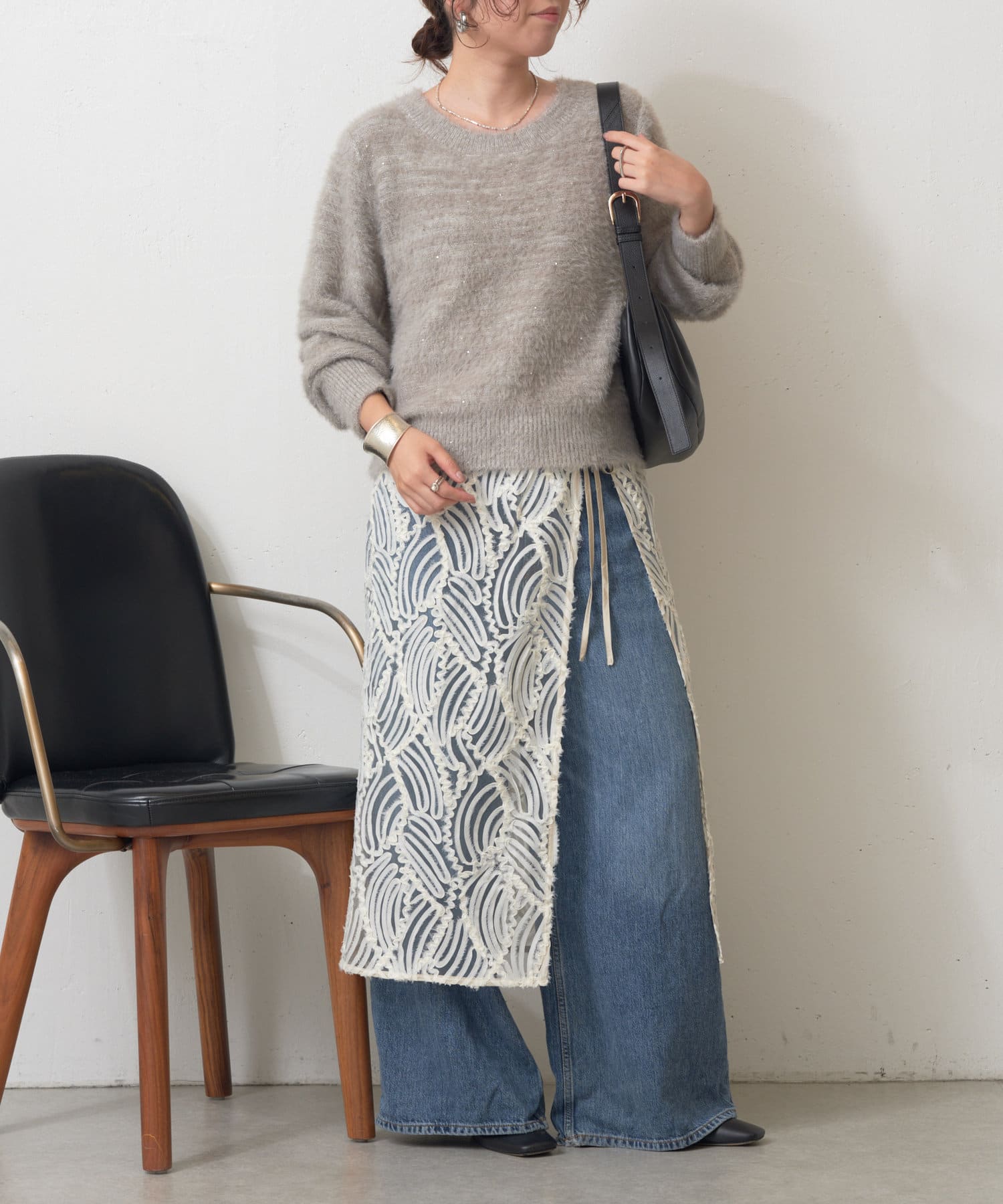・どんなコーディネートにも華を添えるエプロン型のラップスカート。