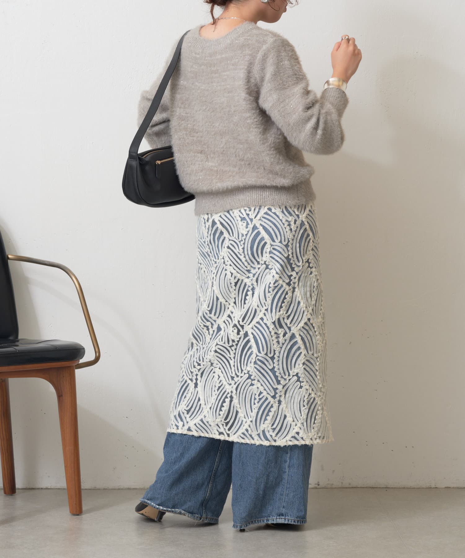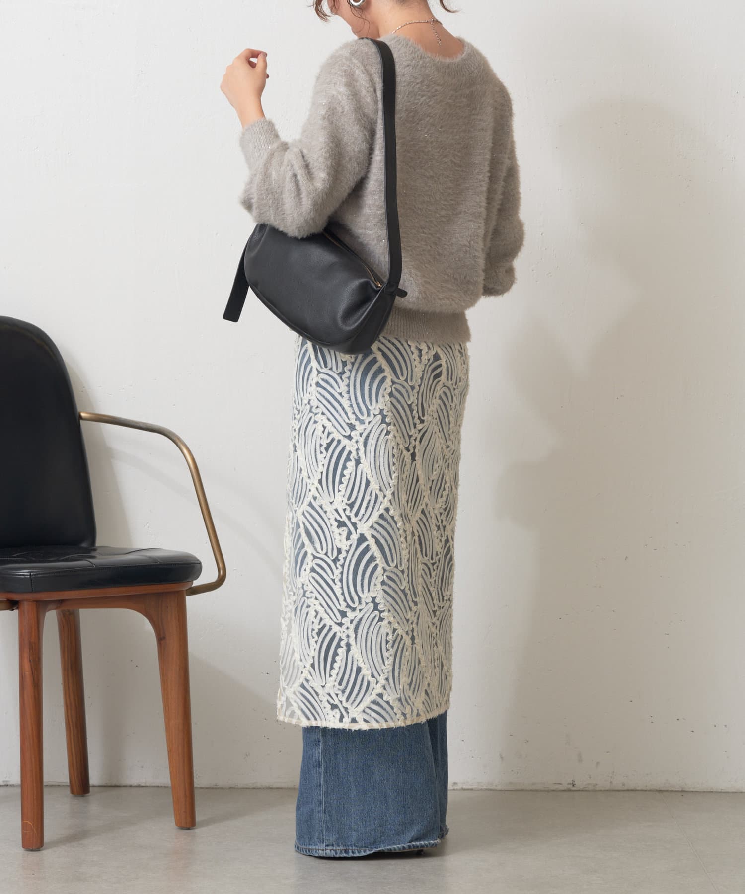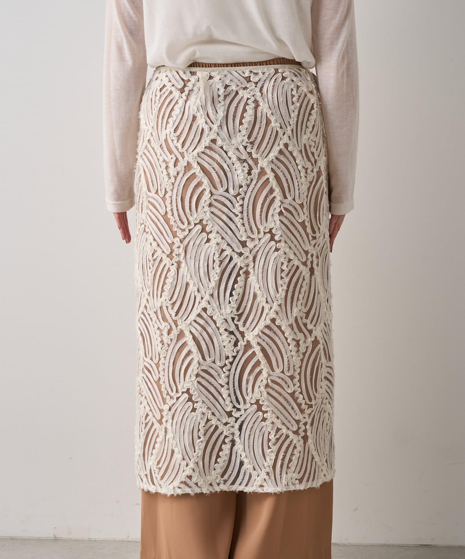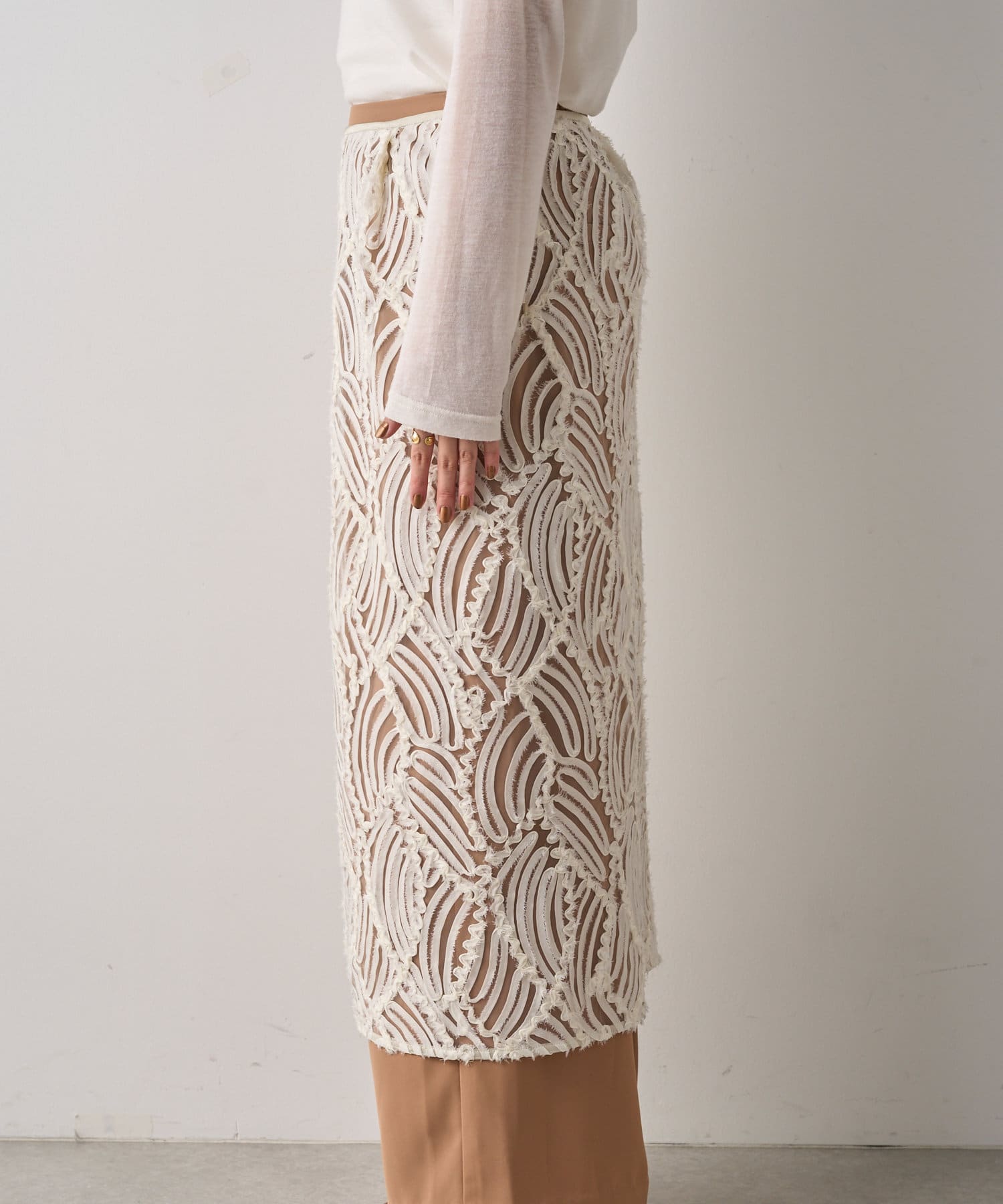 ・どんなコーディネートにも華を添えるエプロン型のラップスカート。