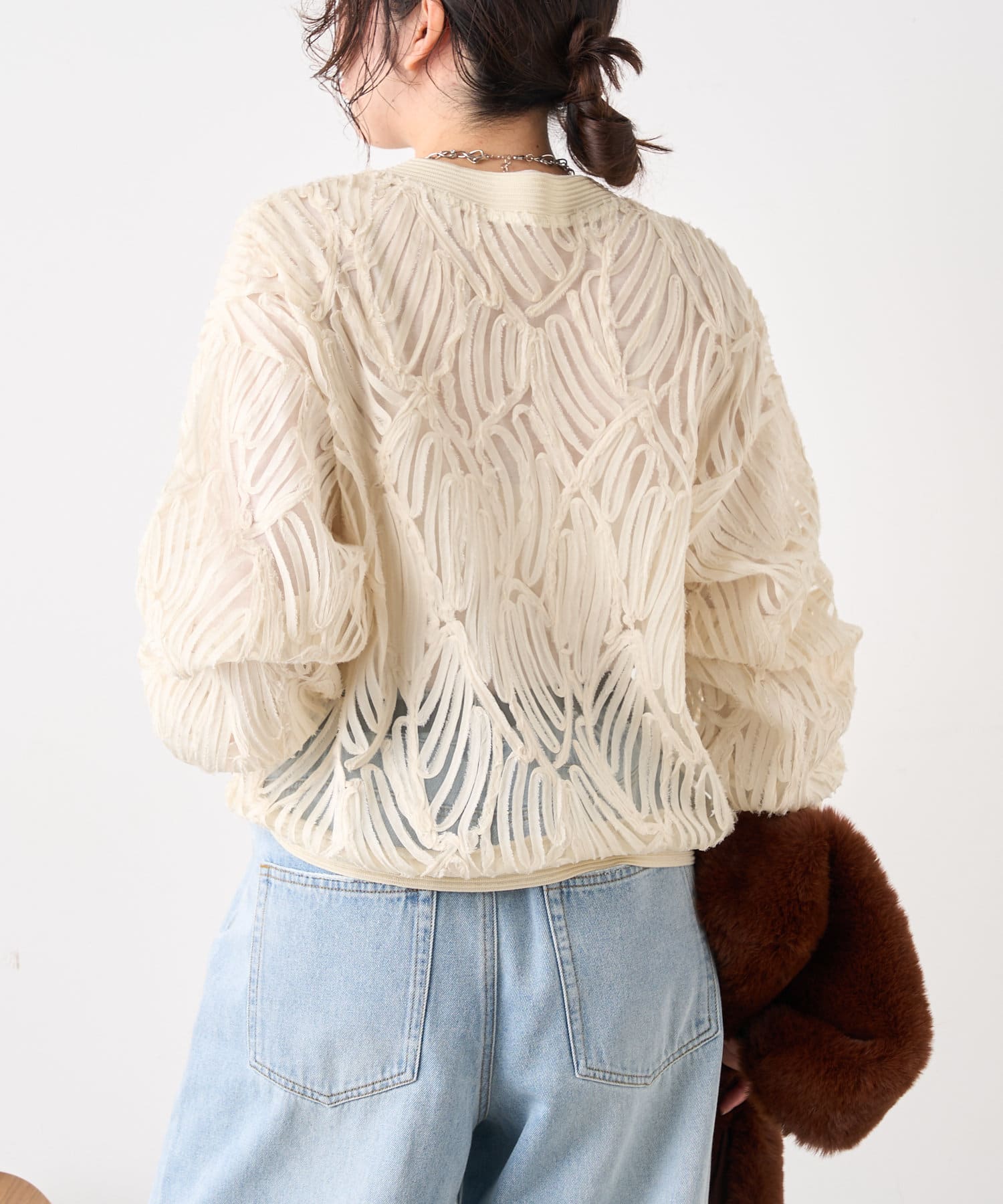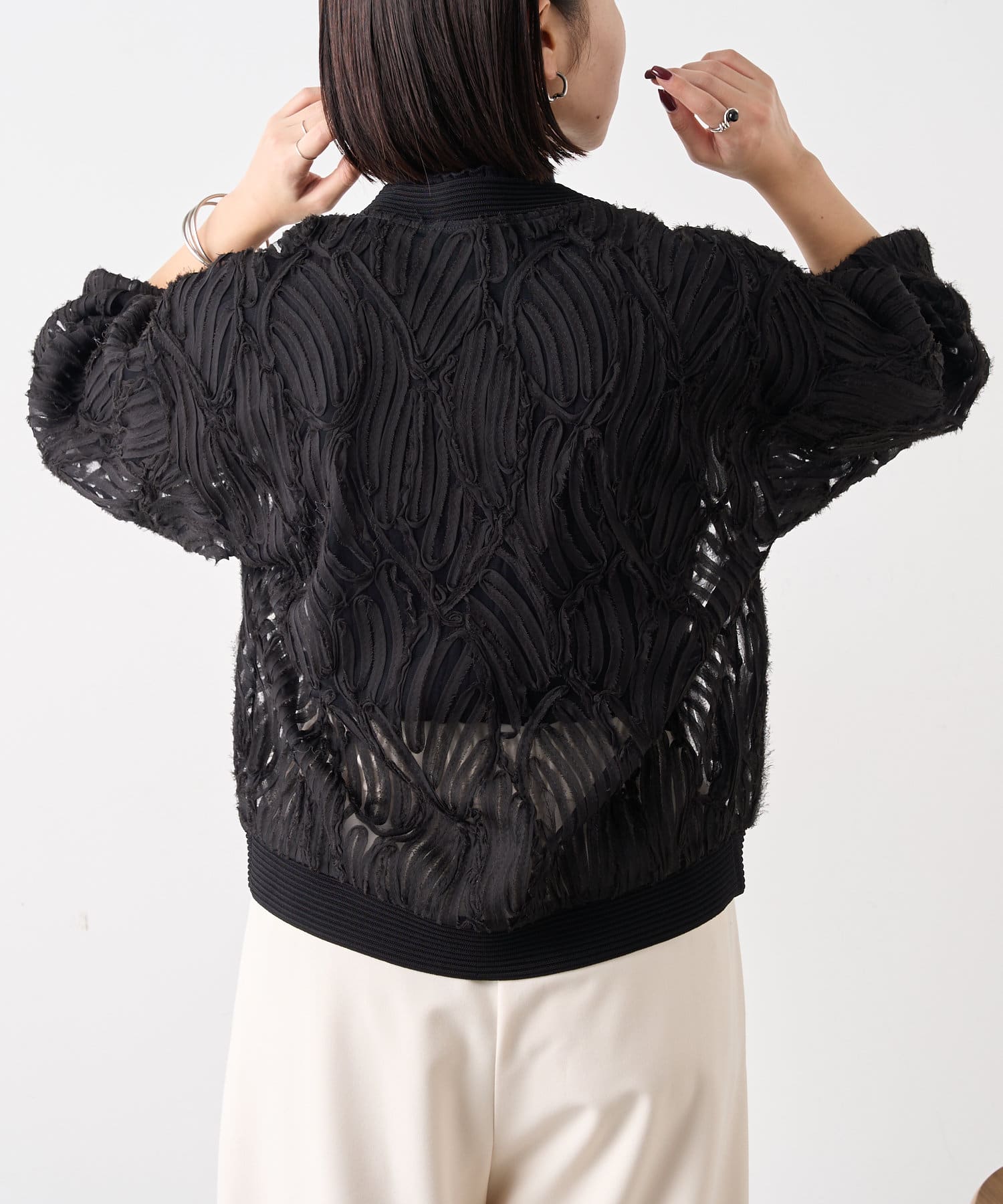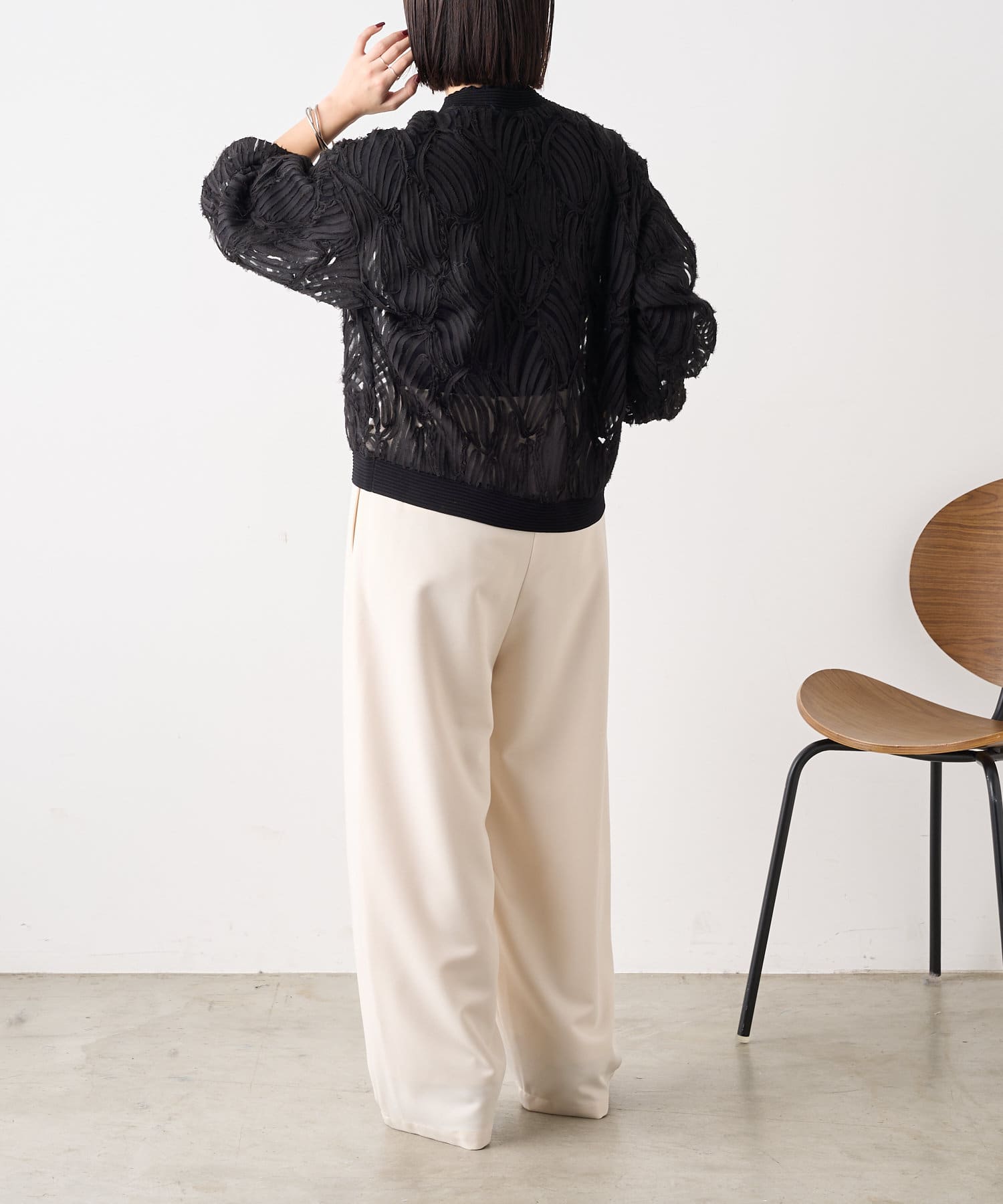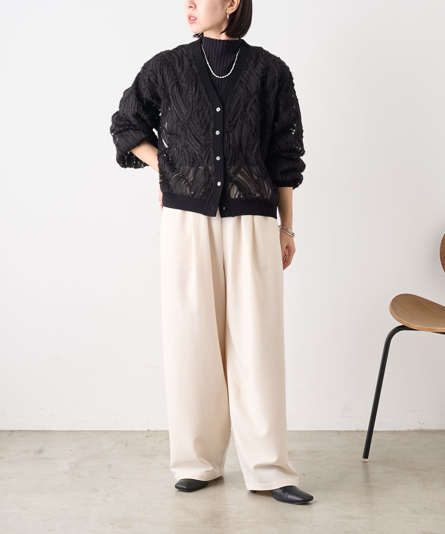 ・程よいシアー素材なので晩夏シーズンから取り入れやすい一枚です。