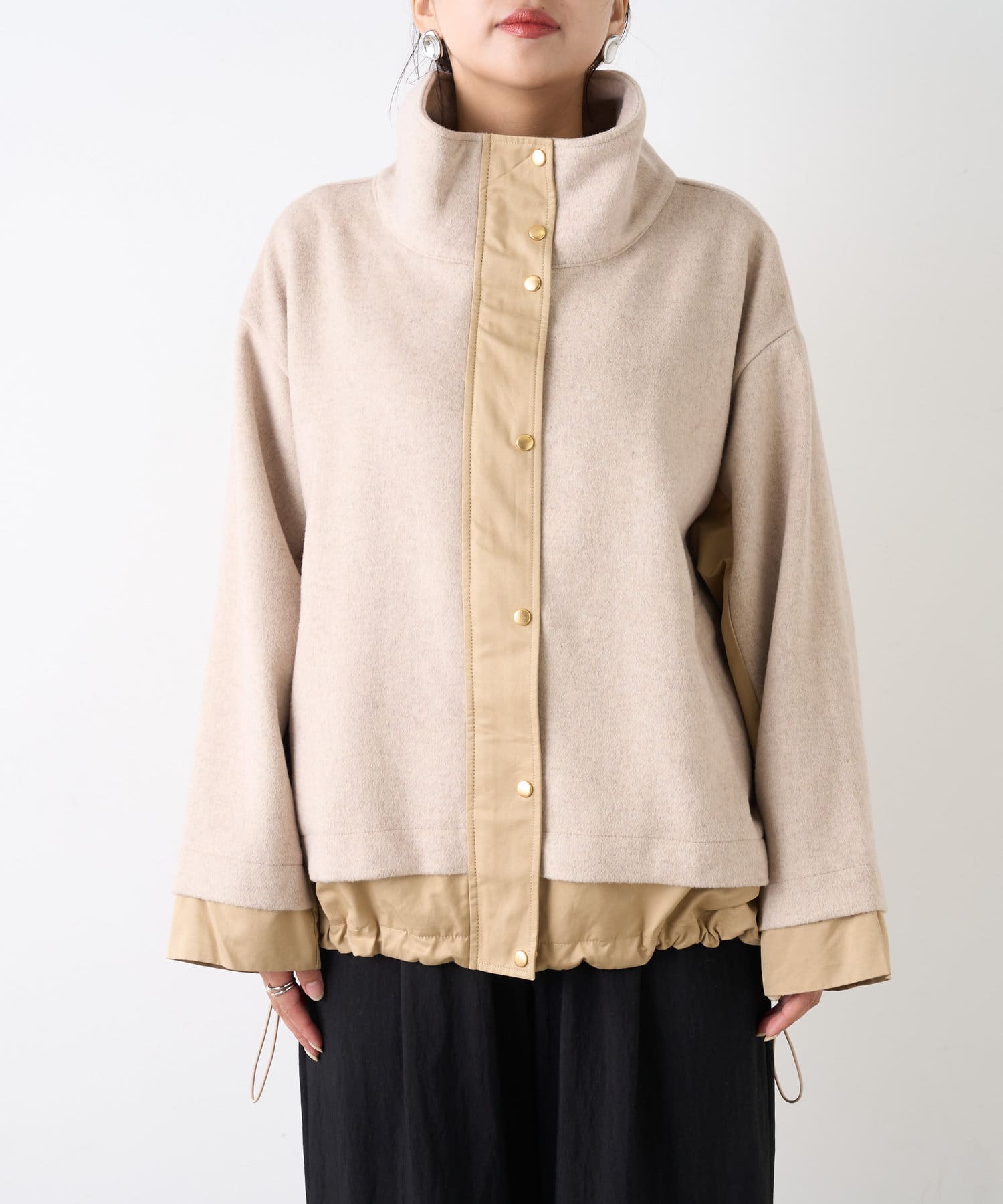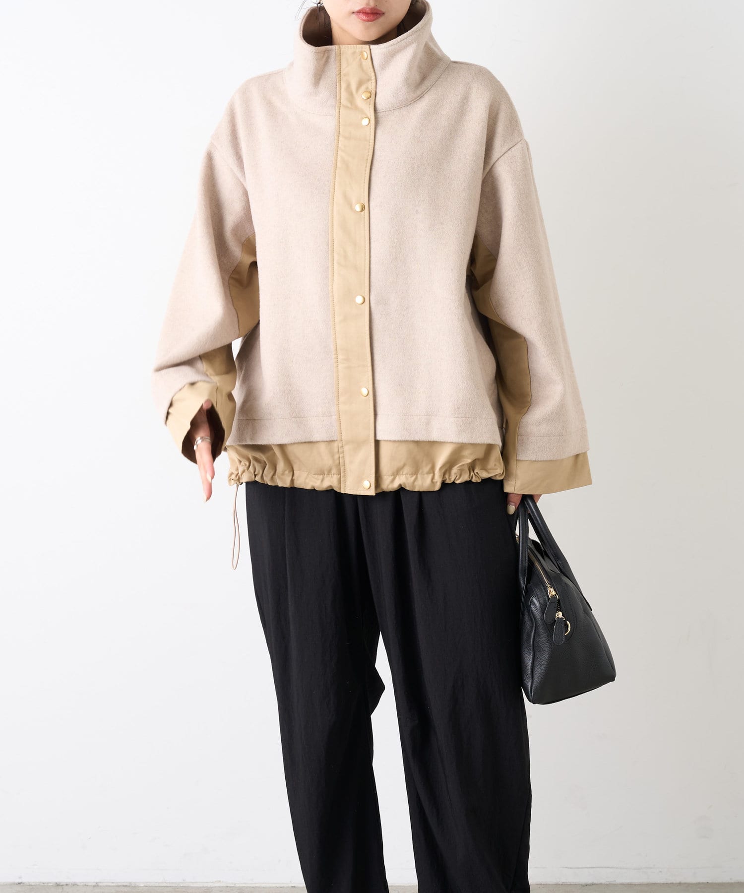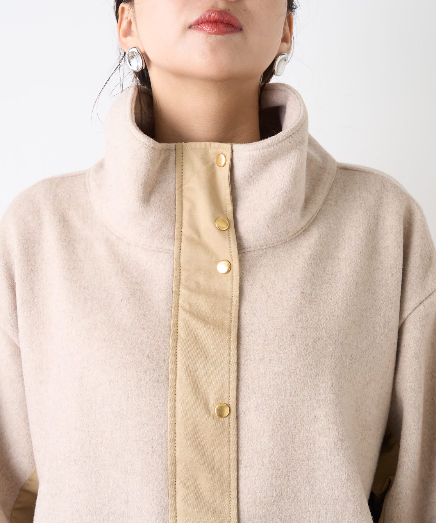 ・襟が立ち上がるデザインのスタンドネックタイプ。