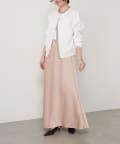 ・高級感ある艶とマーメードシルエットが女性らしいロングスカート。