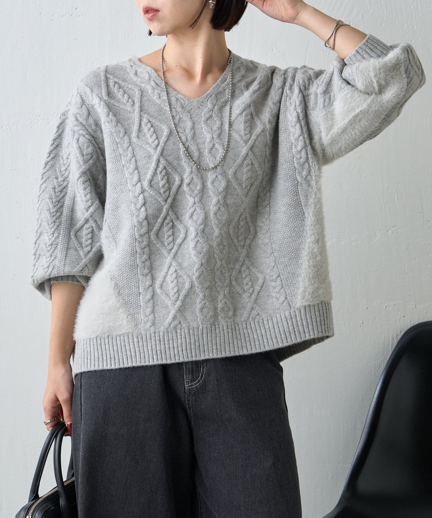 ・様々な編み地デザインが一枚着るだけでスタイリングを華やかにしてくれます。