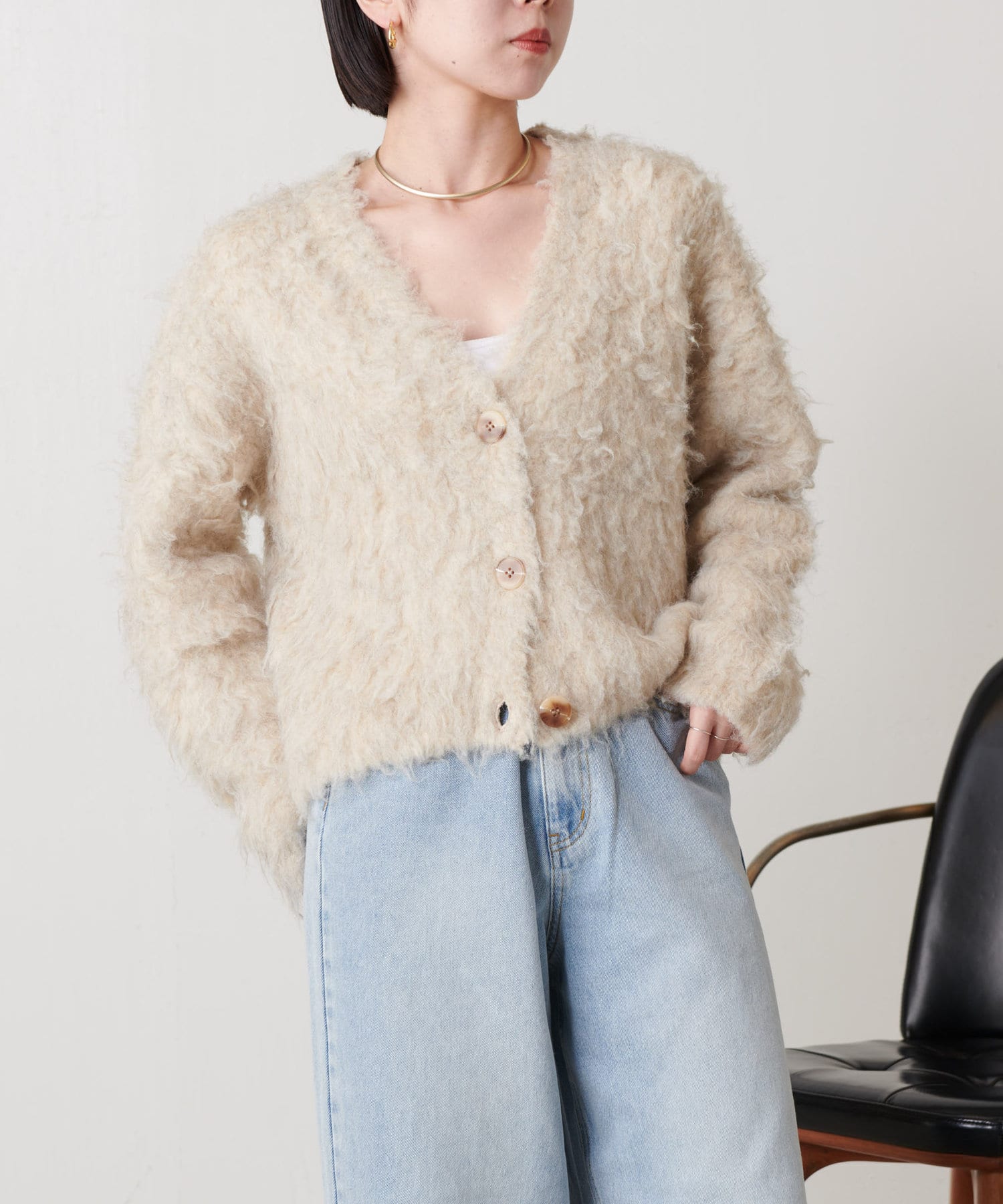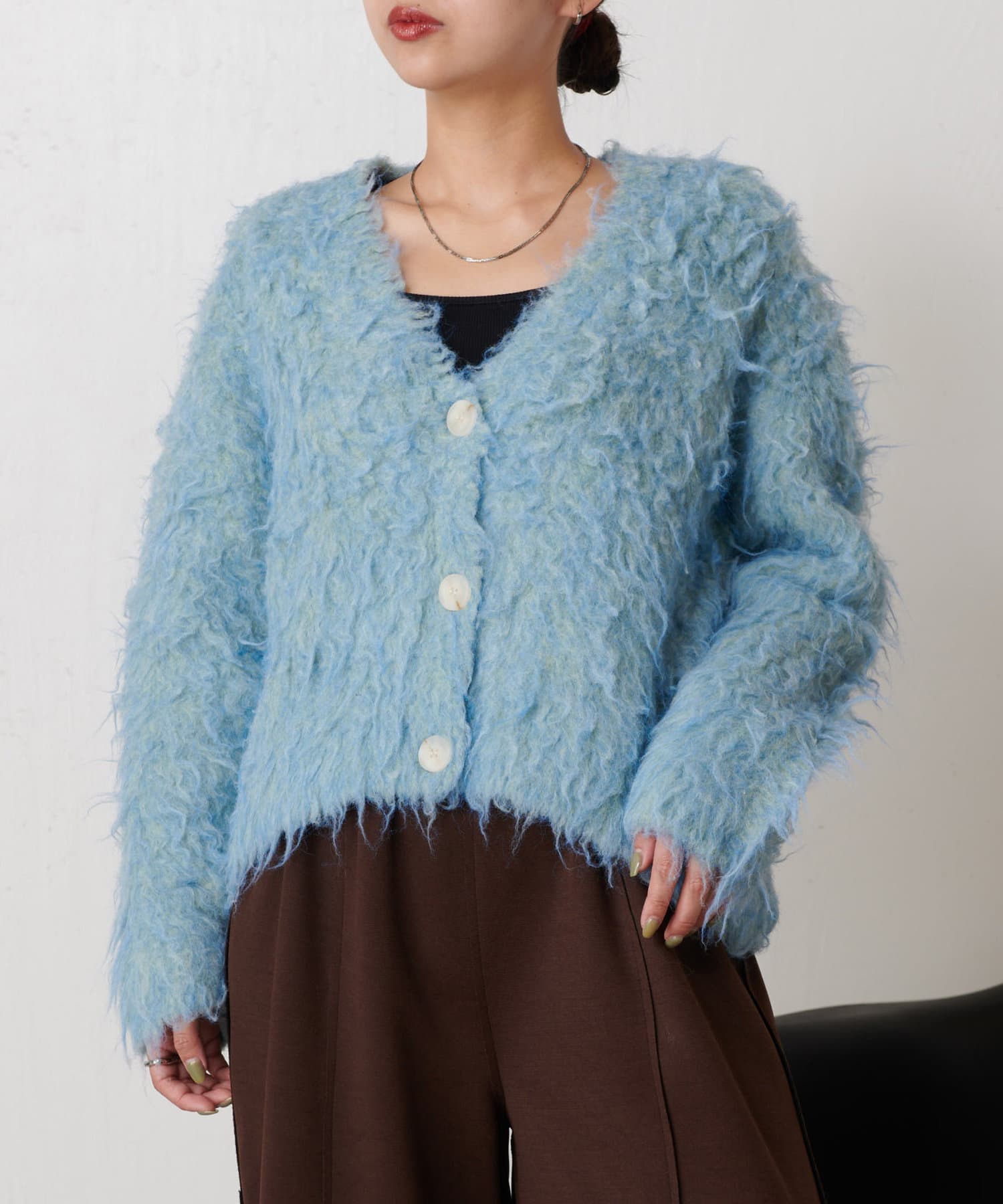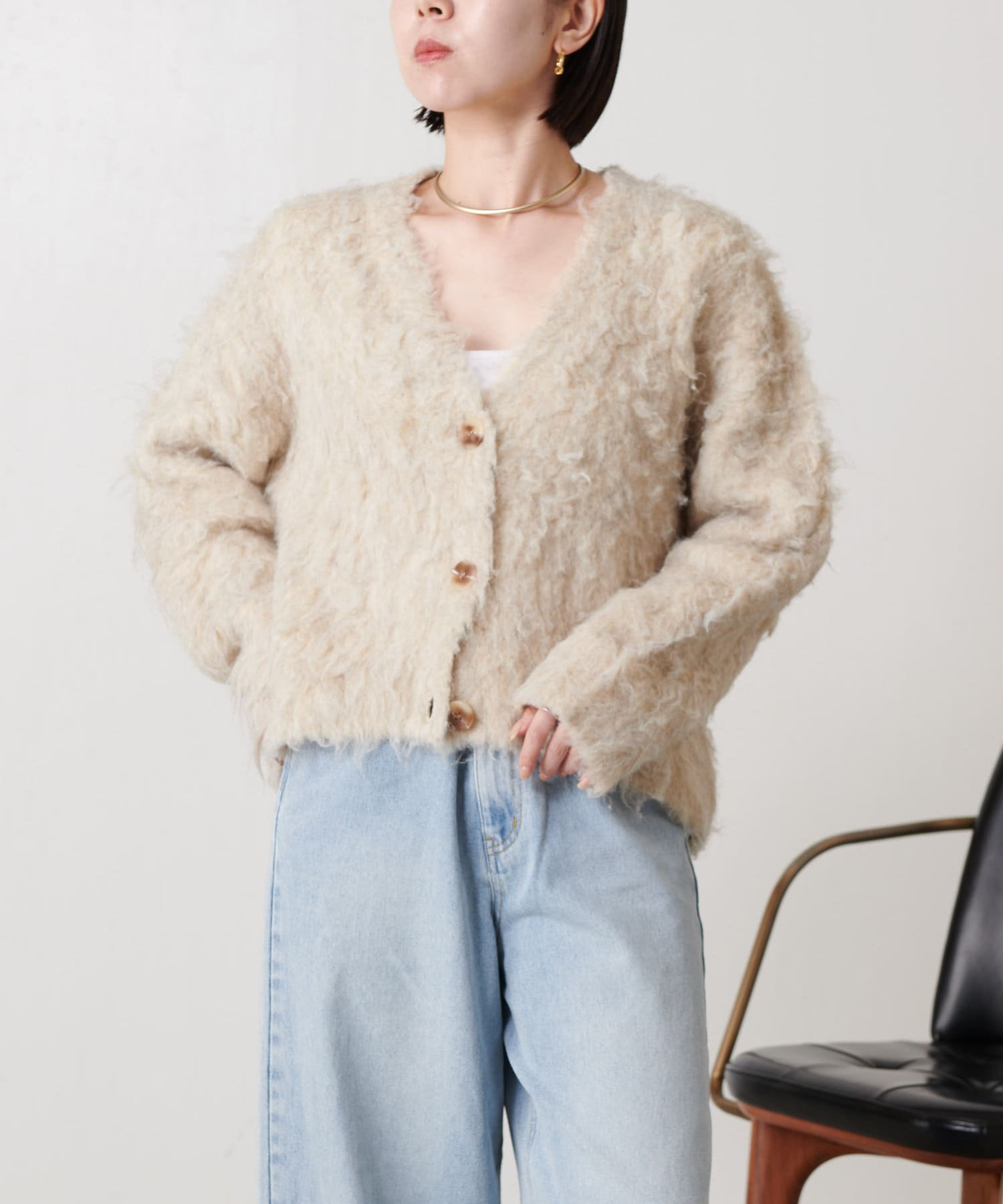 ・ふわふわのとした肌触りが心地良いトレンドのシャギー素材を使ったカーディガン。