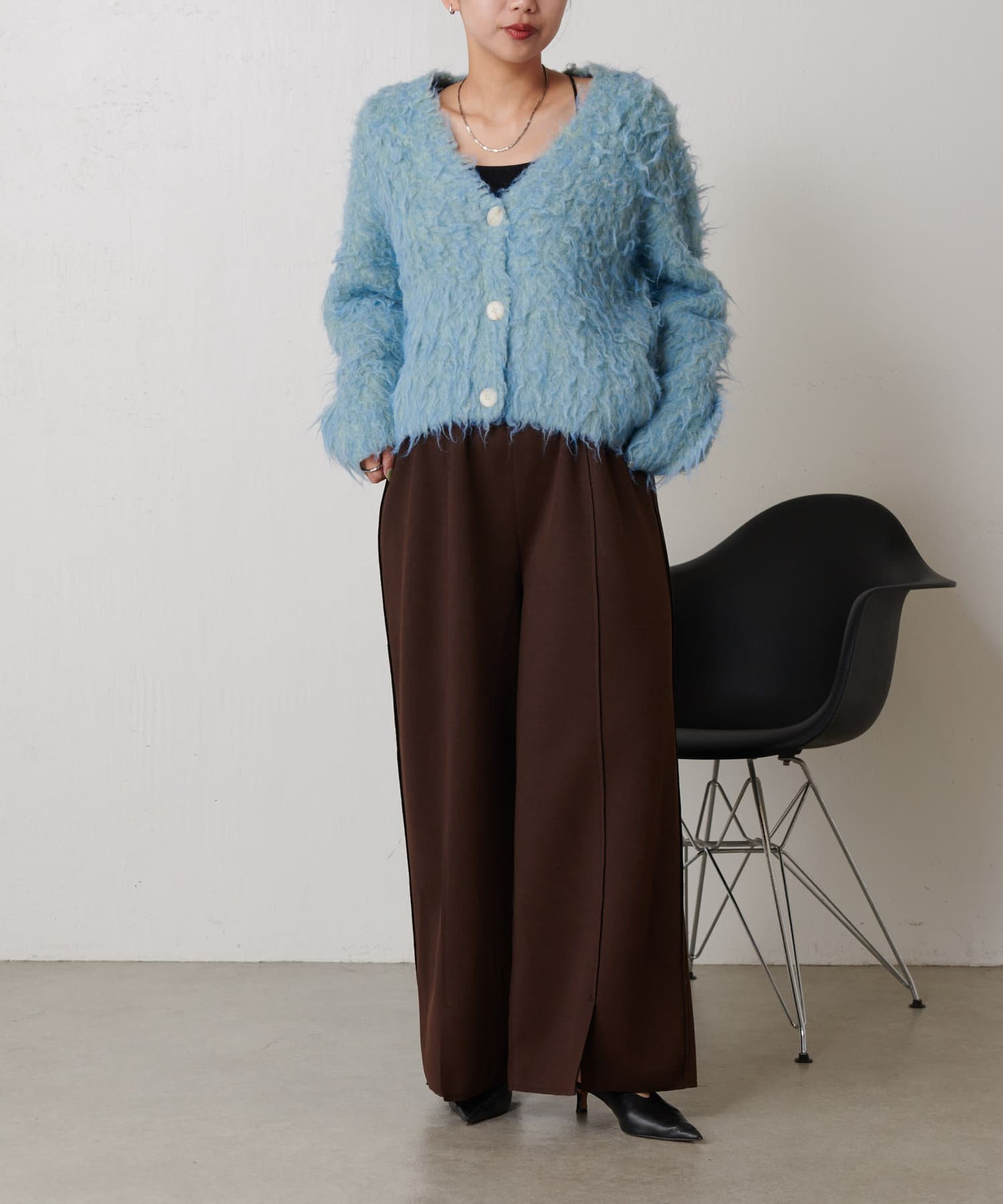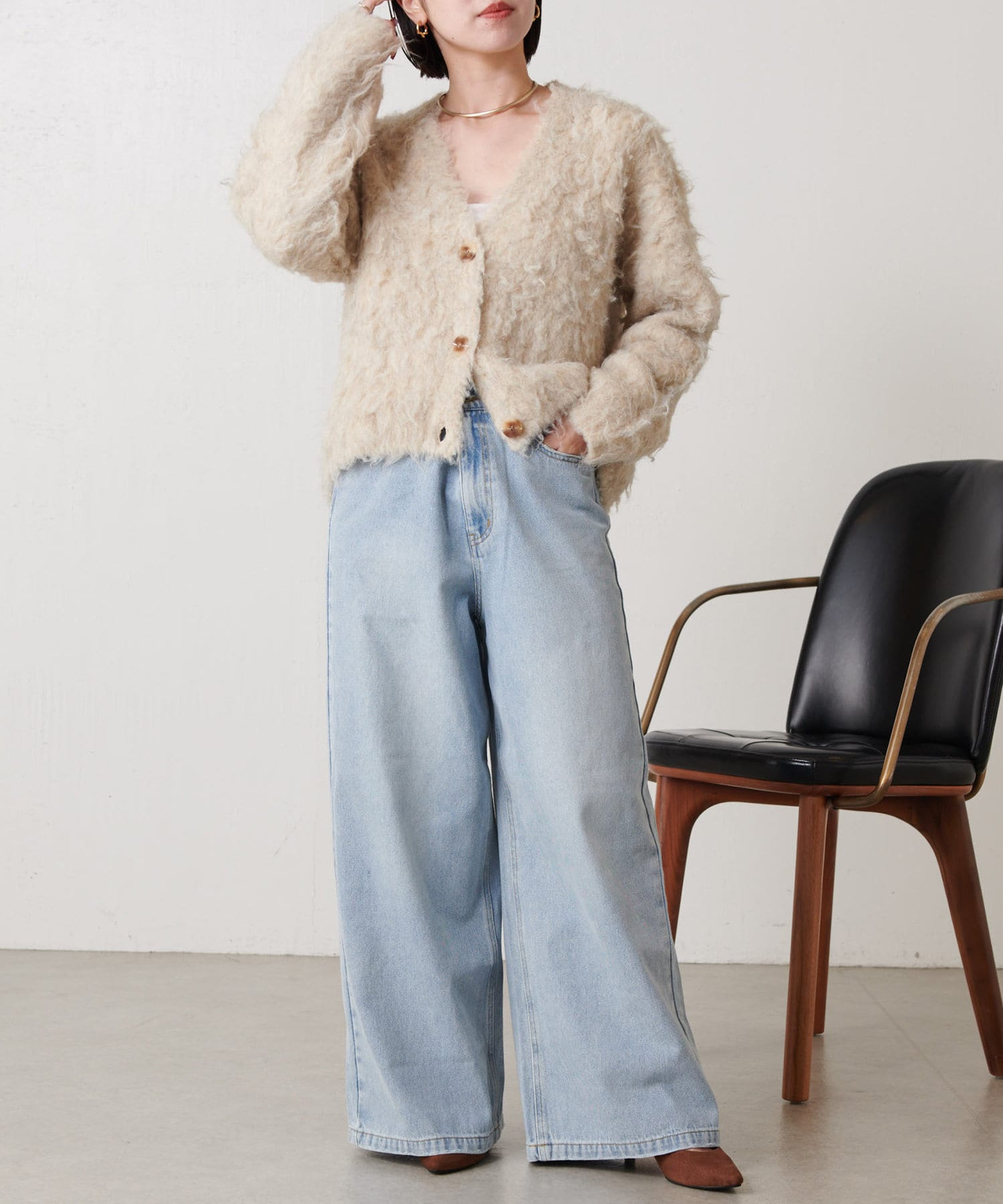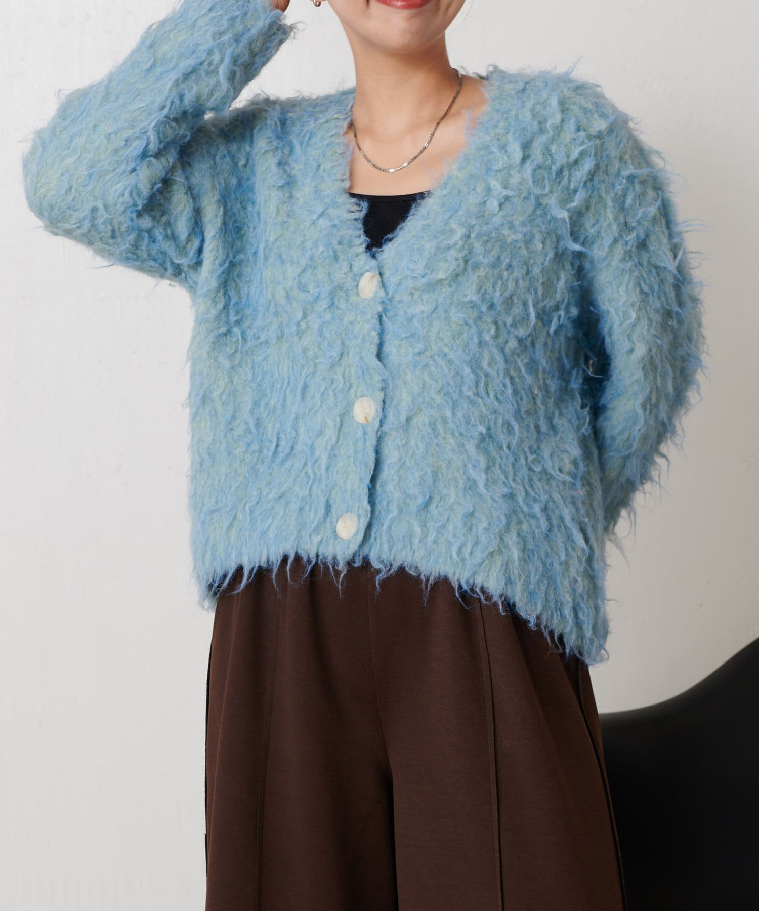 ・ふわふわのとした肌触りが心地良いトレンドのシャギー素材を使ったカーディガン。