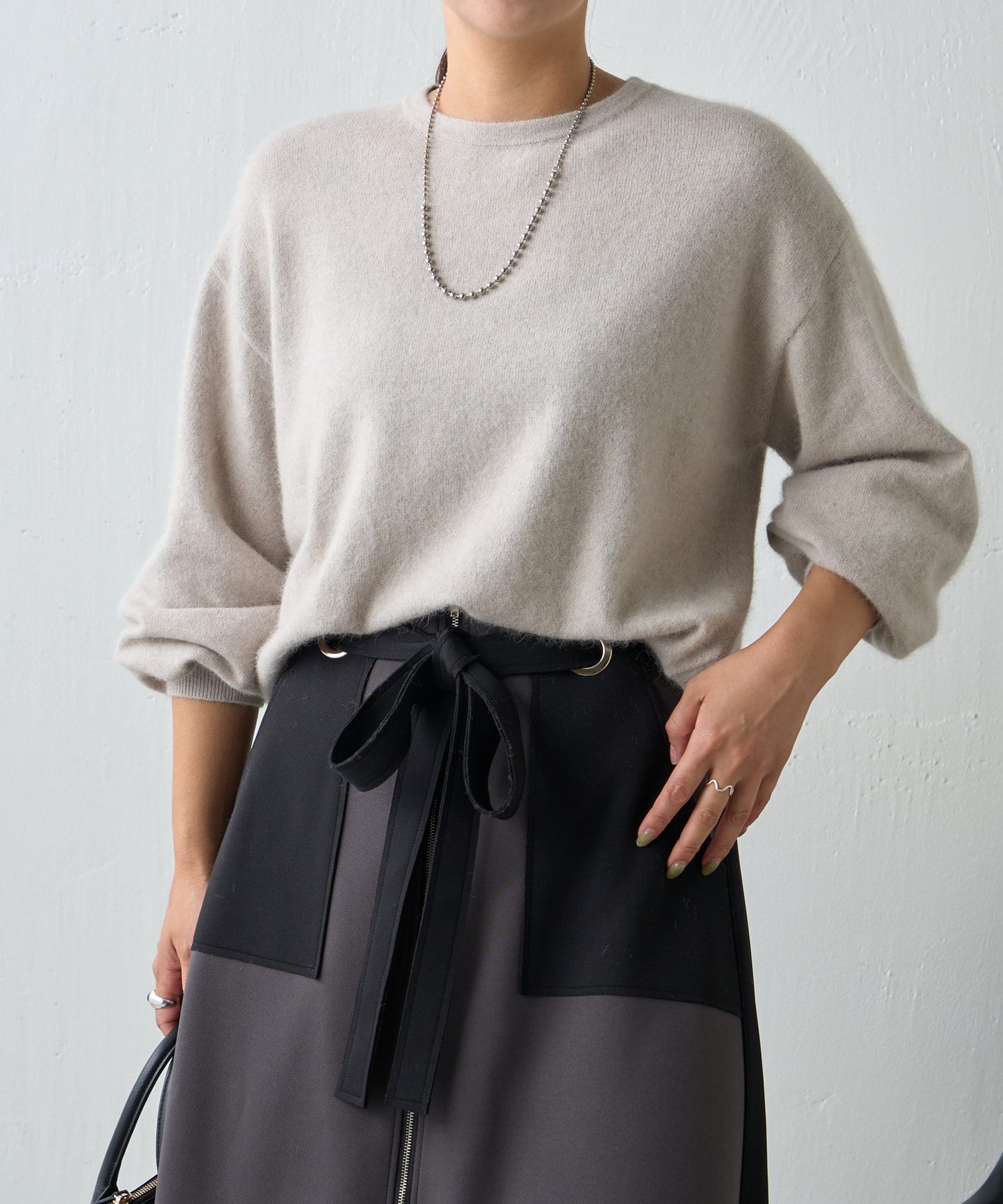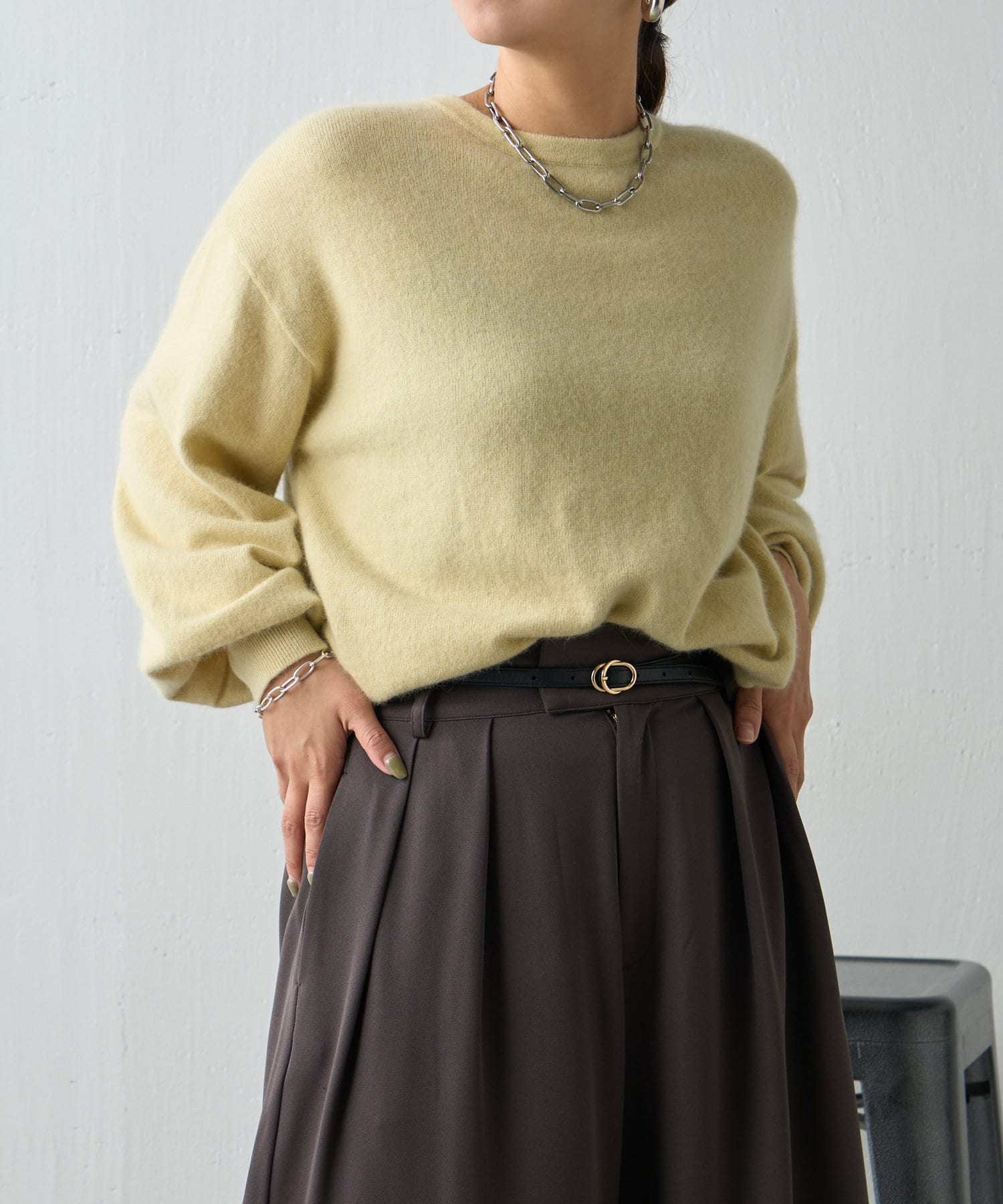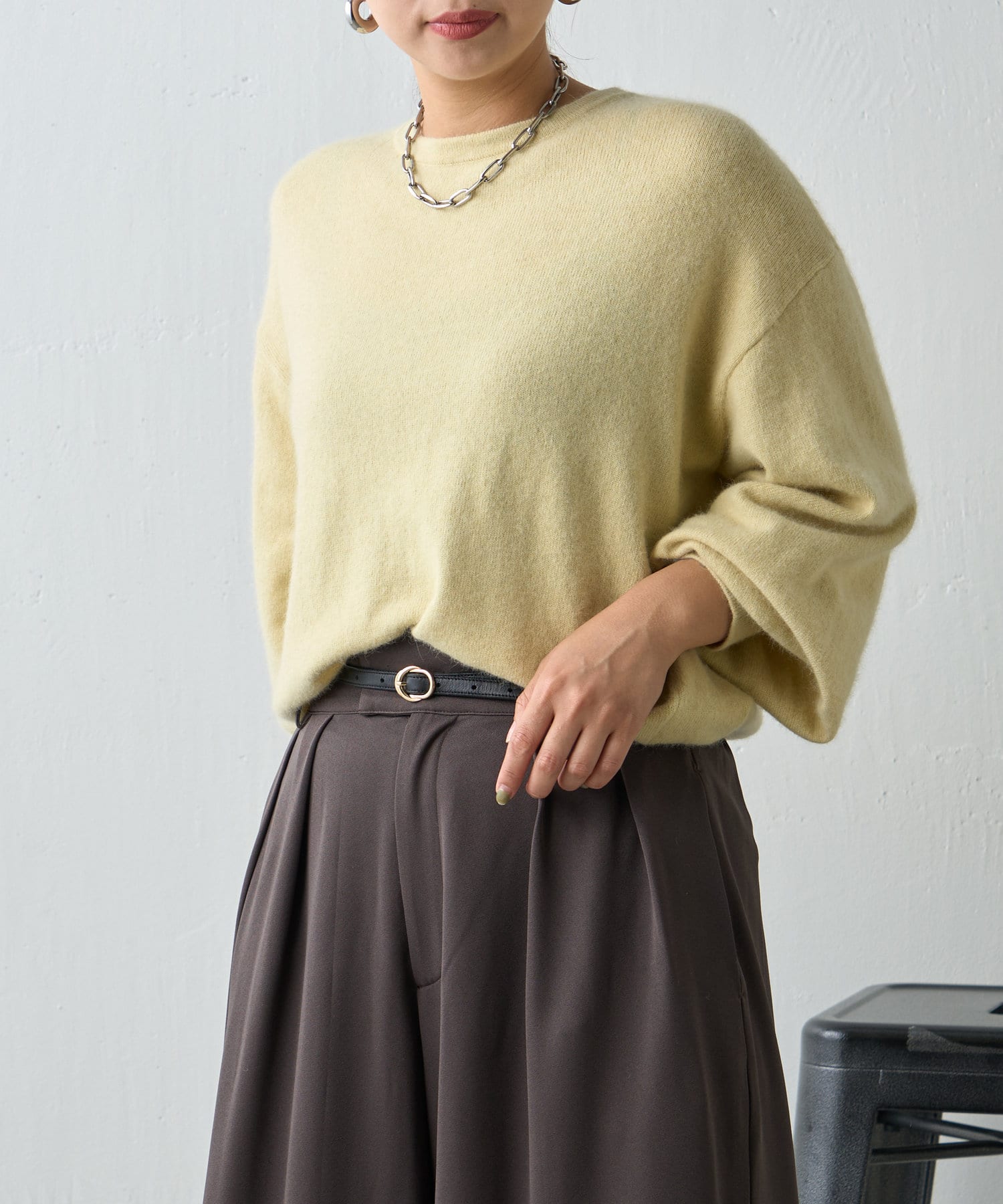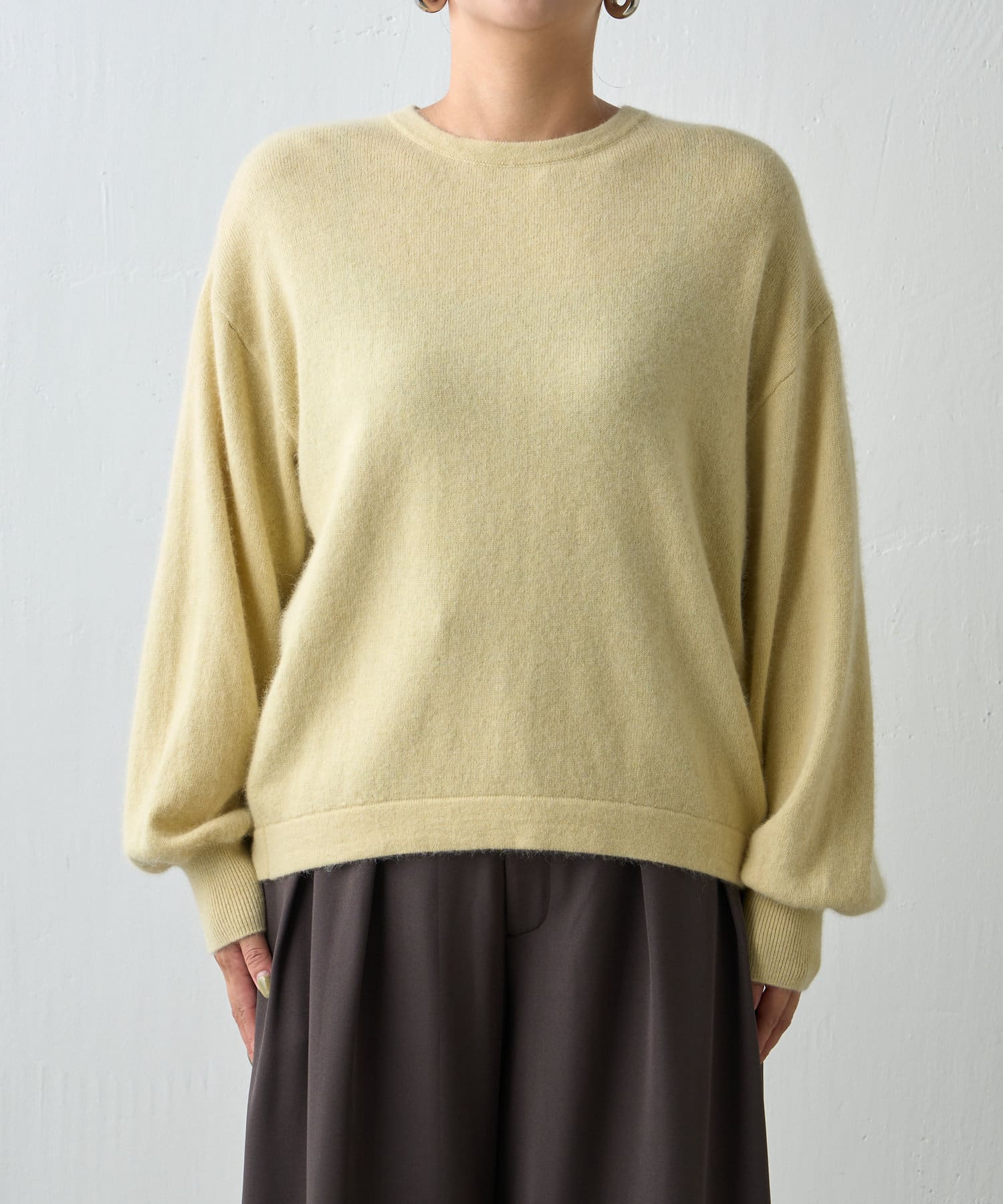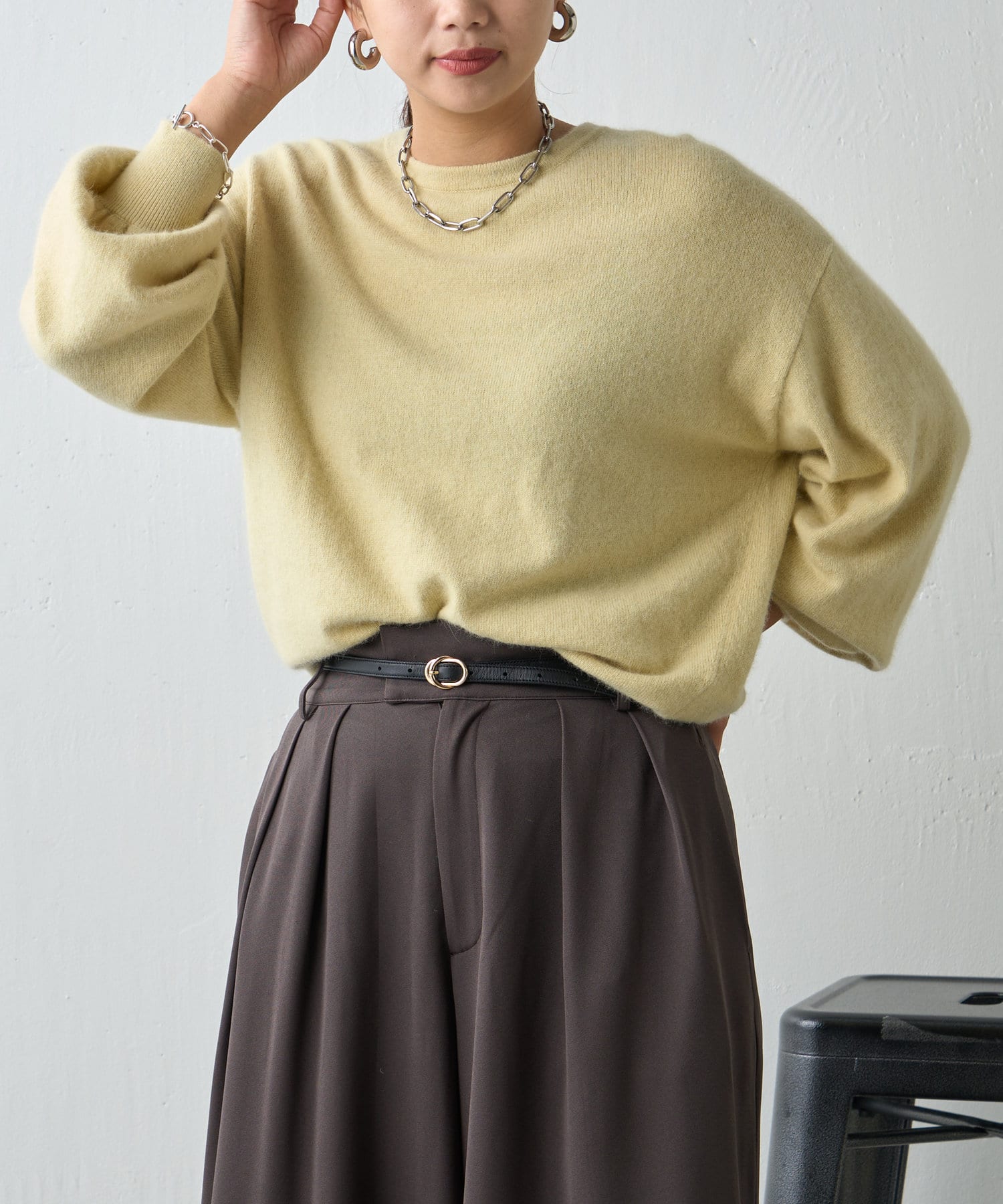 ふわふわの素材感が季節感のあるニット。
