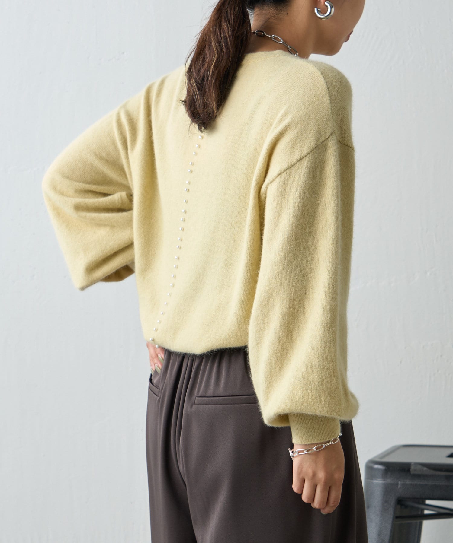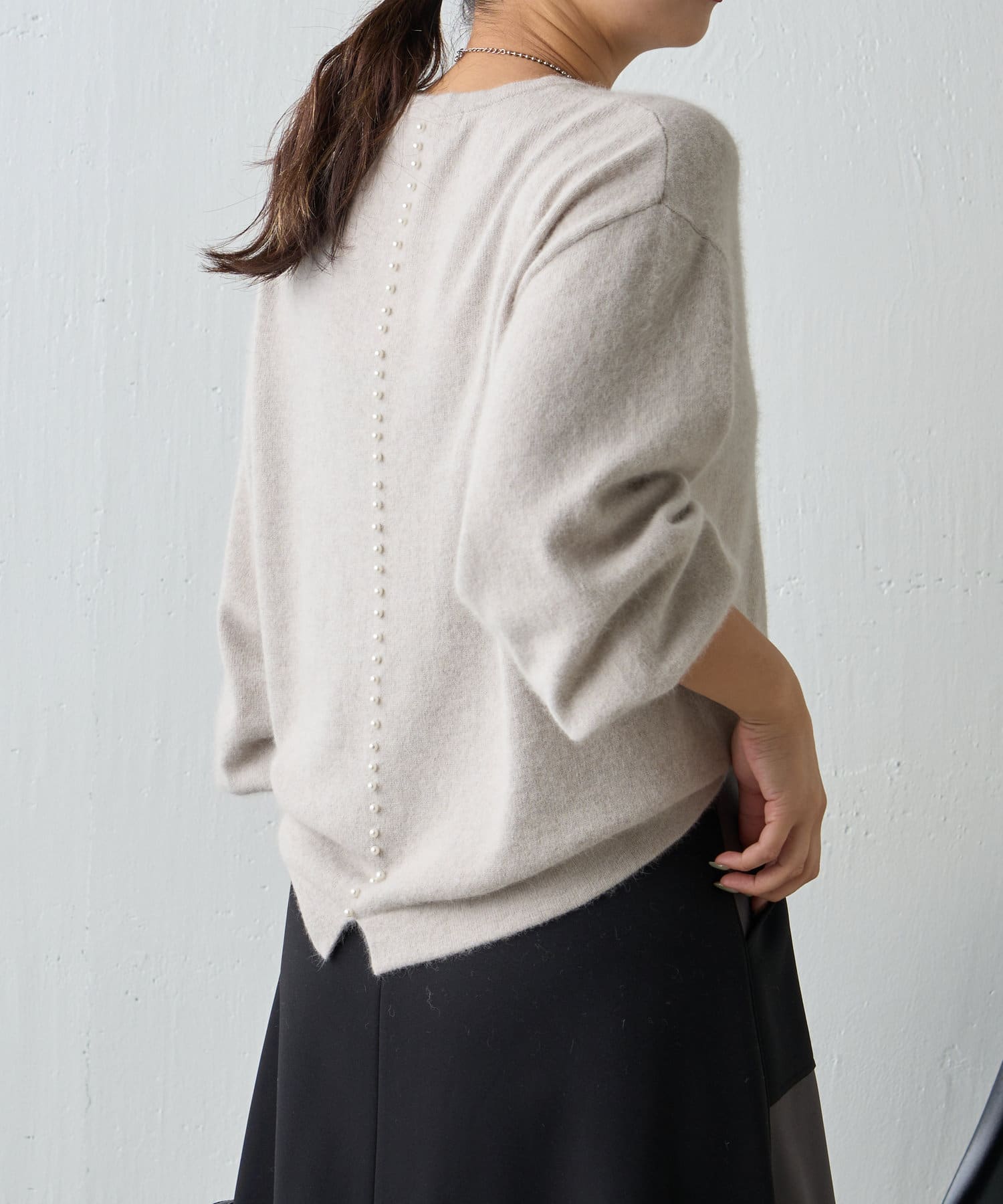 ・バックデザインのパールが目を惹く一枚。