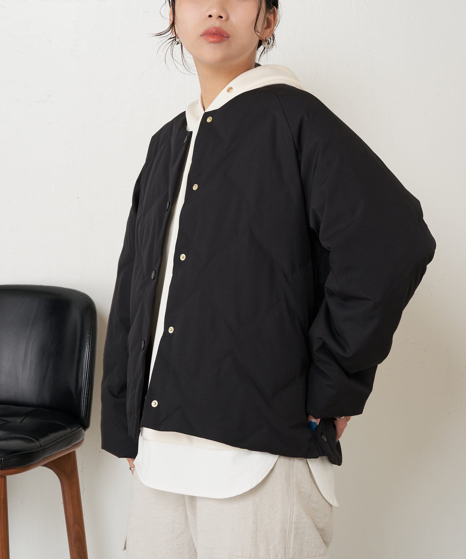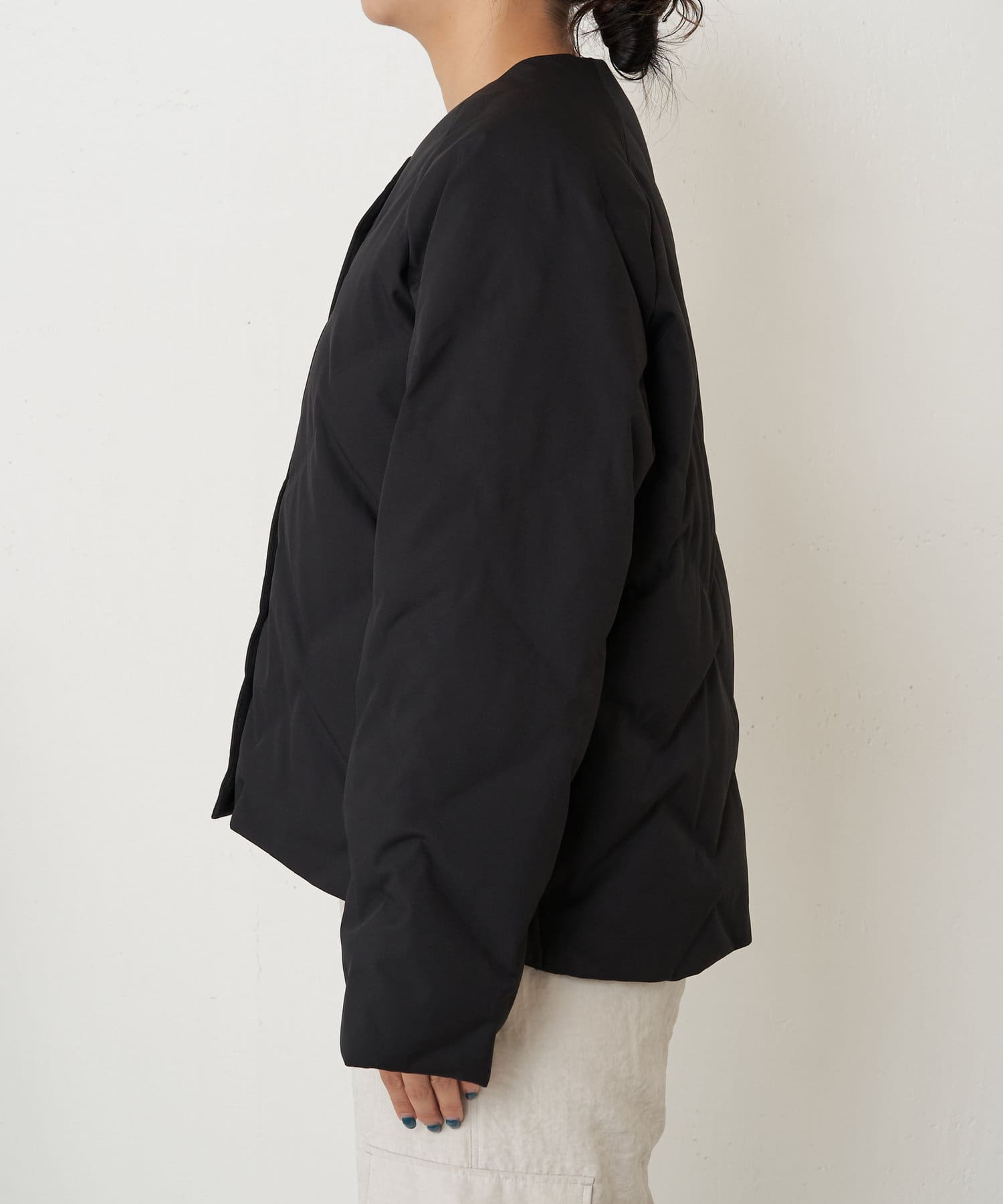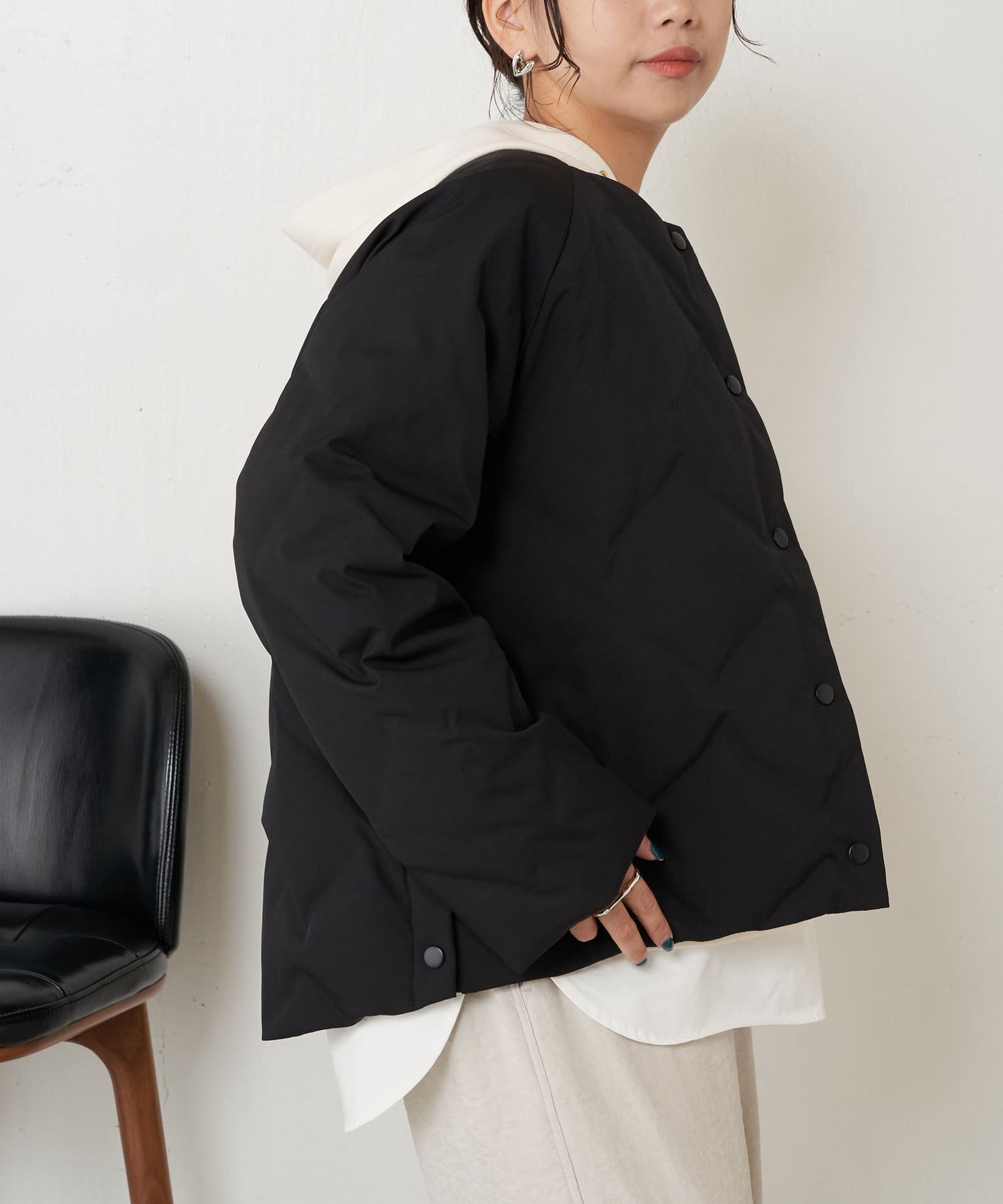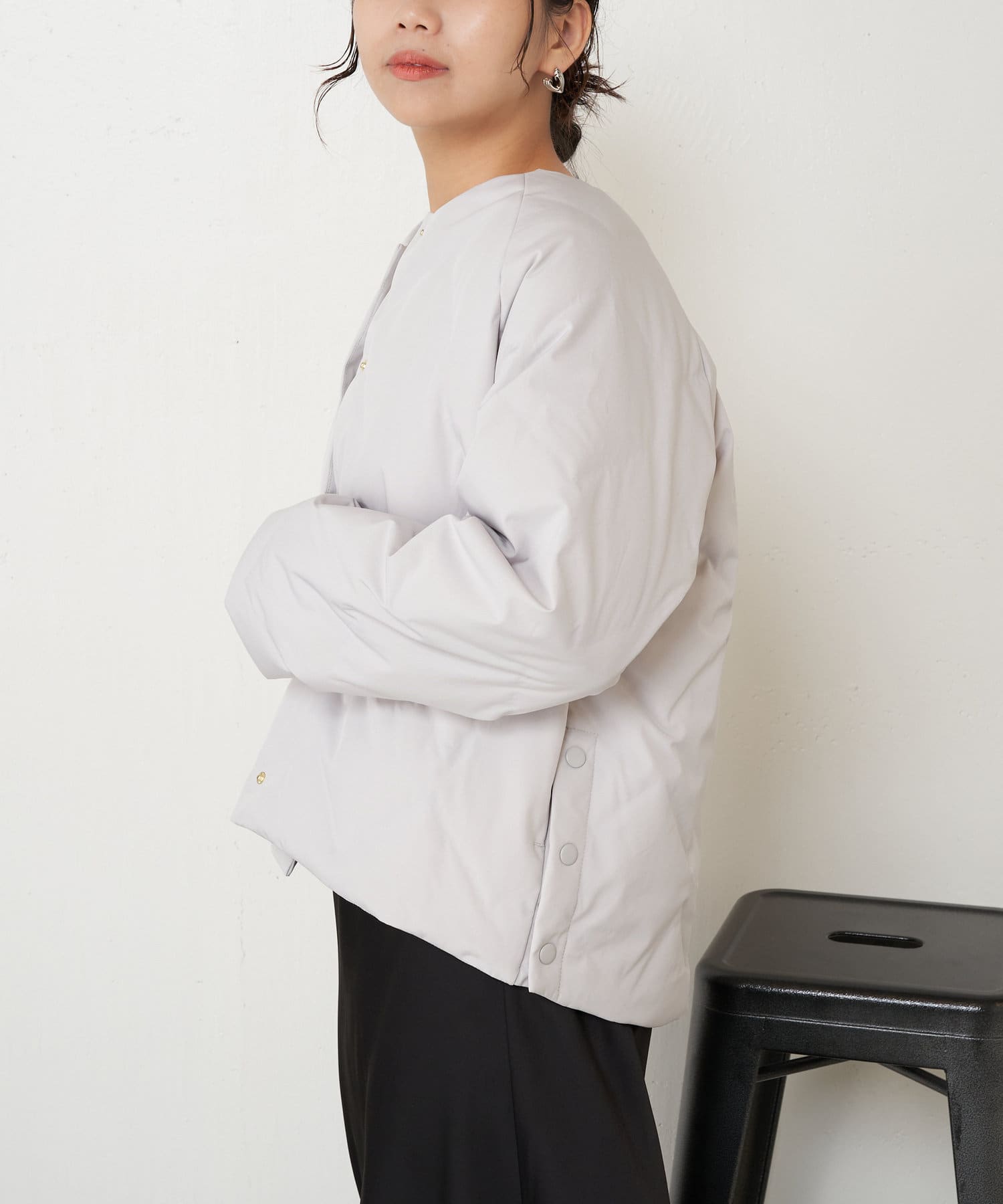 ・ショート丈でバランスが取りやすく、合わせるボトムを選ばず着回しのきく一枚です。