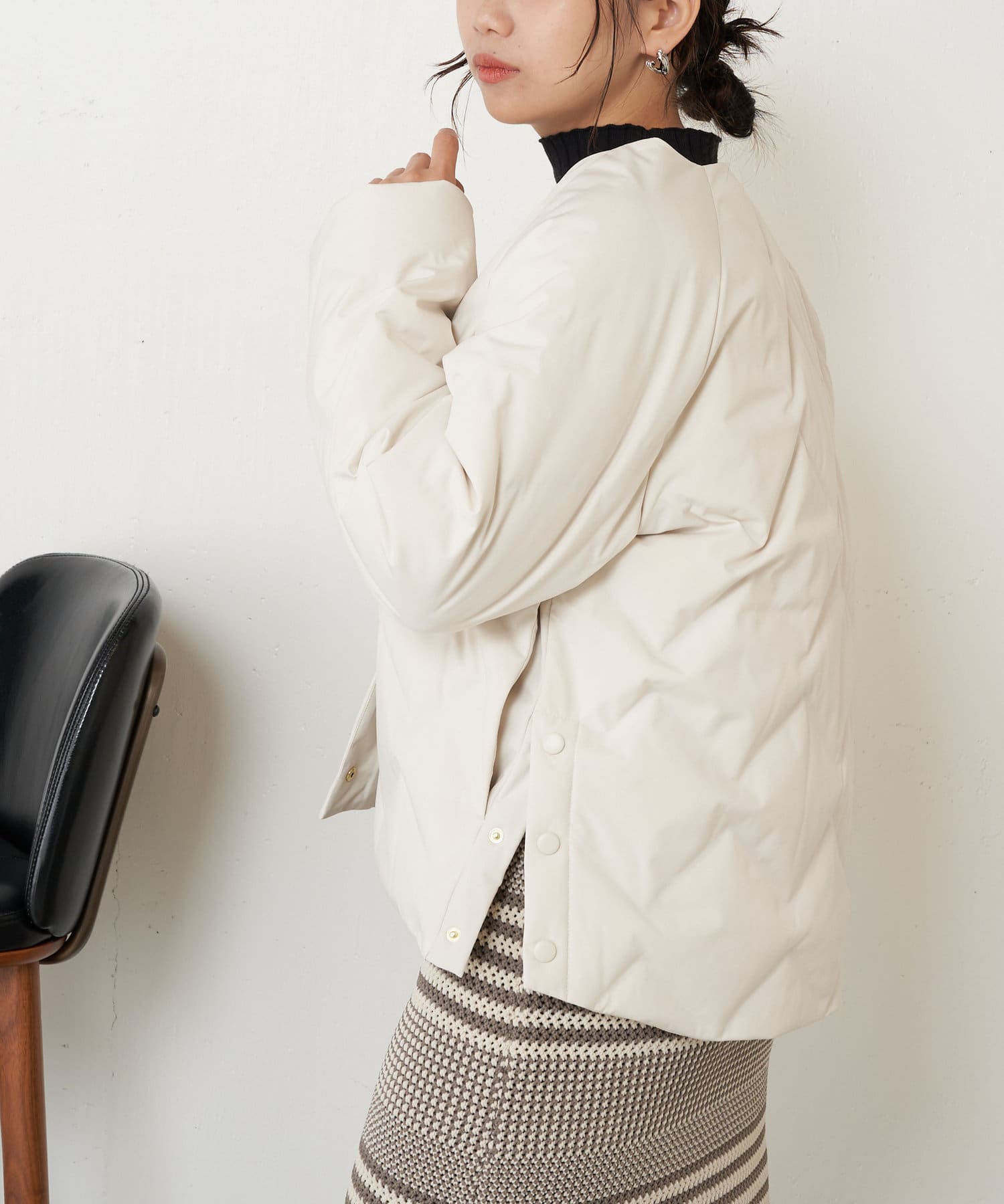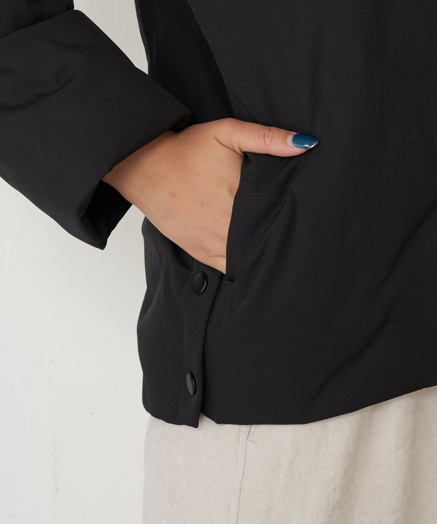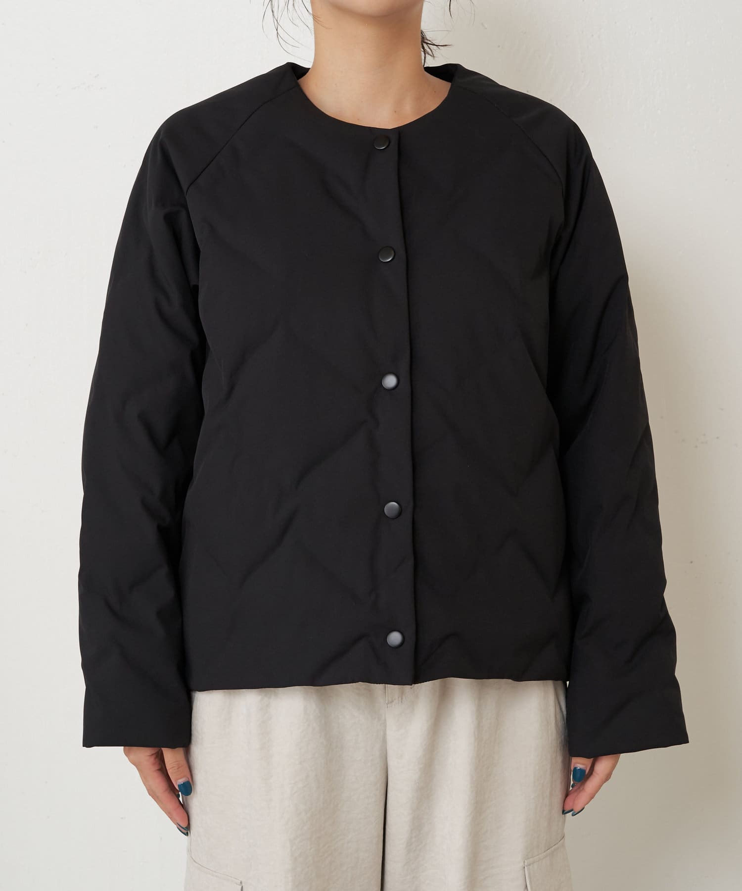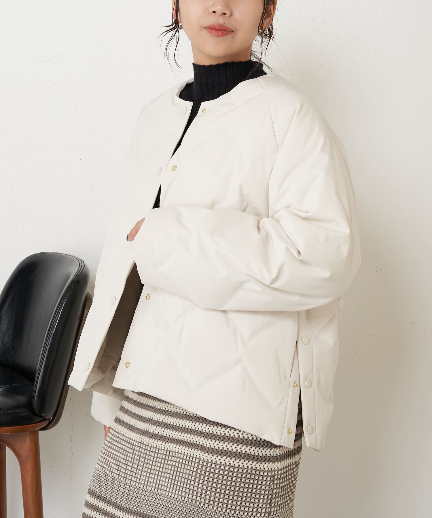 ・ショート丈でバランスが取りやすく、合わせるボトムを選ばず着回しのきく一枚です。