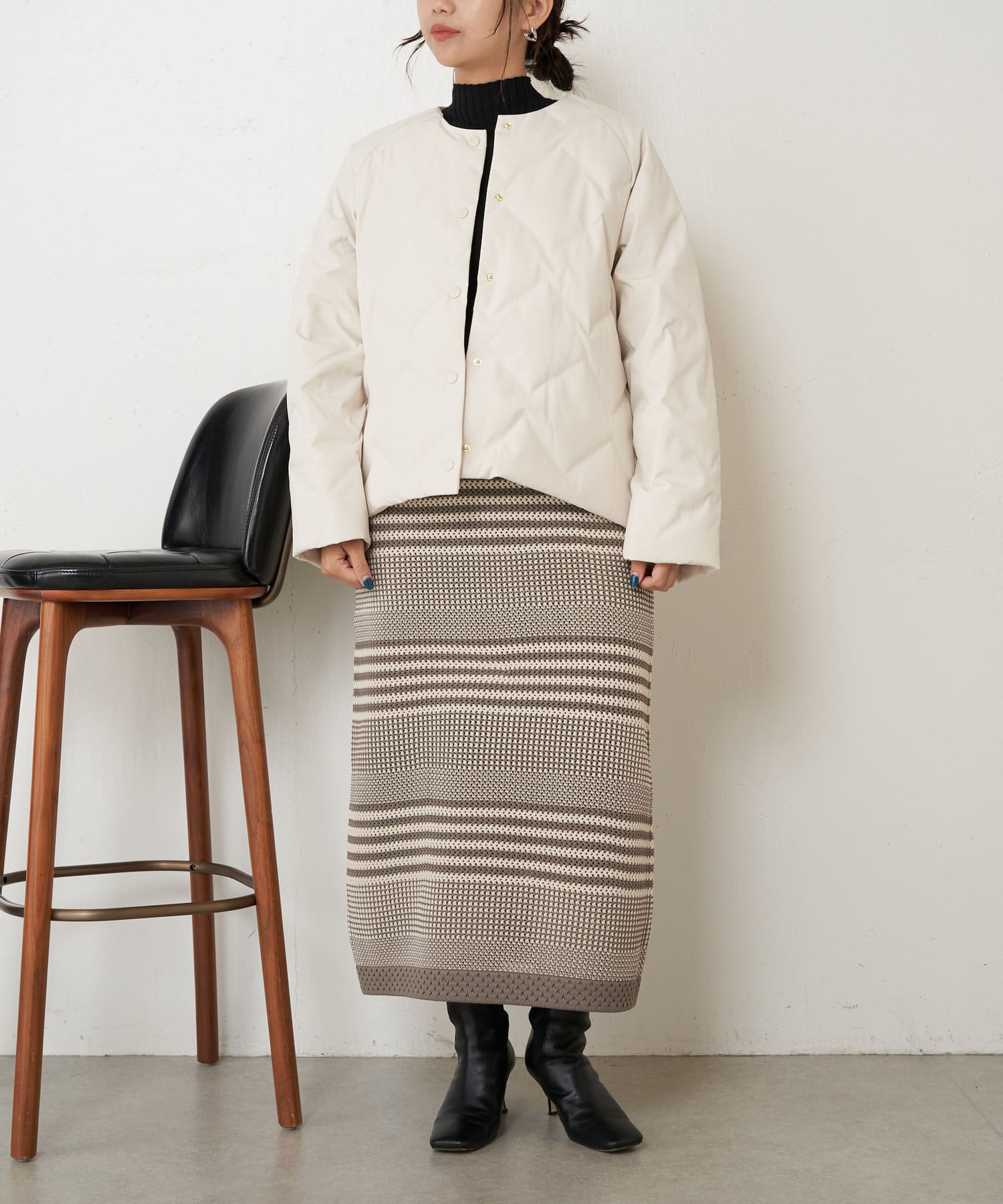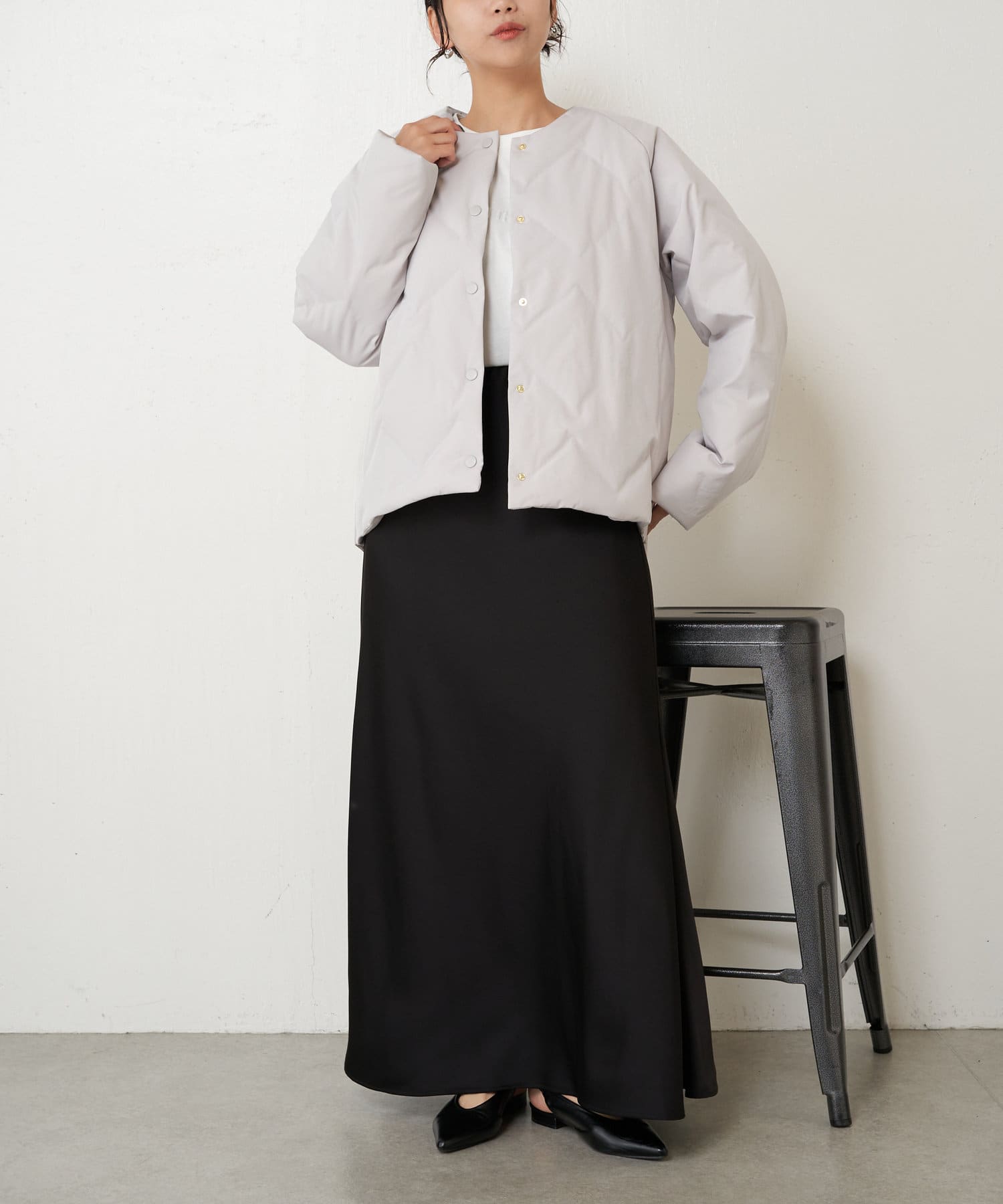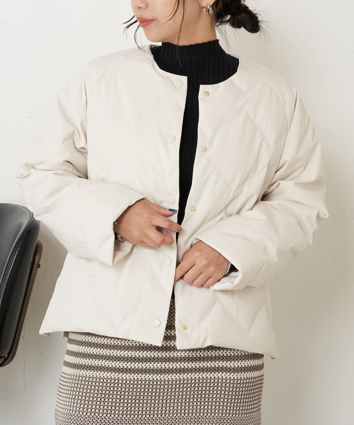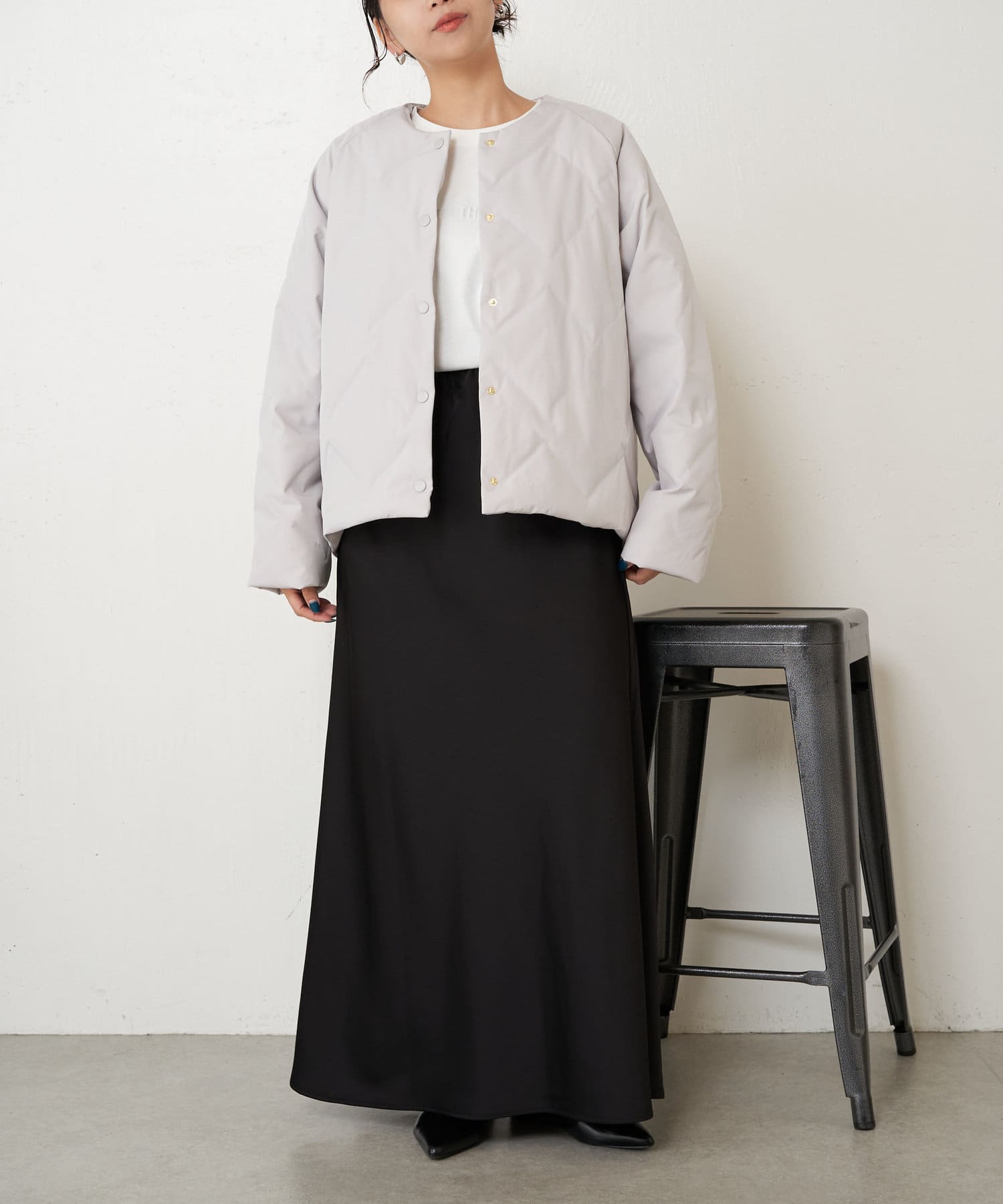 ・ショート丈でバランスが取りやすく、合わせるボトムを選ばず着回しのきく一枚です。
