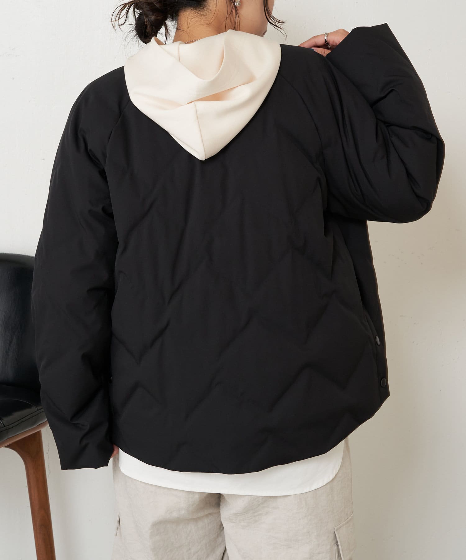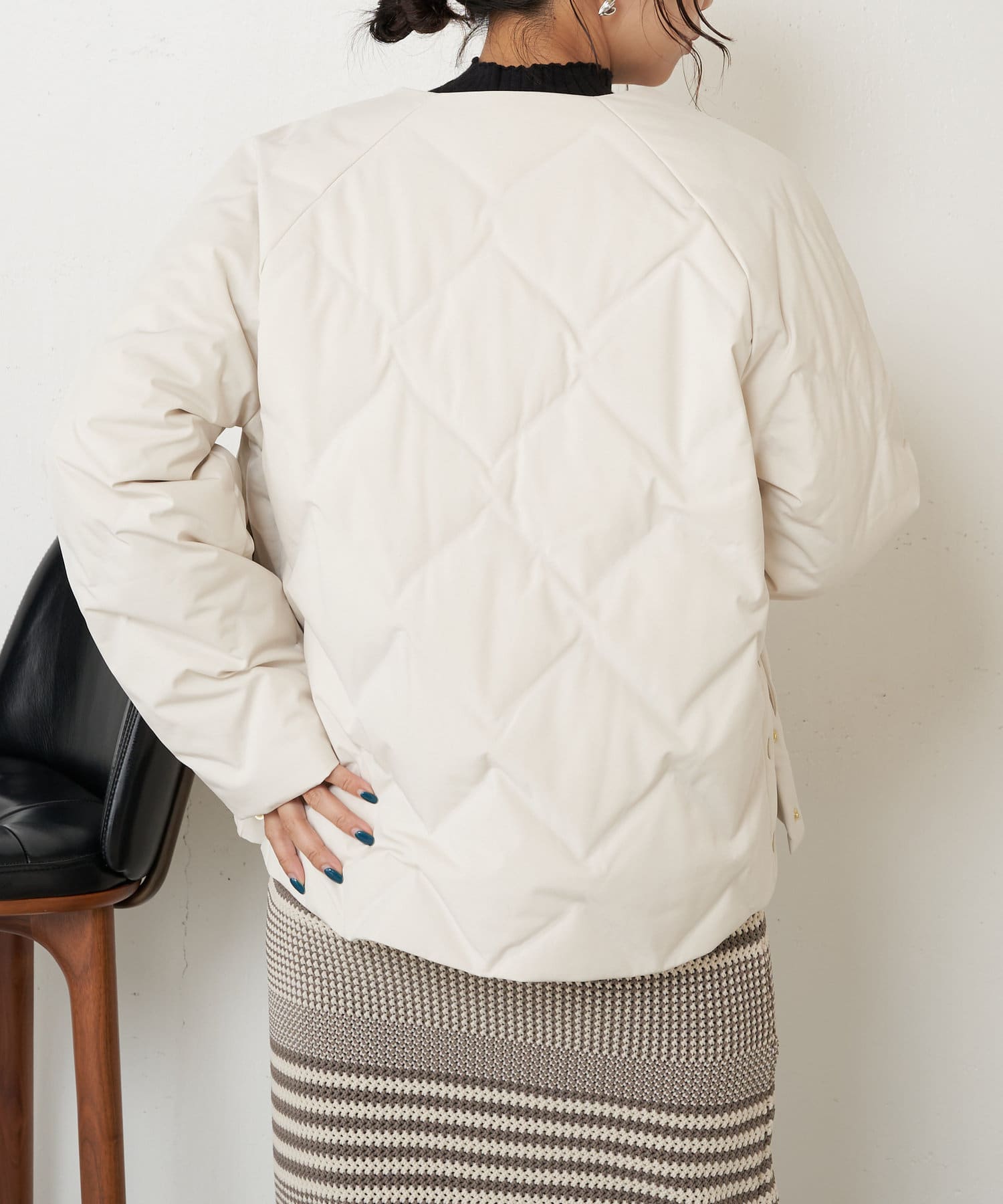 ・縫い目がないキルティングの仕上げをすることで、ダウンが出てきにくいのが嬉しいポイント。