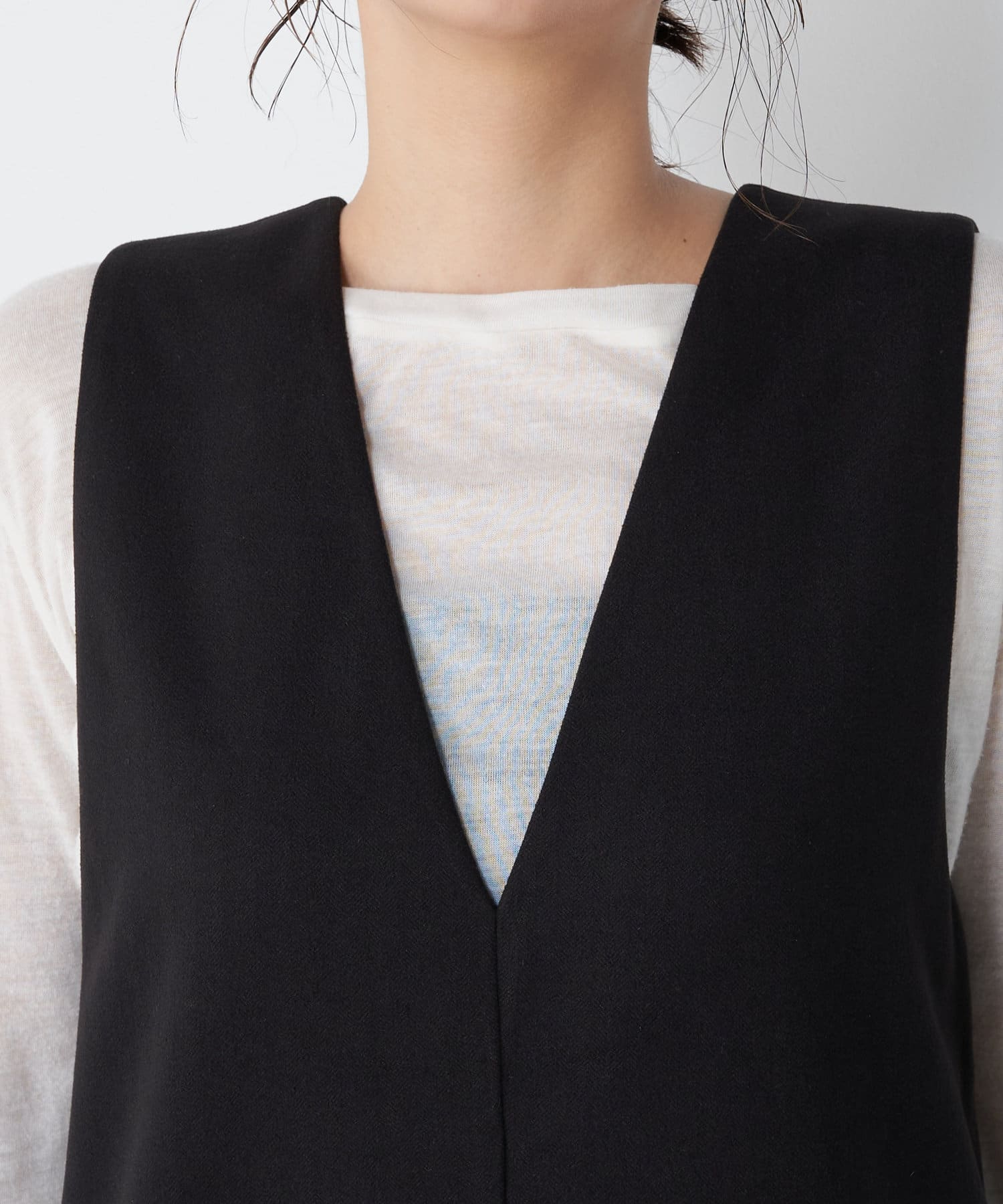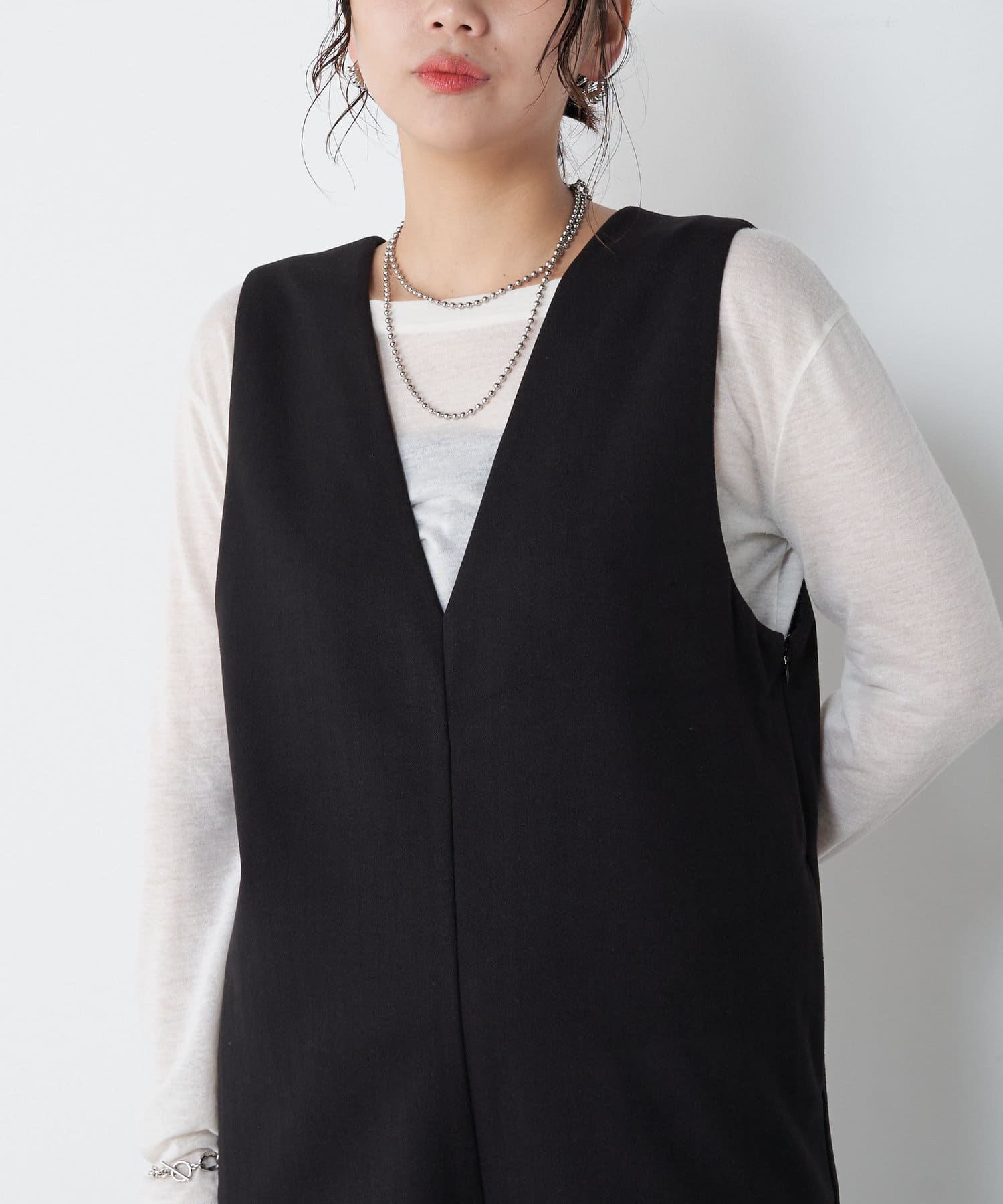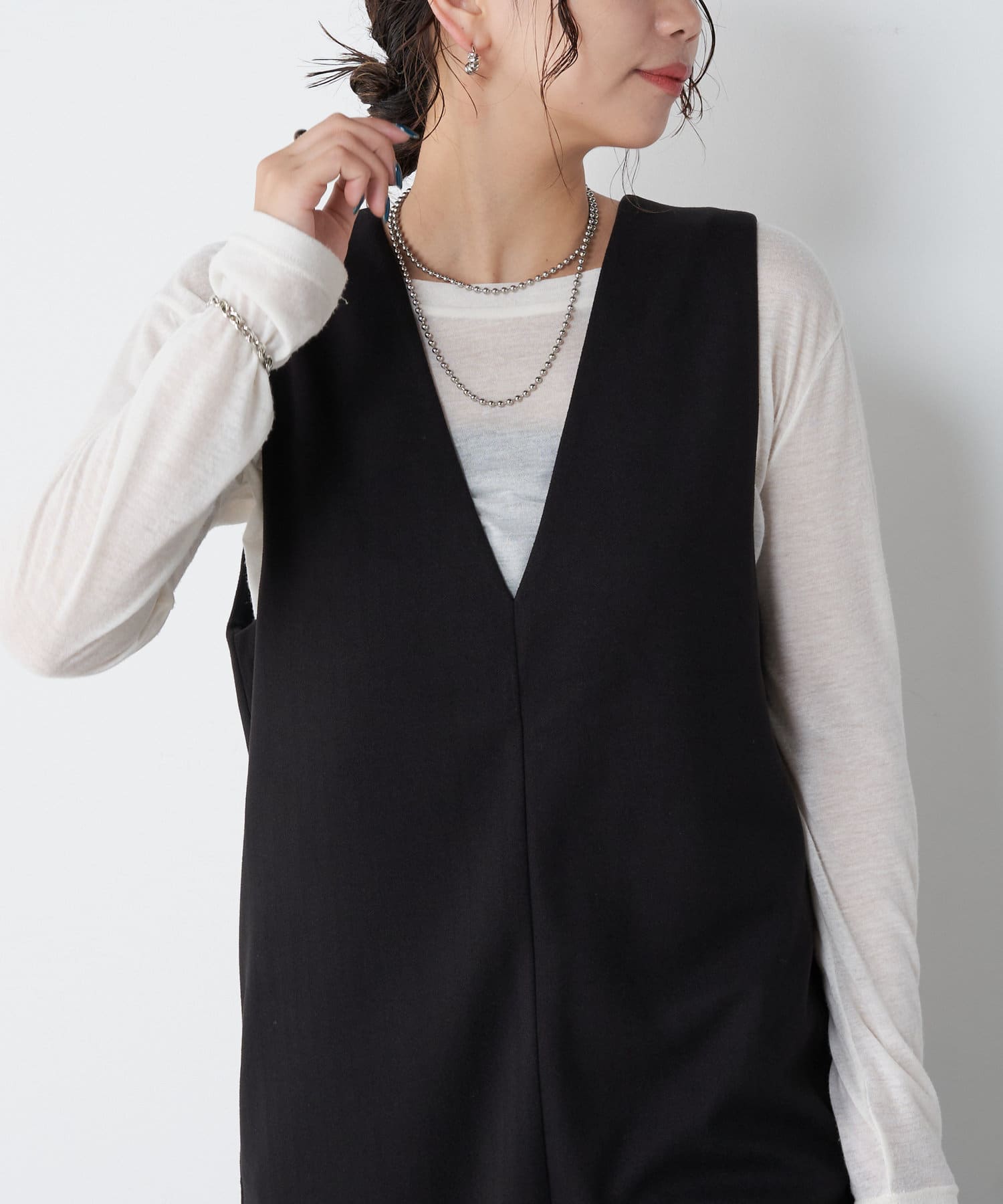 ・ロンTやリブニットとのレイヤードスタイルもおすすめ。