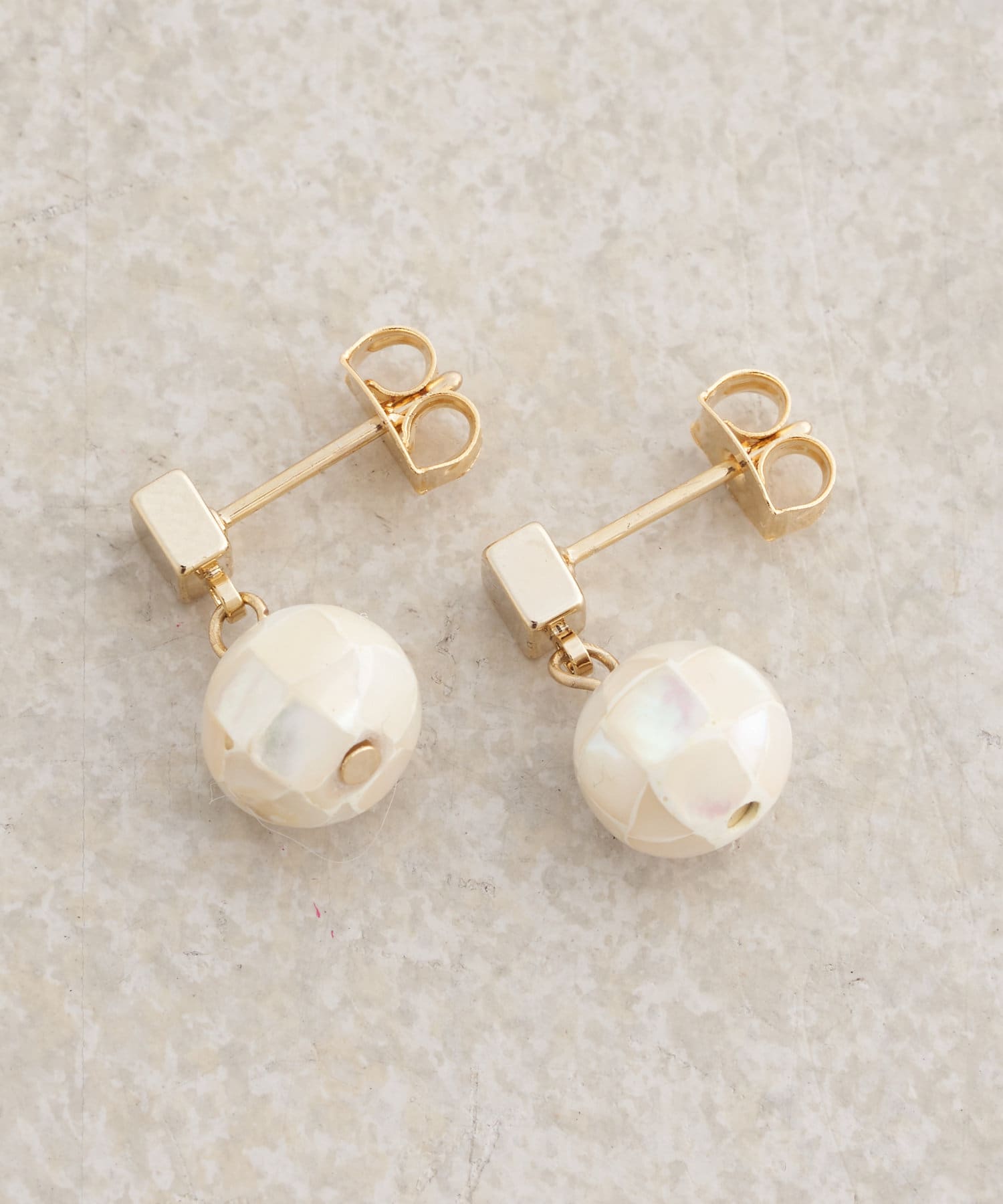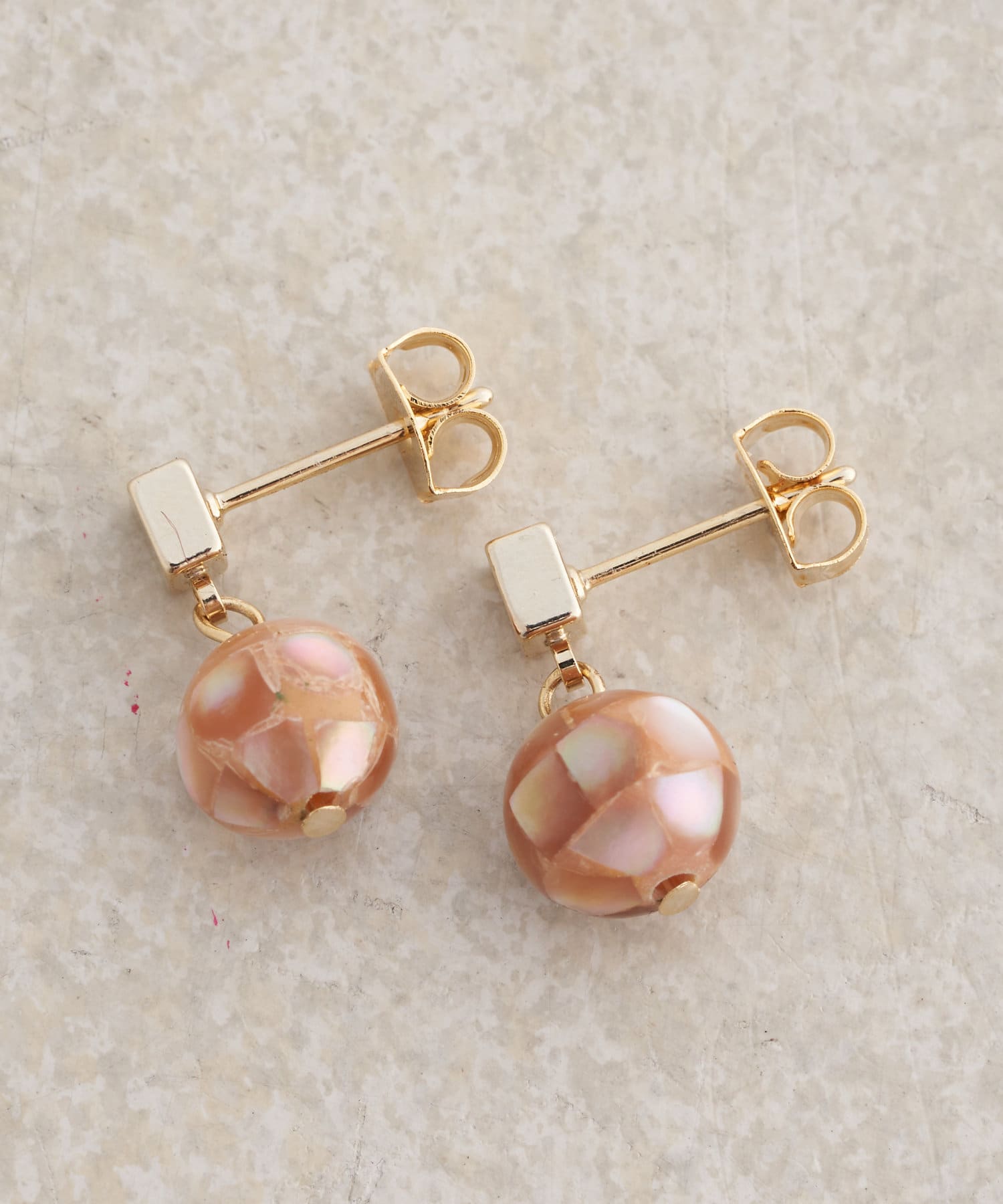 ・シェルのカラーボールのモチーフが女子らしい印象を与えてくれるピアス。
