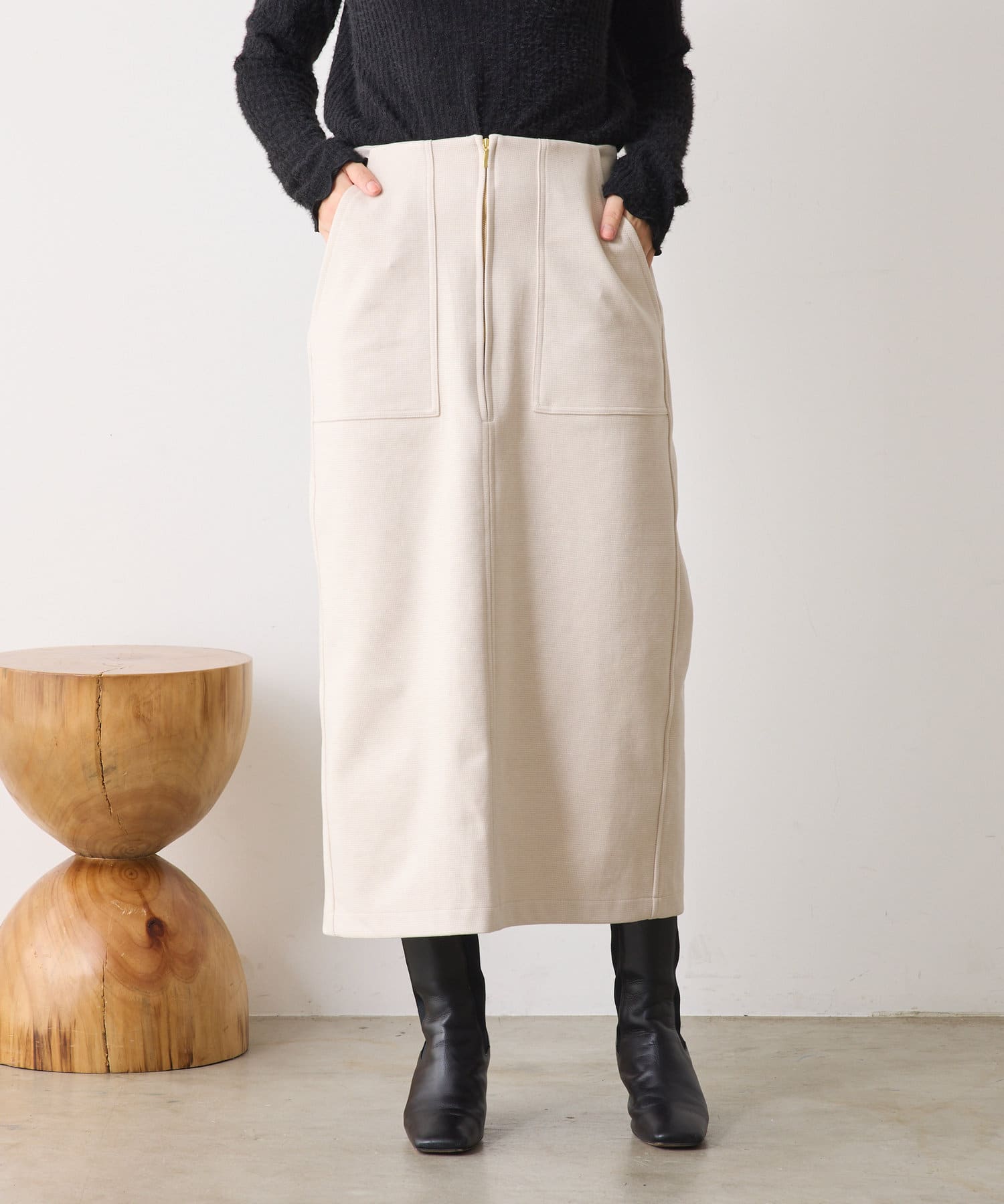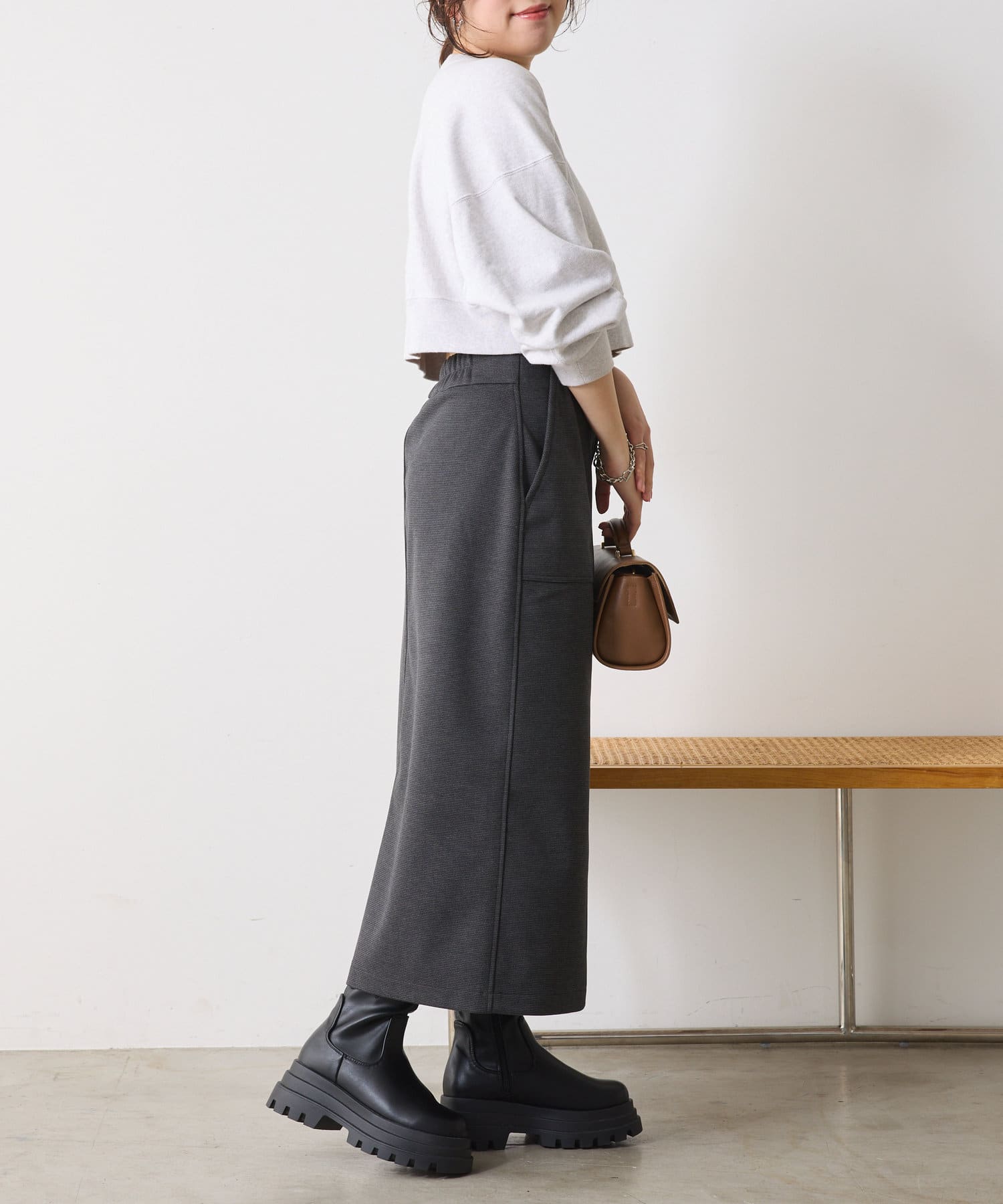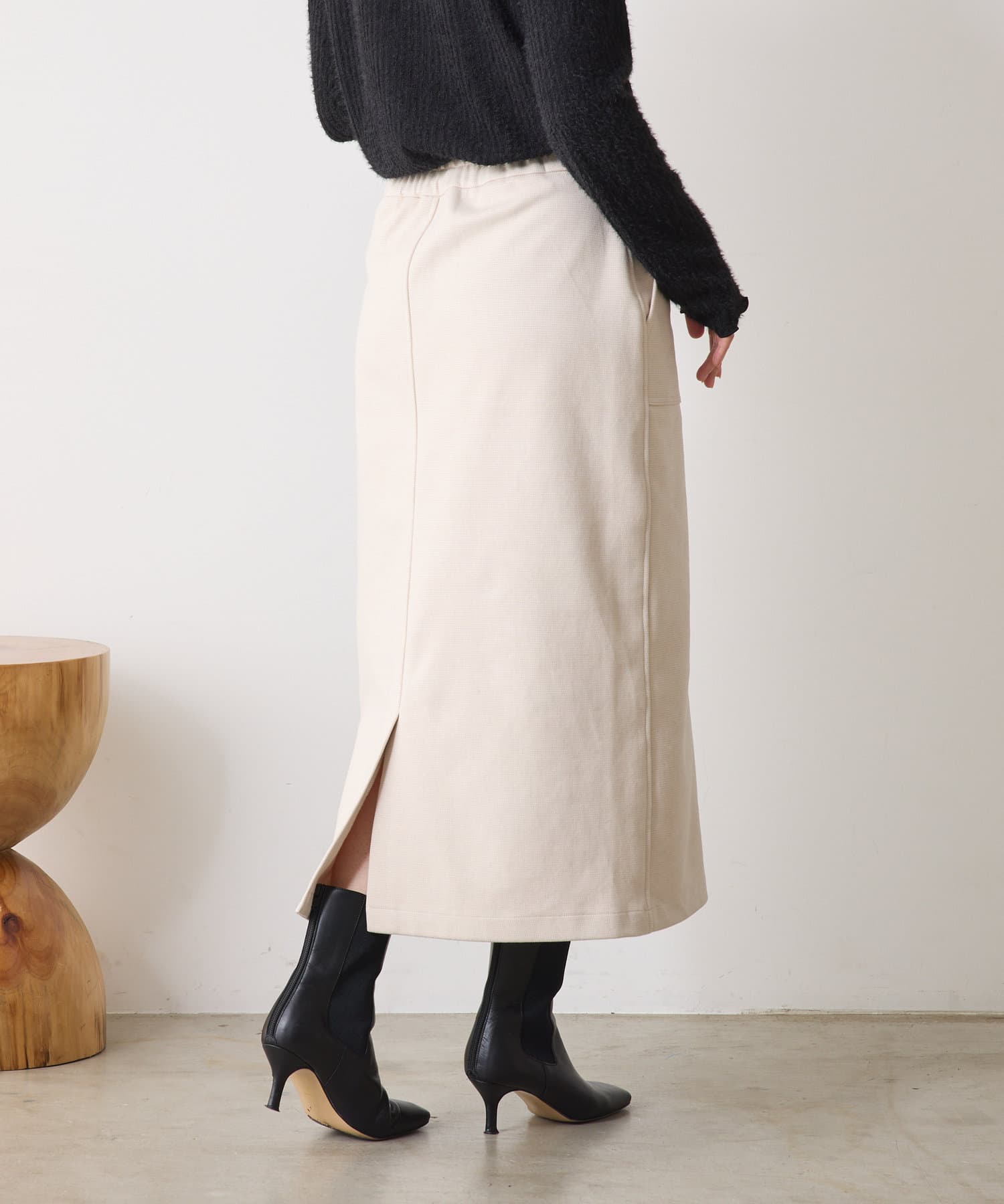 ・台形シルエットがウエスト回りをすっきりとした印象に見せてくれます。