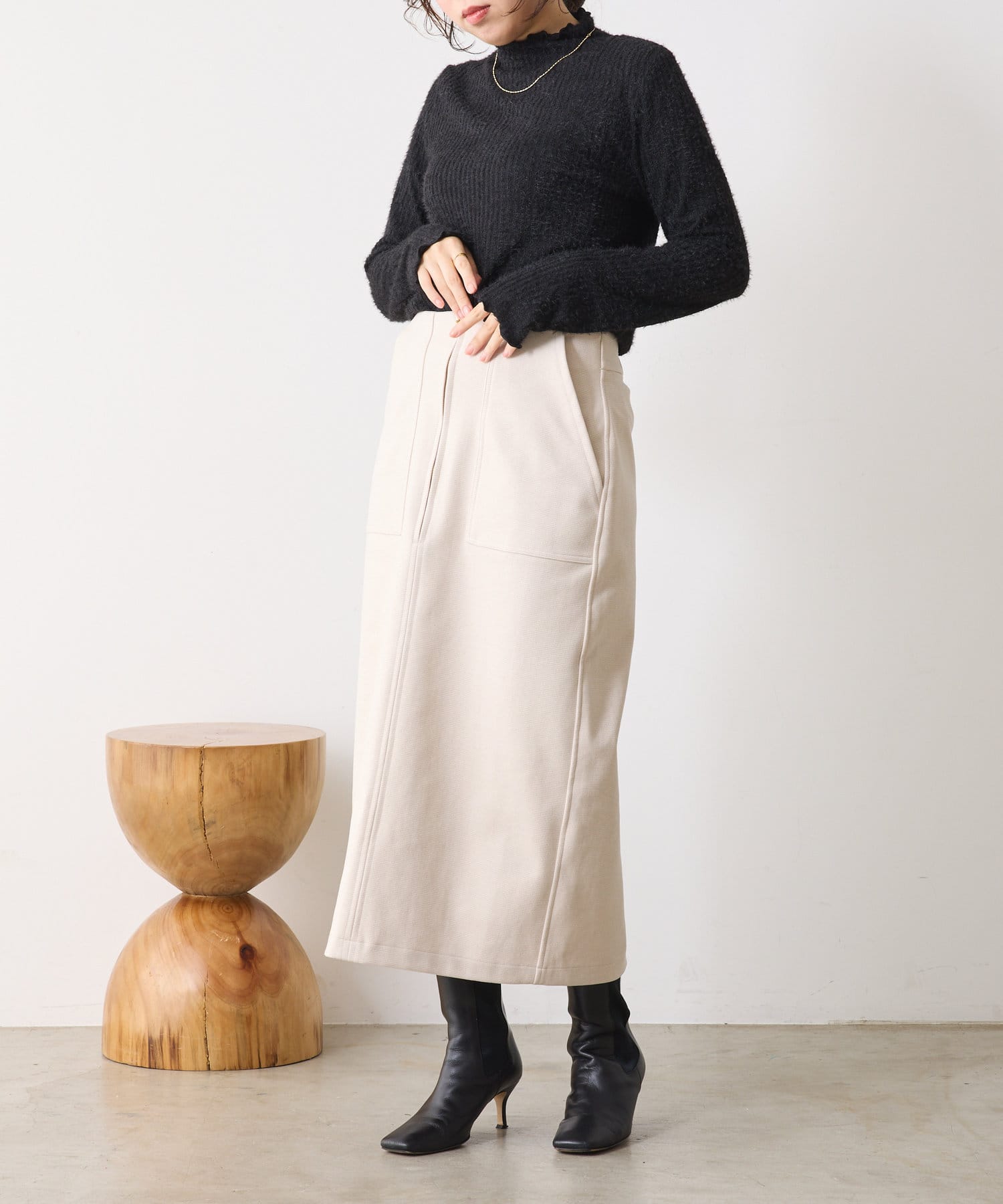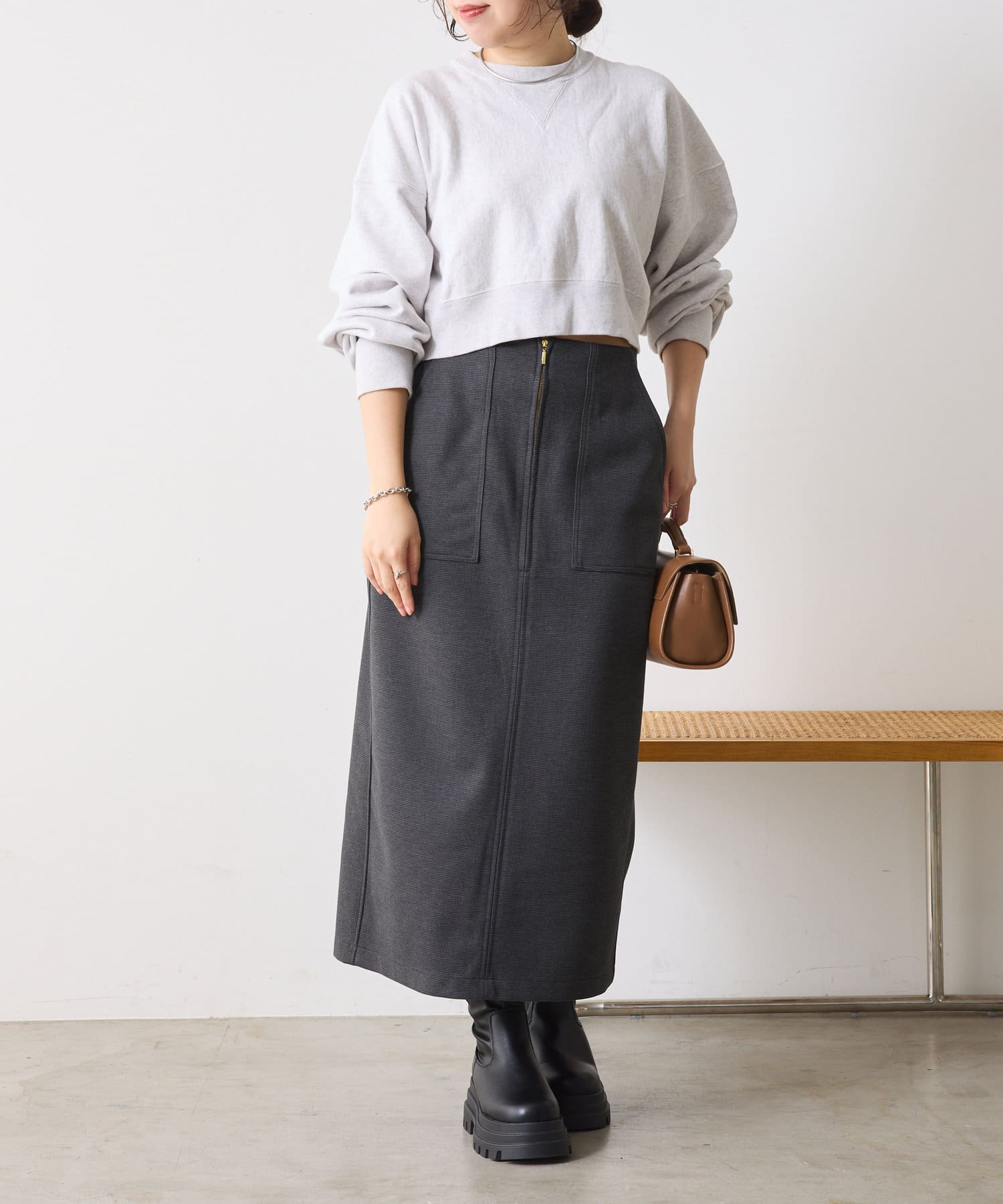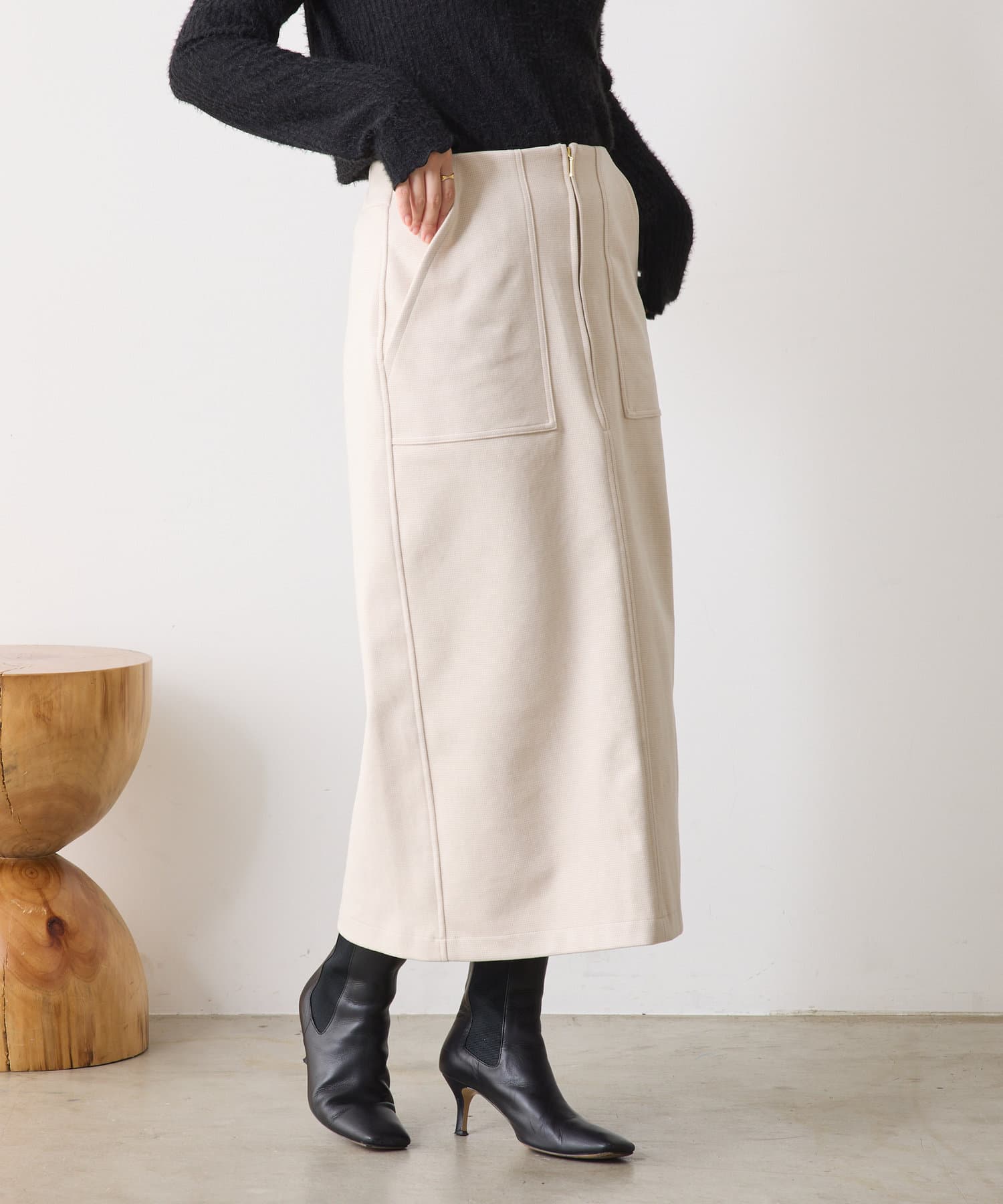 ・台形シルエットがウエスト回りをすっきりとした印象に見せてくれます。