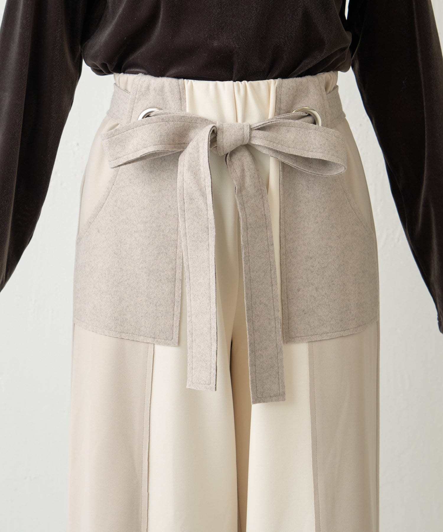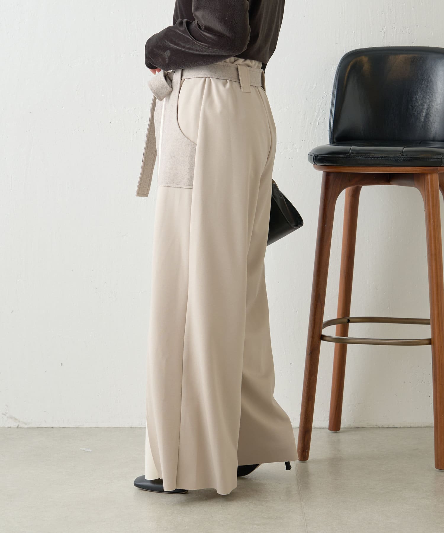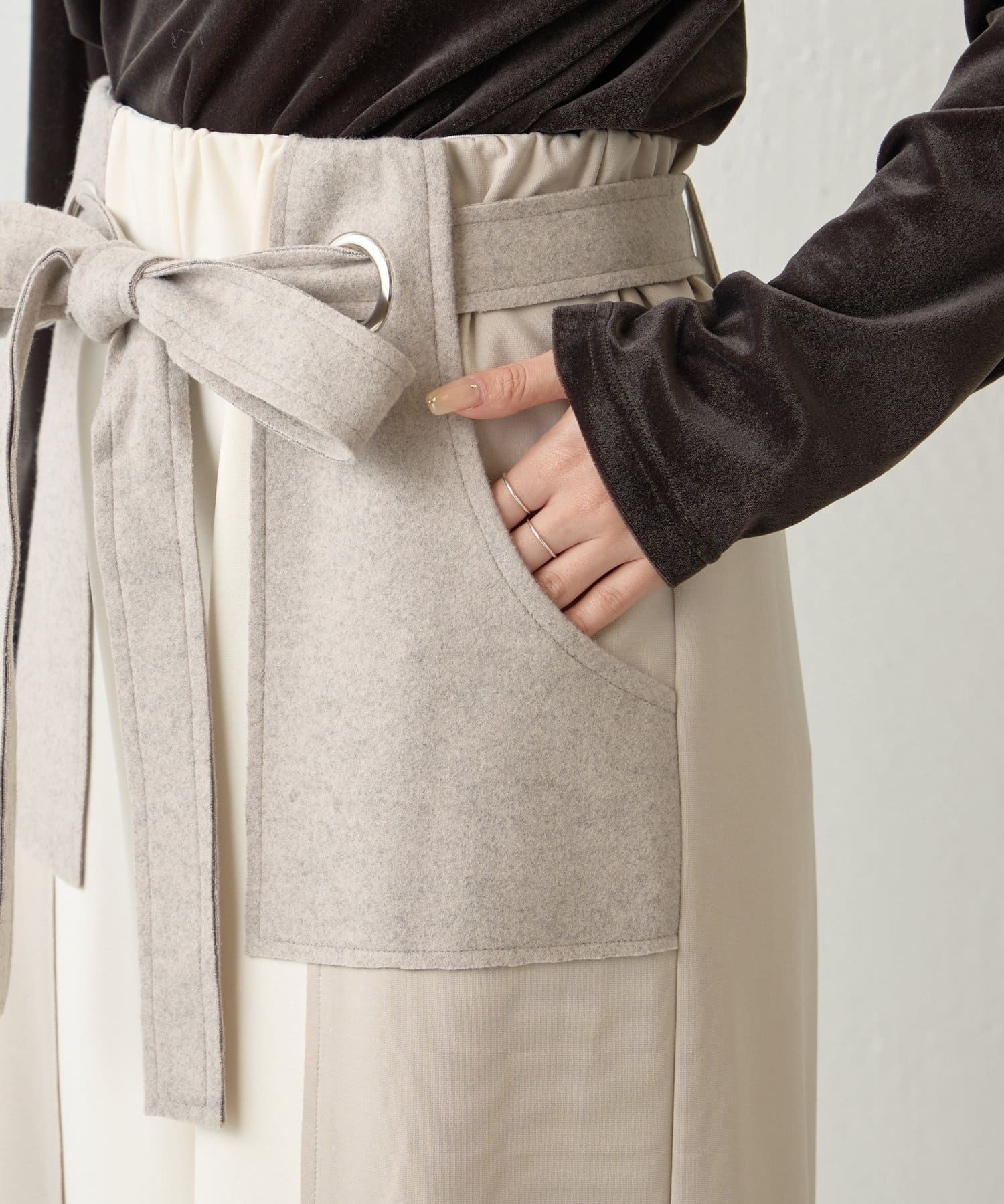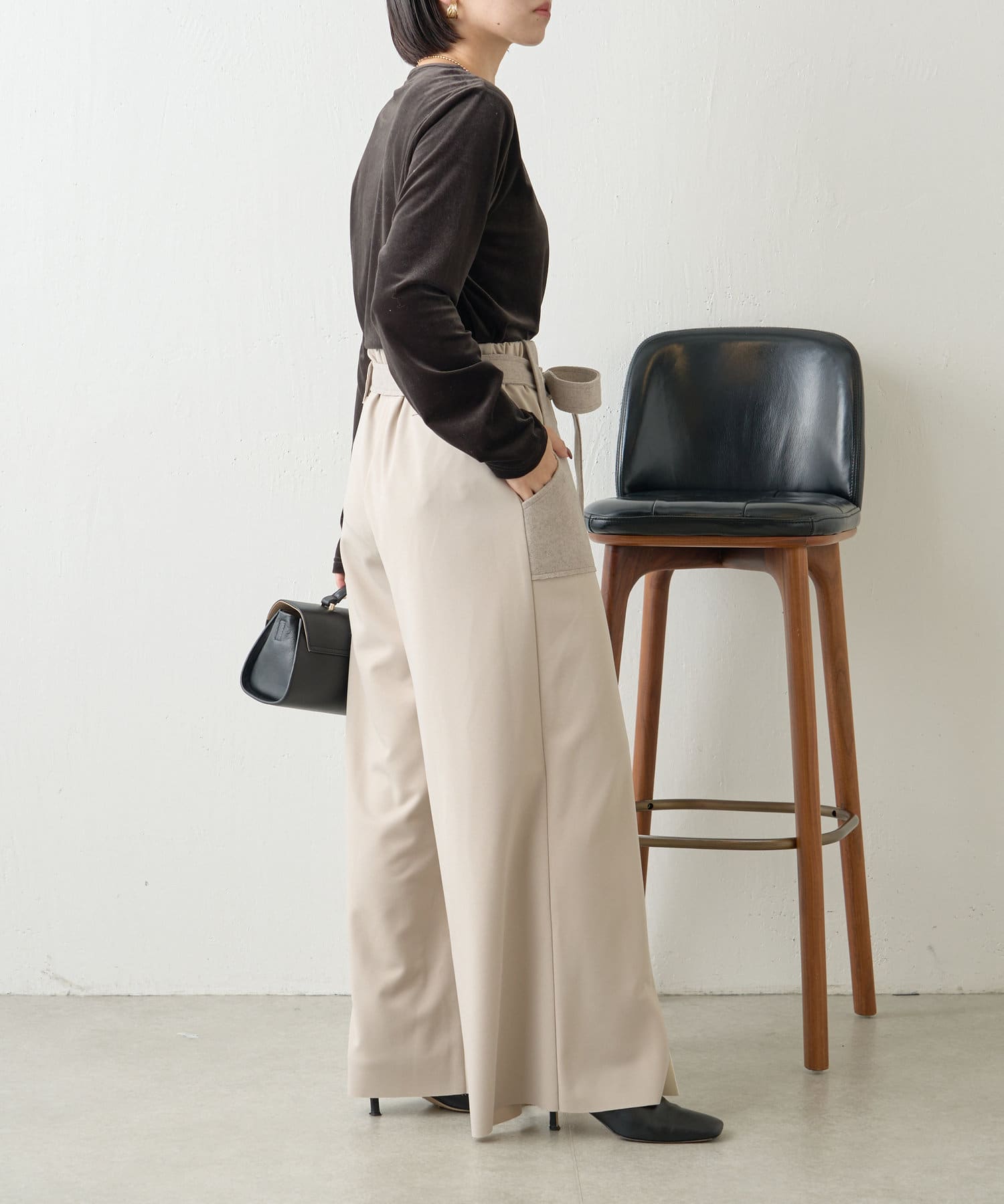 ・ポケットとリボンの部分がメルトン生地になっていることで一気に秋仕様に。