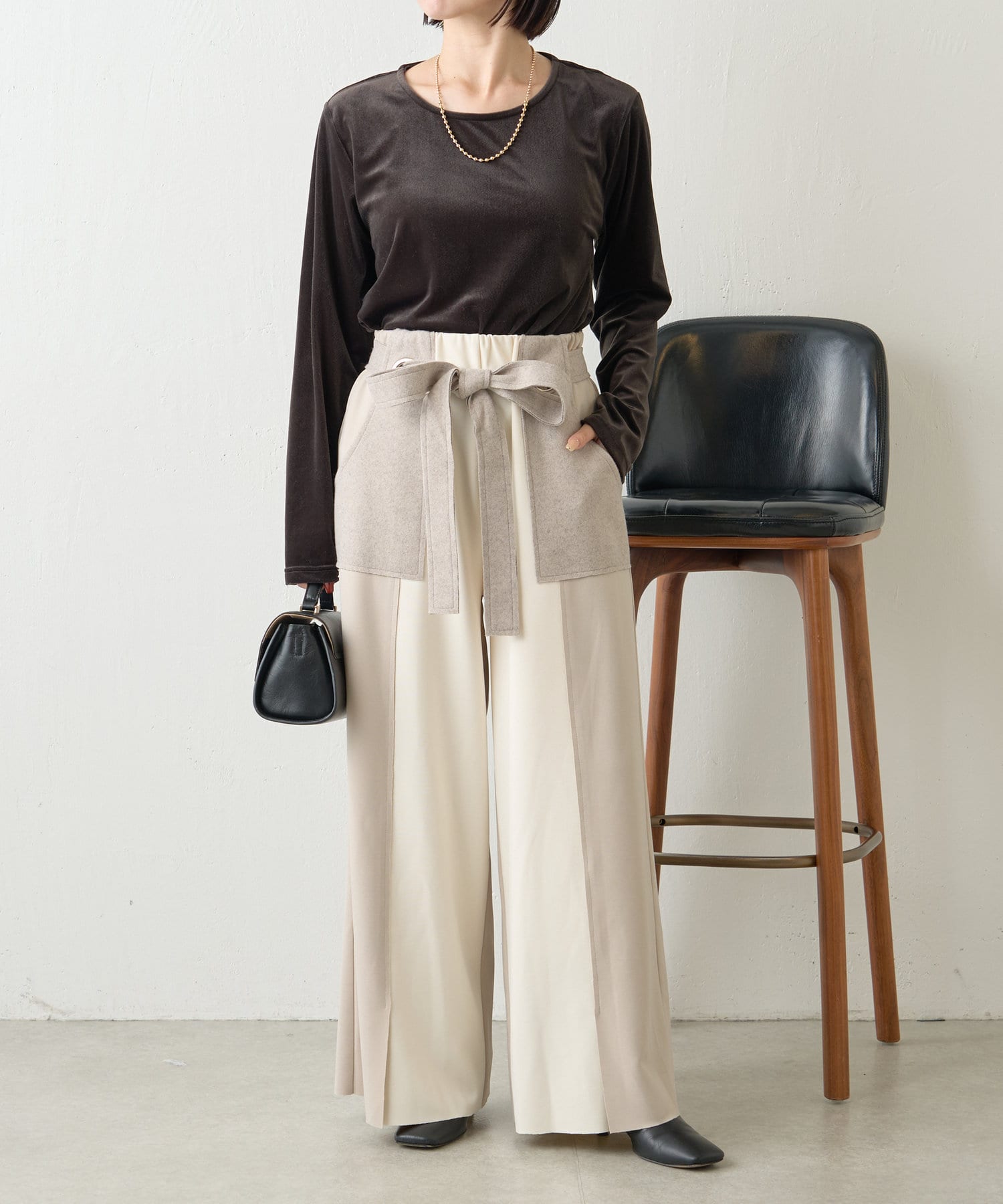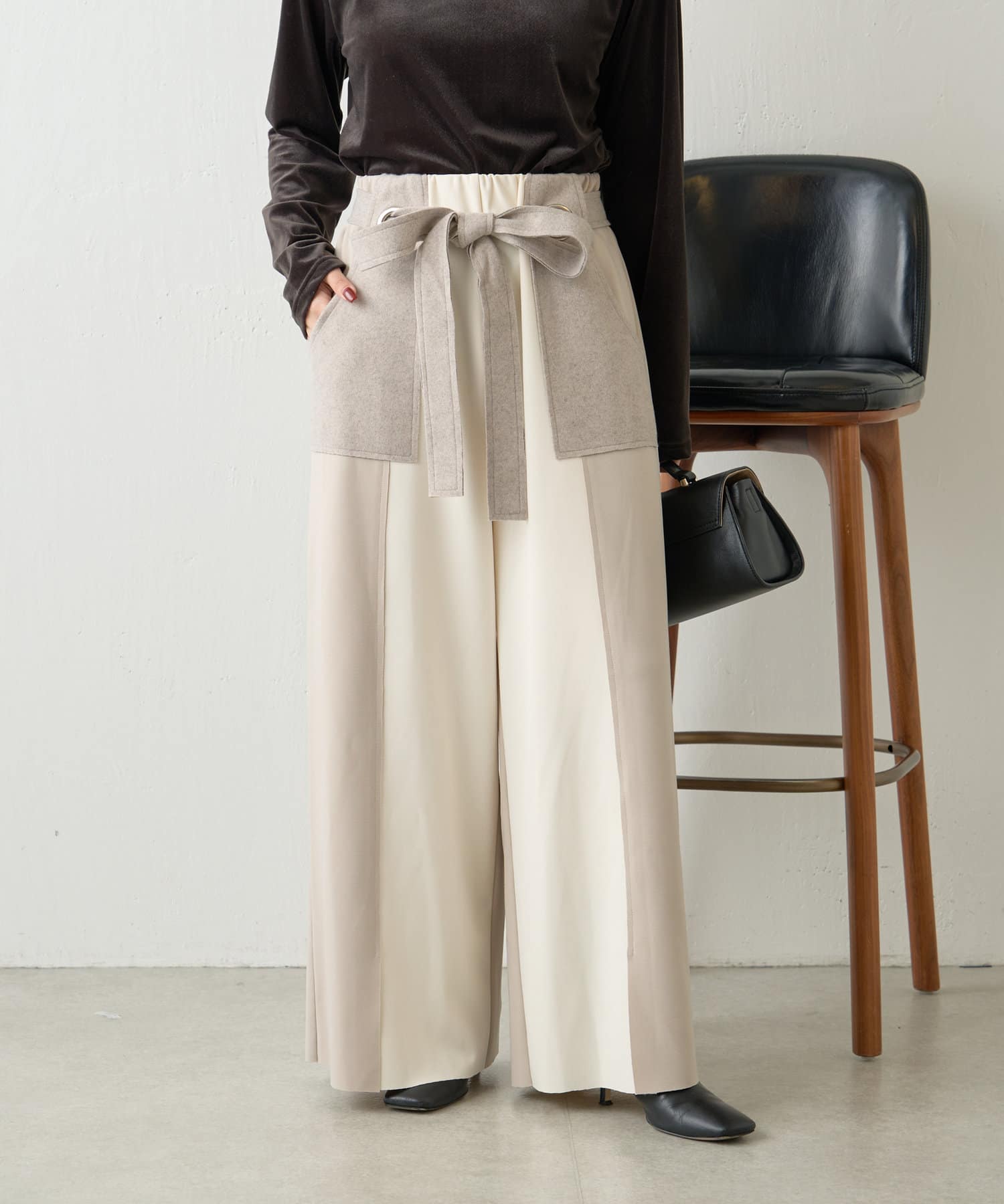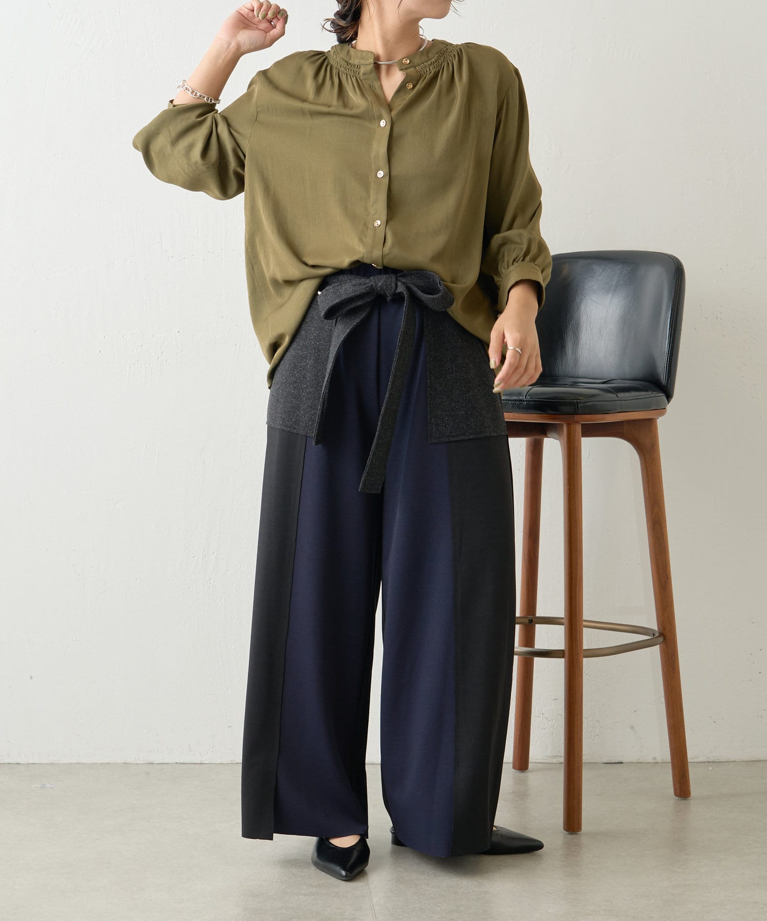 ・ポケットとリボンの部分がメルトン生地になっていることで一気に秋仕様に。