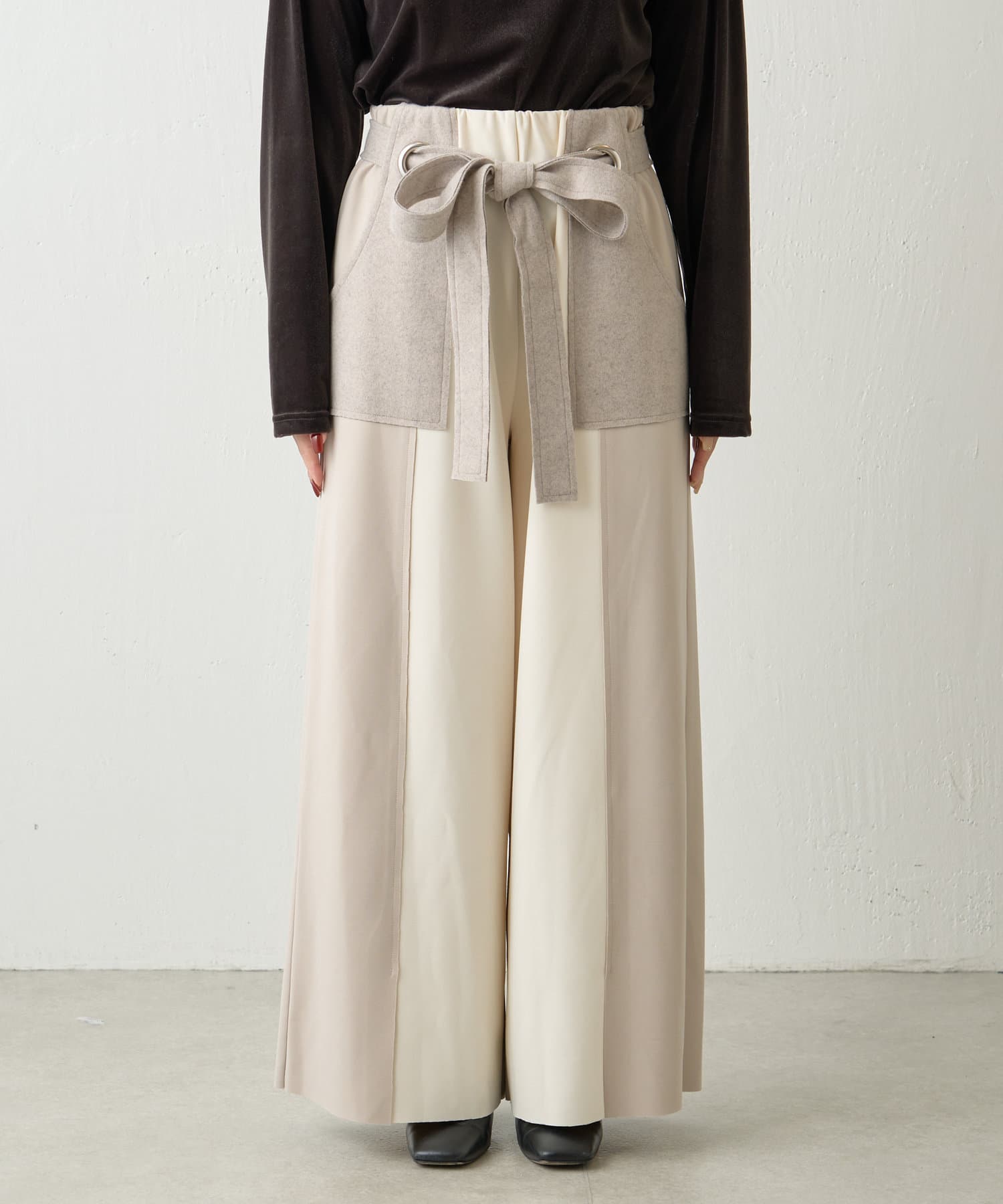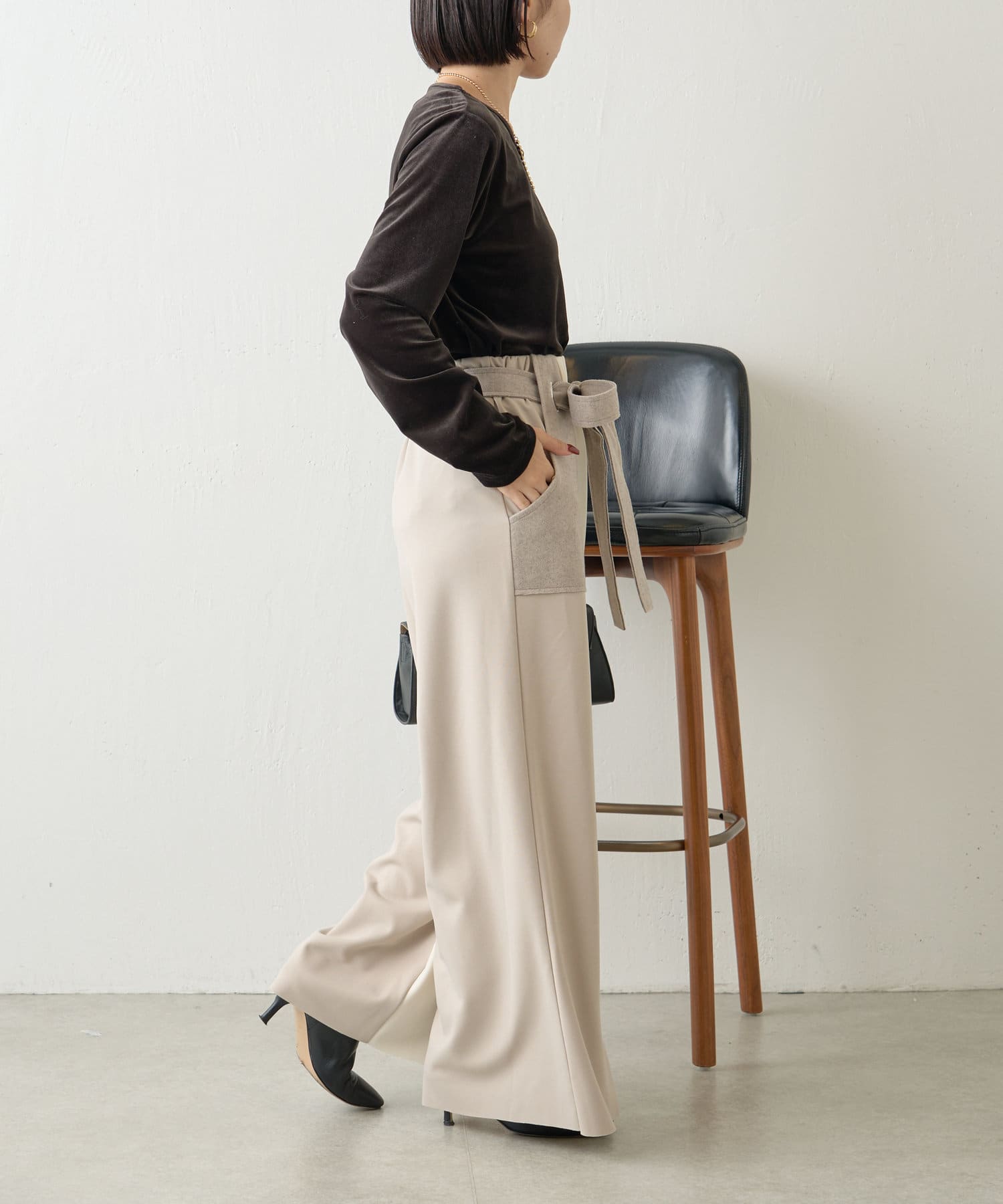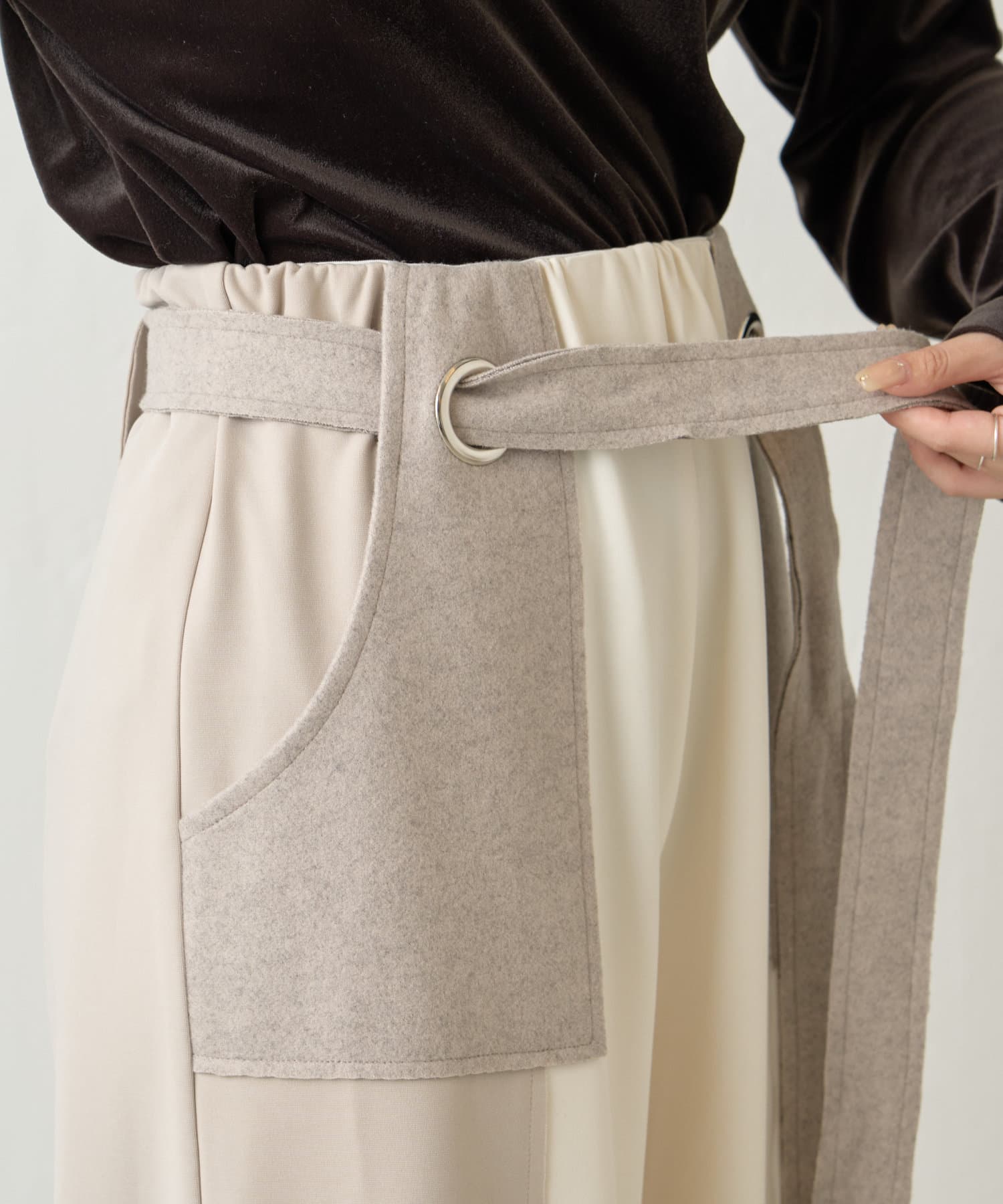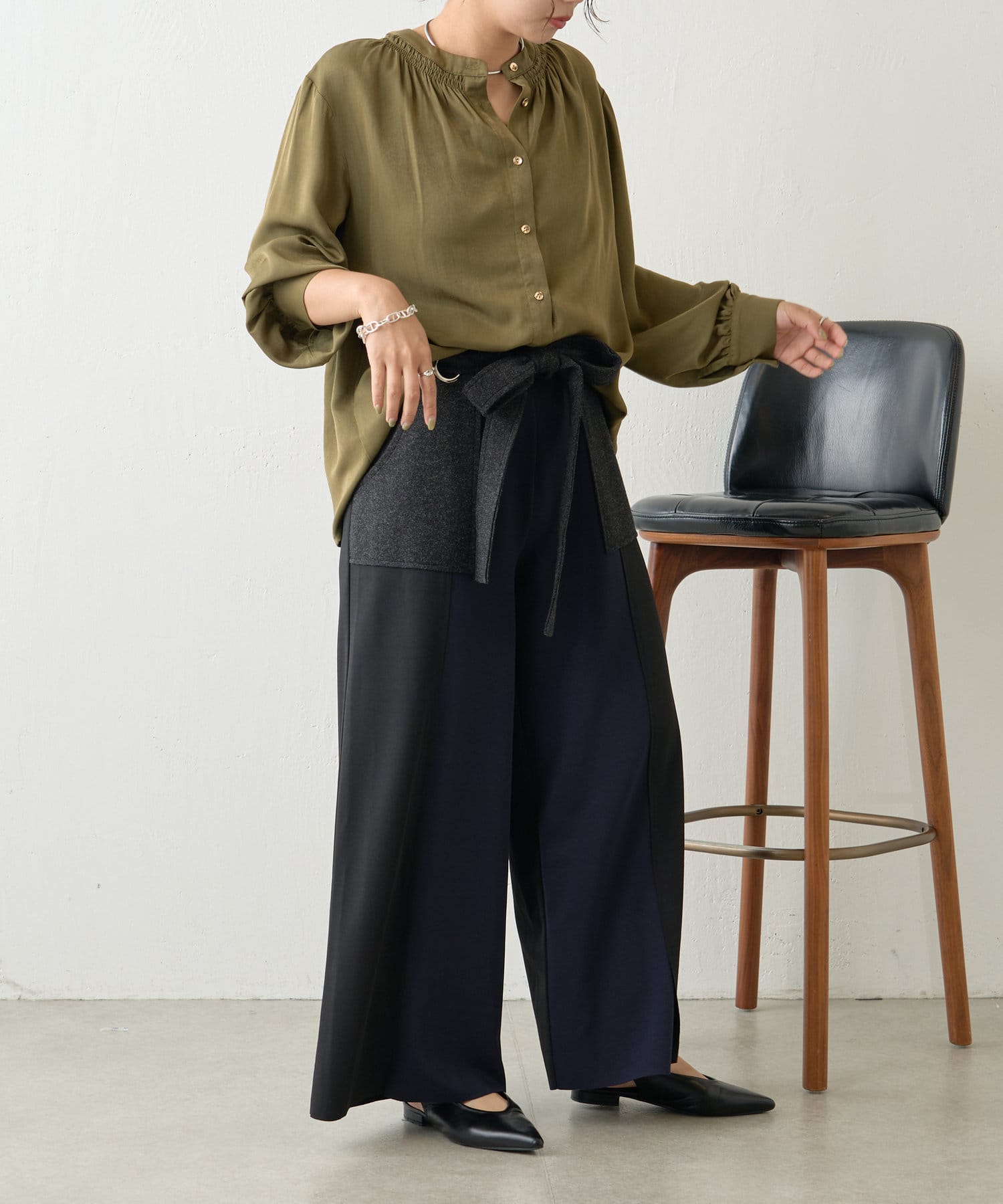 ・ポケットとリボンの部分がメルトン生地になっていることで一気に秋仕様に。