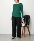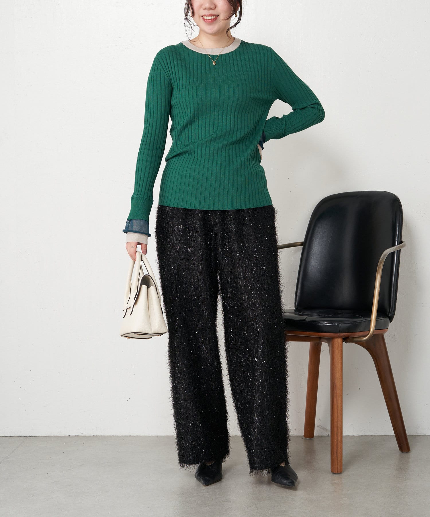 ・ウエストはゴム仕様でストレスフリーな着心地、素材が切り替わったデザインもすっきり見えに◎