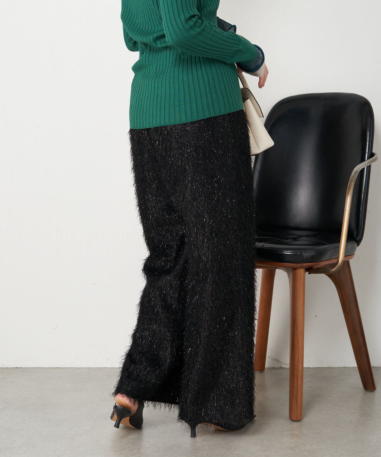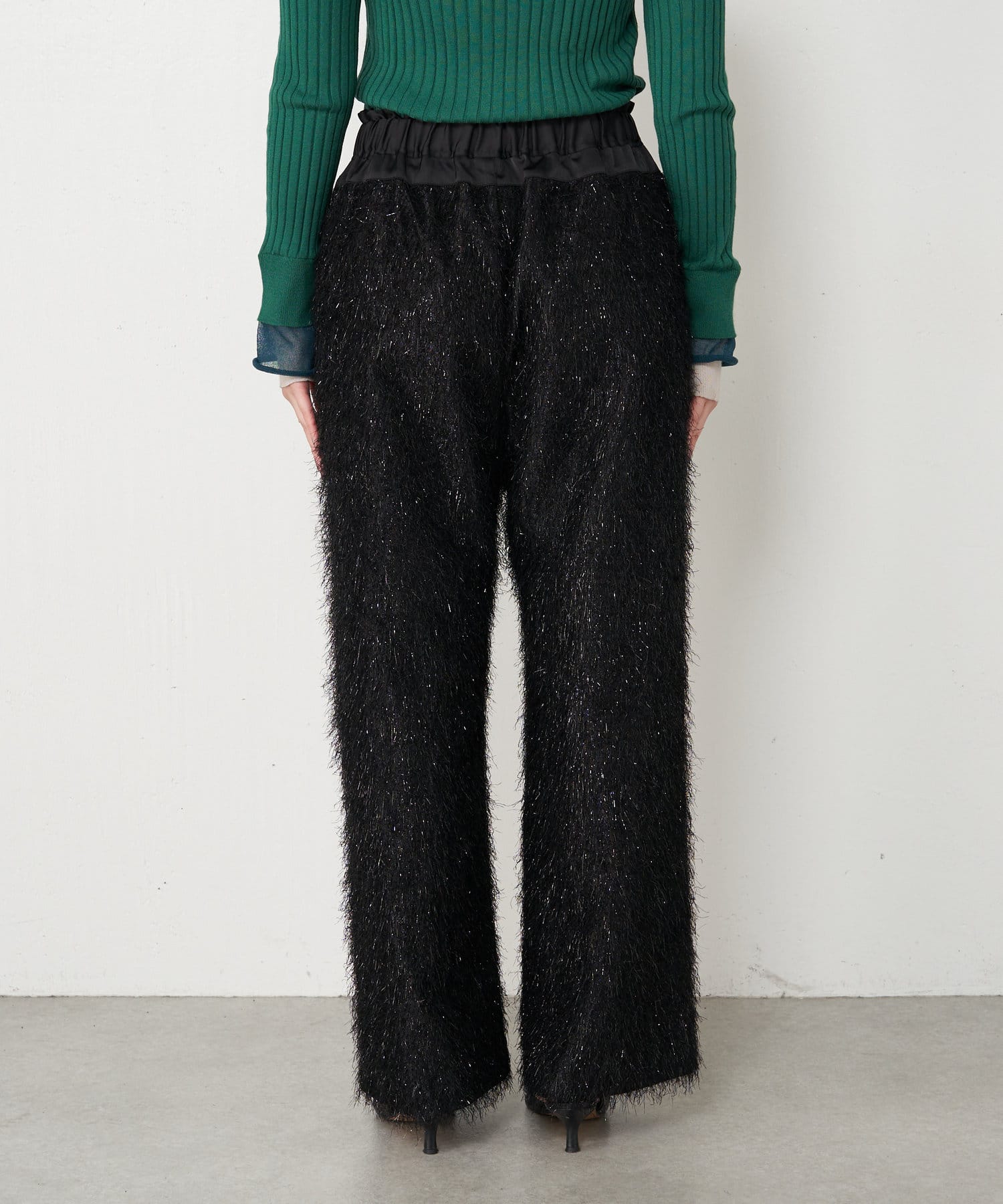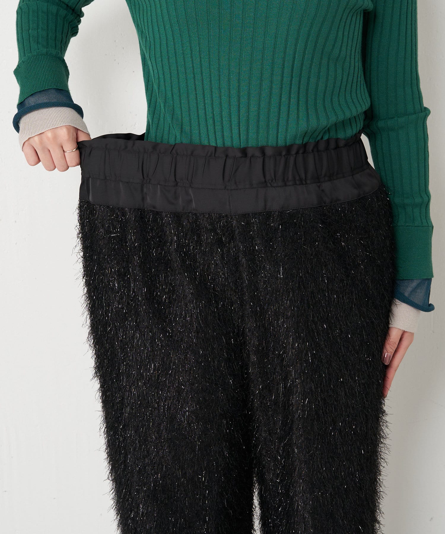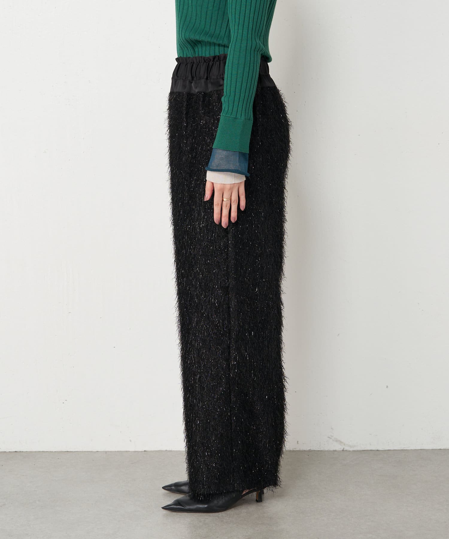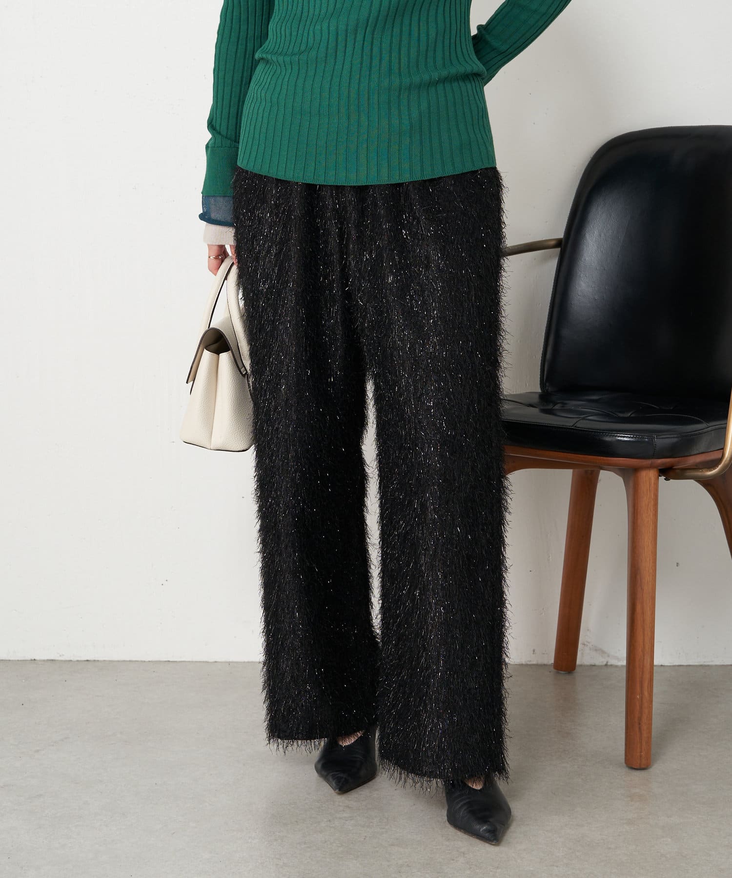 ・軽やかで、動きに合わせて揺れるフリンジが、華やかさをプラスしてくれるに着映えパンツ。