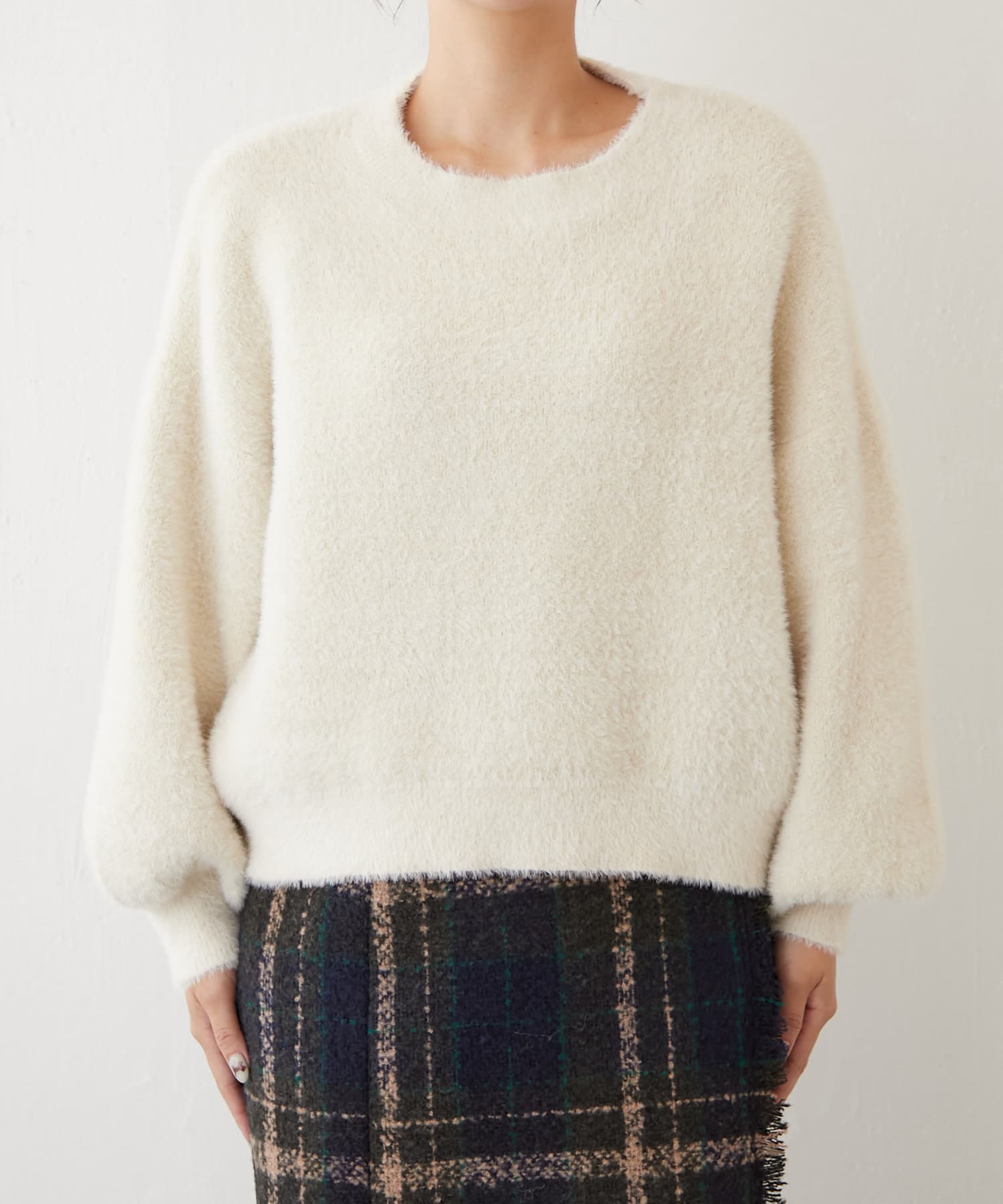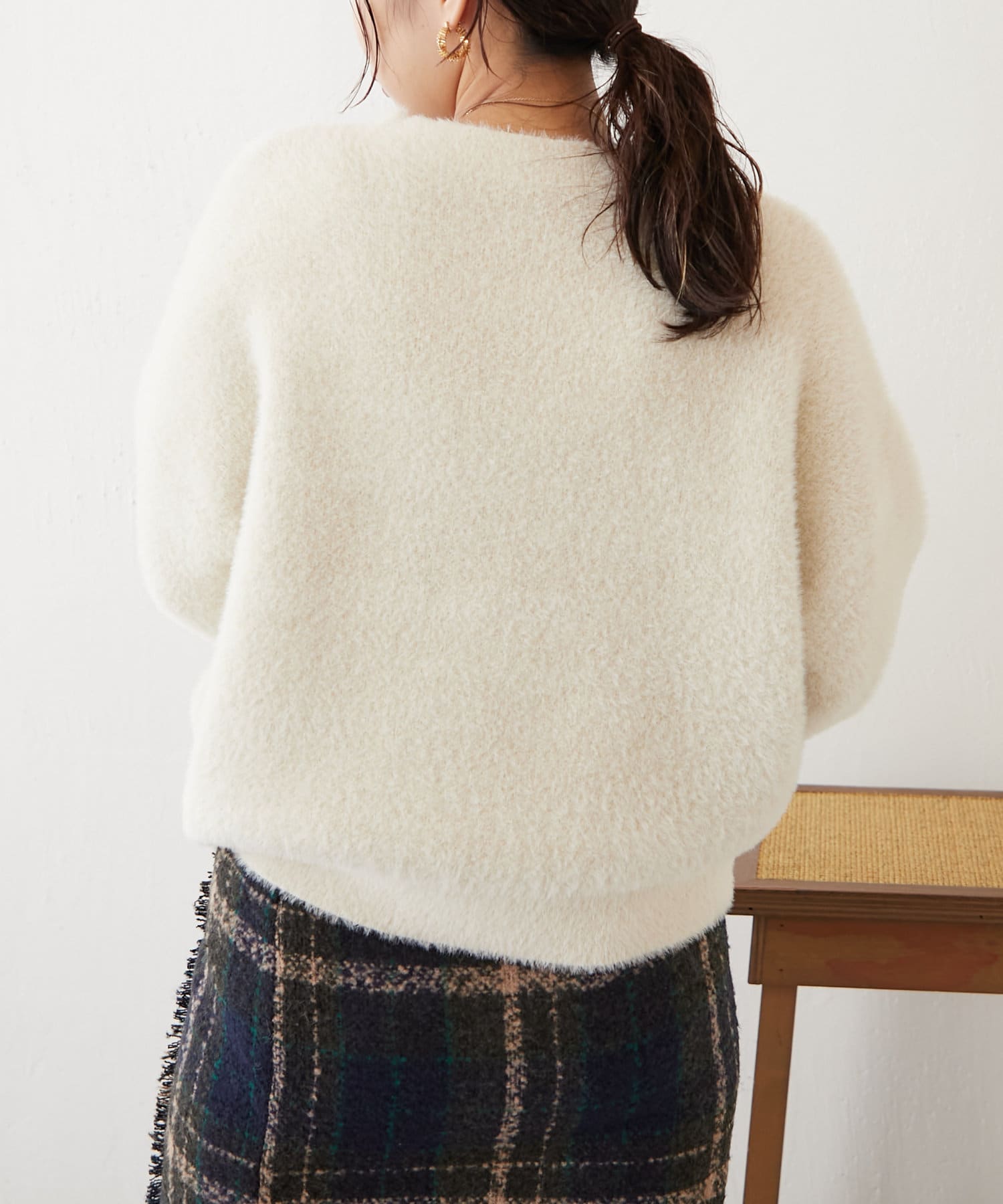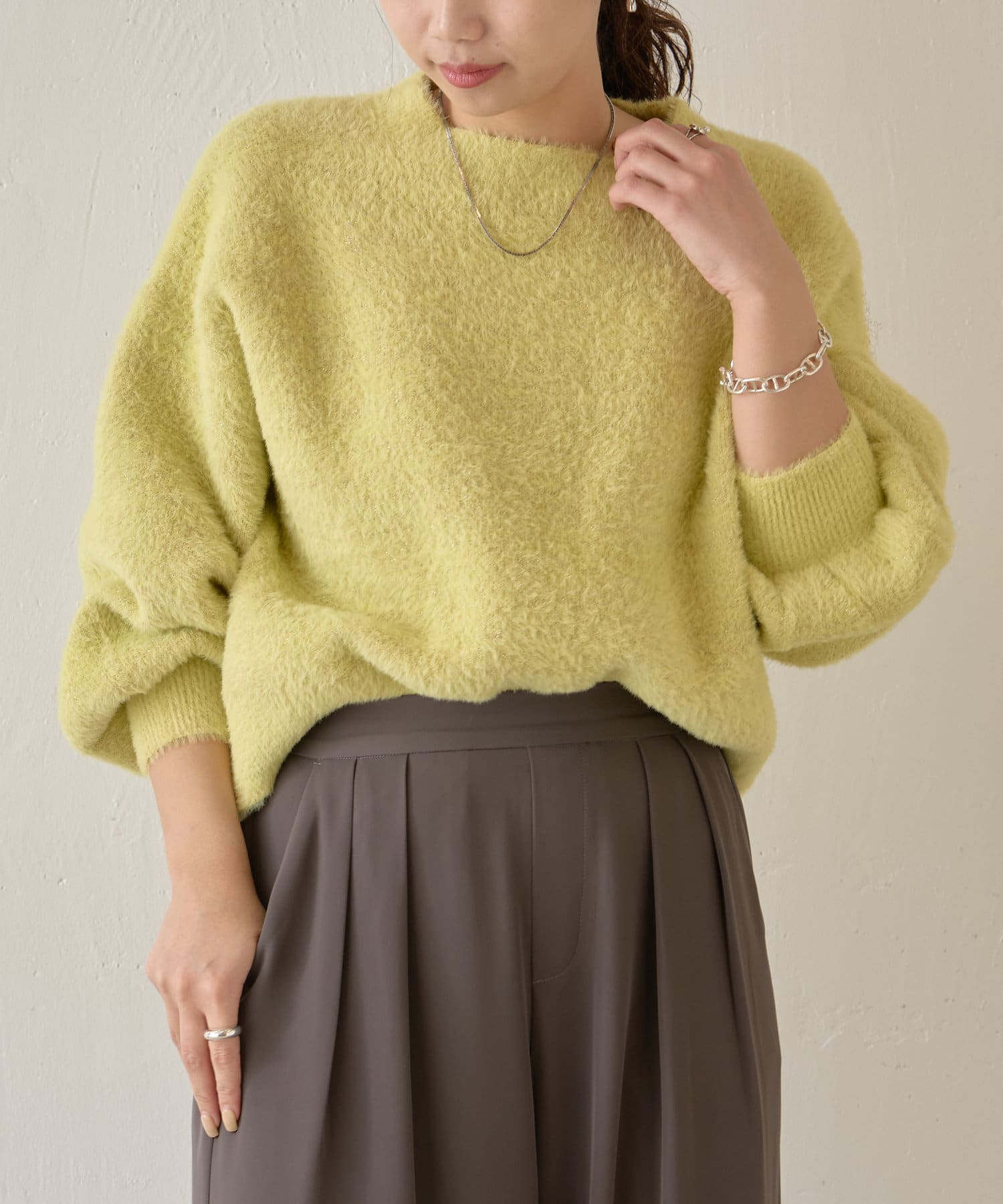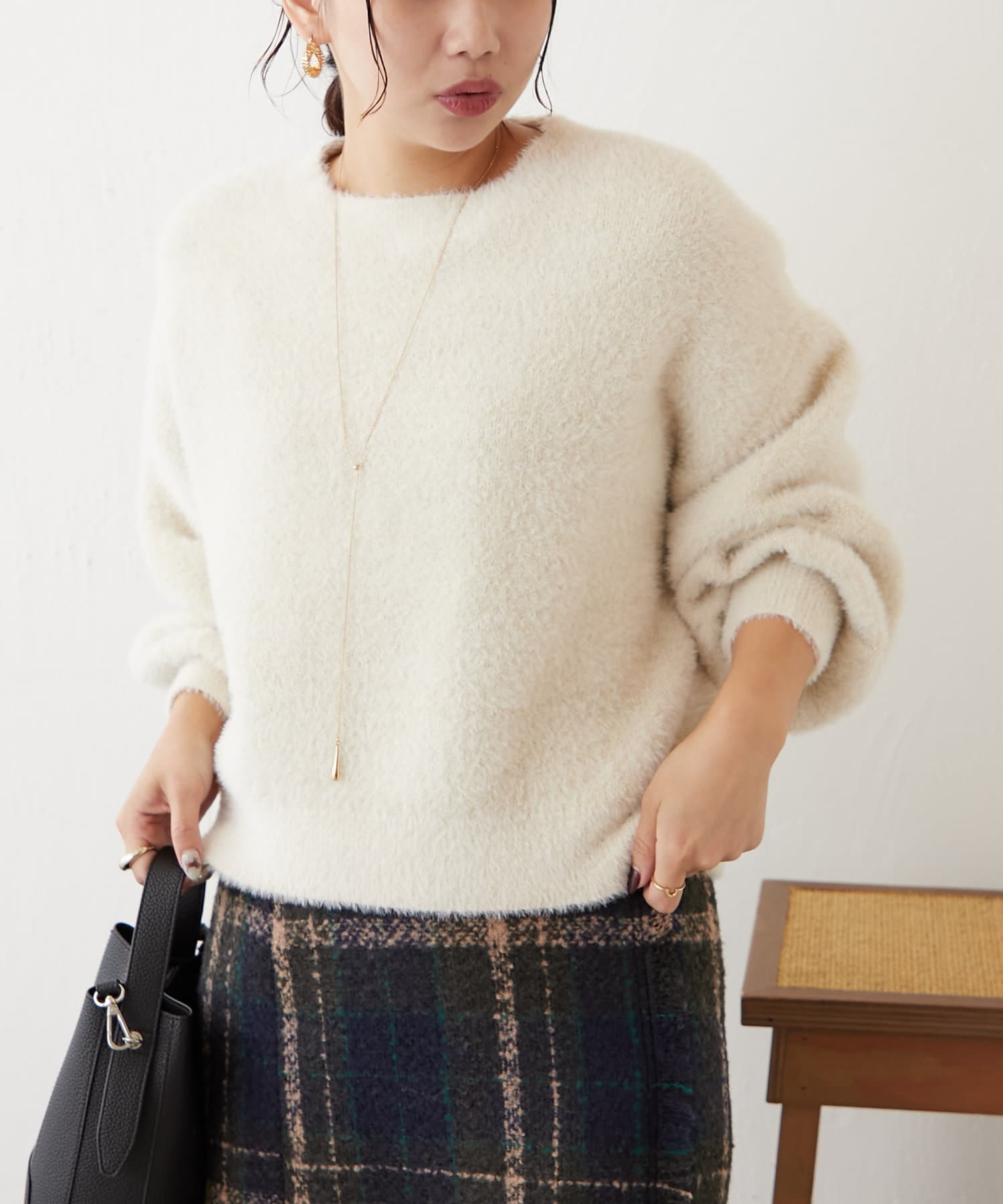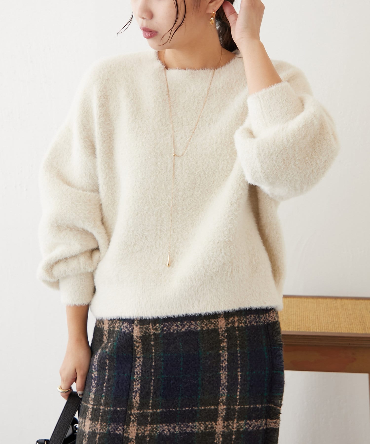 ・優しい肌触りのトレンド感溢れるシャギーニット。