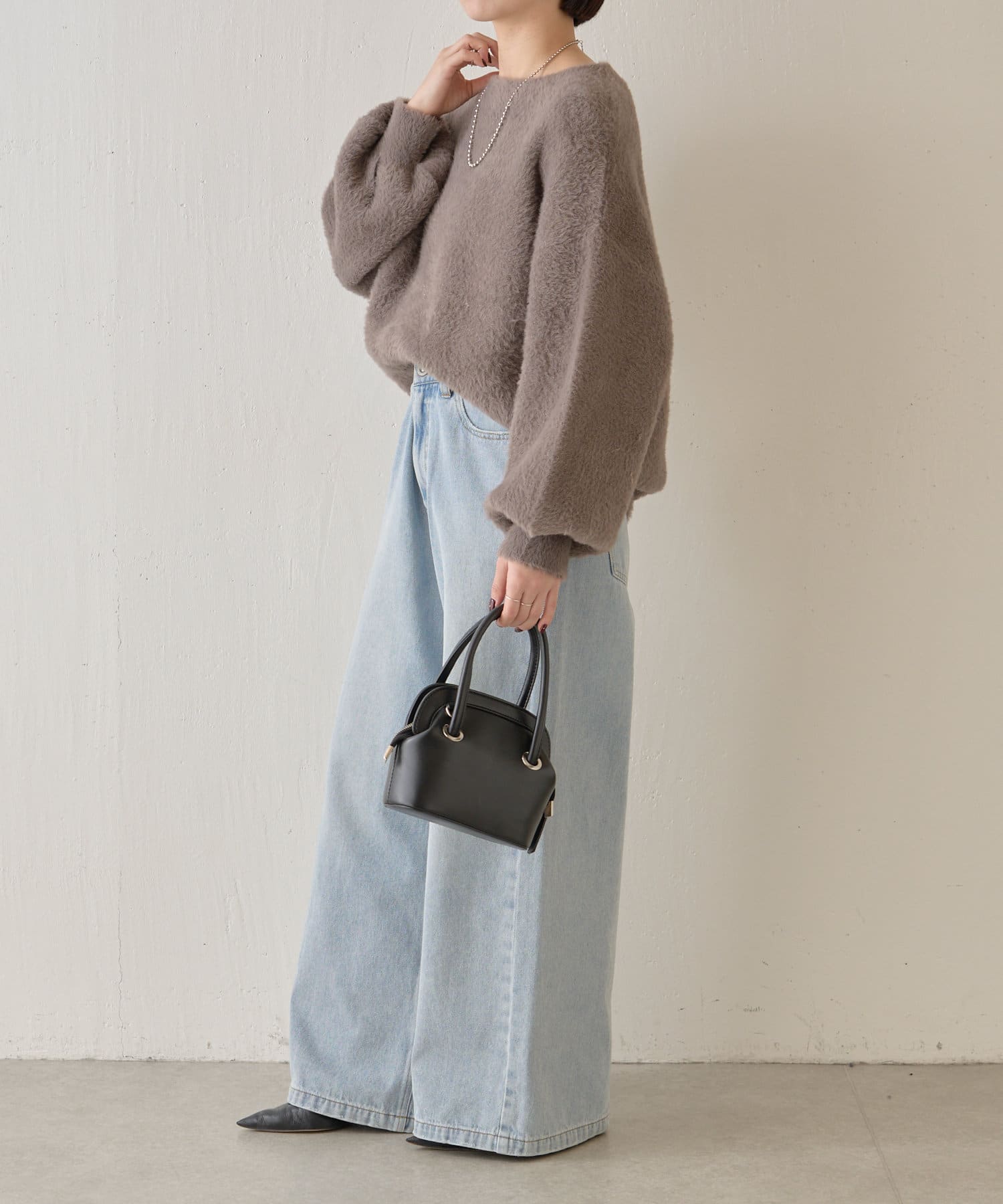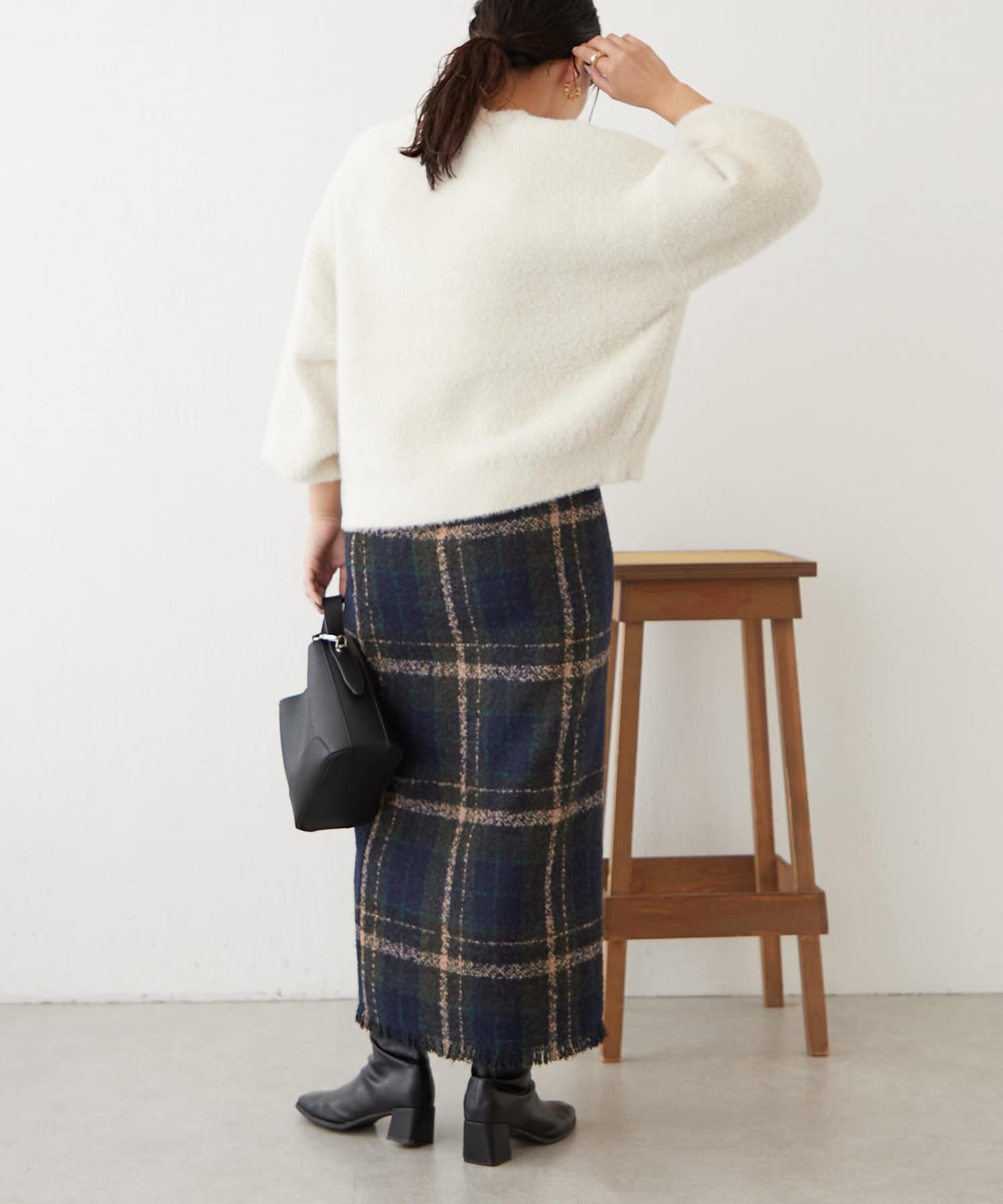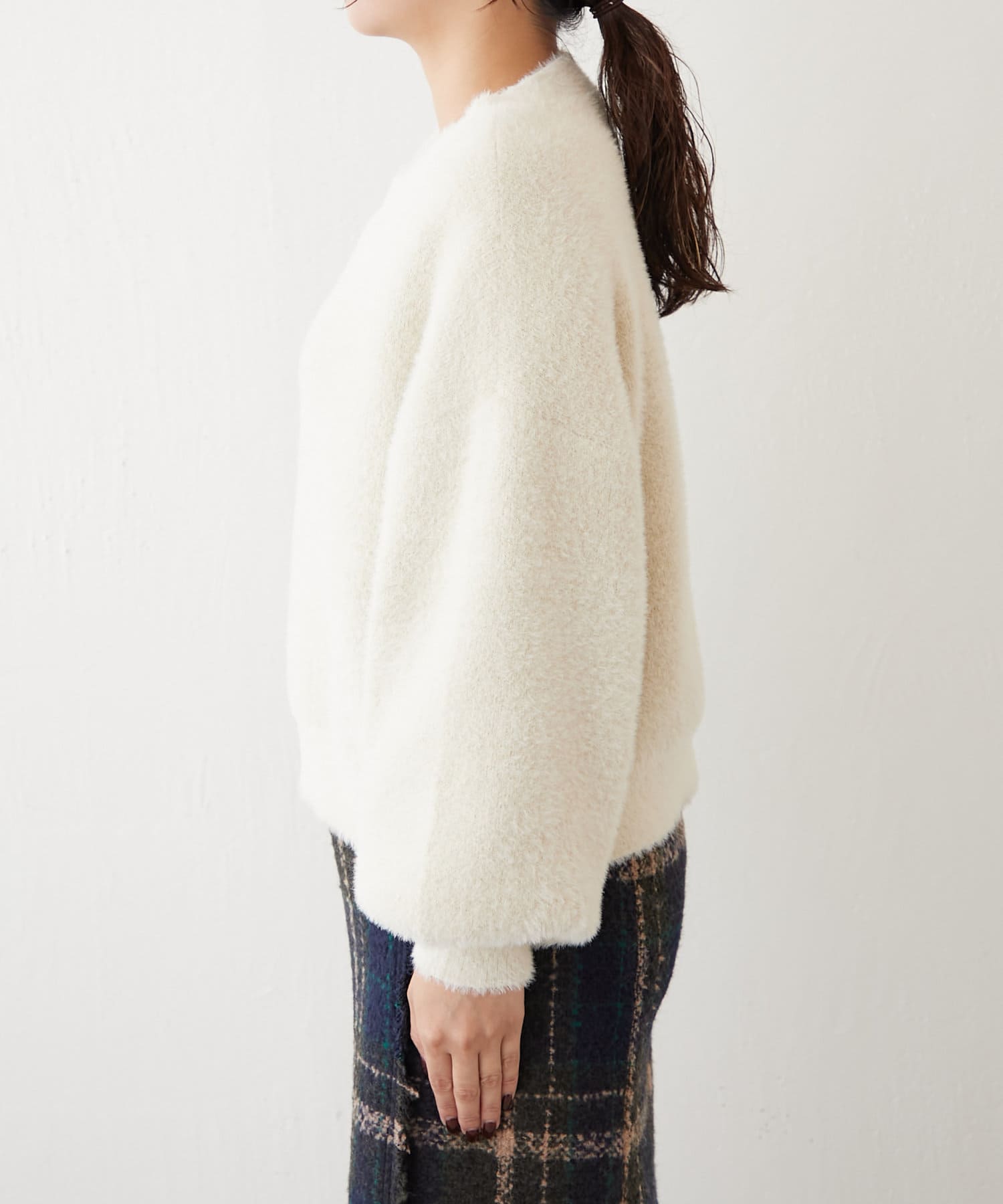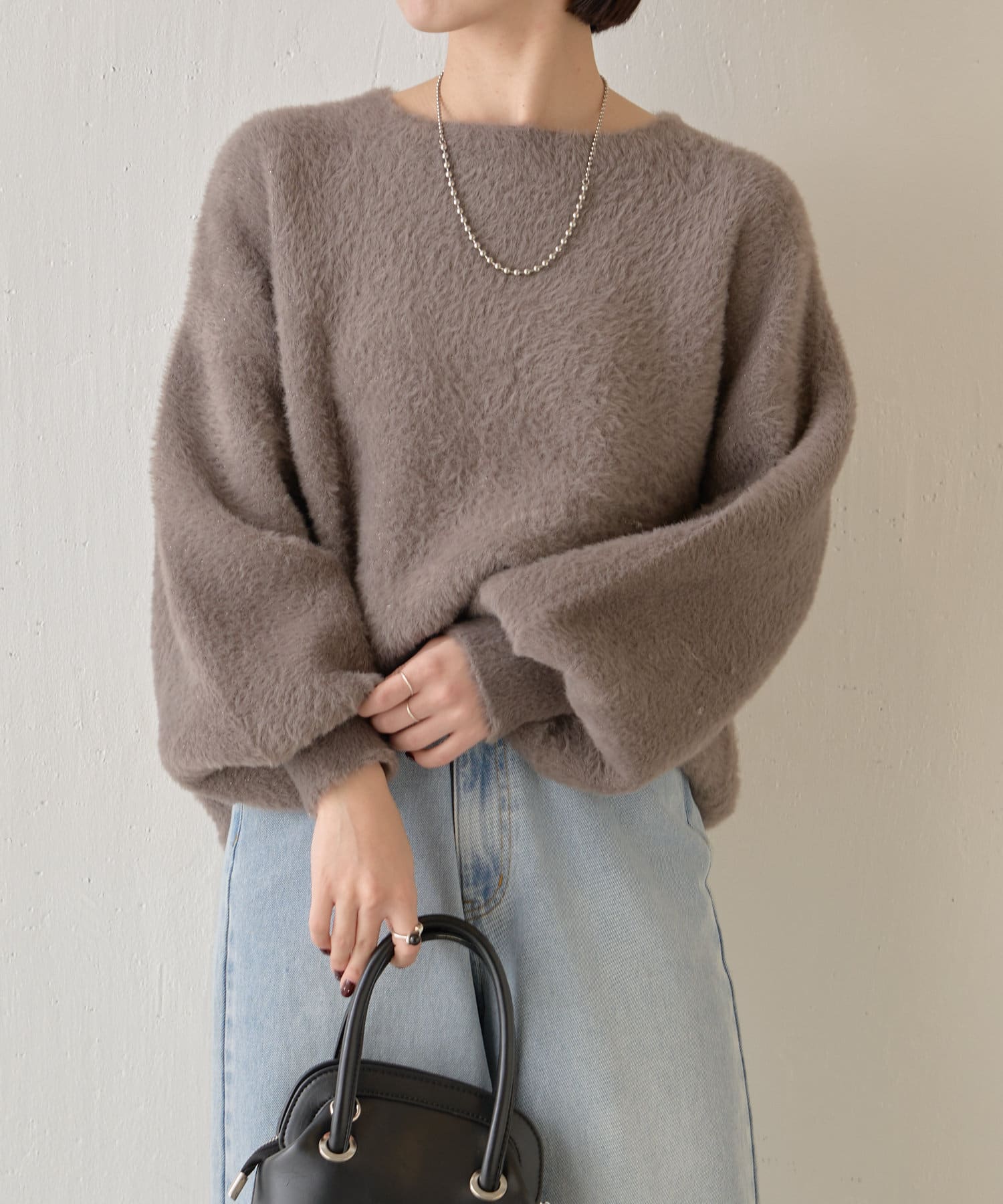 ・優しい肌触りのトレンド感溢れるシャギーニット。