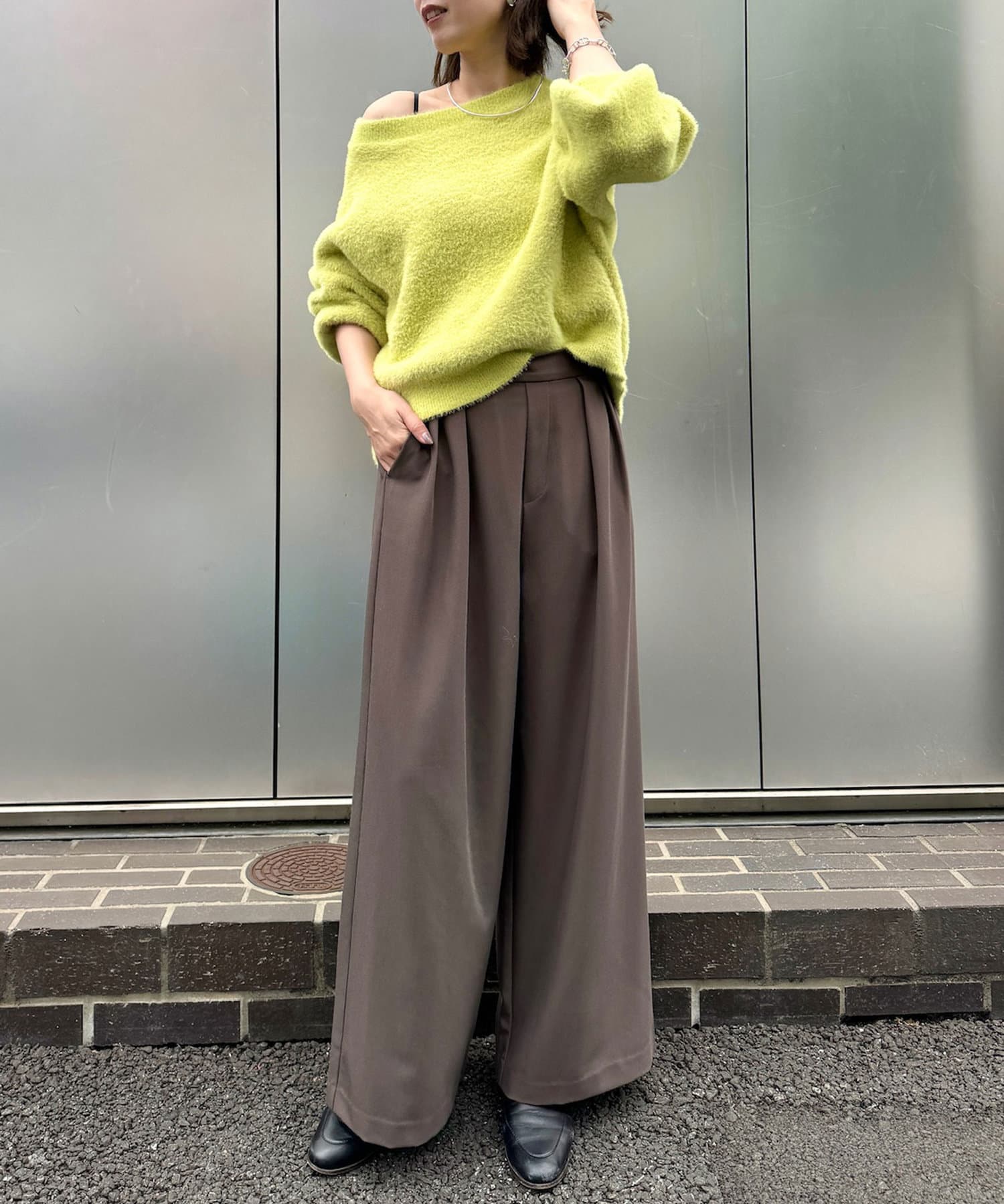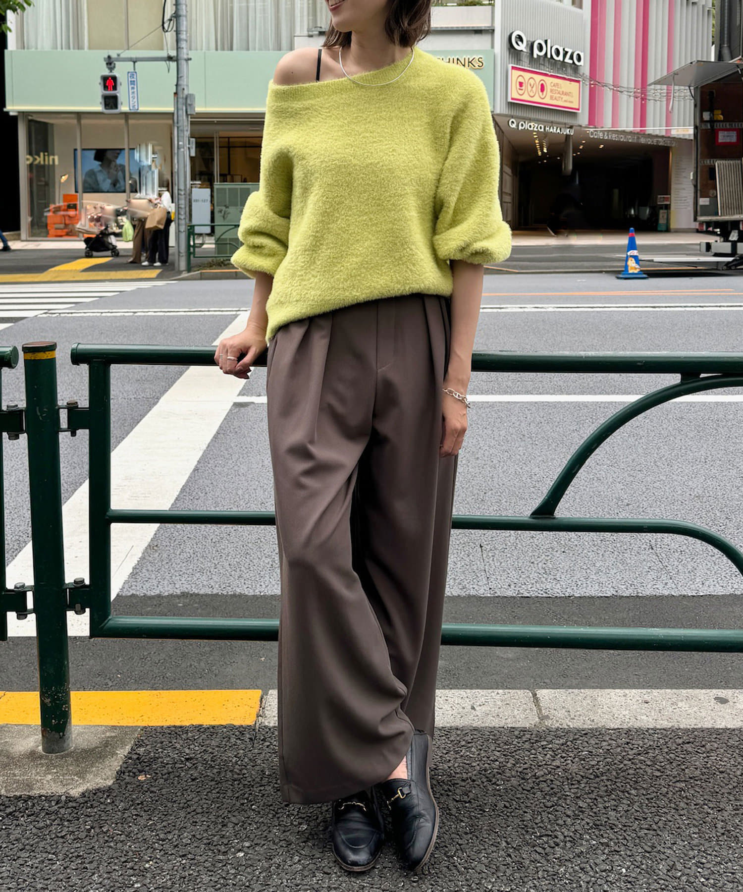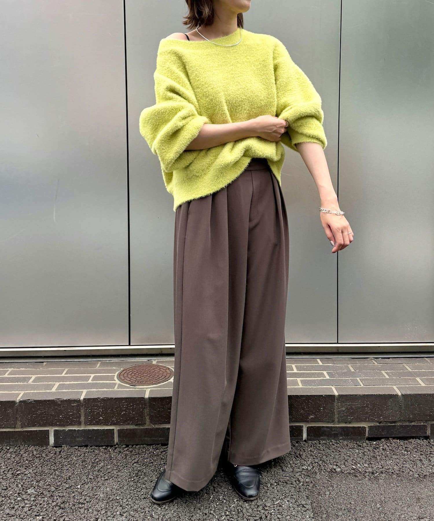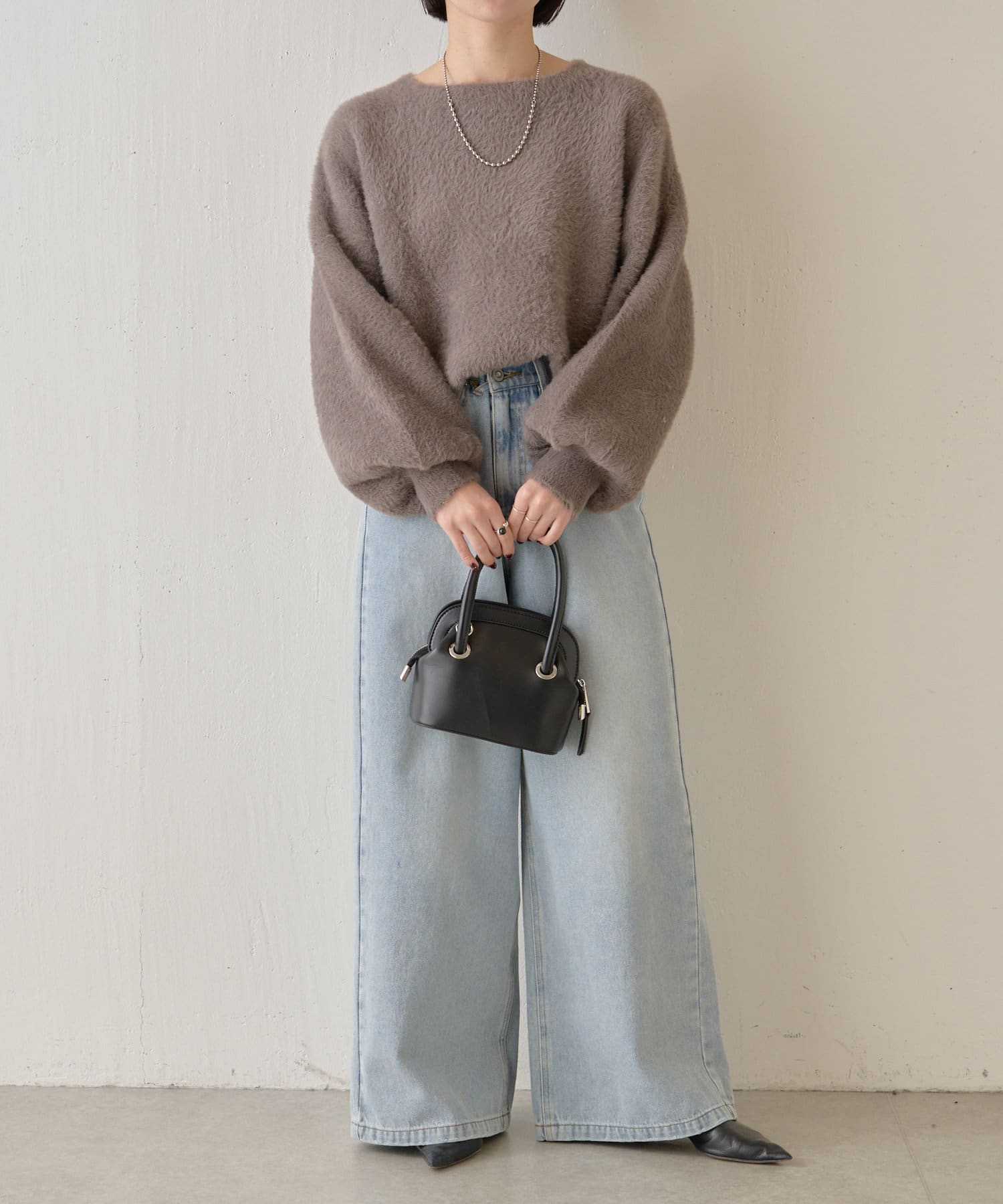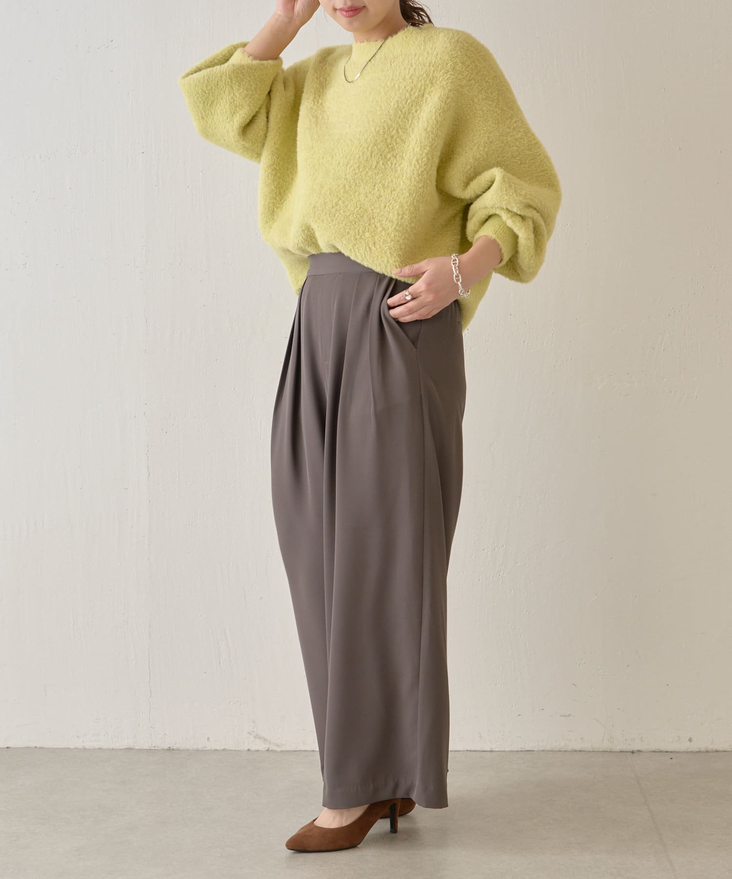 ・優しい肌触りのトレンド感溢れるシャギーニット。
