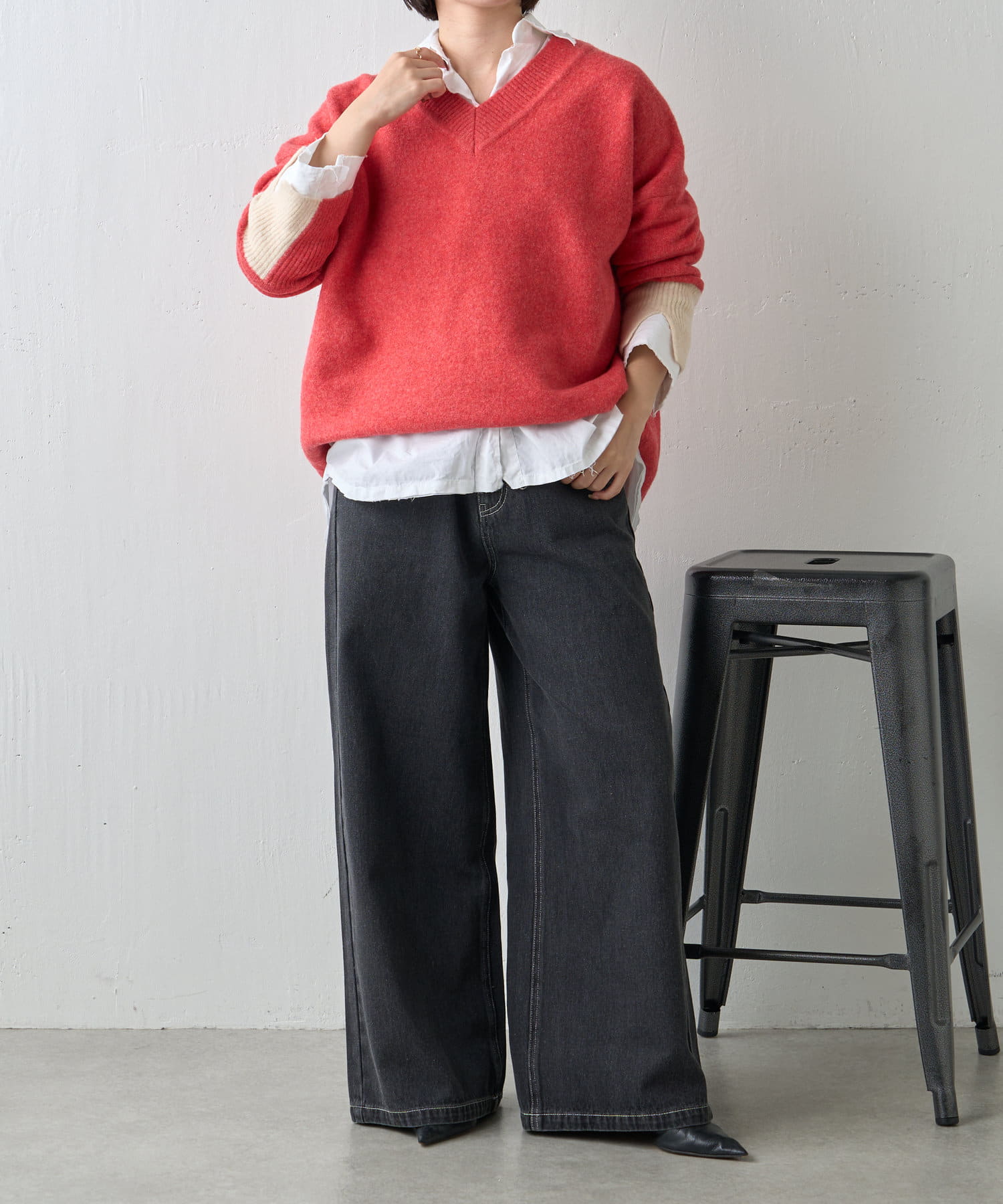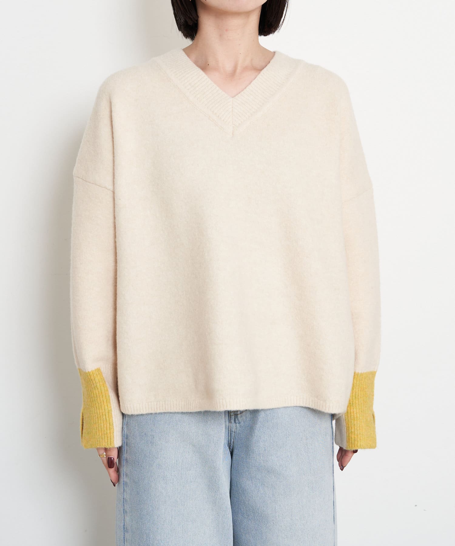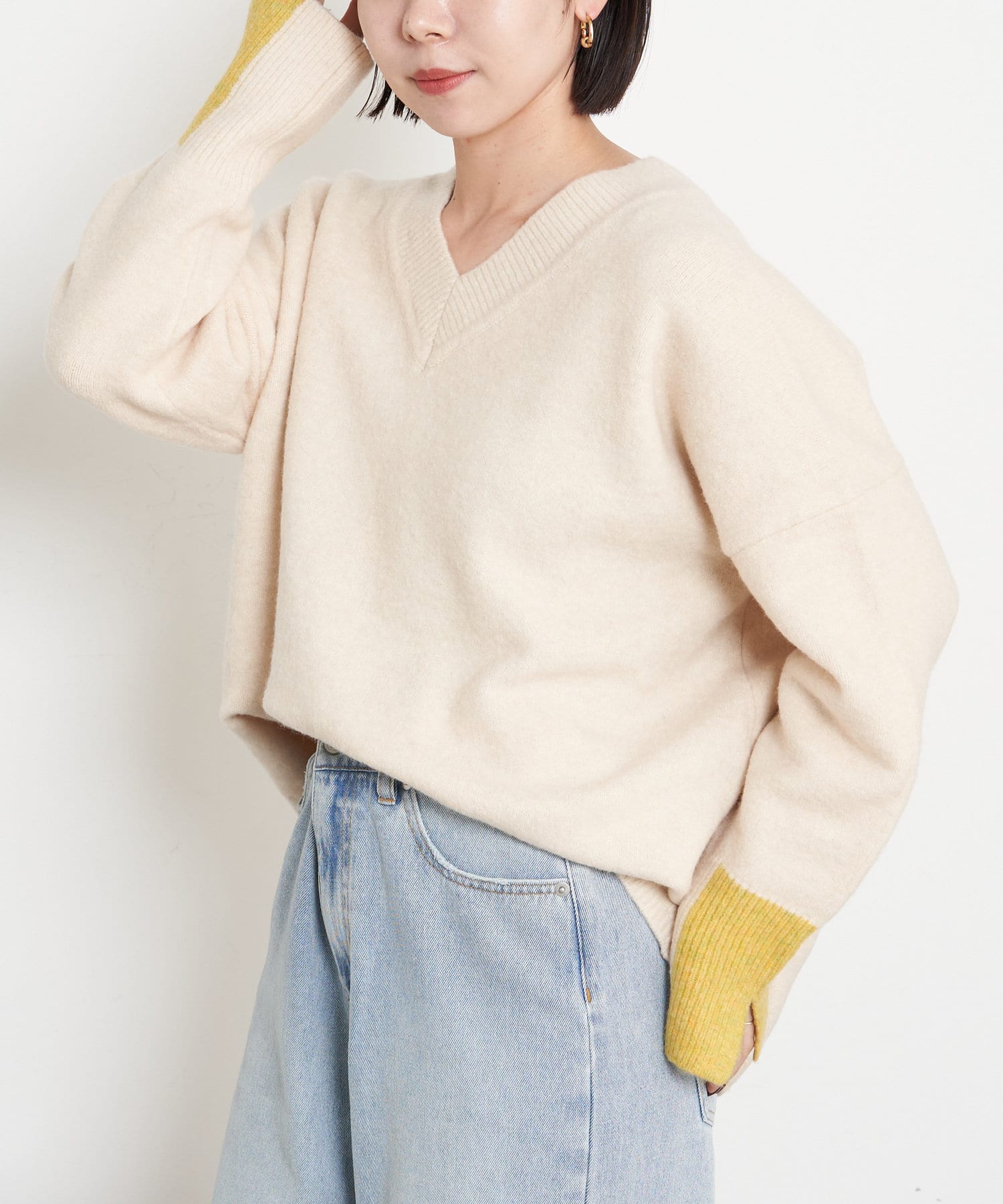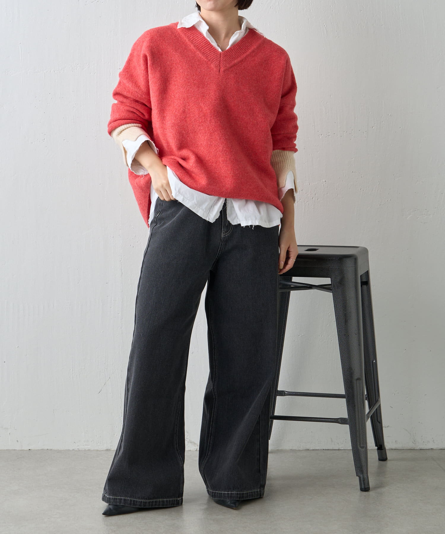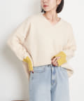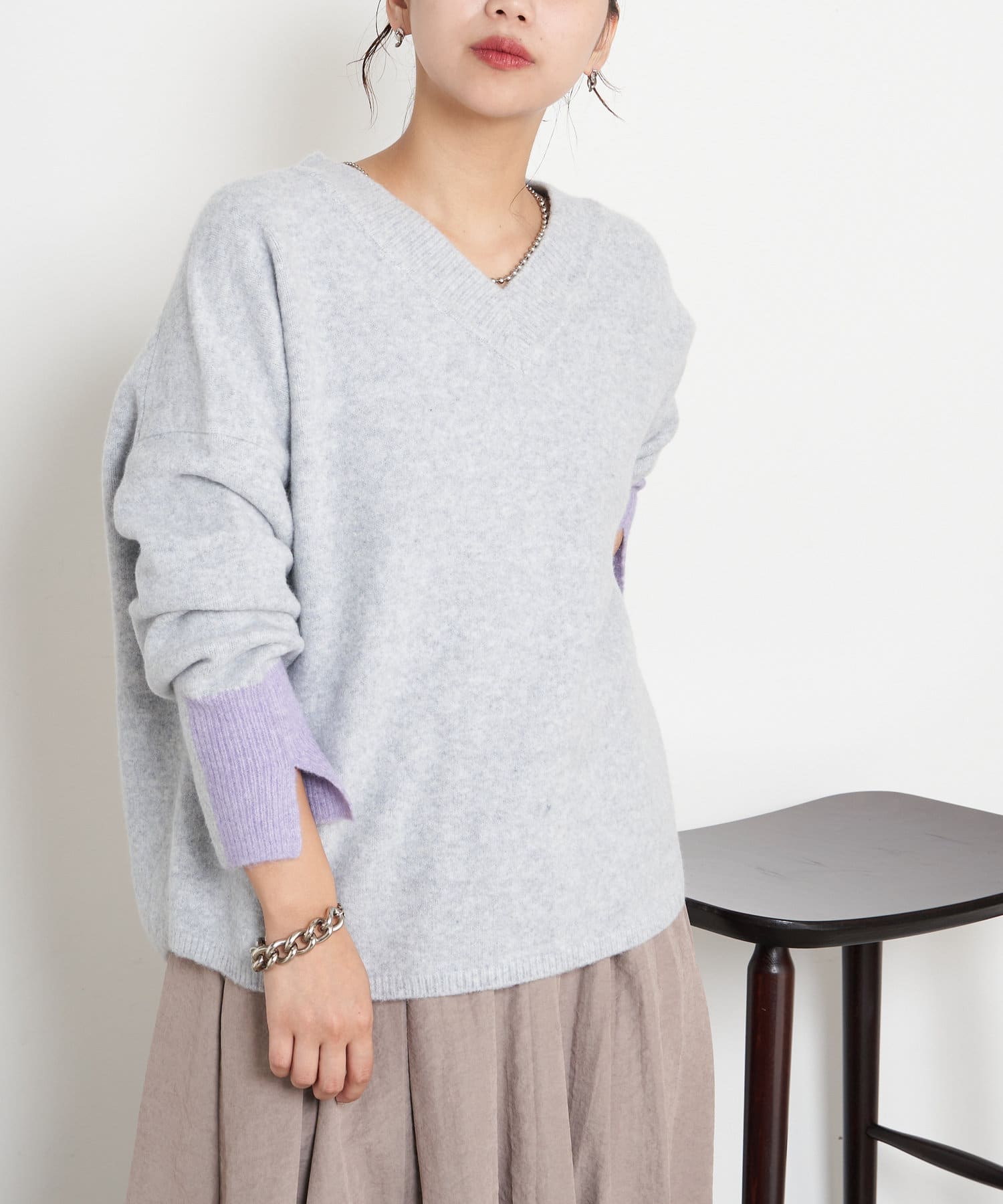 ・首元をキレイに見せてくれるVネックがポイントの、女性らしさたっぷりのプルオーバーニットです。