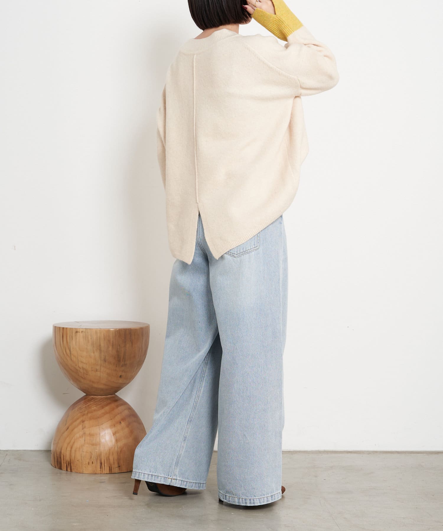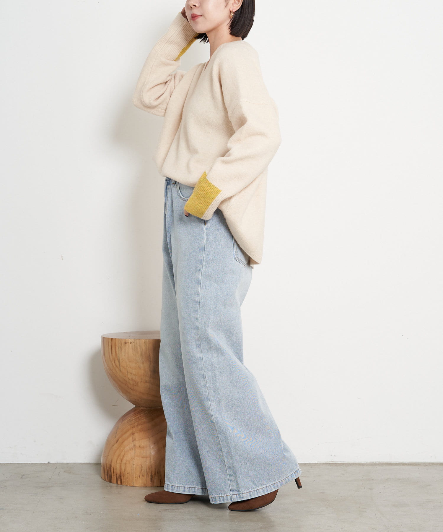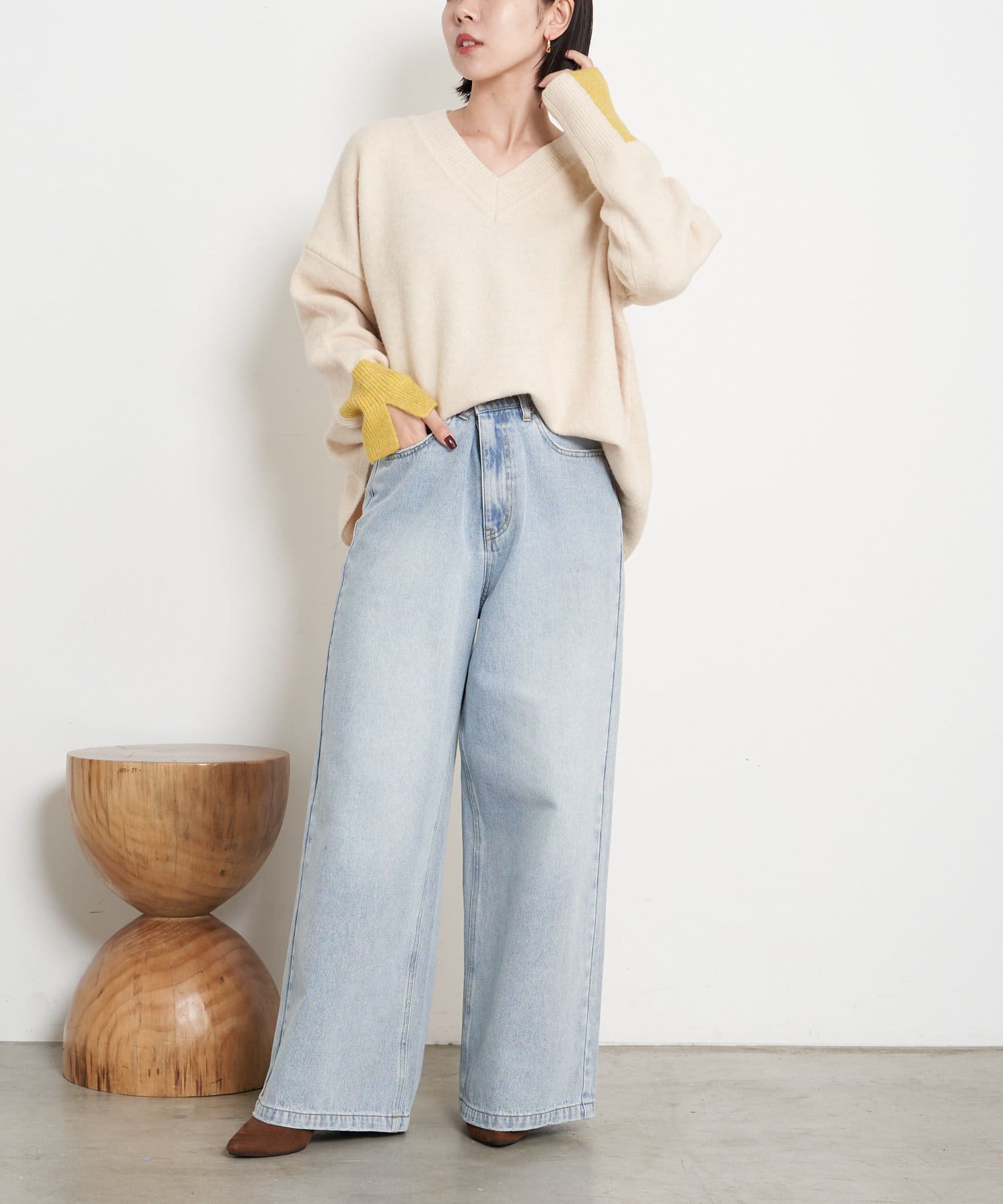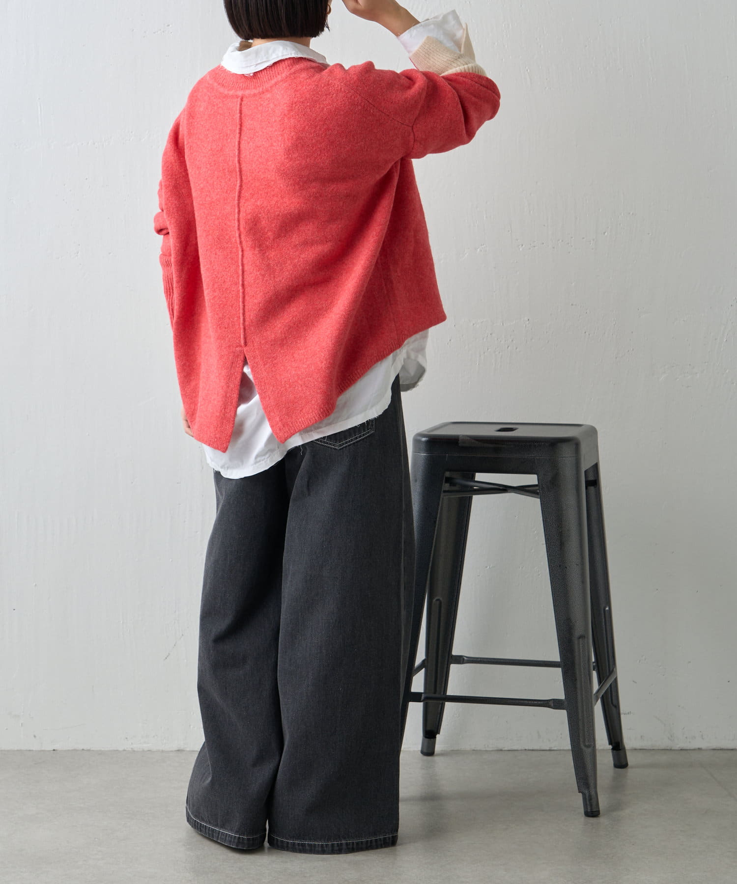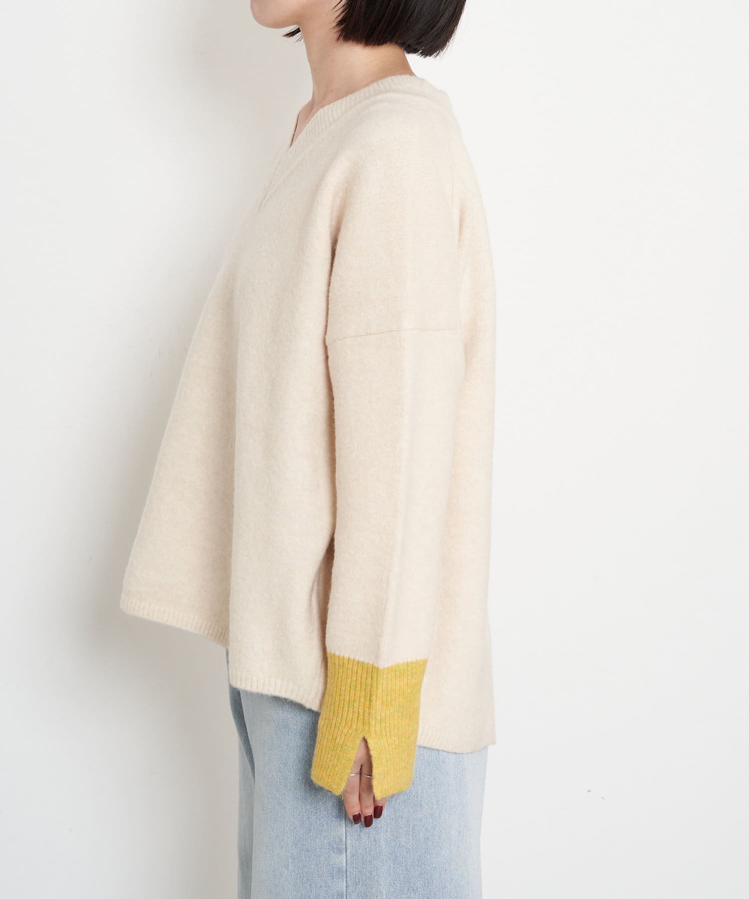・首元をキレイに見せてくれるVネックがポイントの、女性らしさたっぷりのプルオーバーニットです。