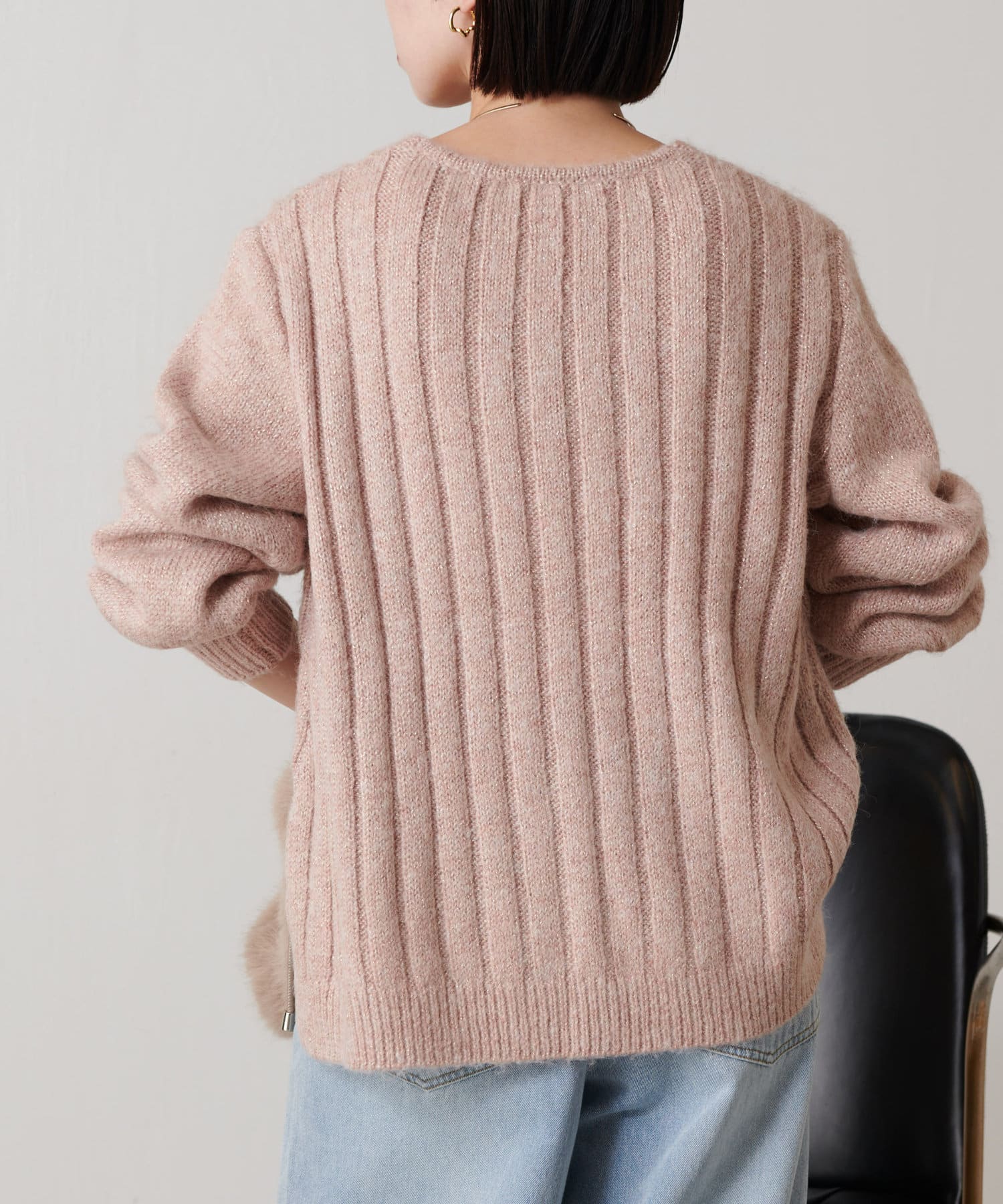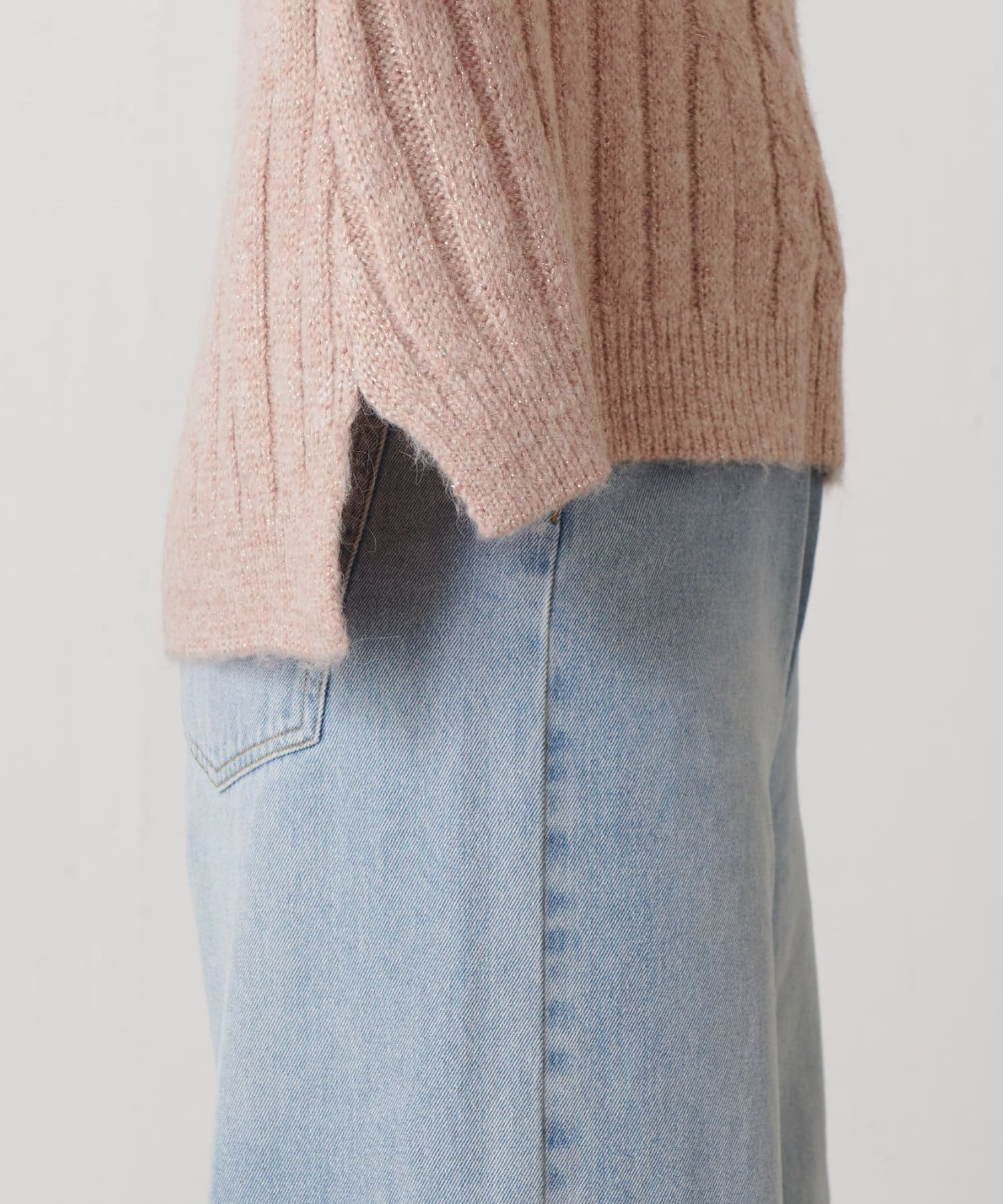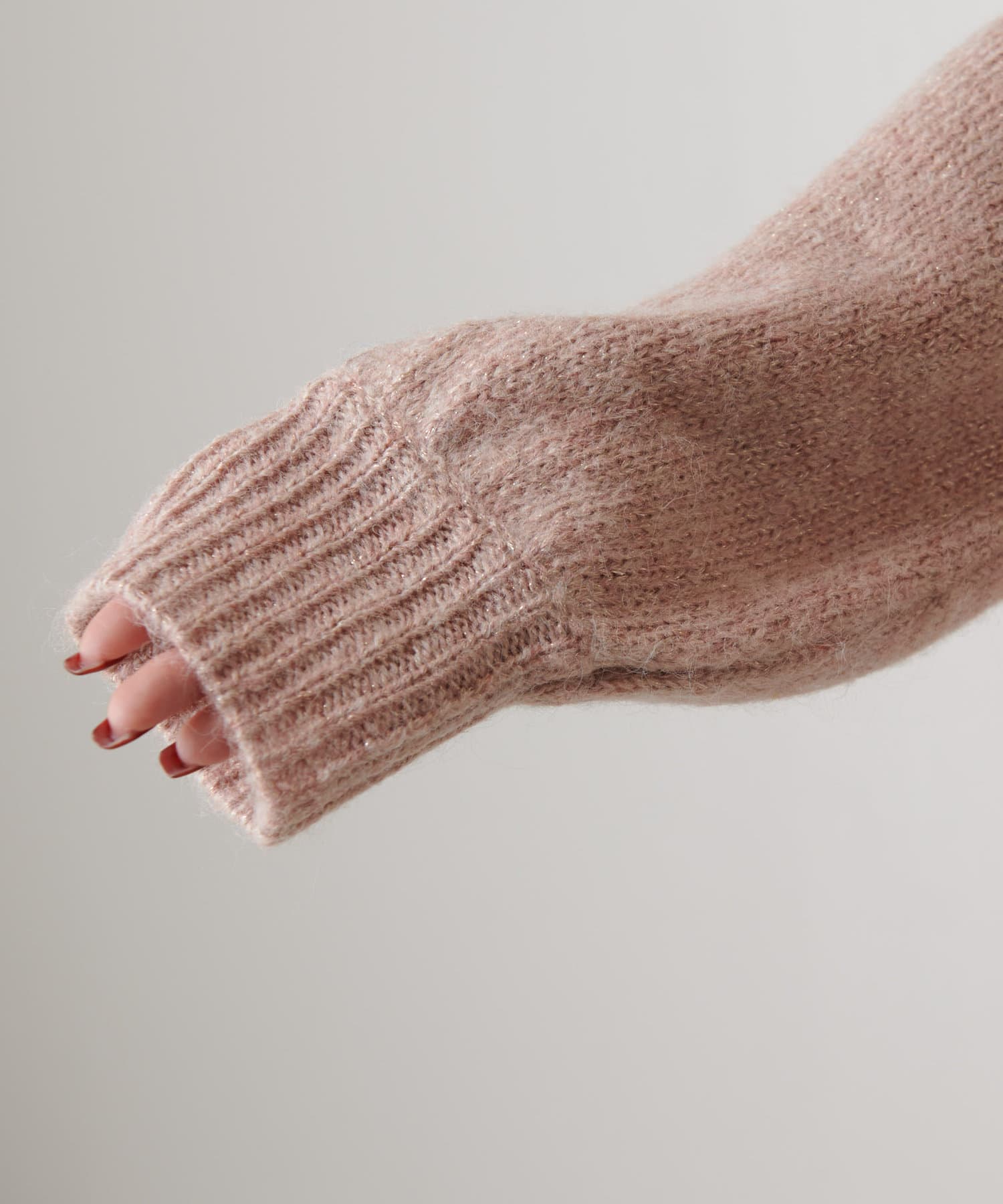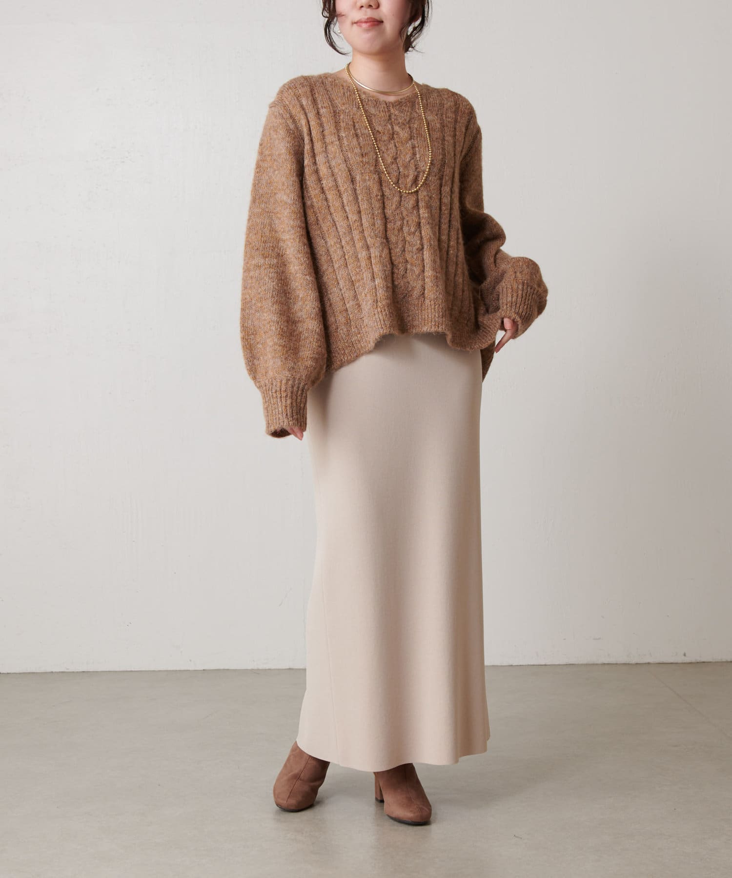 ・ざっくりとした編地と華やかななラメ生地が、カジュアルにもキレイめにも映えるニット。